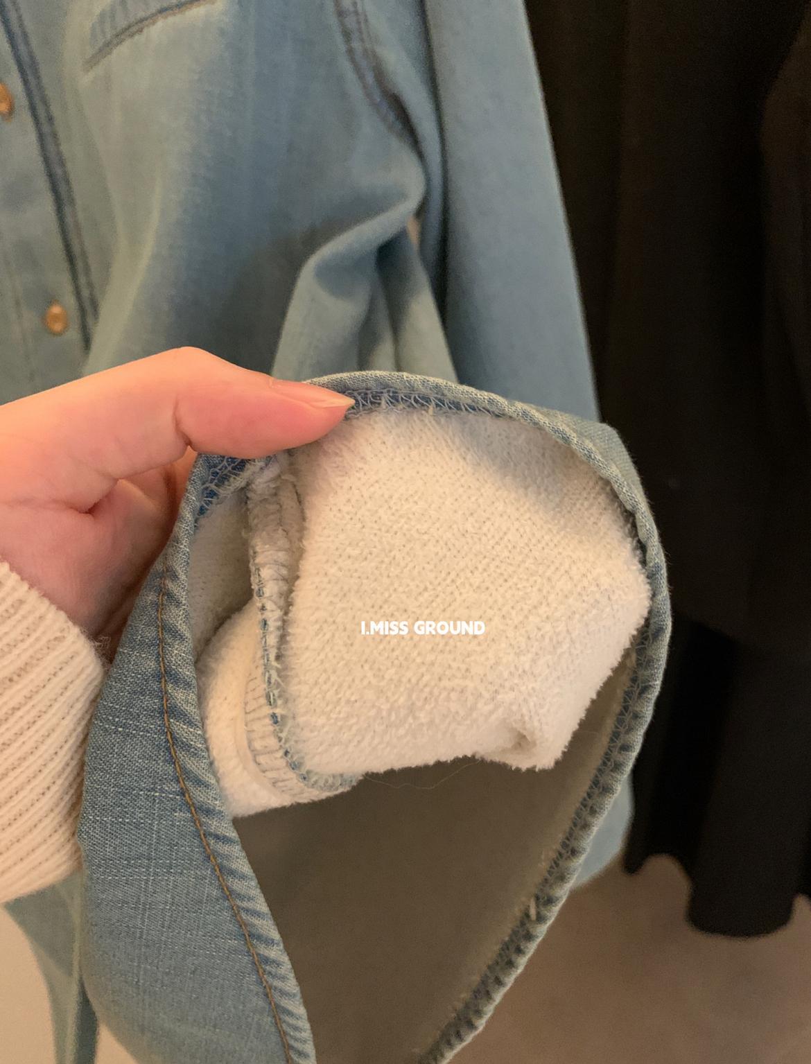 【C7866】爆款!加絨加厚復古洗水牛仔襯衫