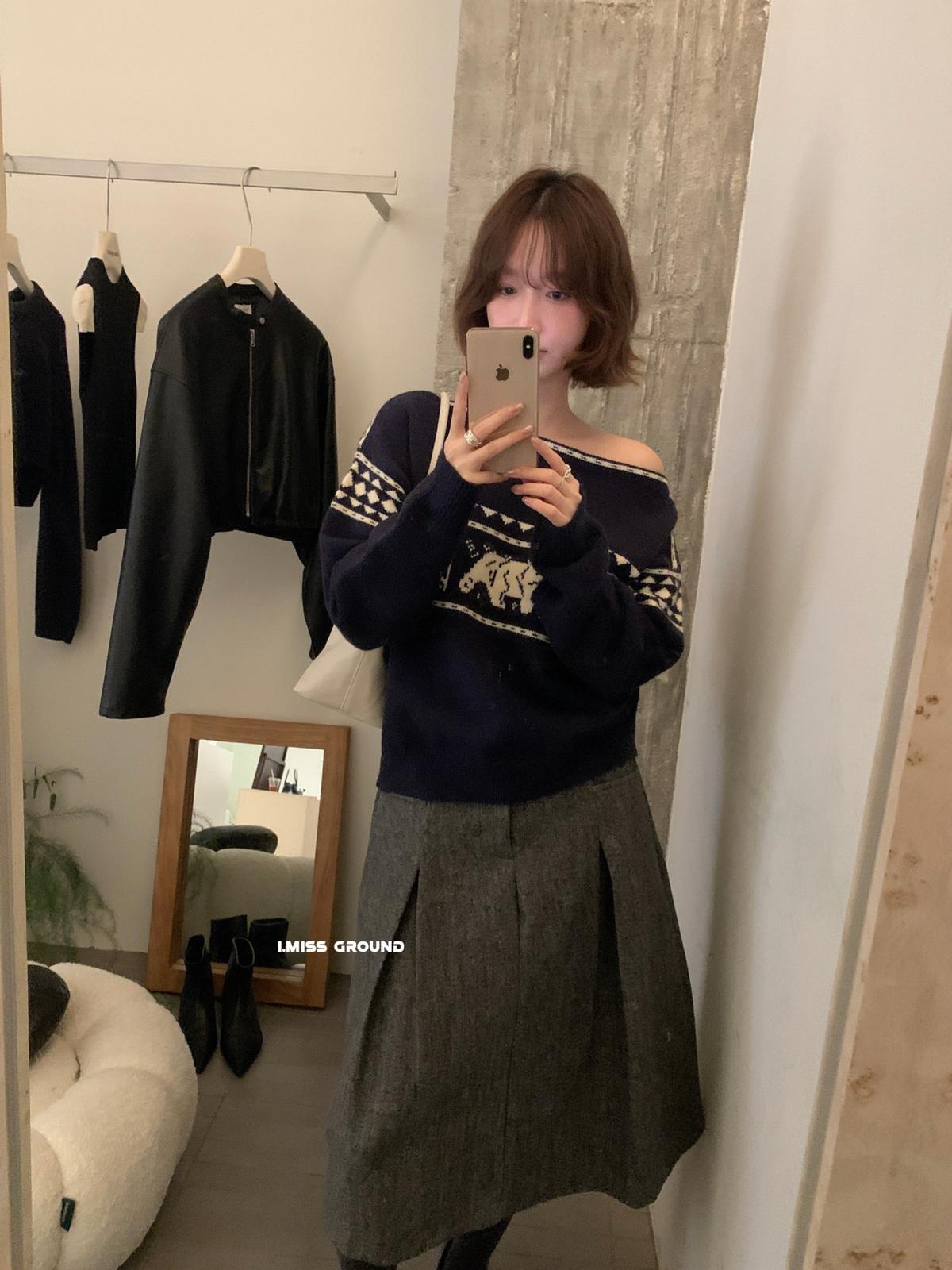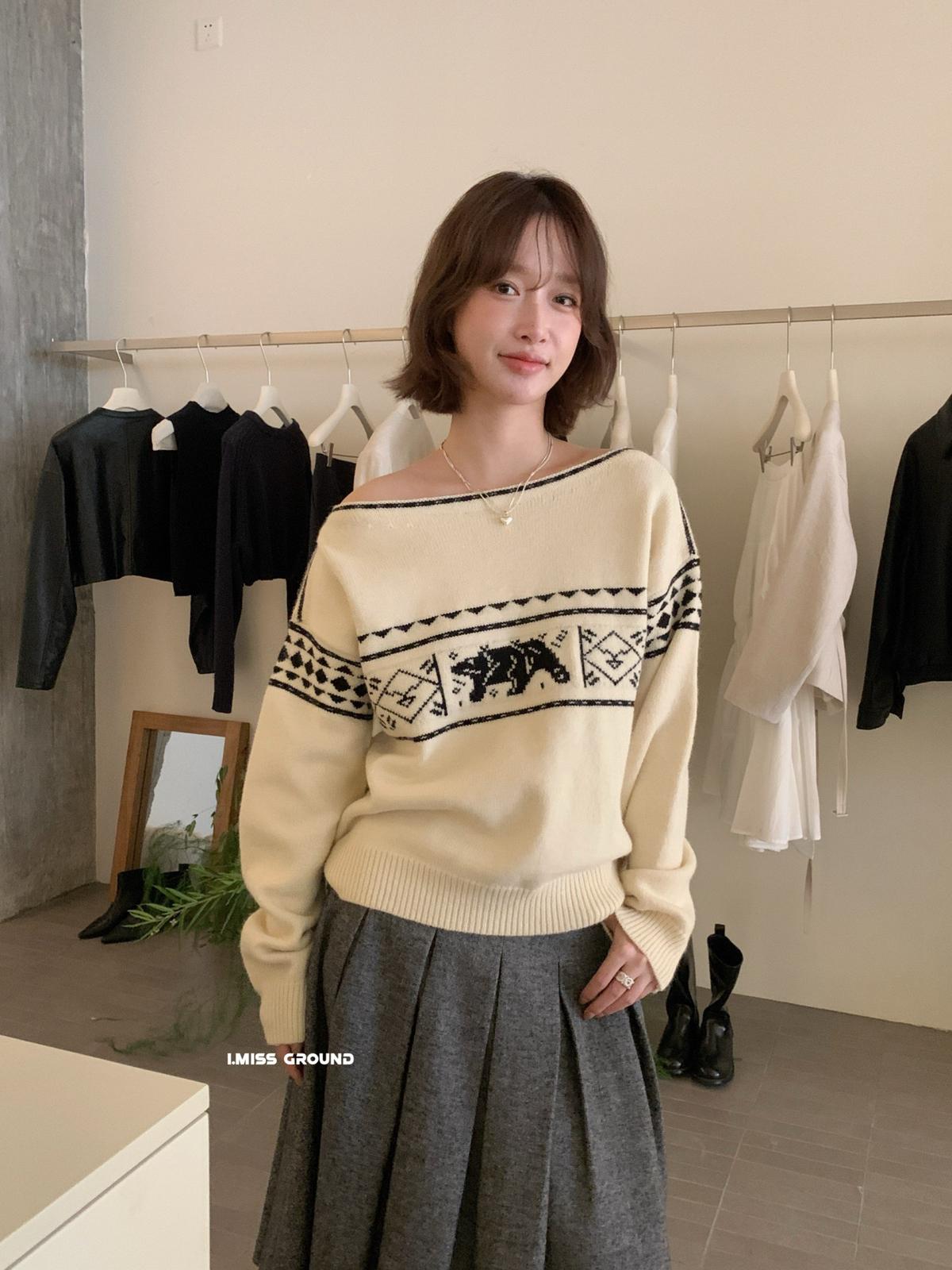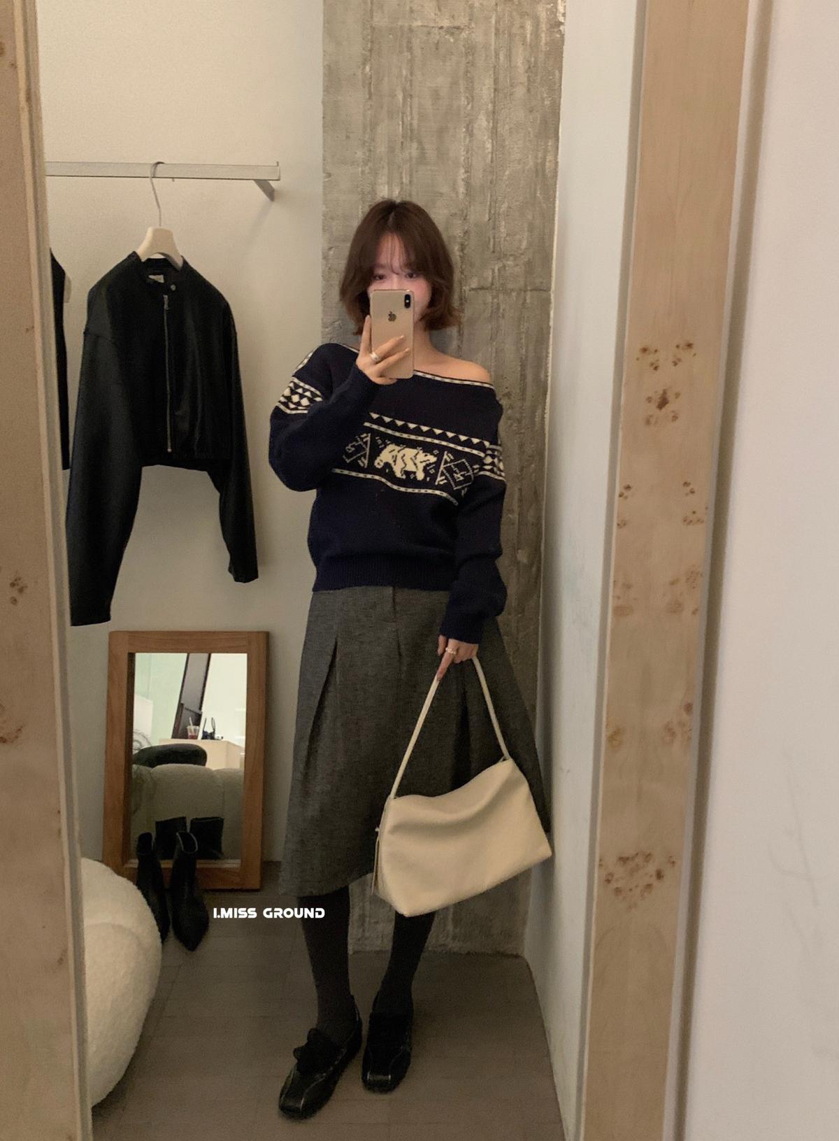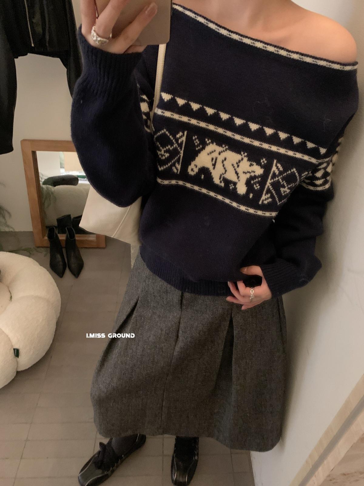 【C7868】聖誕款!兩穿復古提花斜肩保暖毛衣