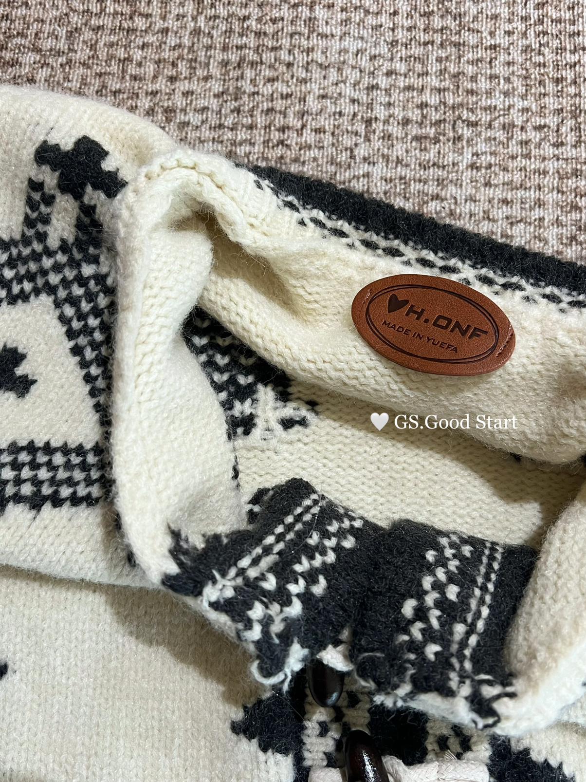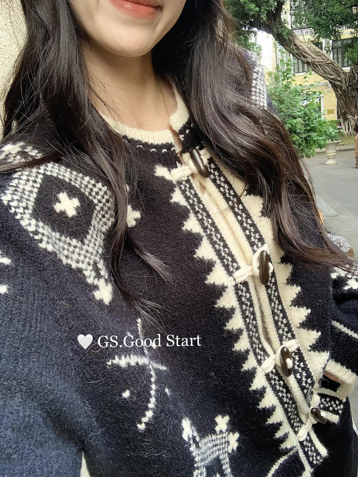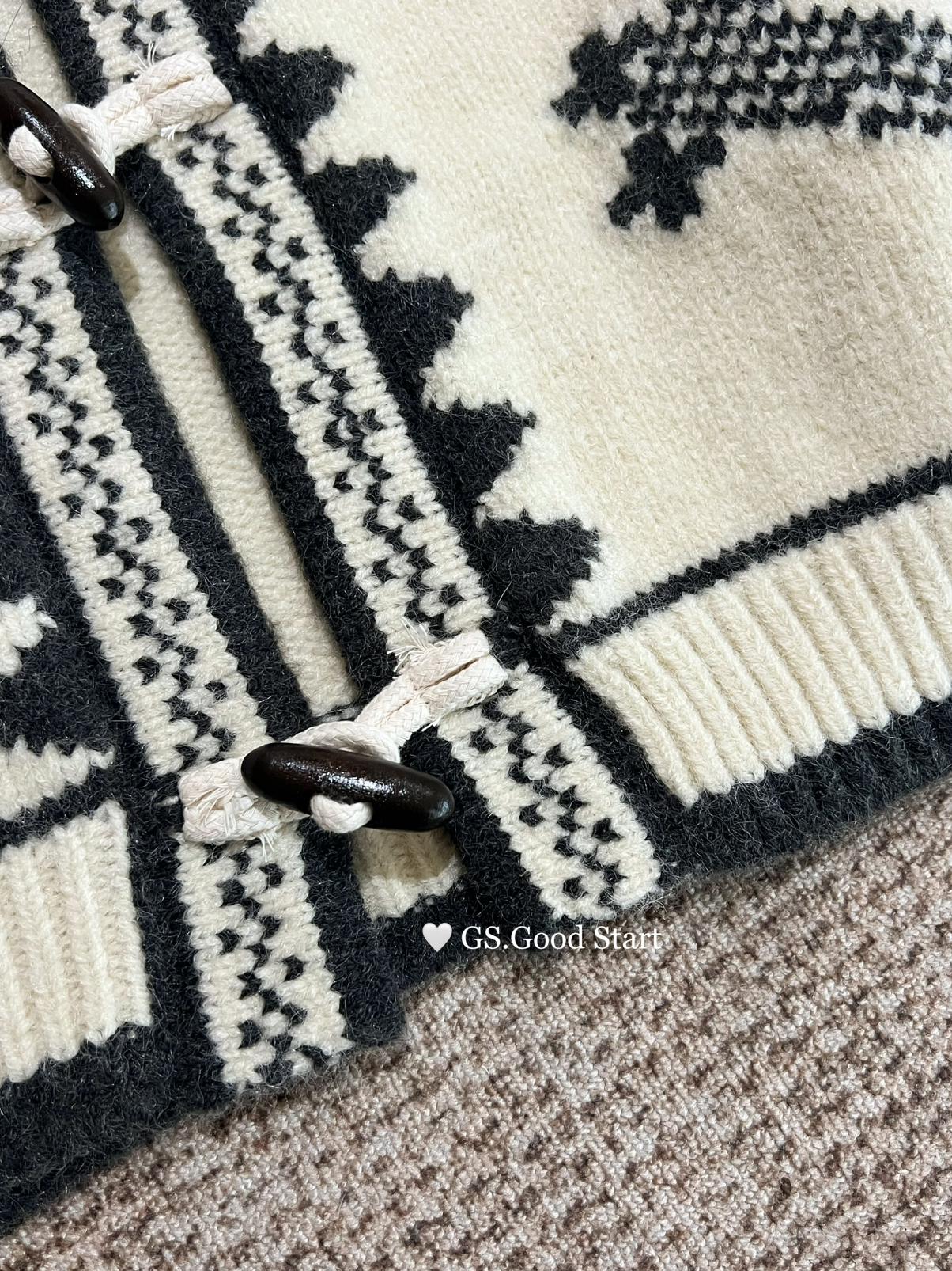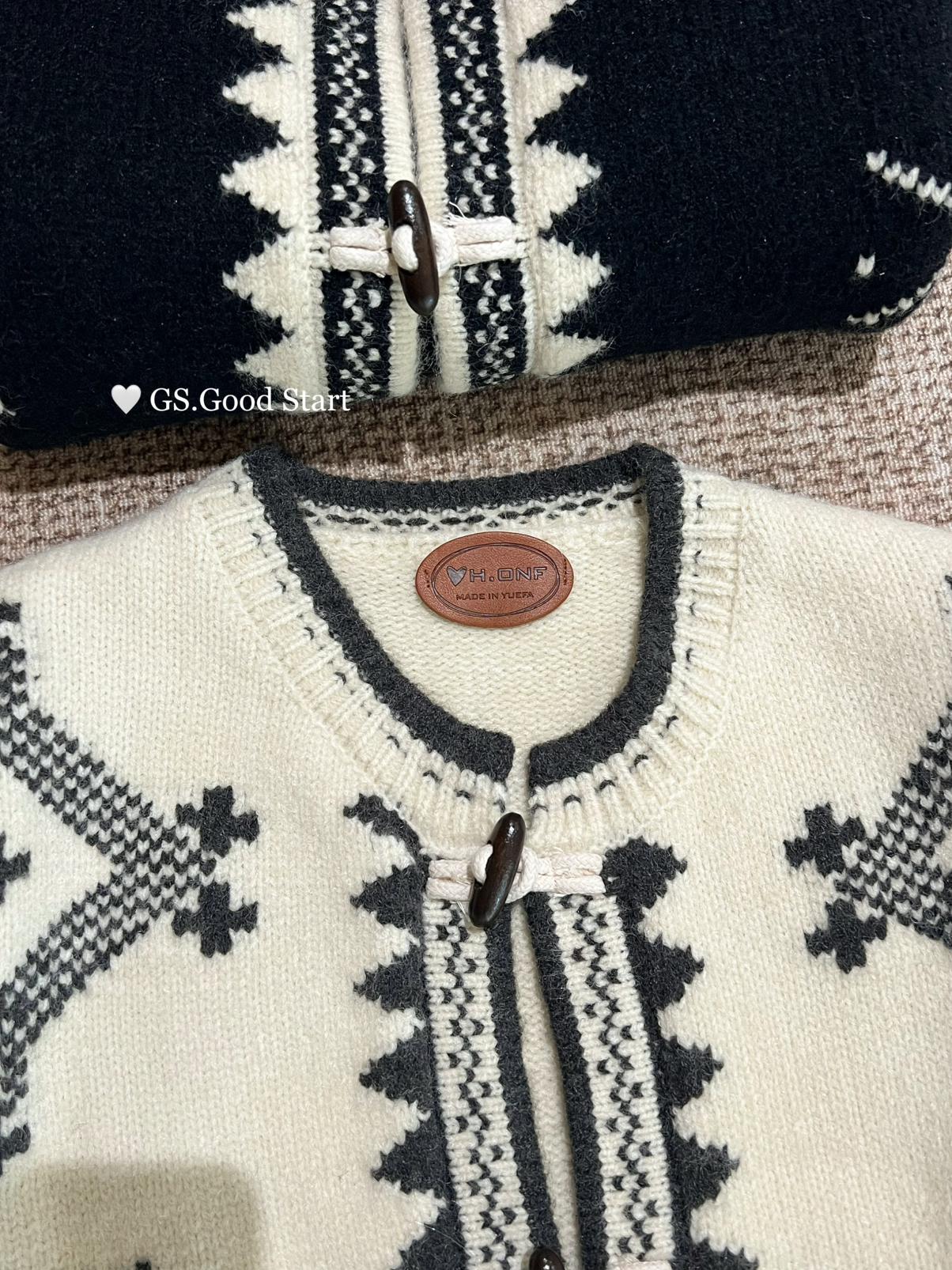 【C7895】自帶流量!vtg中古系列秒種草!冬復古休閒費爾島提花牛角扣保暖毛衣