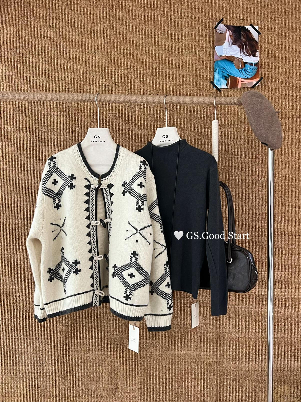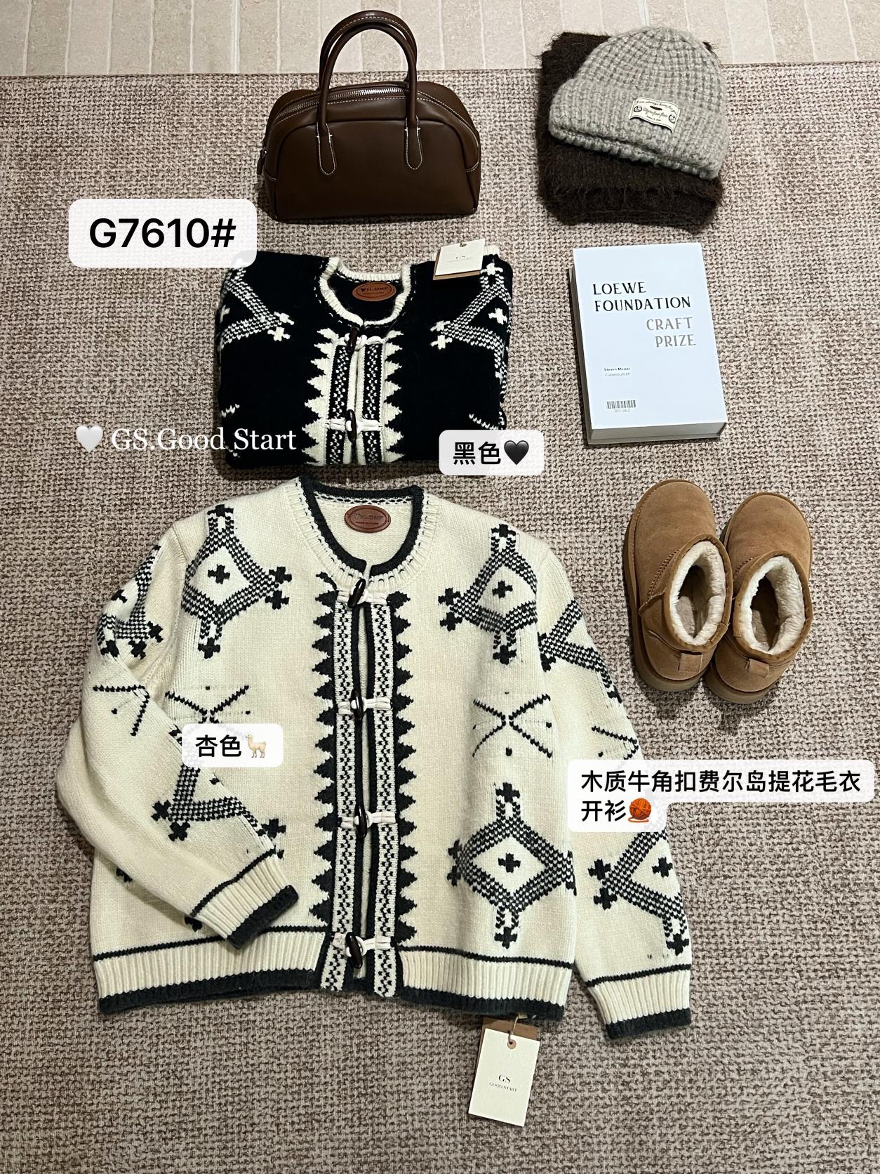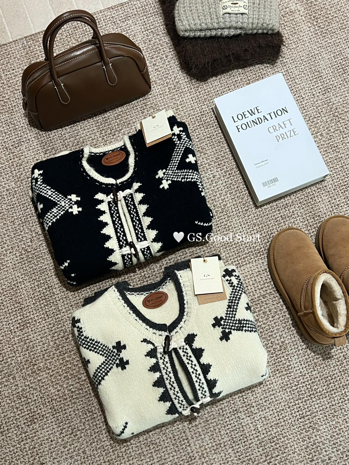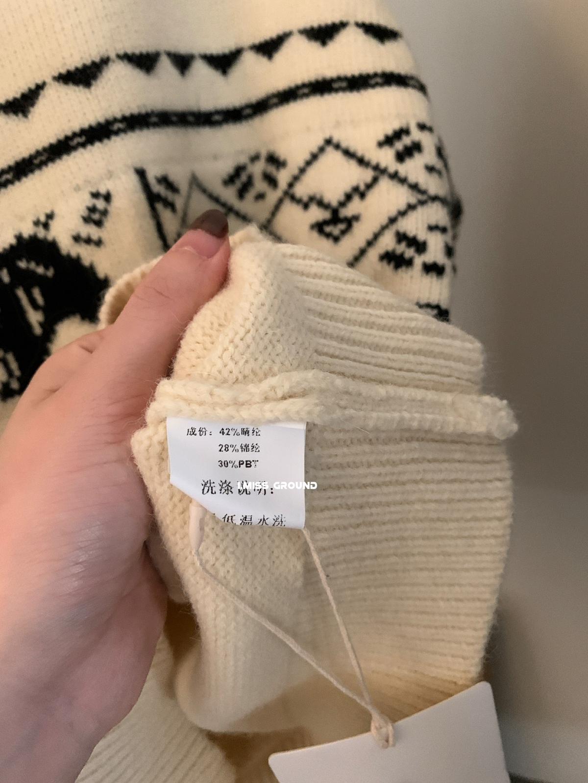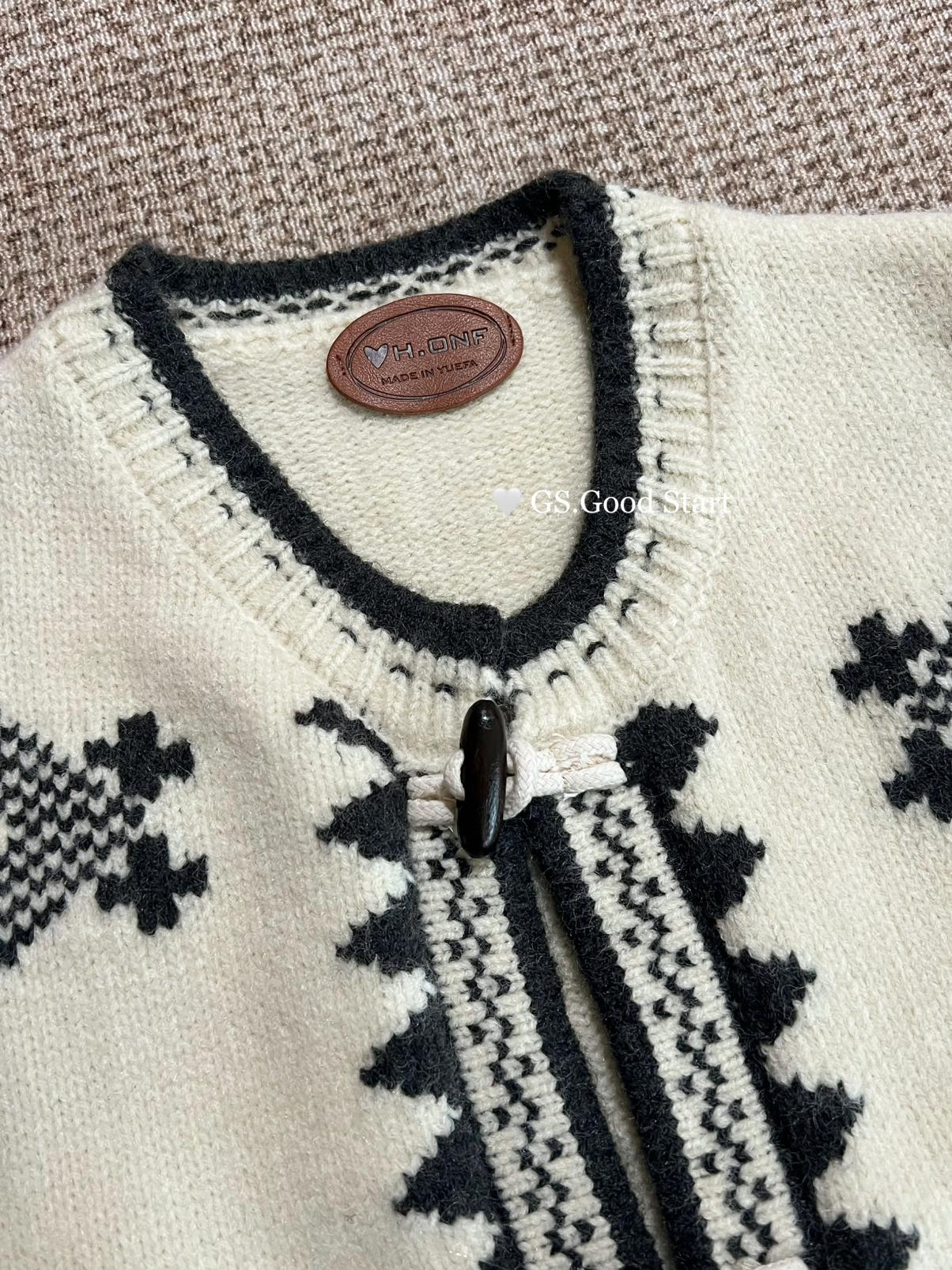 【C7895】自帶流量!vtg中古系列秒種草!冬復古休閒費爾島提花牛角扣保暖毛衣
