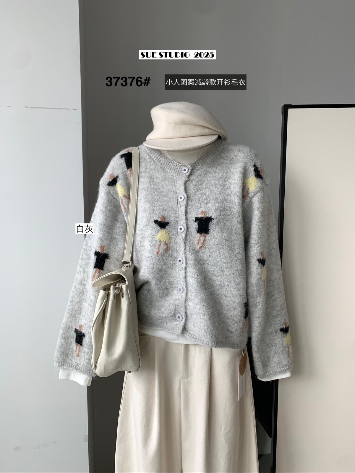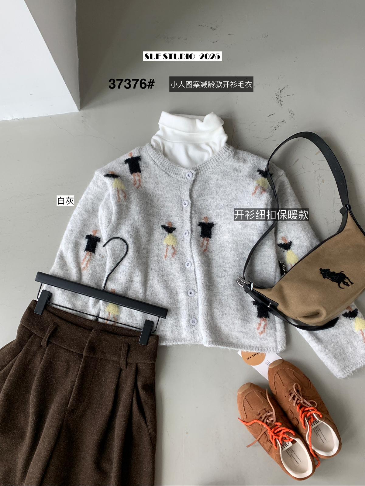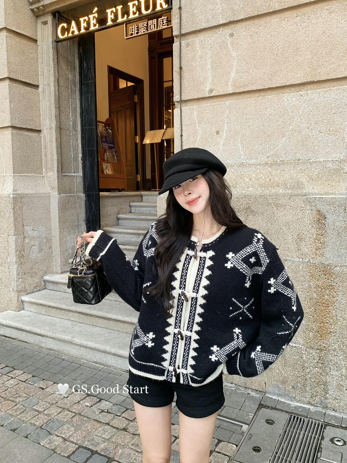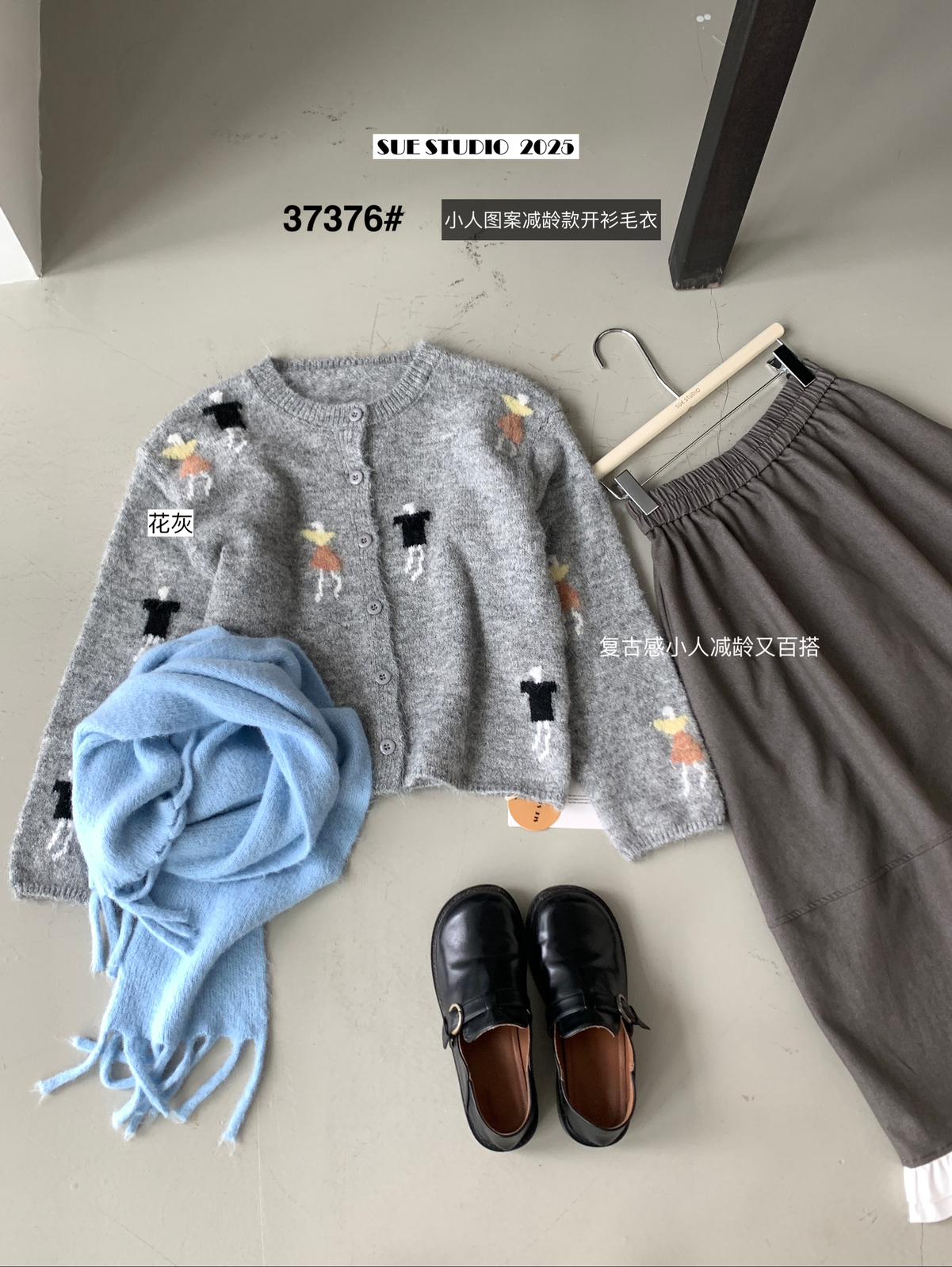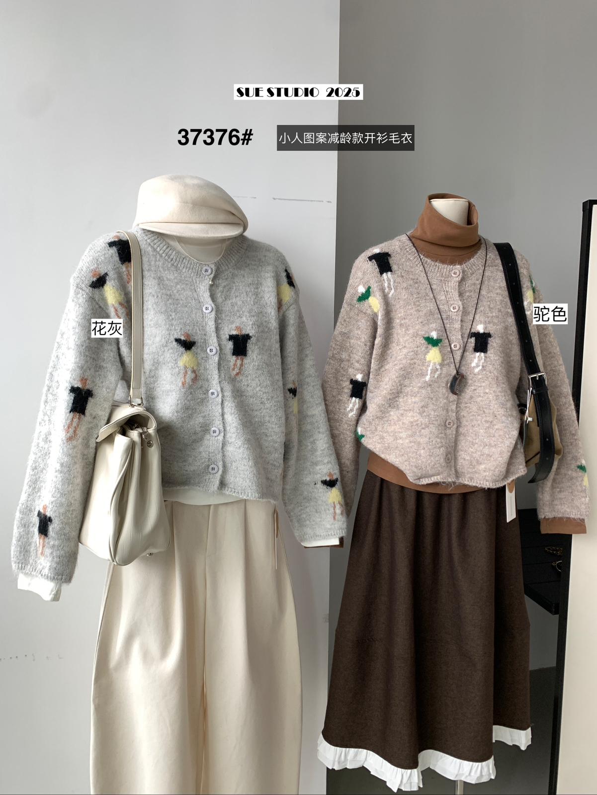 【C7928】韓系復古小人拼色圖案保暖開衫保暖毛衣