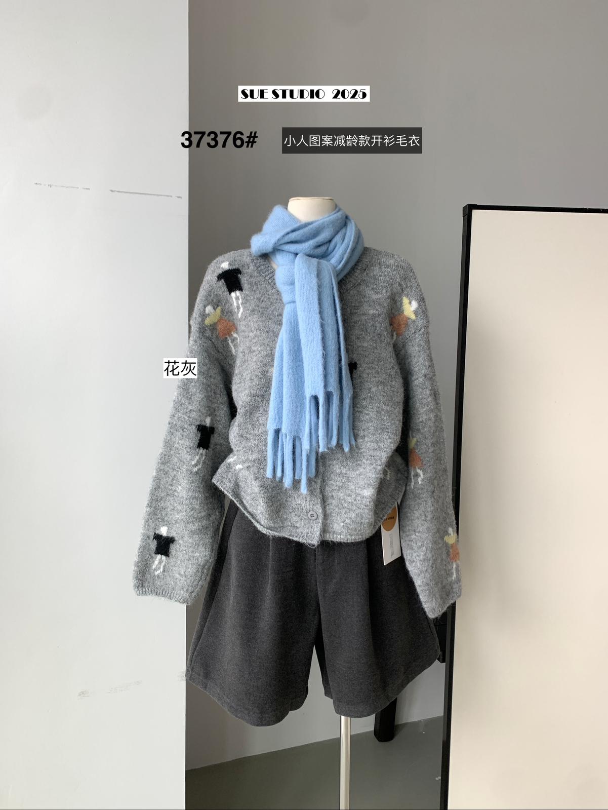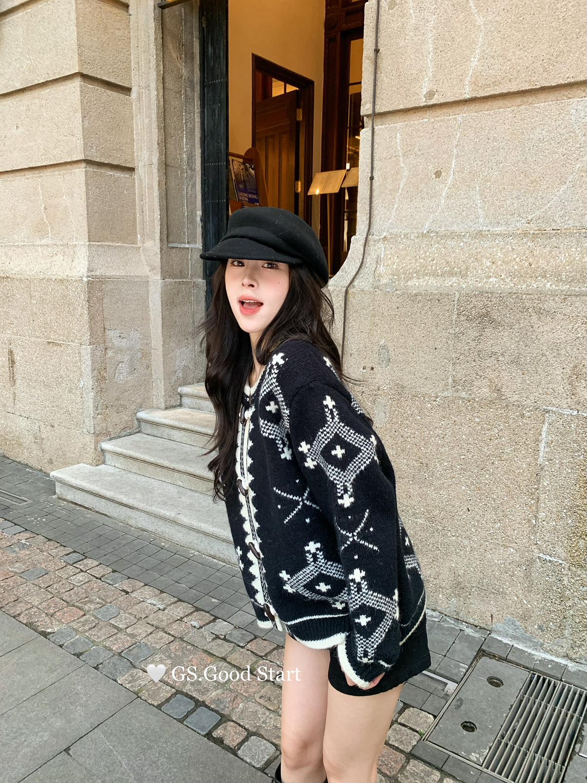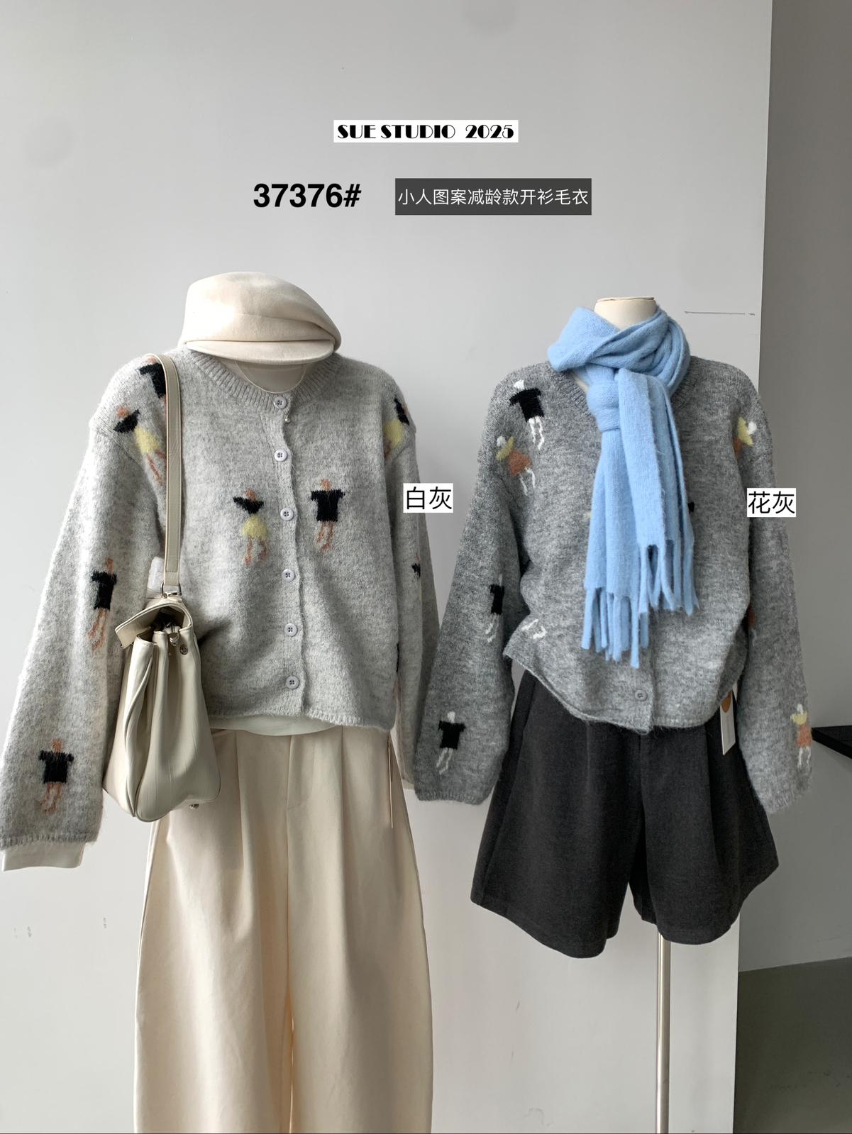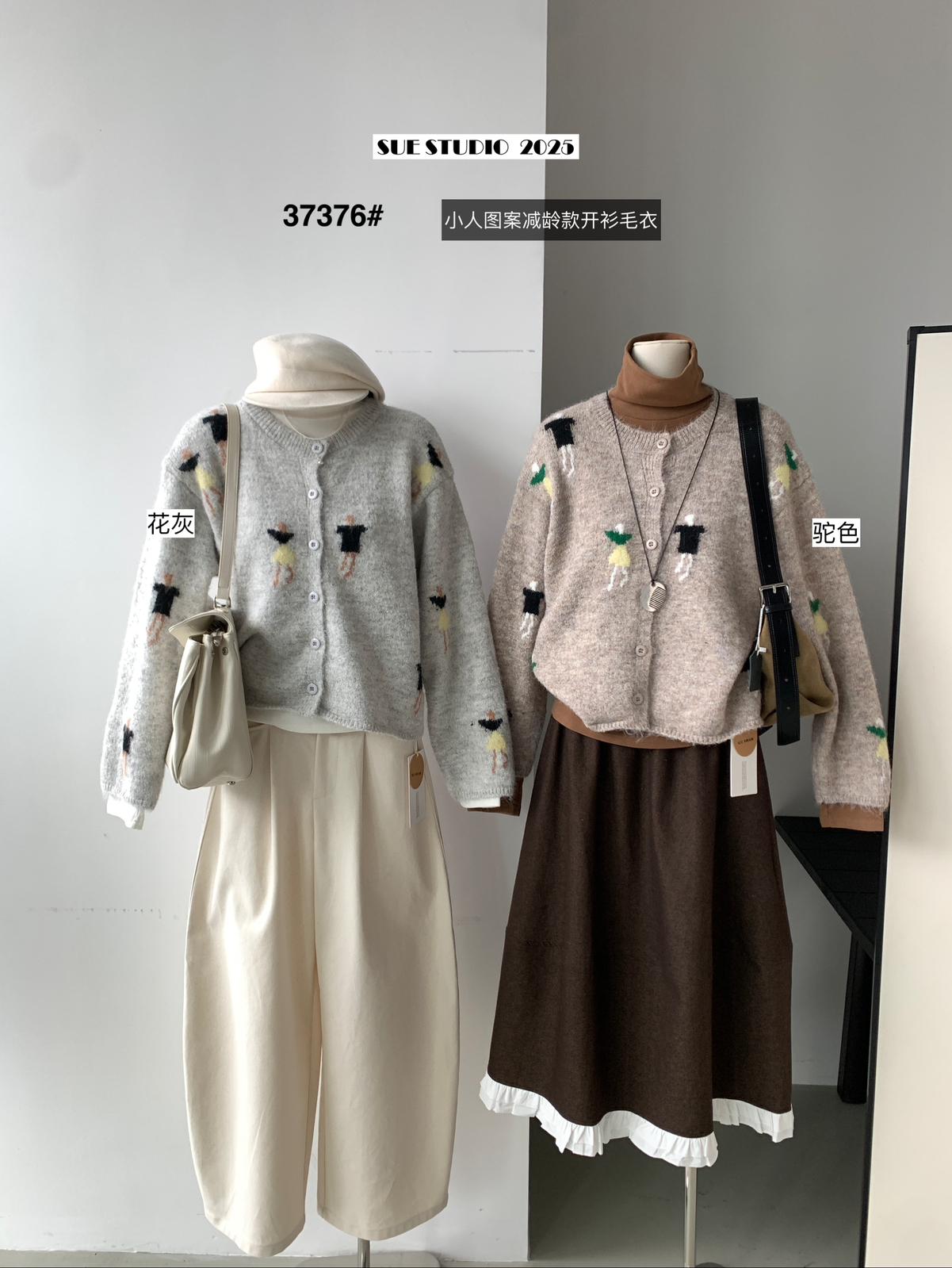 【C7928】韓系復古小人拼色圖案保暖開衫保暖毛衣