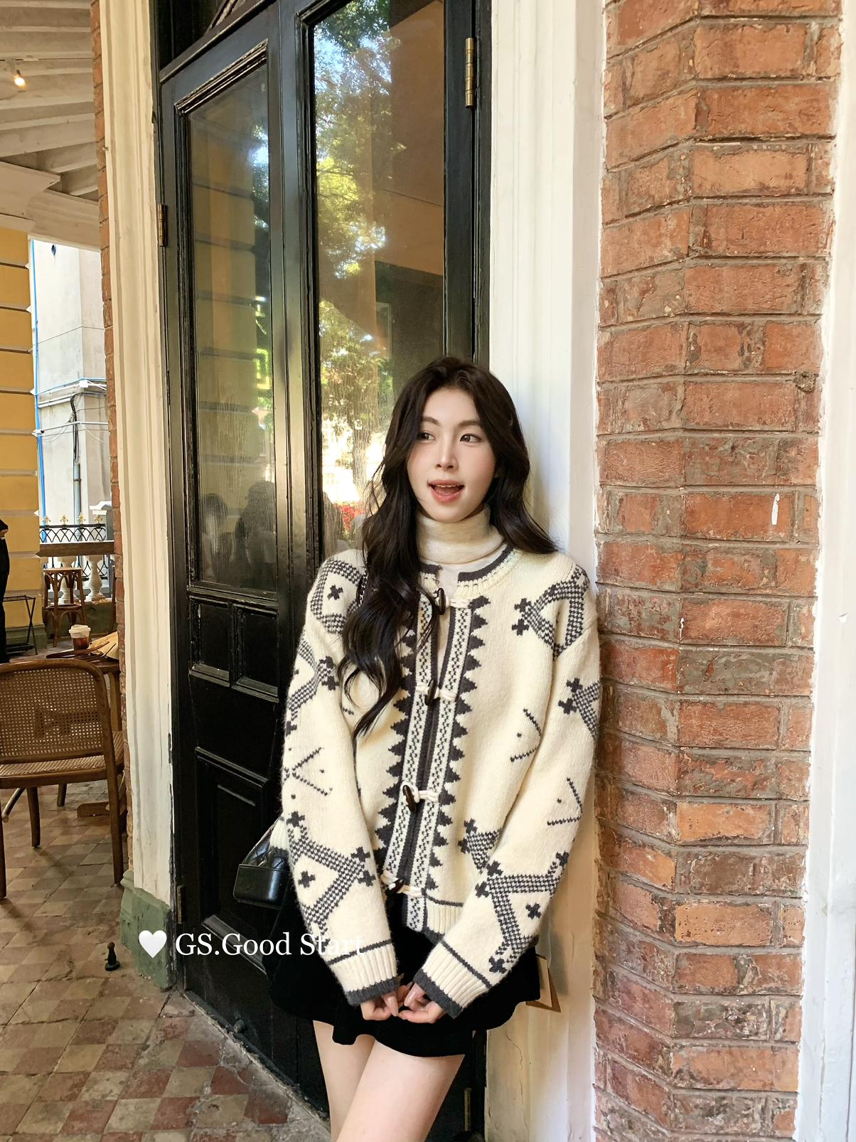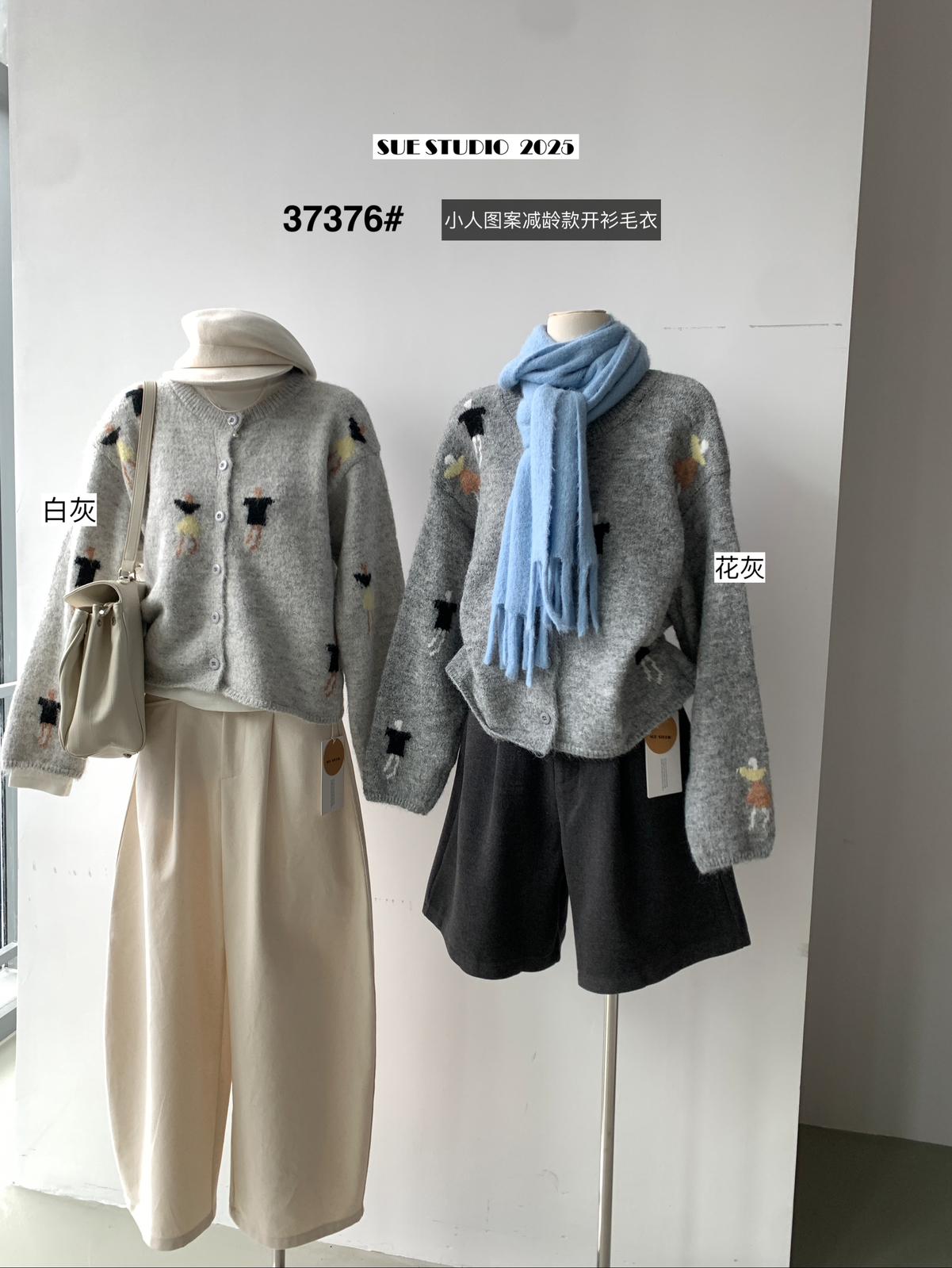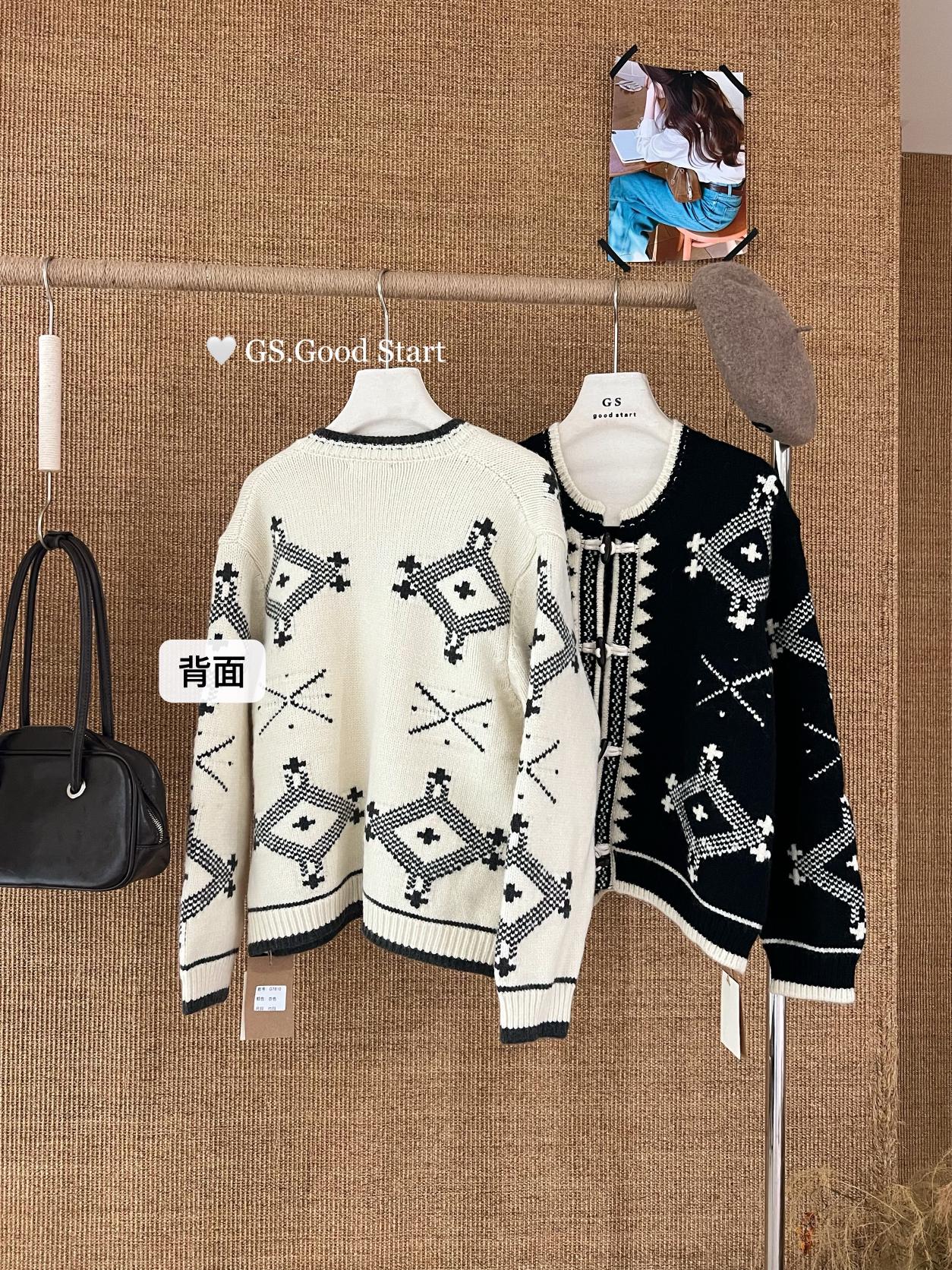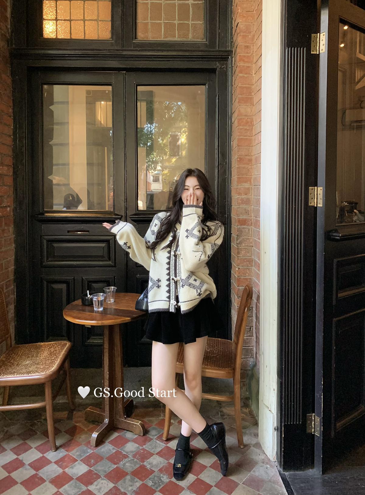 【C7928】韓系復古小人拼色圖案保暖開衫保暖毛衣