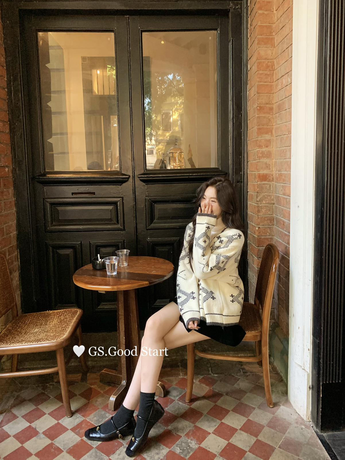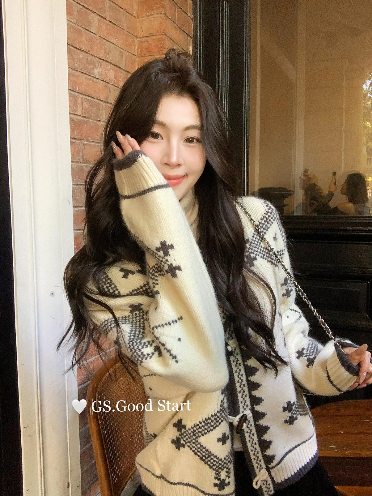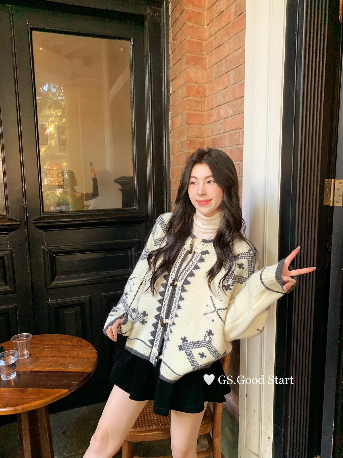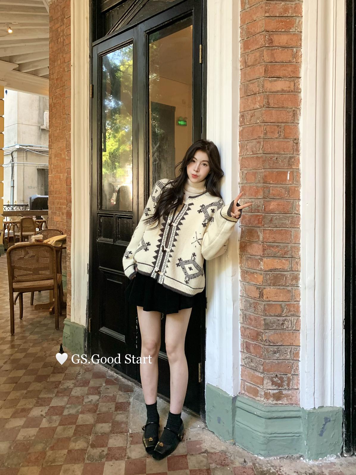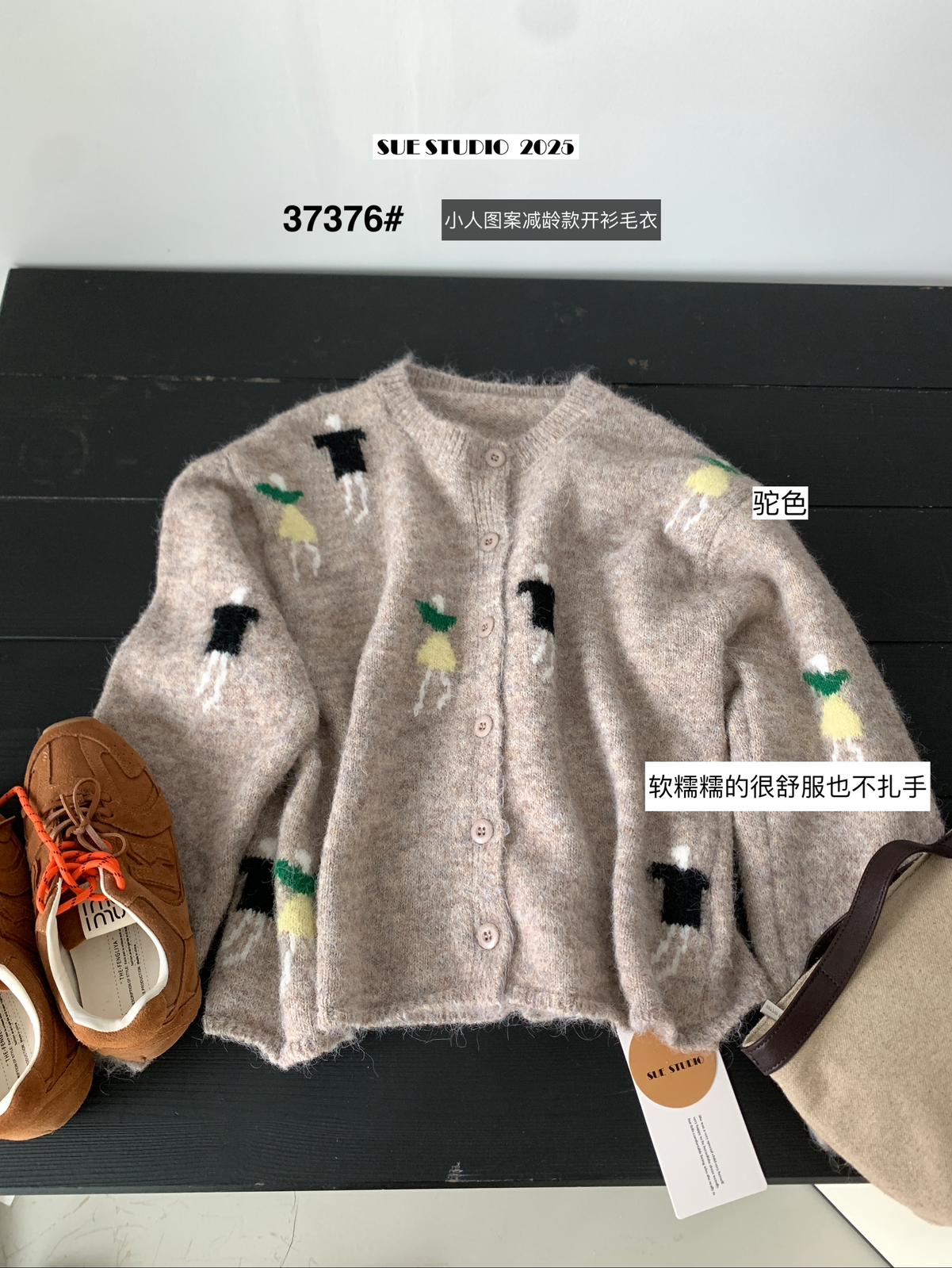 【C7928】韓系復古小人拼色圖案保暖開衫保暖毛衣