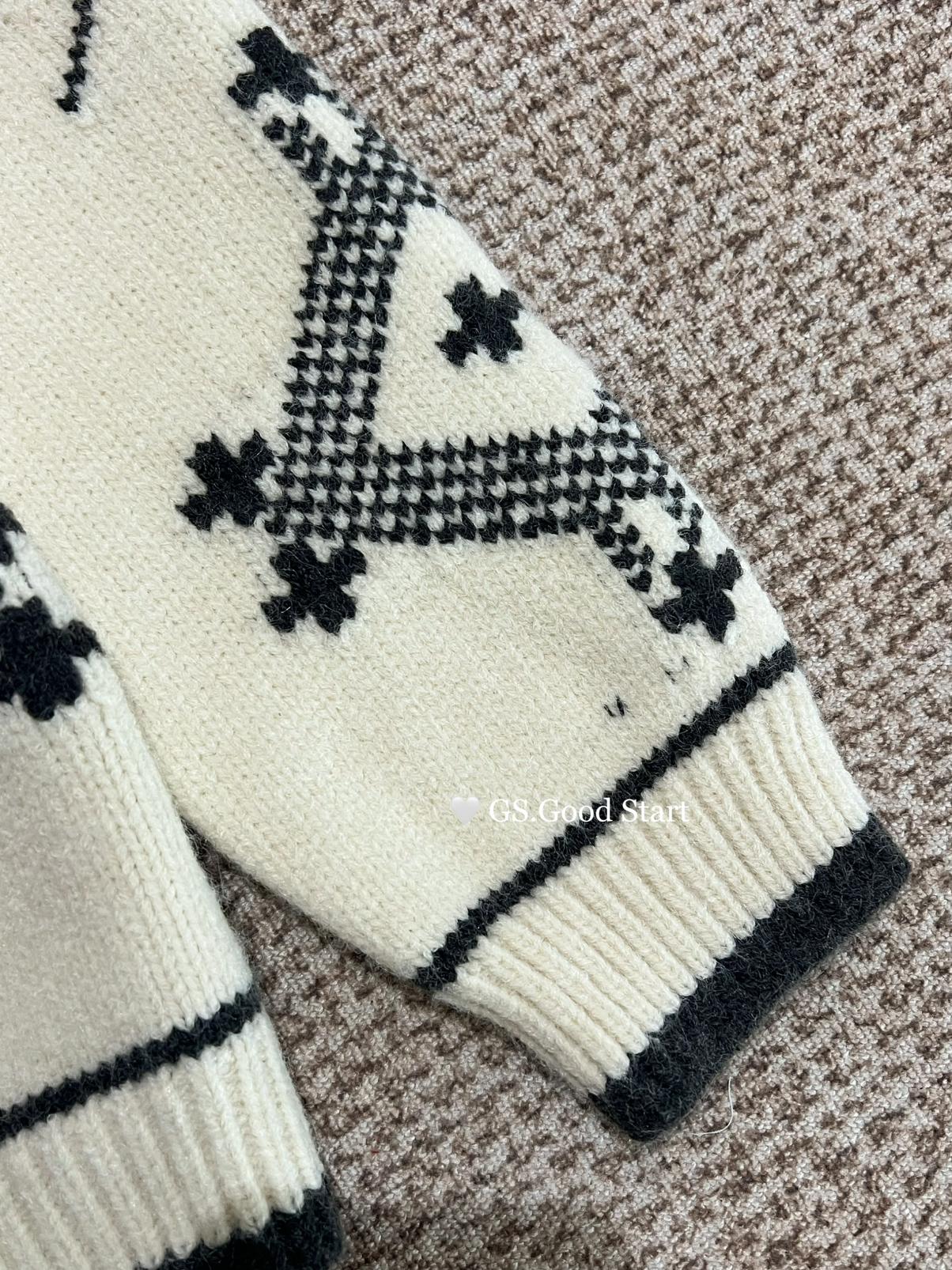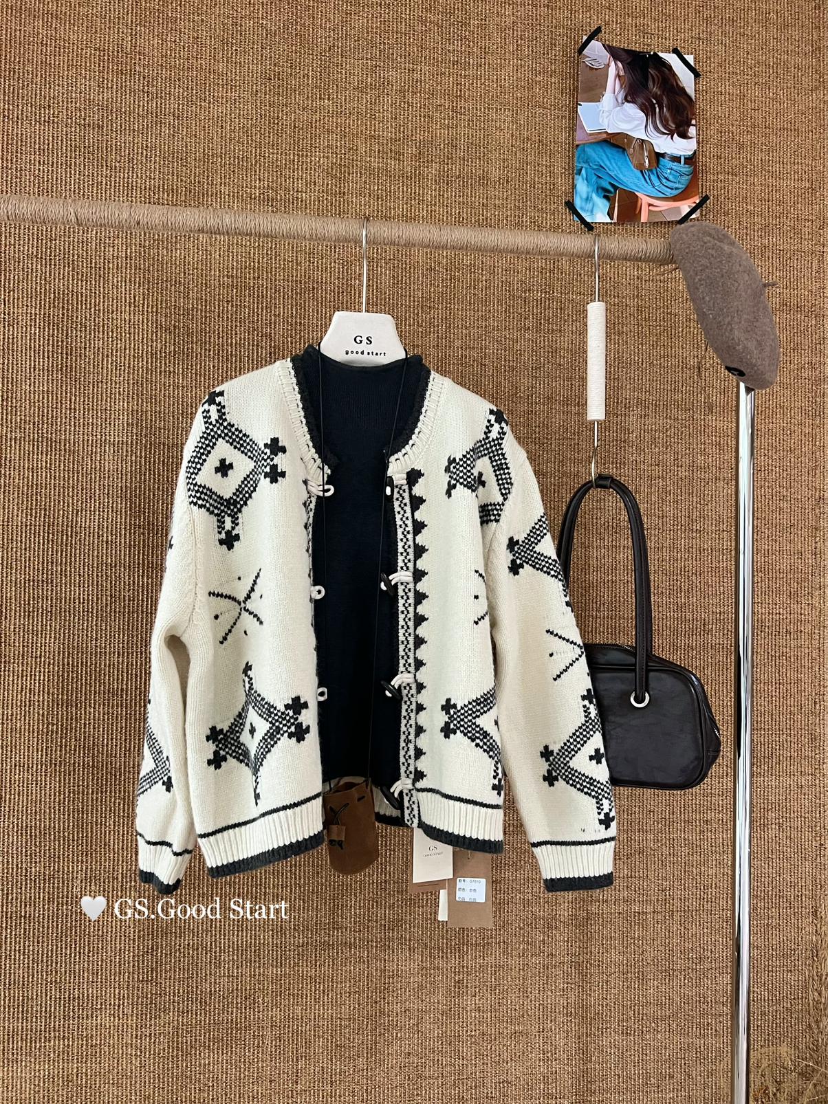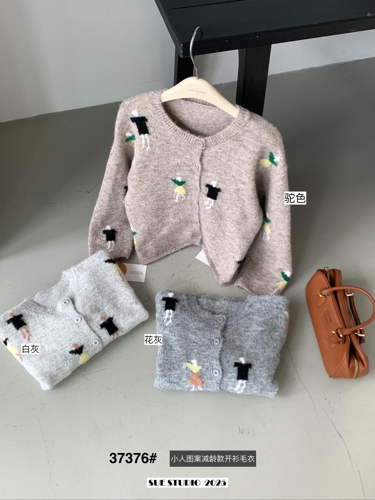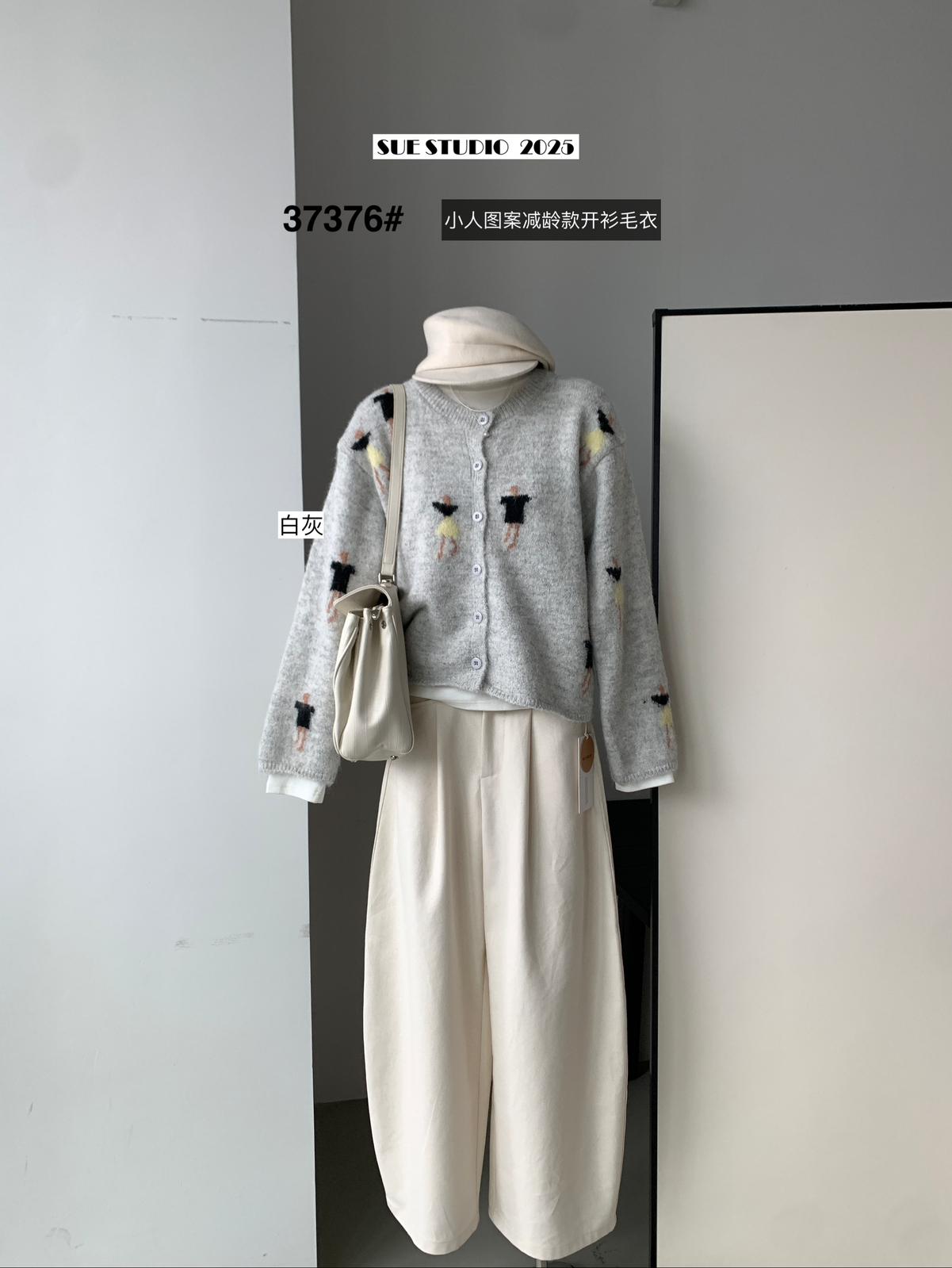 【C7928】韓系復古小人拼色圖案保暖開衫保暖毛衣
