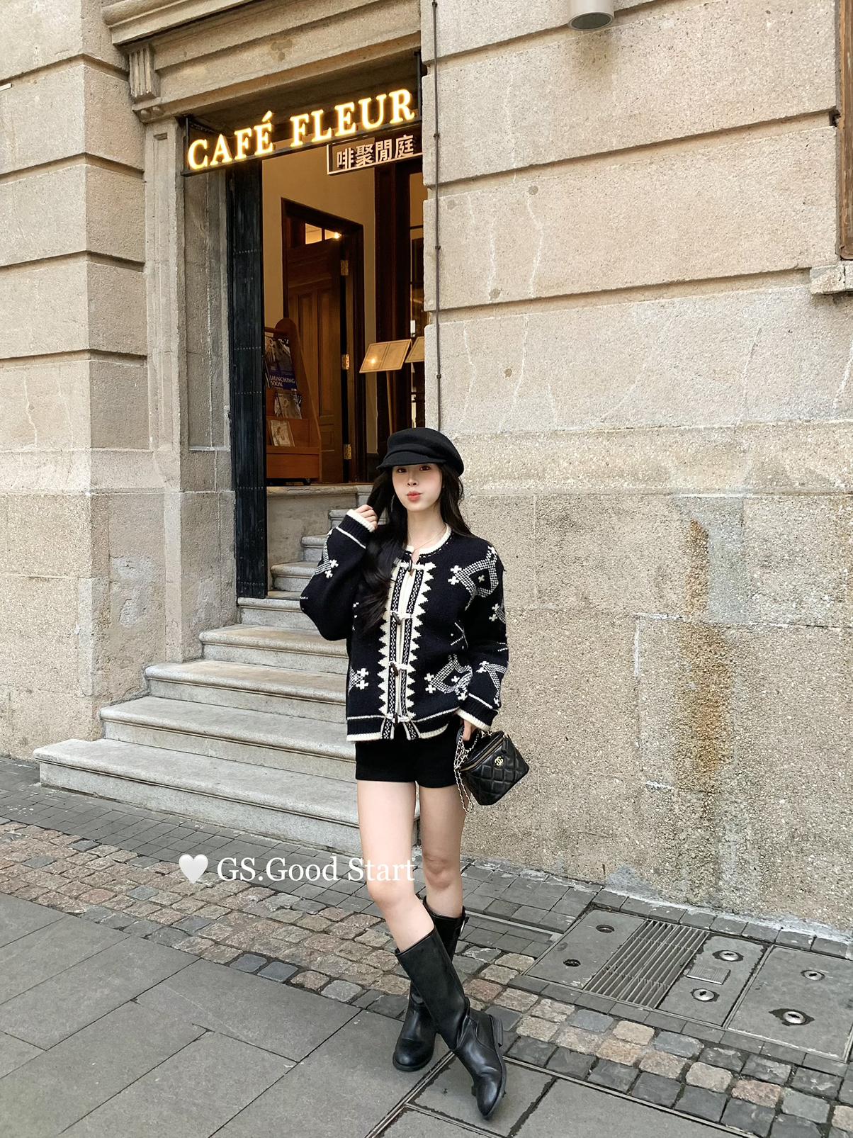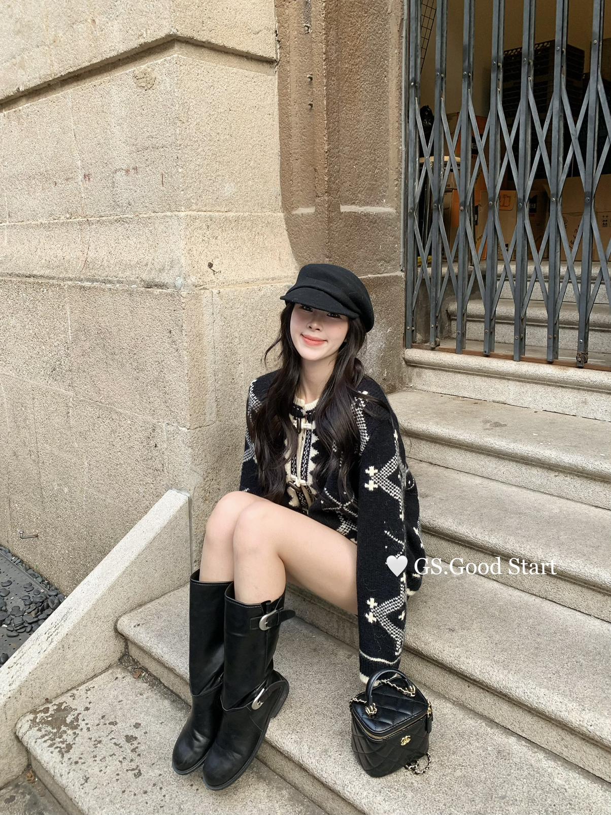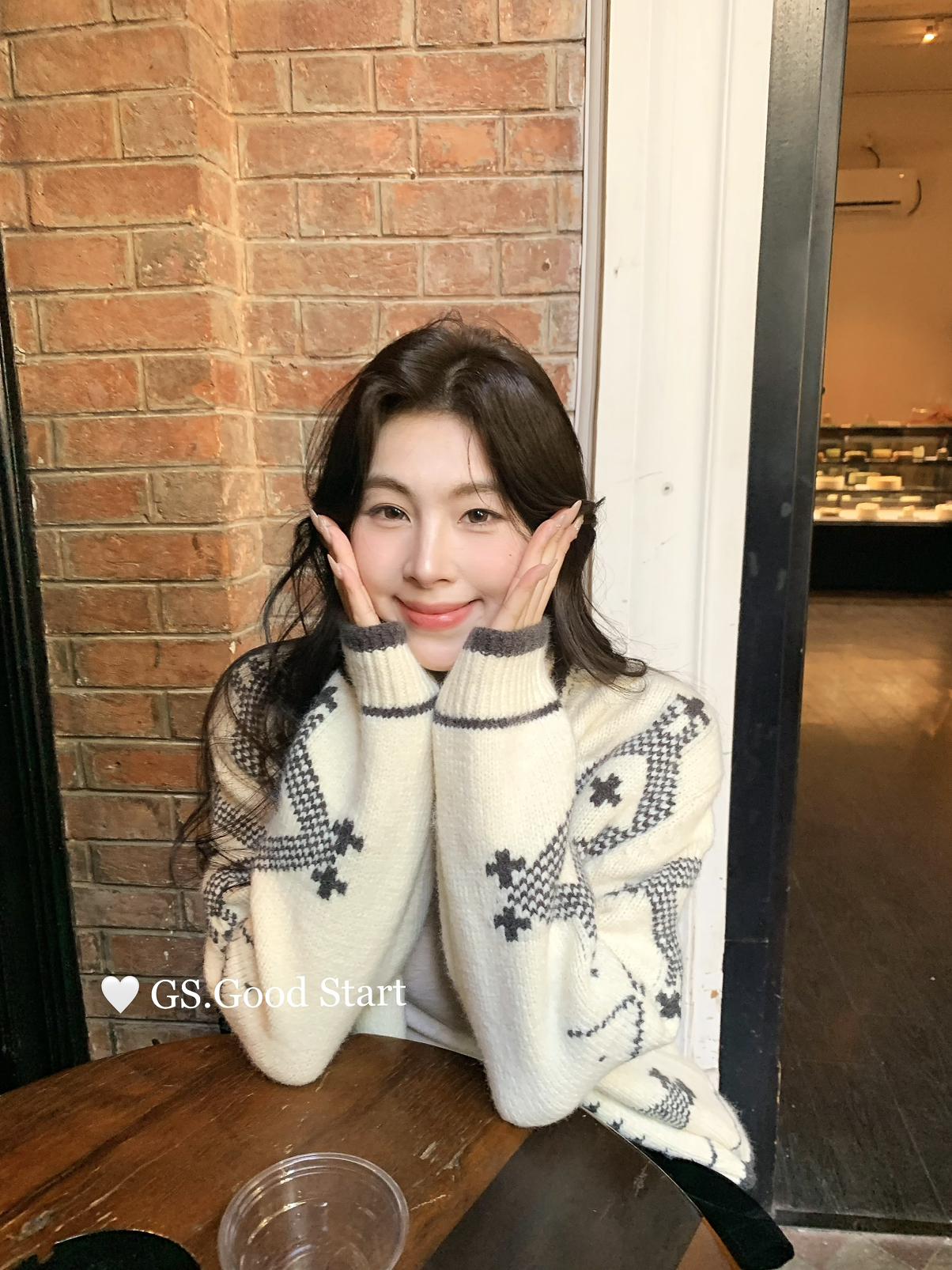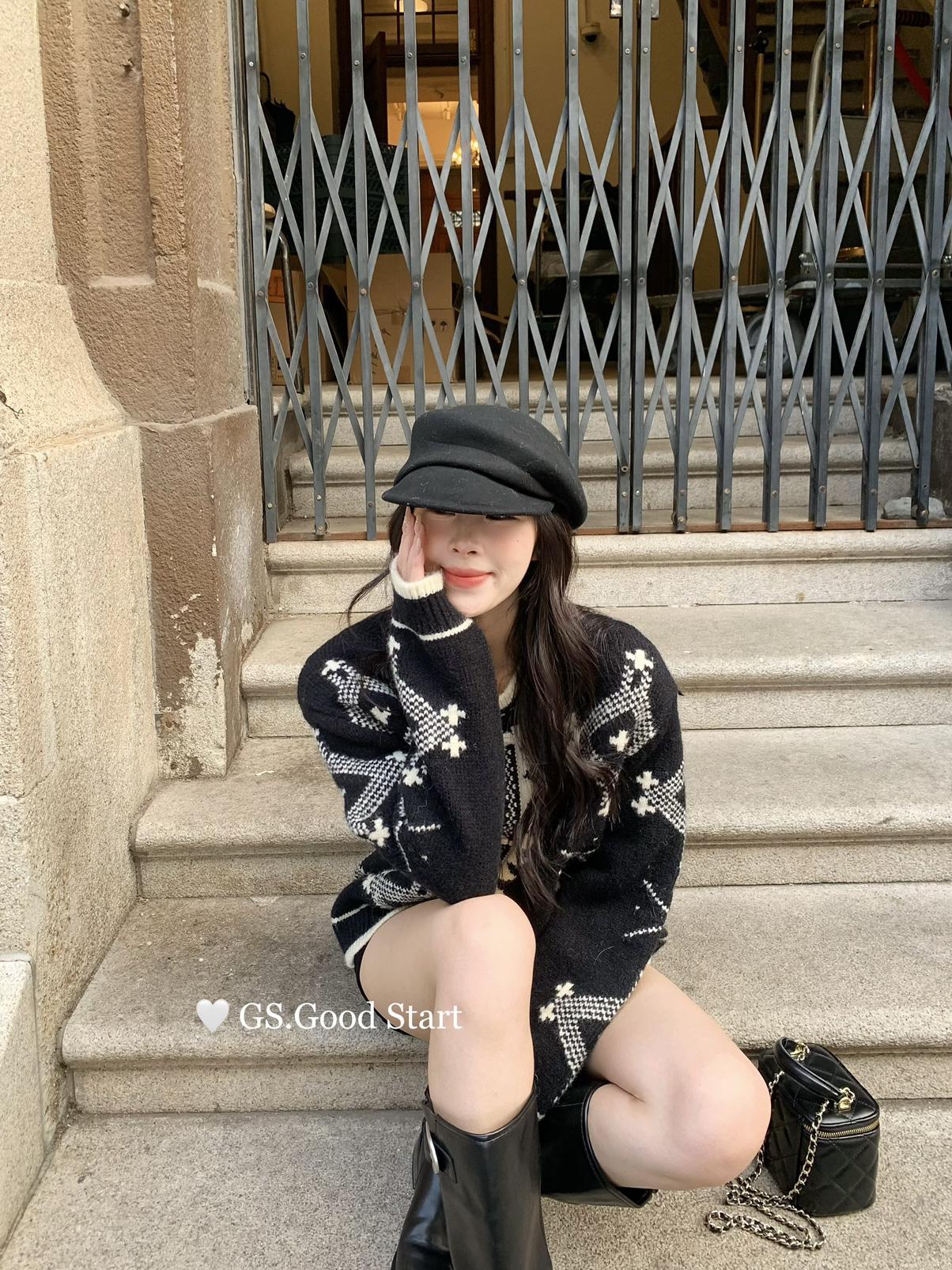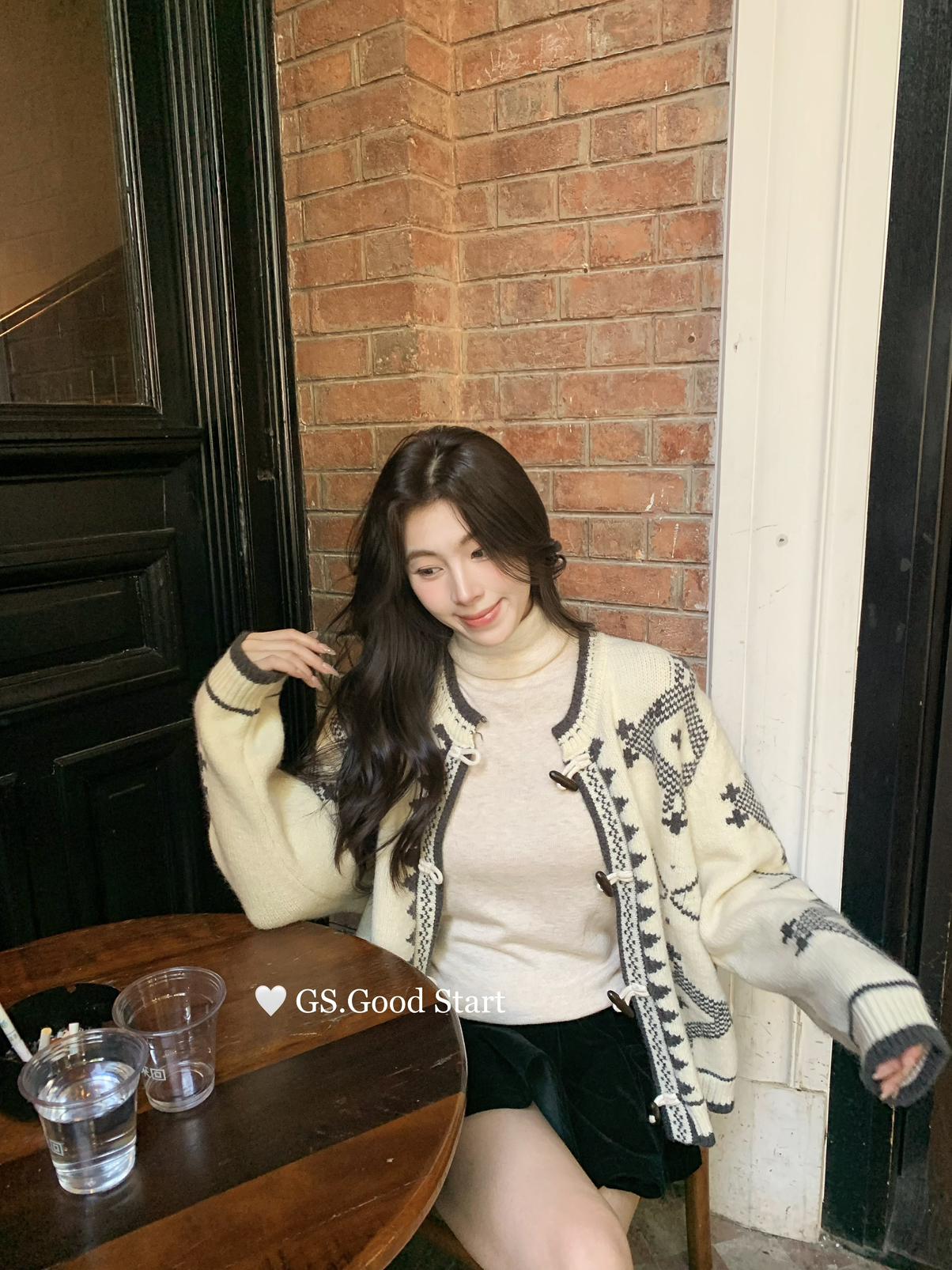 【C7928】韓系復古小人拼色圖案保暖開衫保暖毛衣