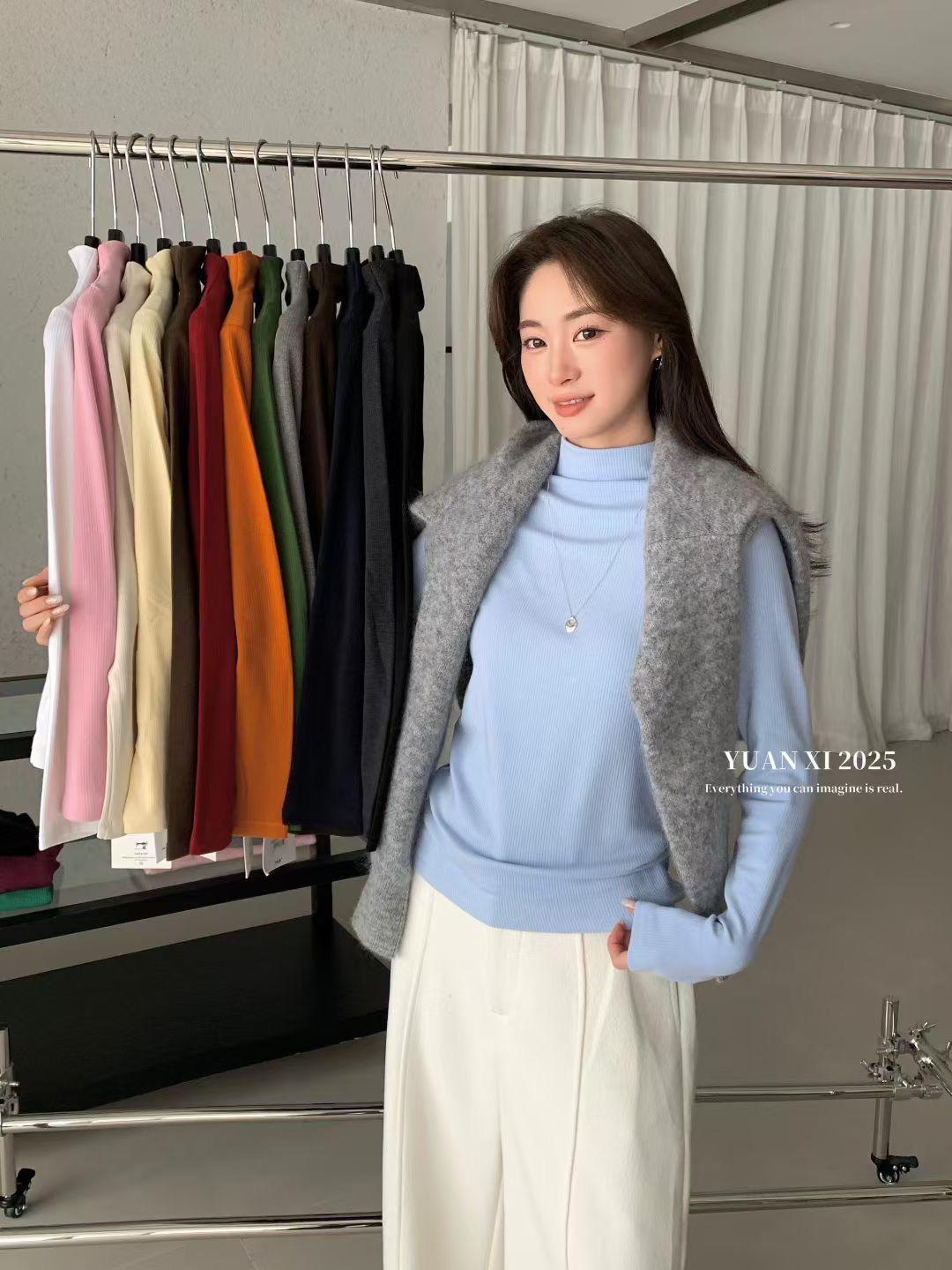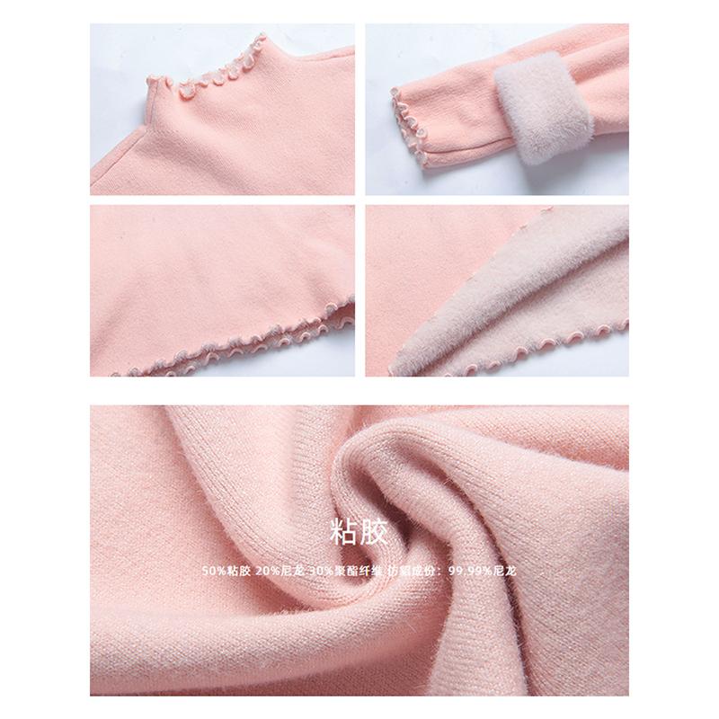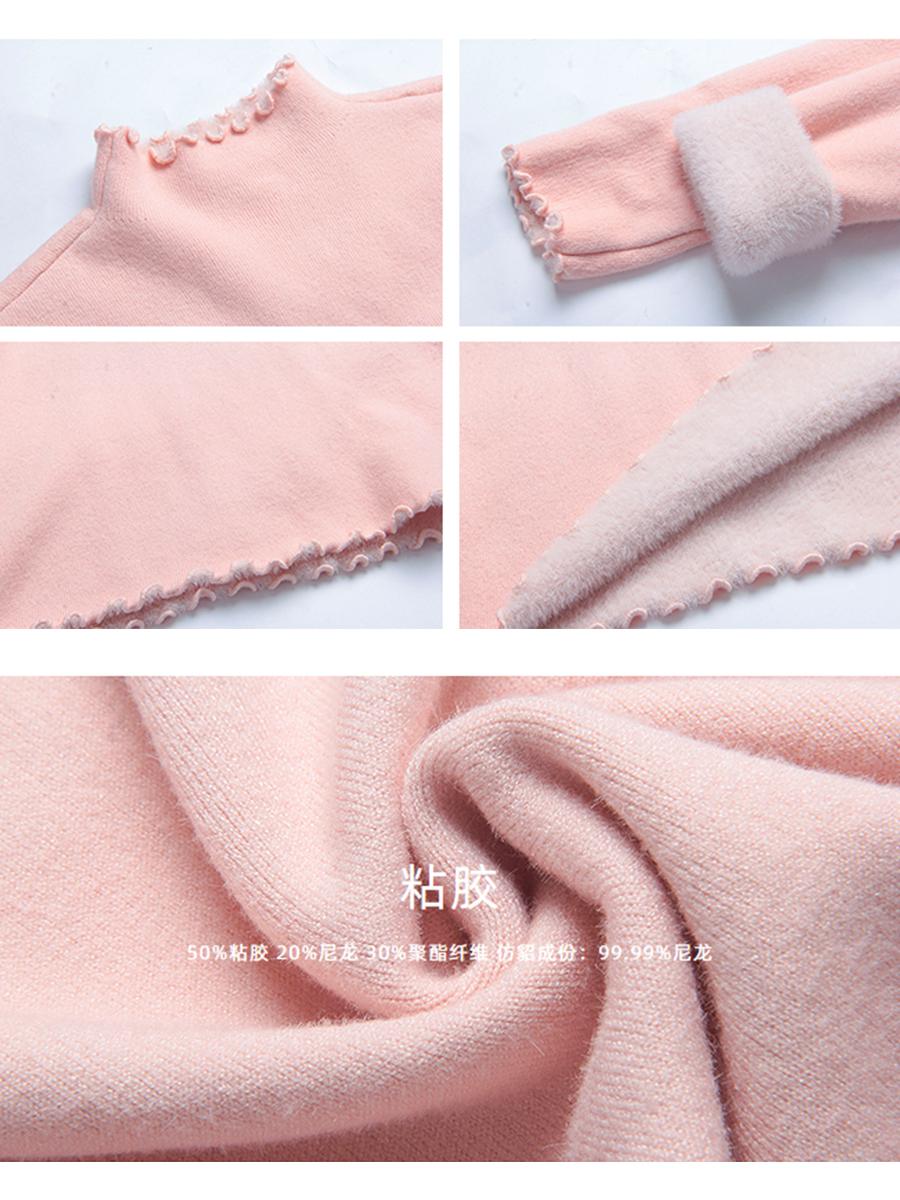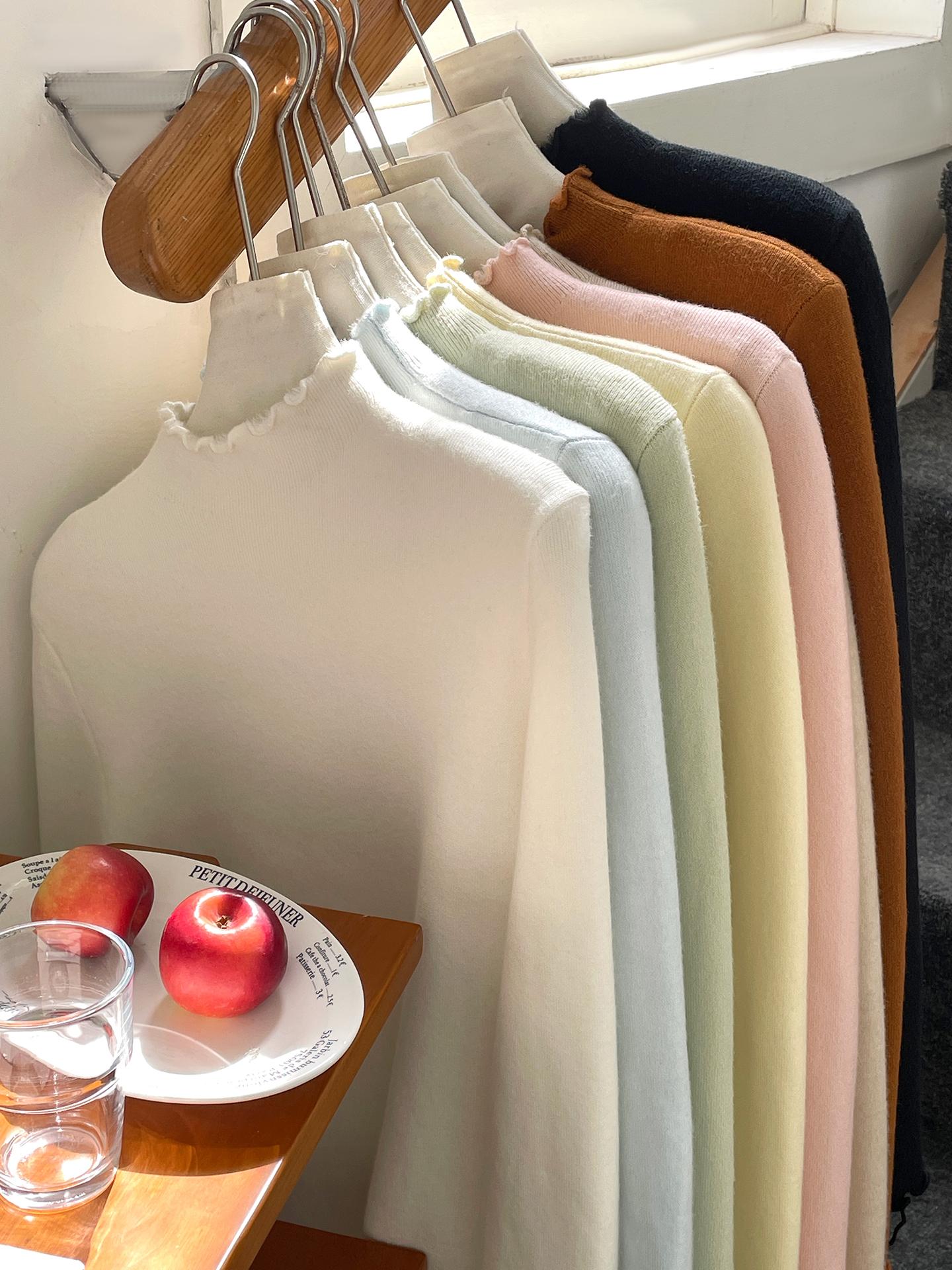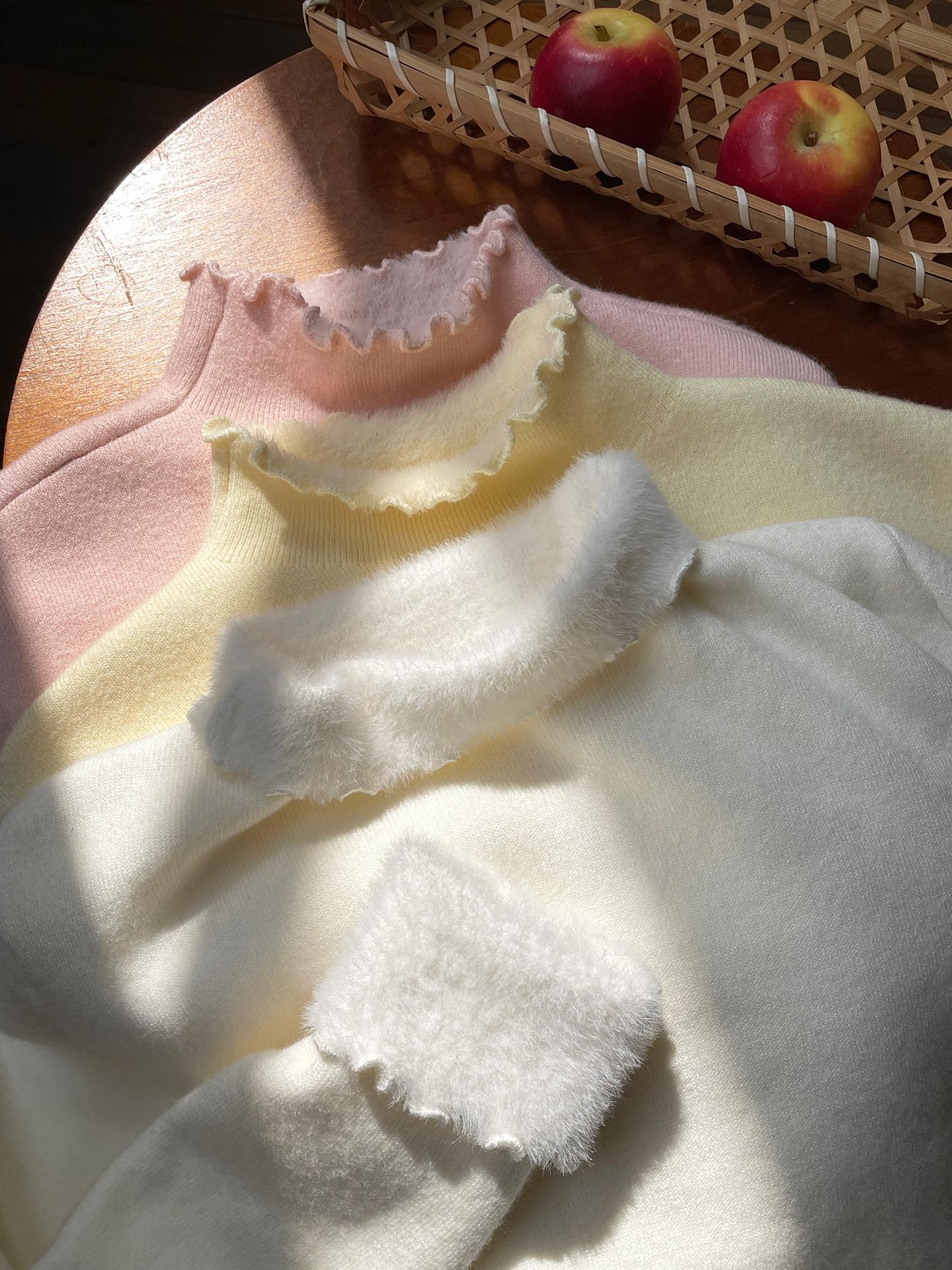 【C7924】冬上新!法式復古木耳邊加絨半高領內搭T恤打底衫