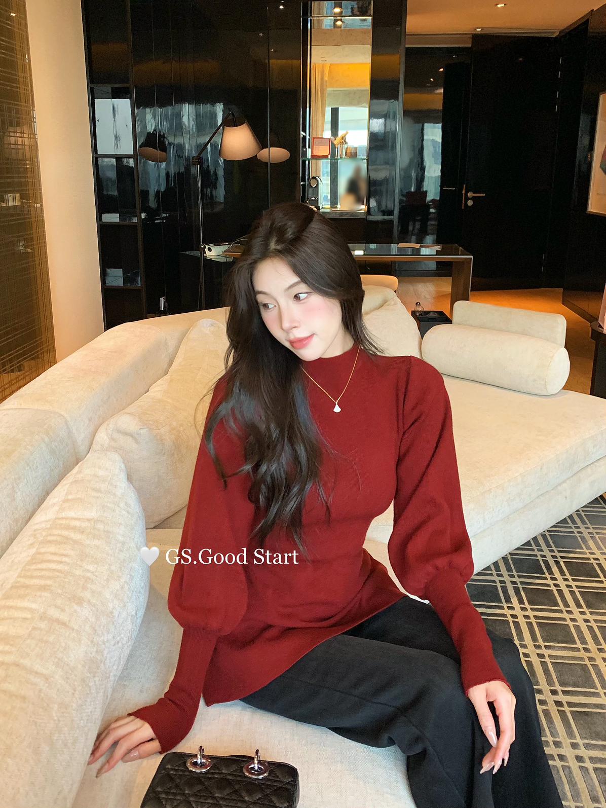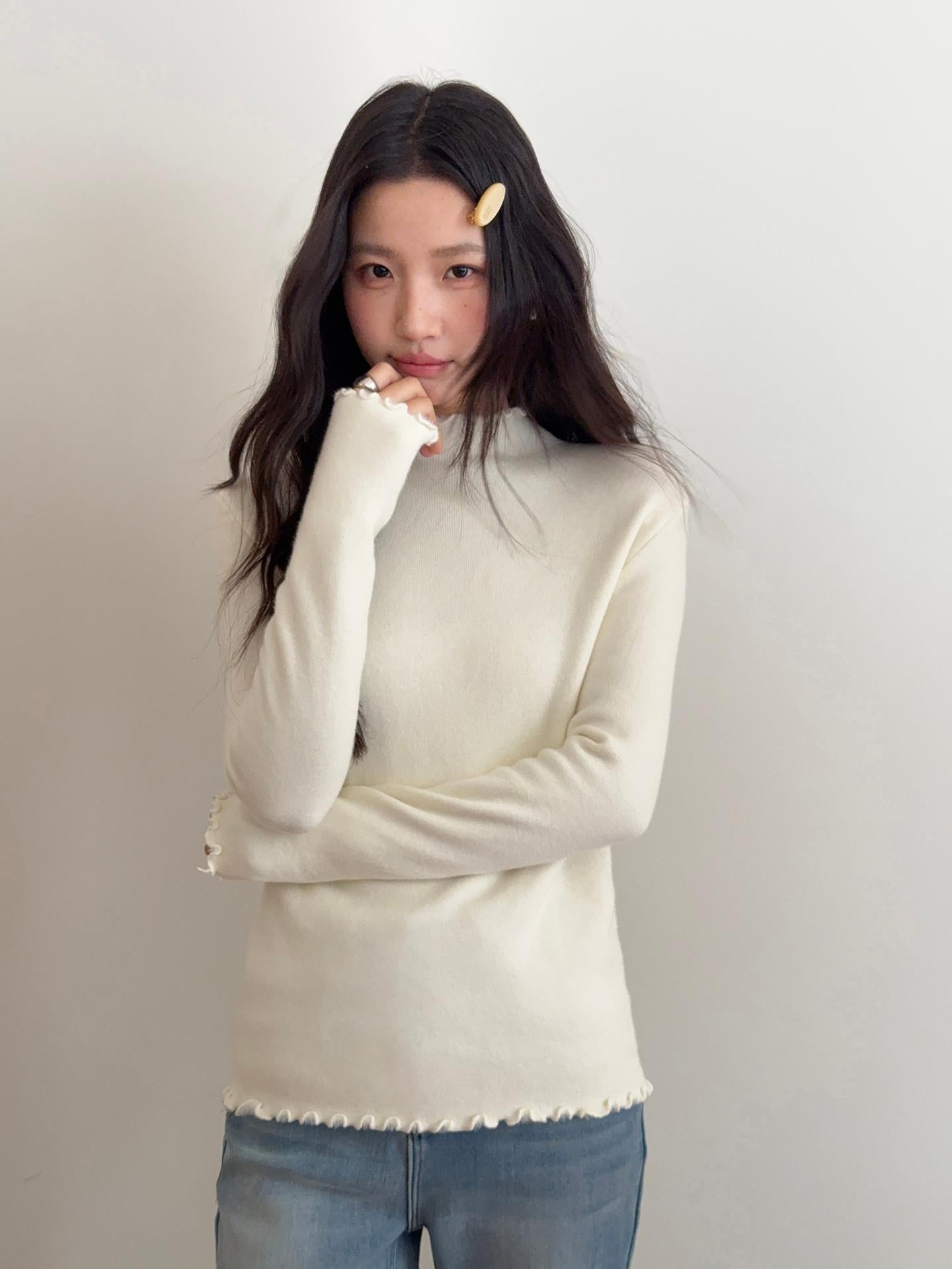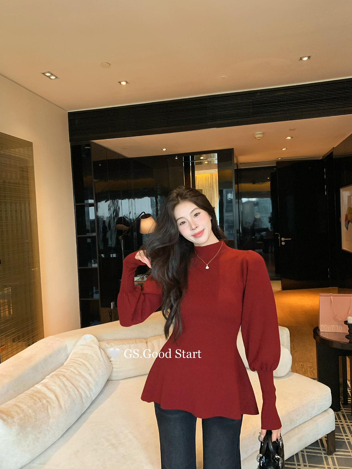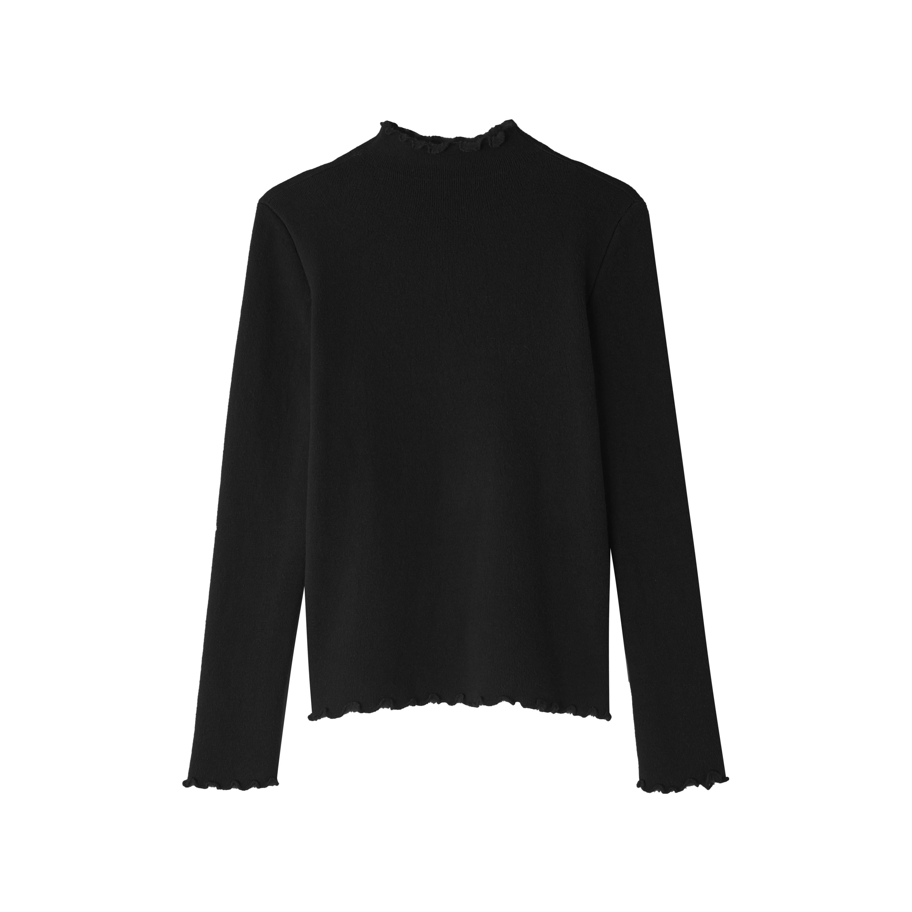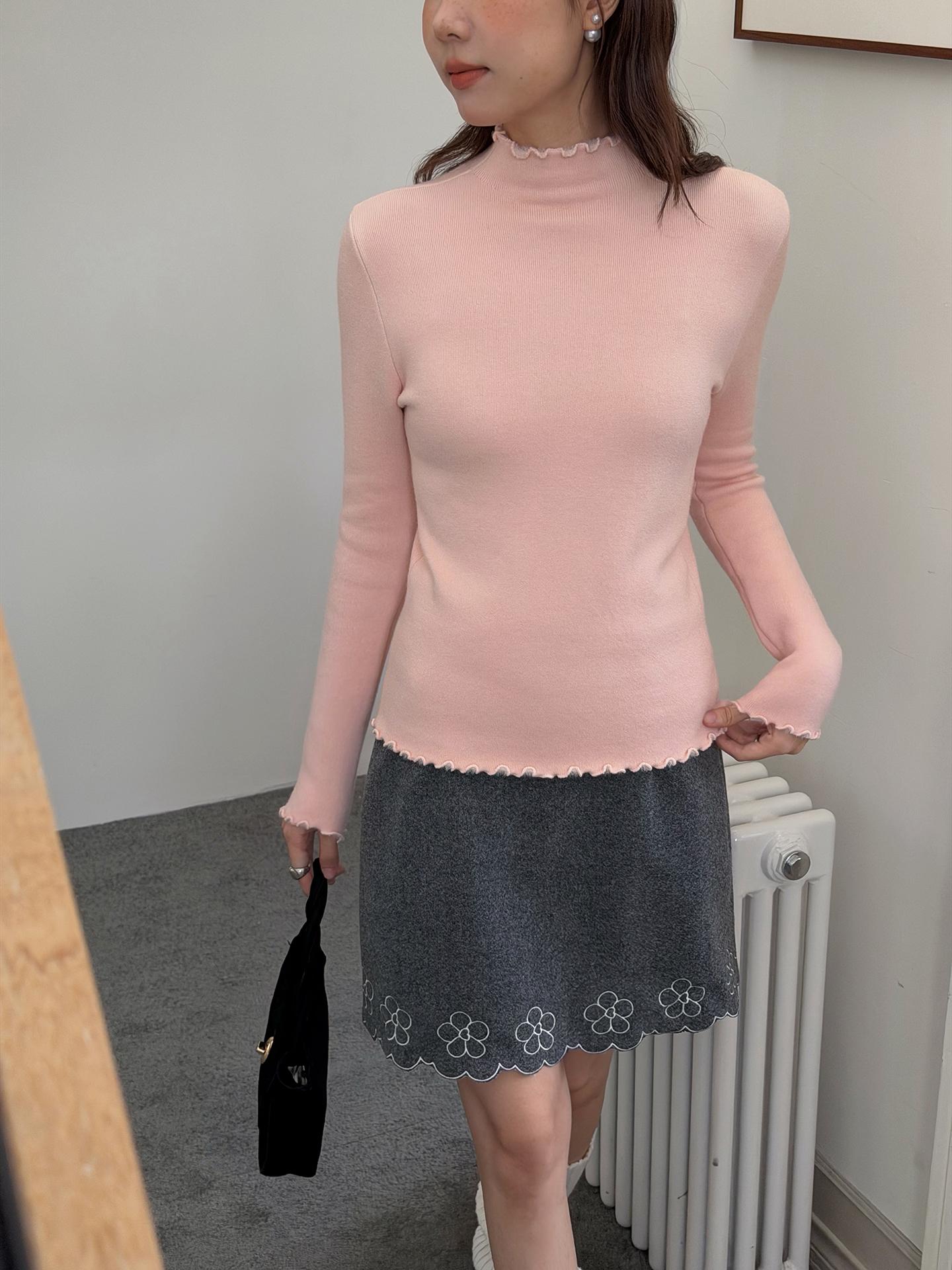 【C7924】冬上新!法式復古木耳邊加絨半高領內搭T恤打底衫
