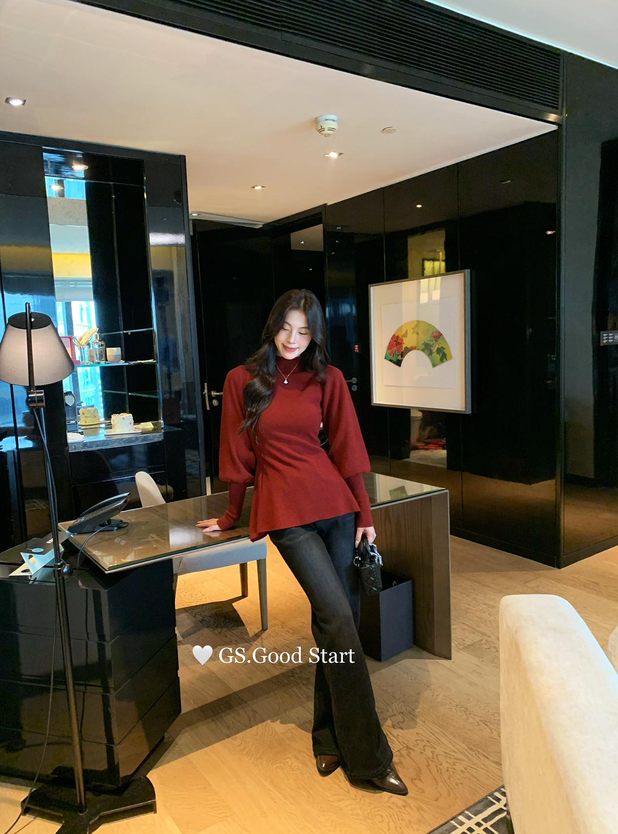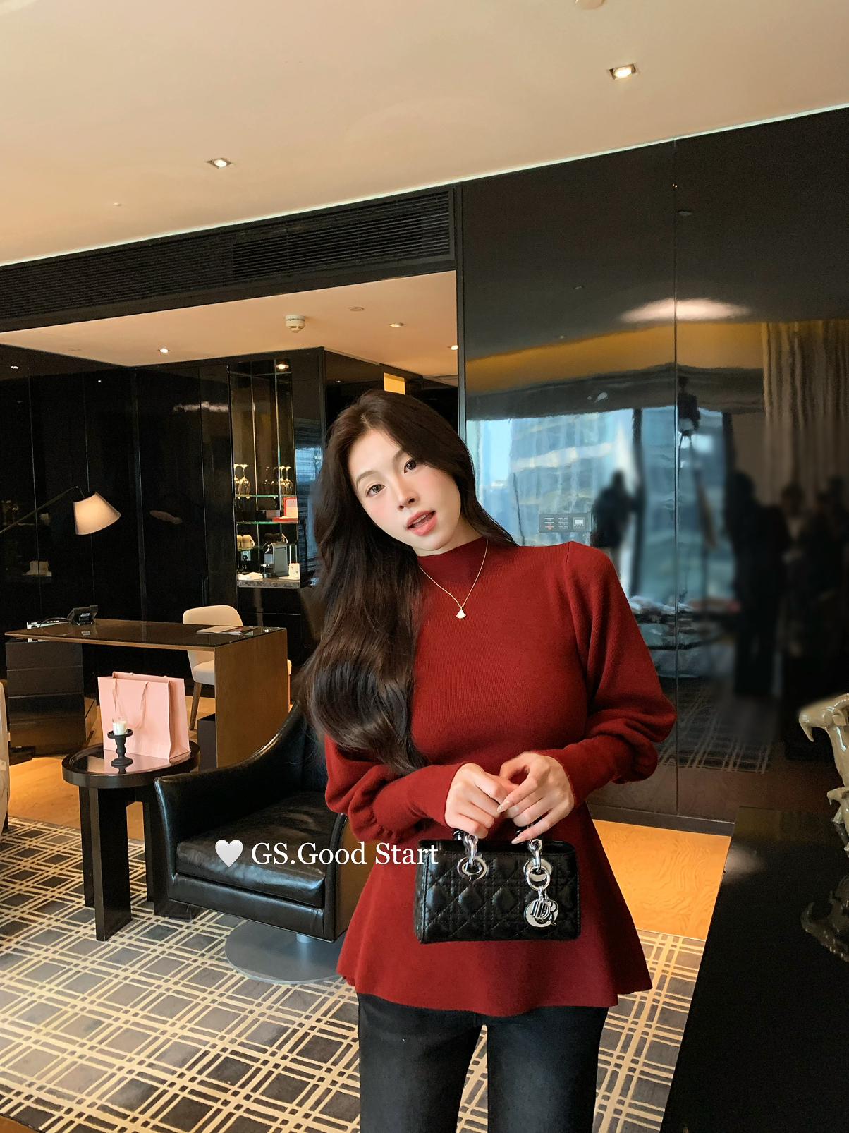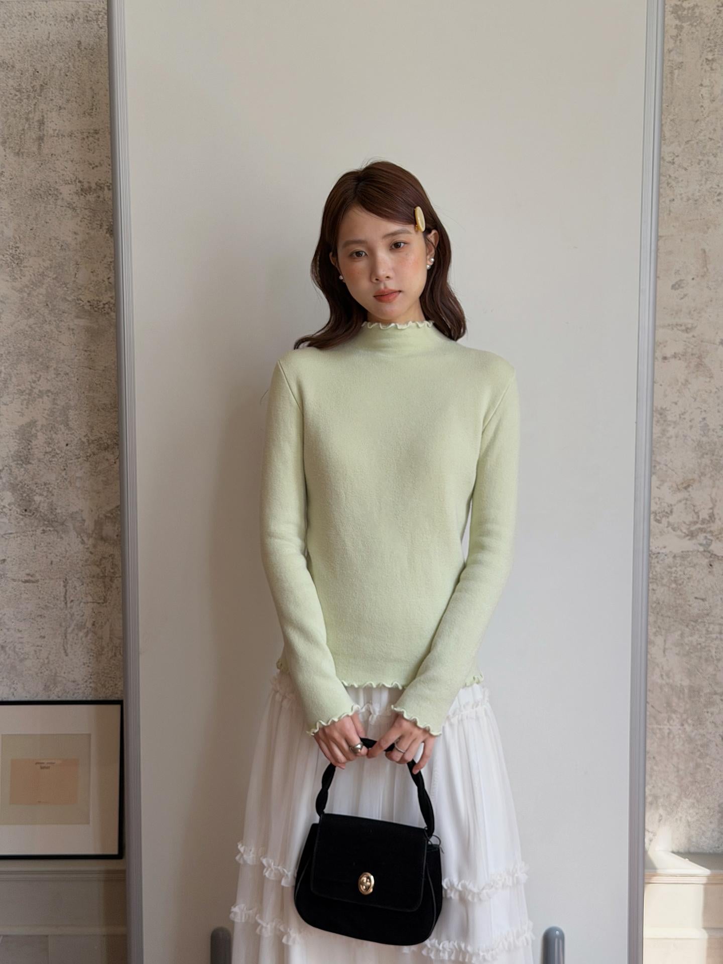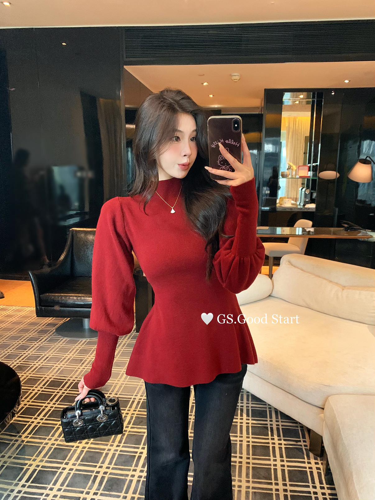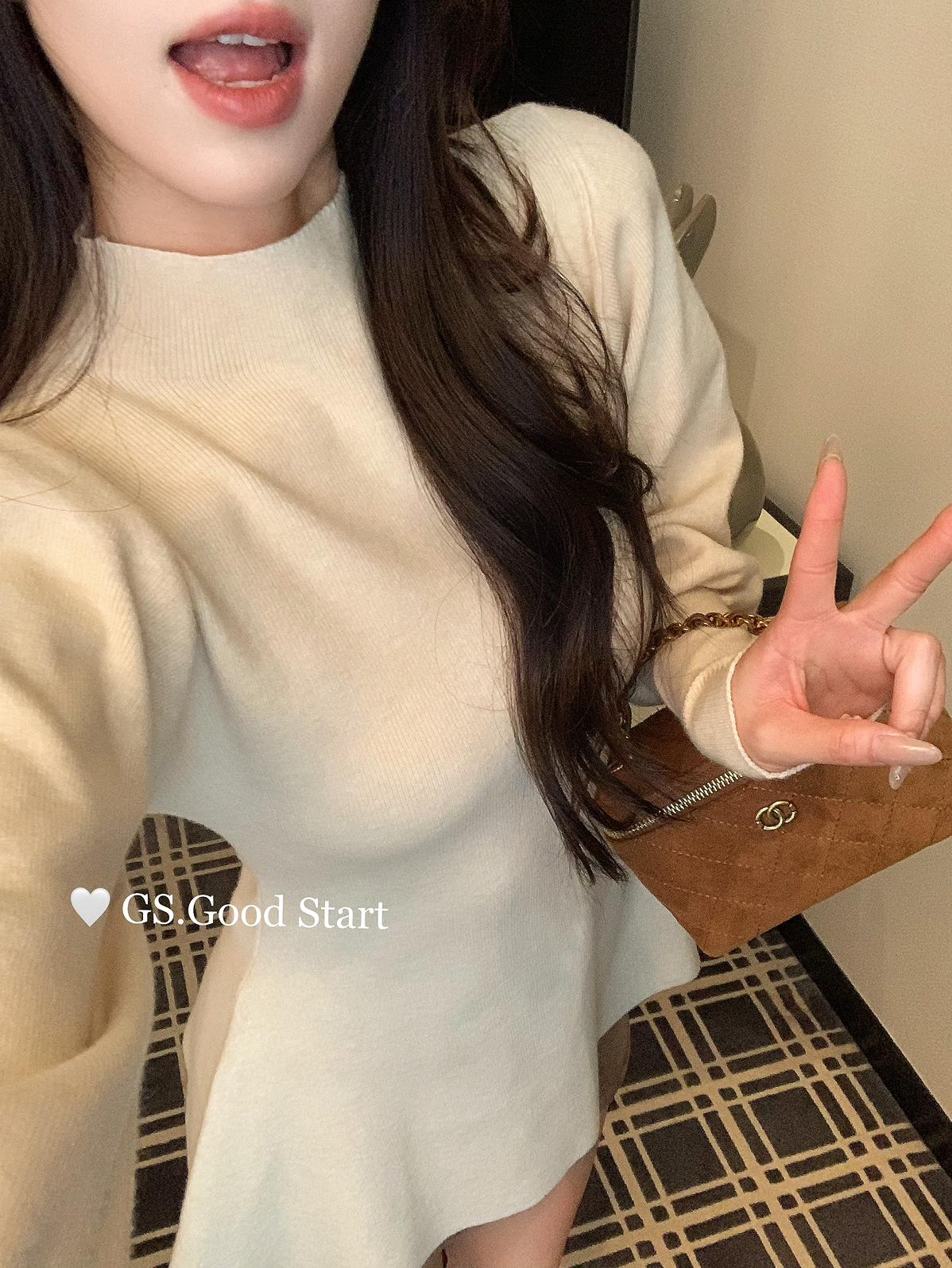 【C7924】冬上新!法式復古木耳邊加絨半高領內搭T恤打底衫