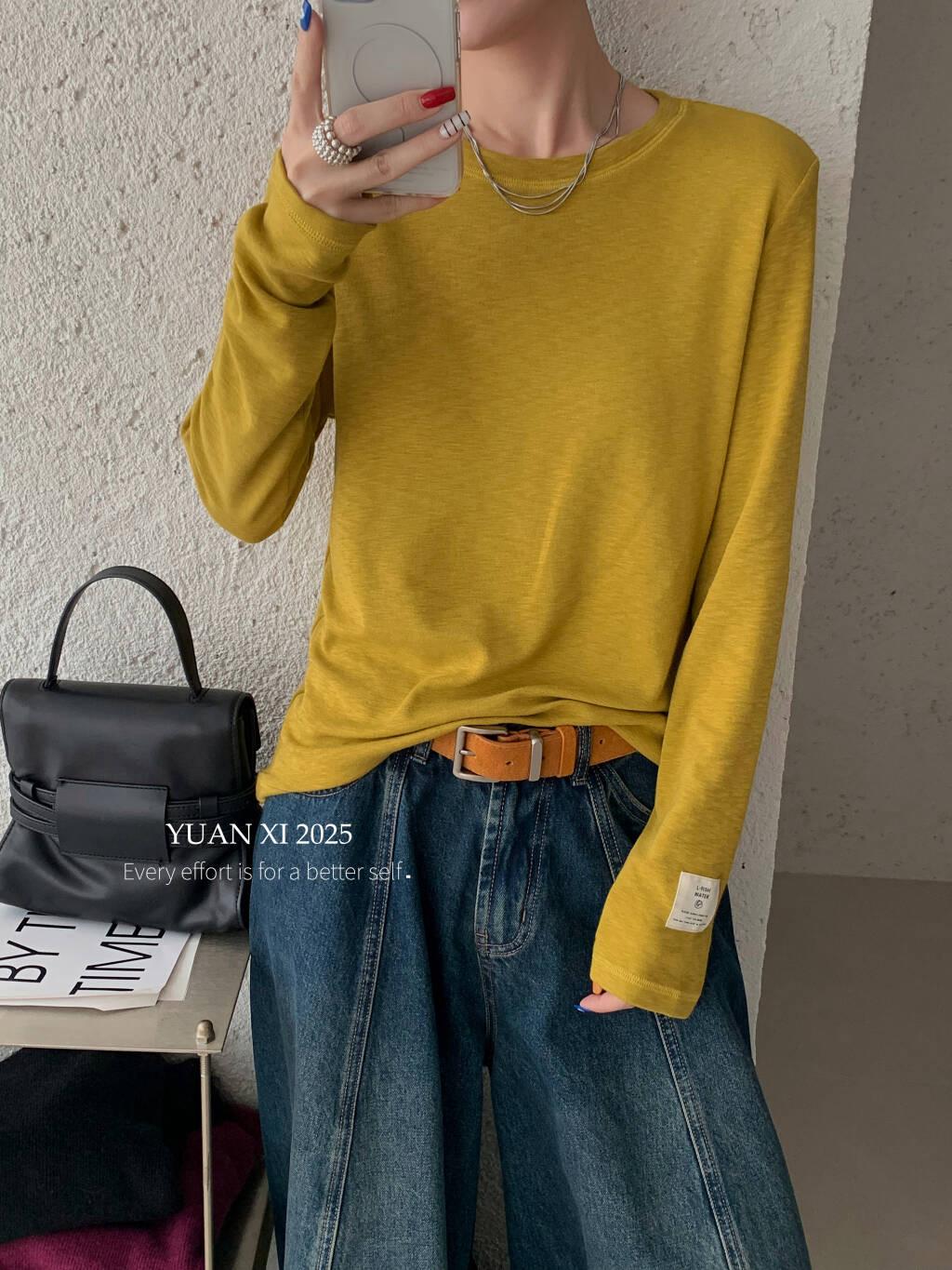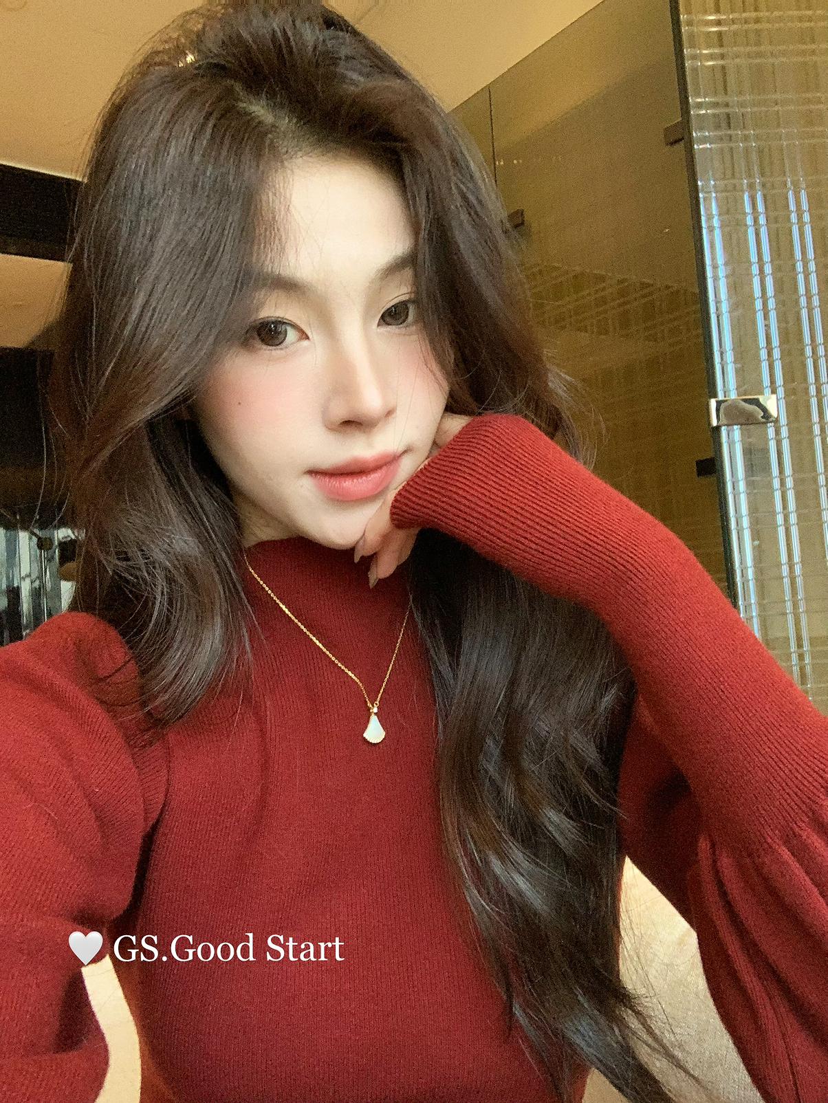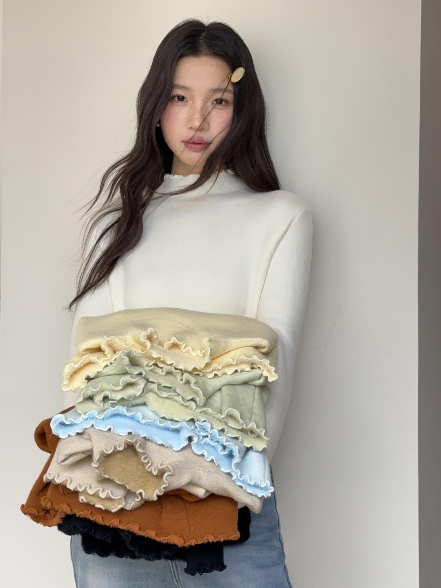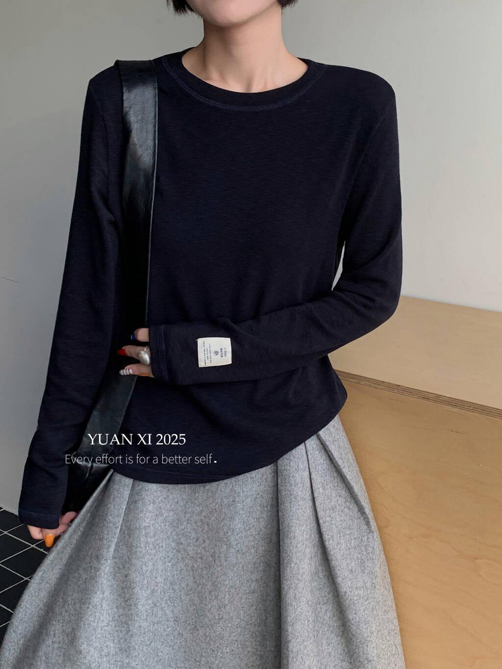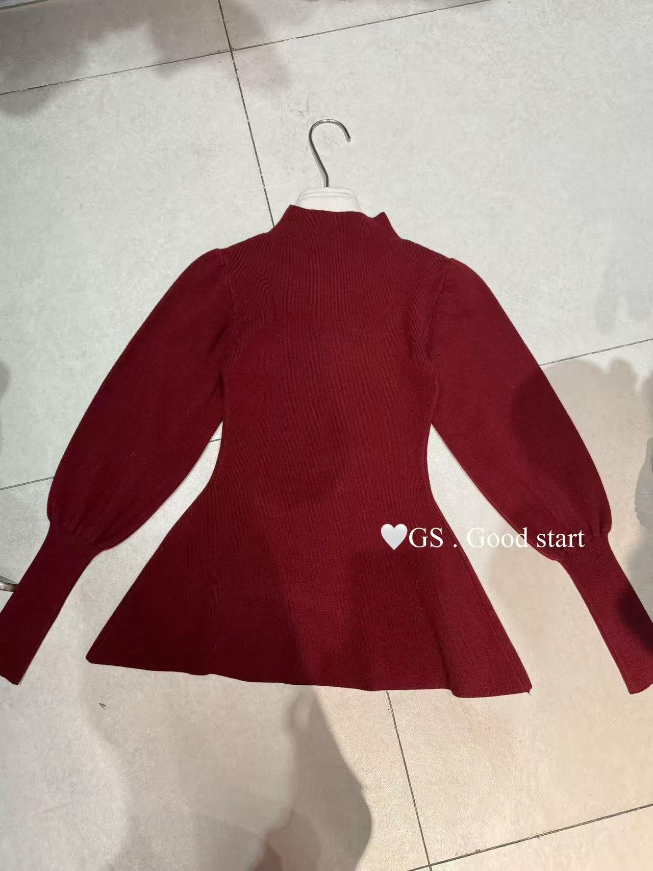 【C7924】冬上新!法式復古木耳邊加絨半高領內搭T恤打底衫