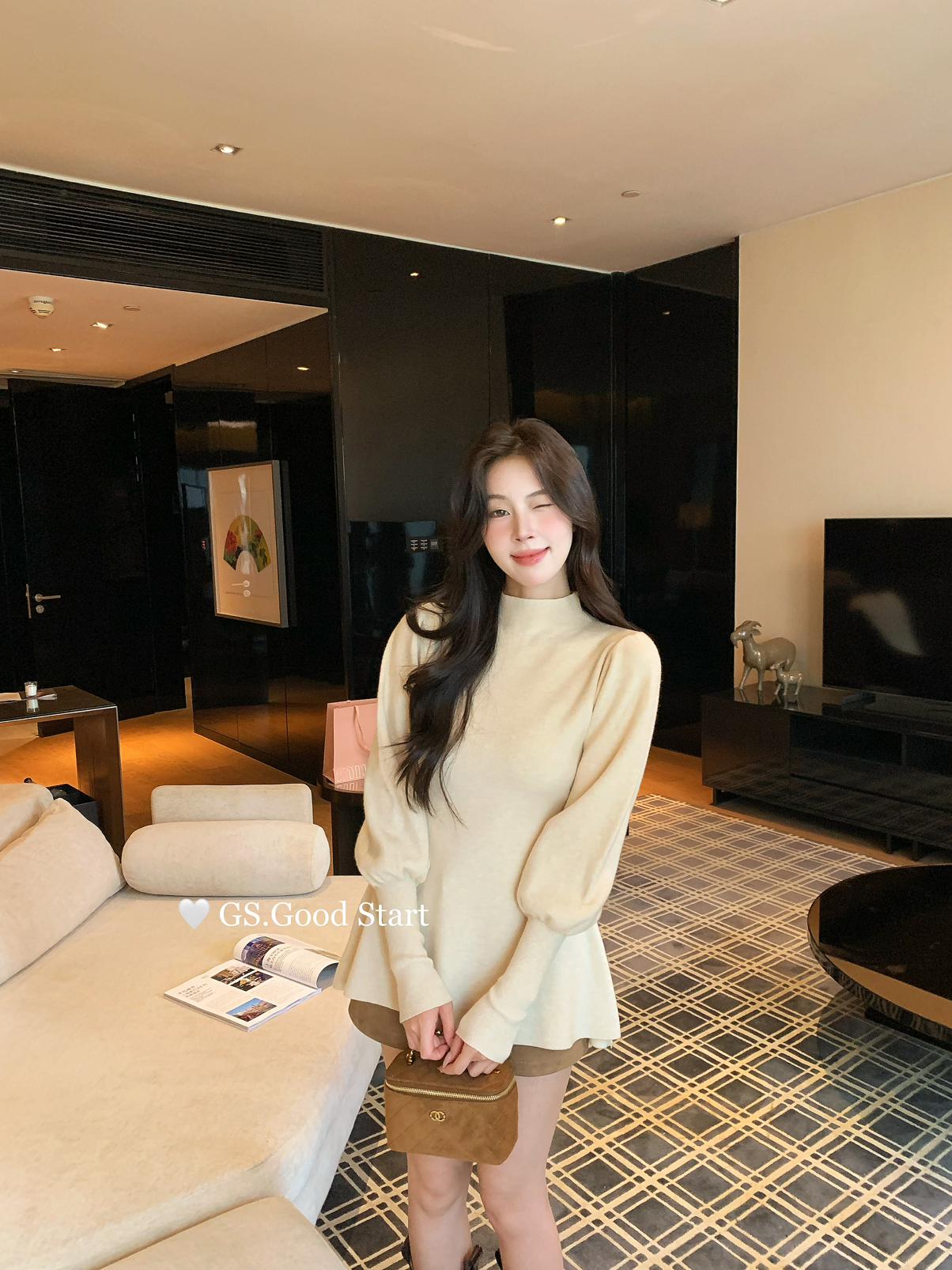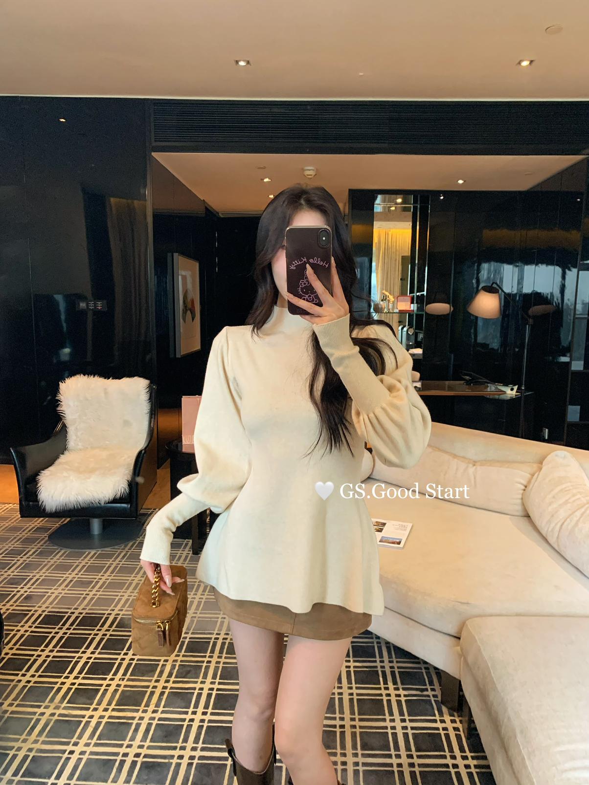 【C7902】冬日樂章韓系重工麻花乾淨溫柔系高領半拉鍊毛衣+包臀顯瘦半身裙套裝