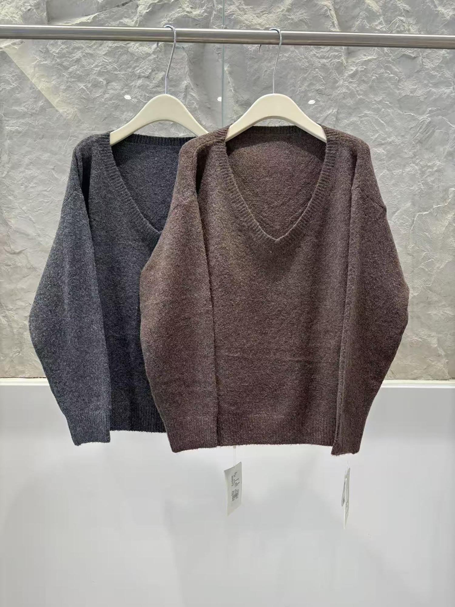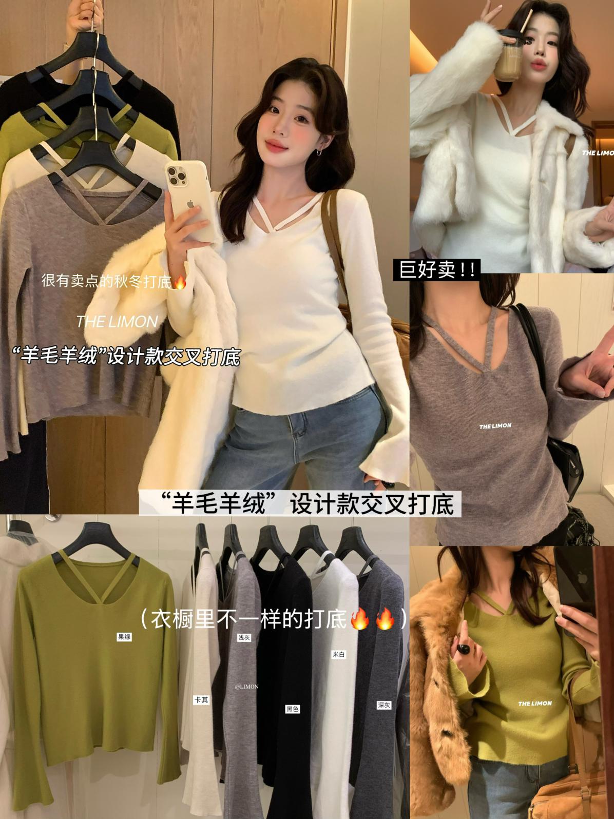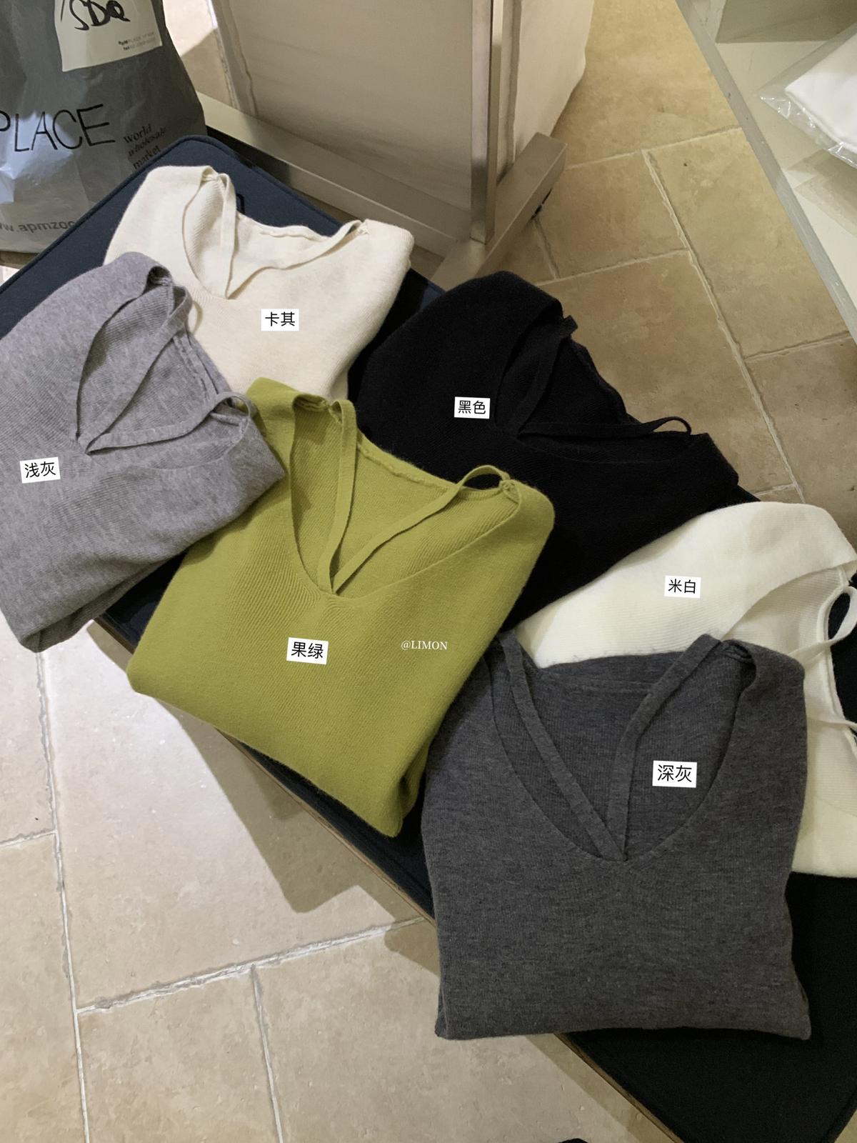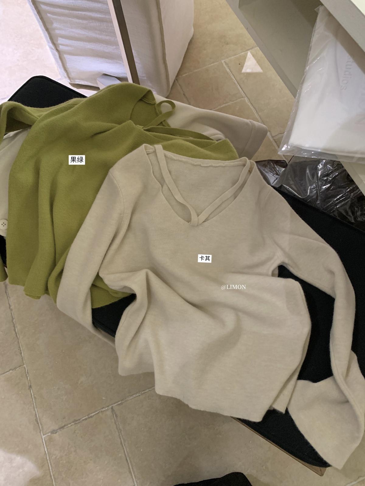 【C7912】設計感簡約v領修身打底針織衫(含6%羊毛)