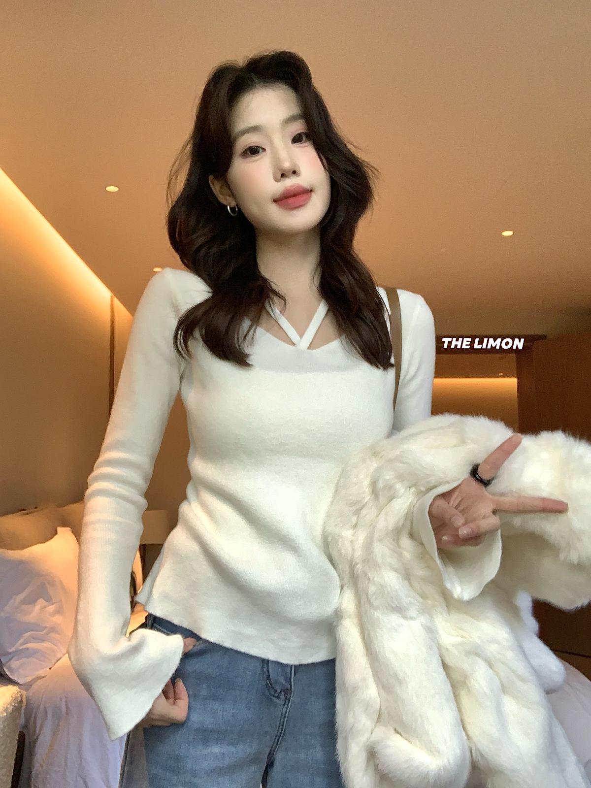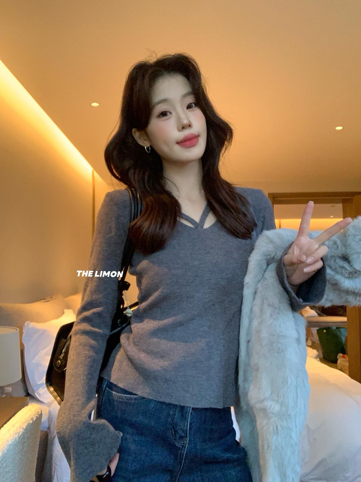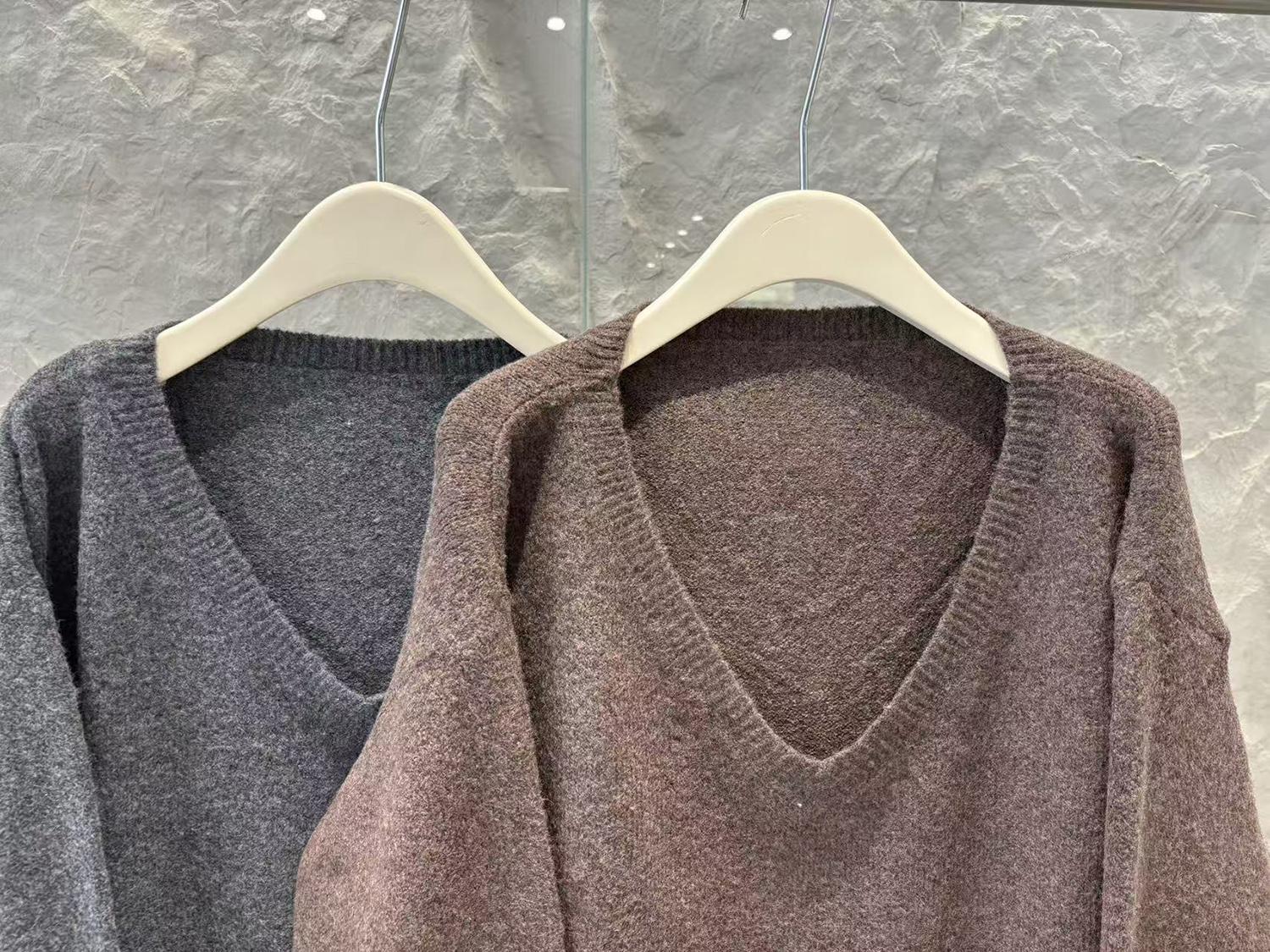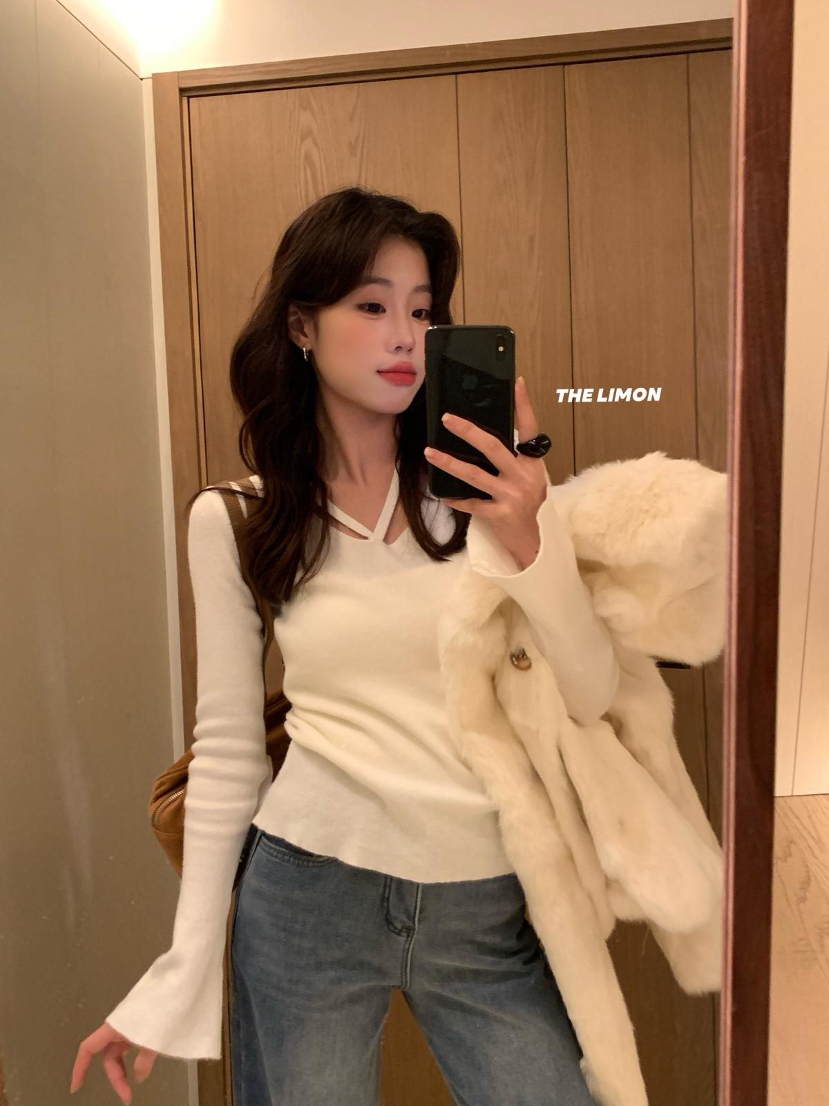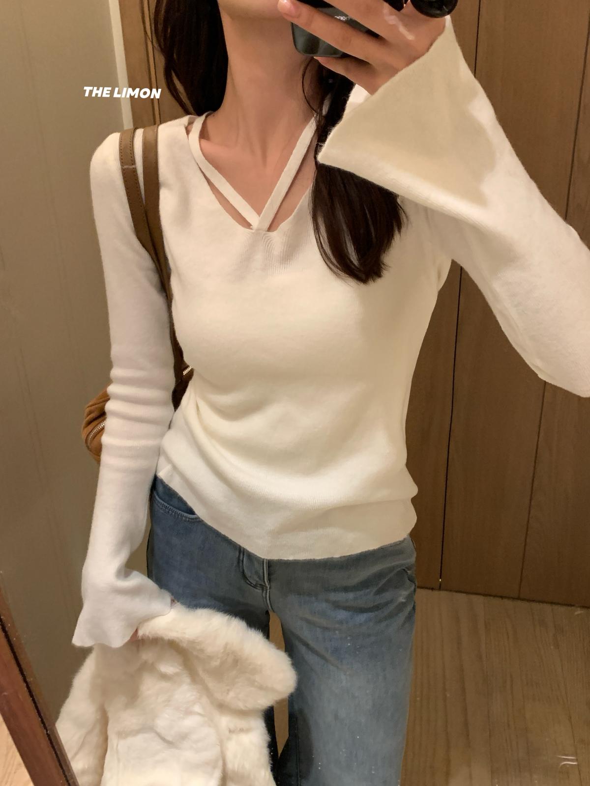【C7912】設計感簡約v領修身打底針織衫(含6%羊毛)