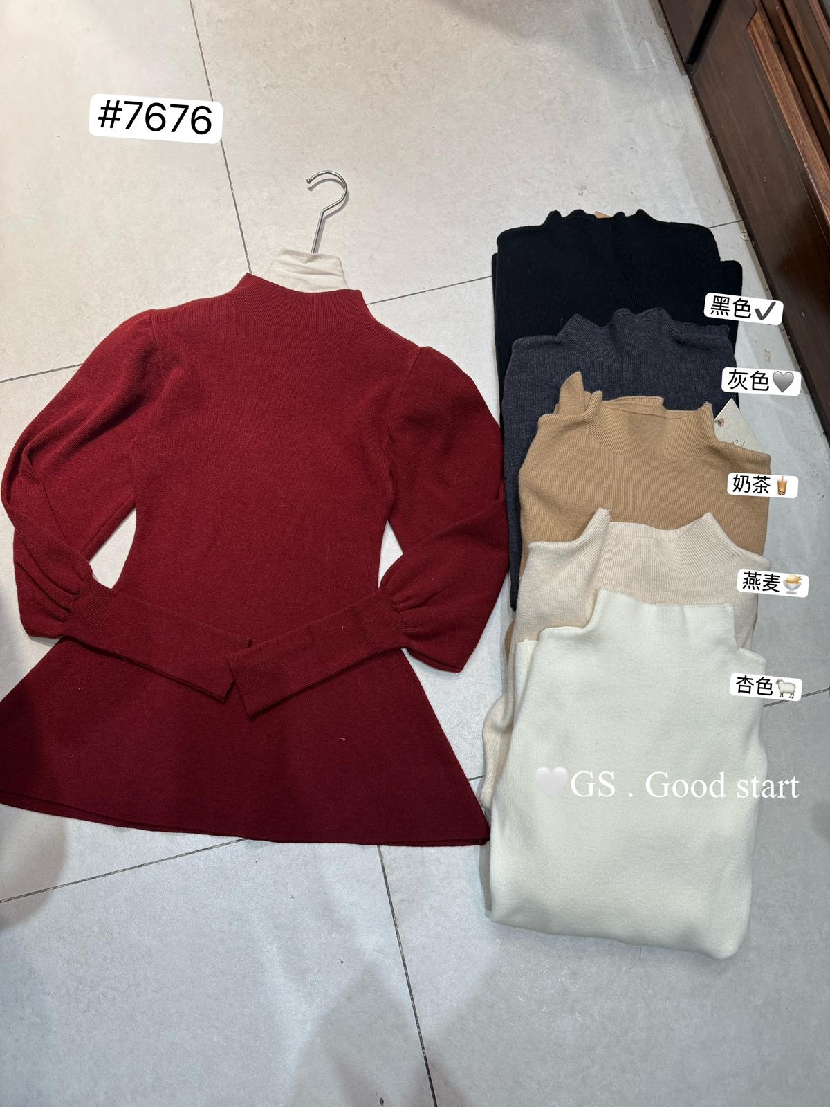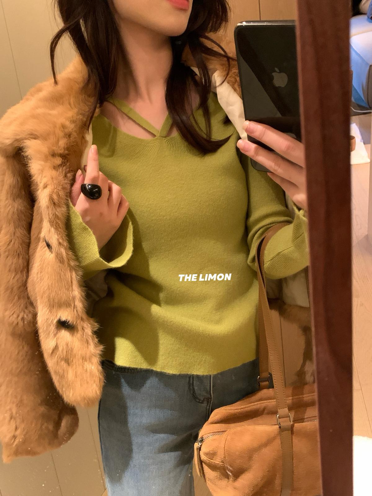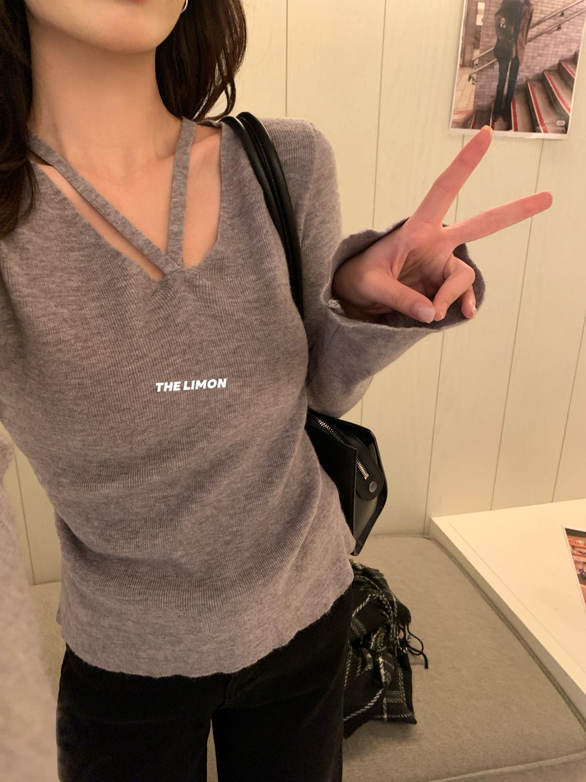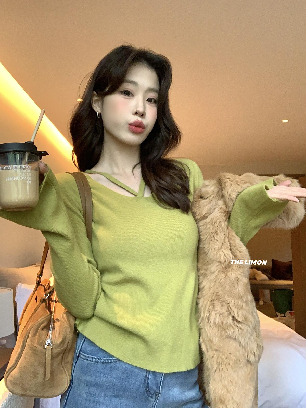 【C7912】設計感簡約v領修身打底針織衫(含6%羊毛)