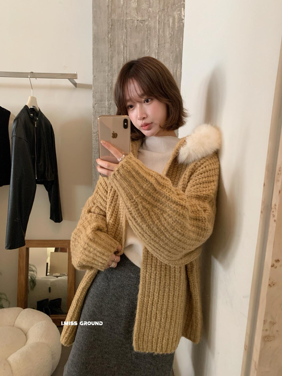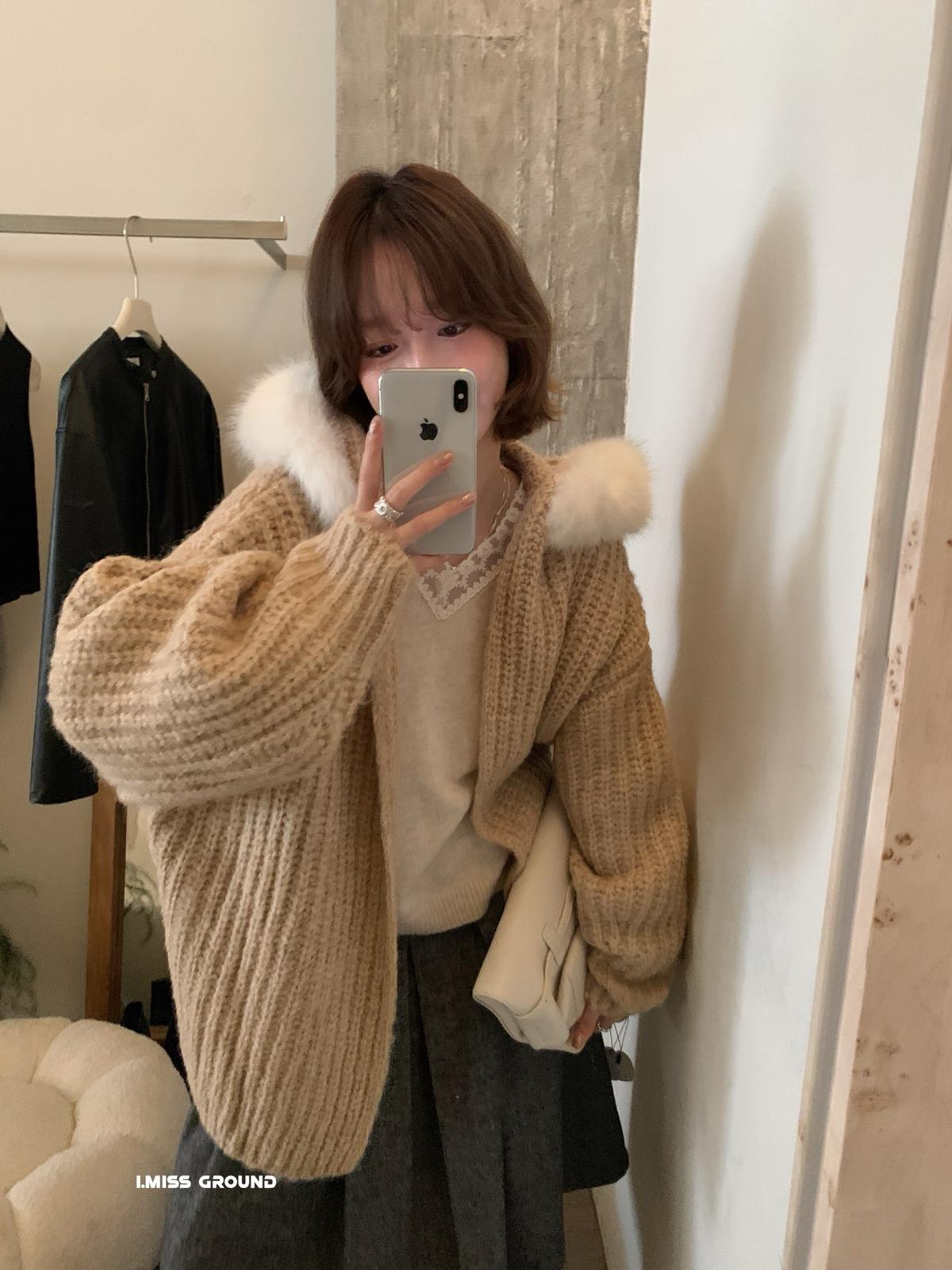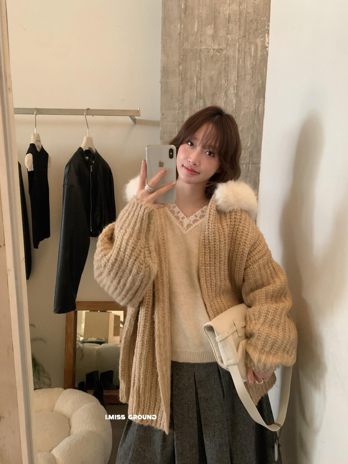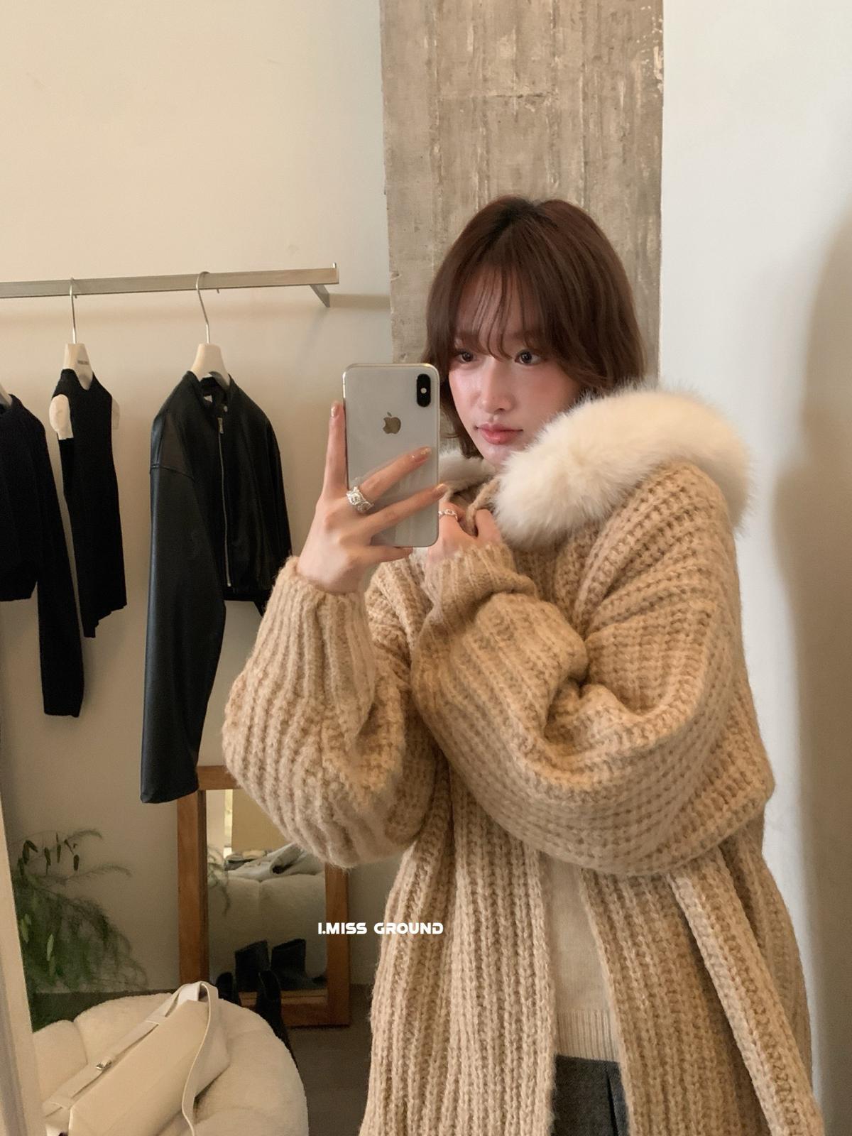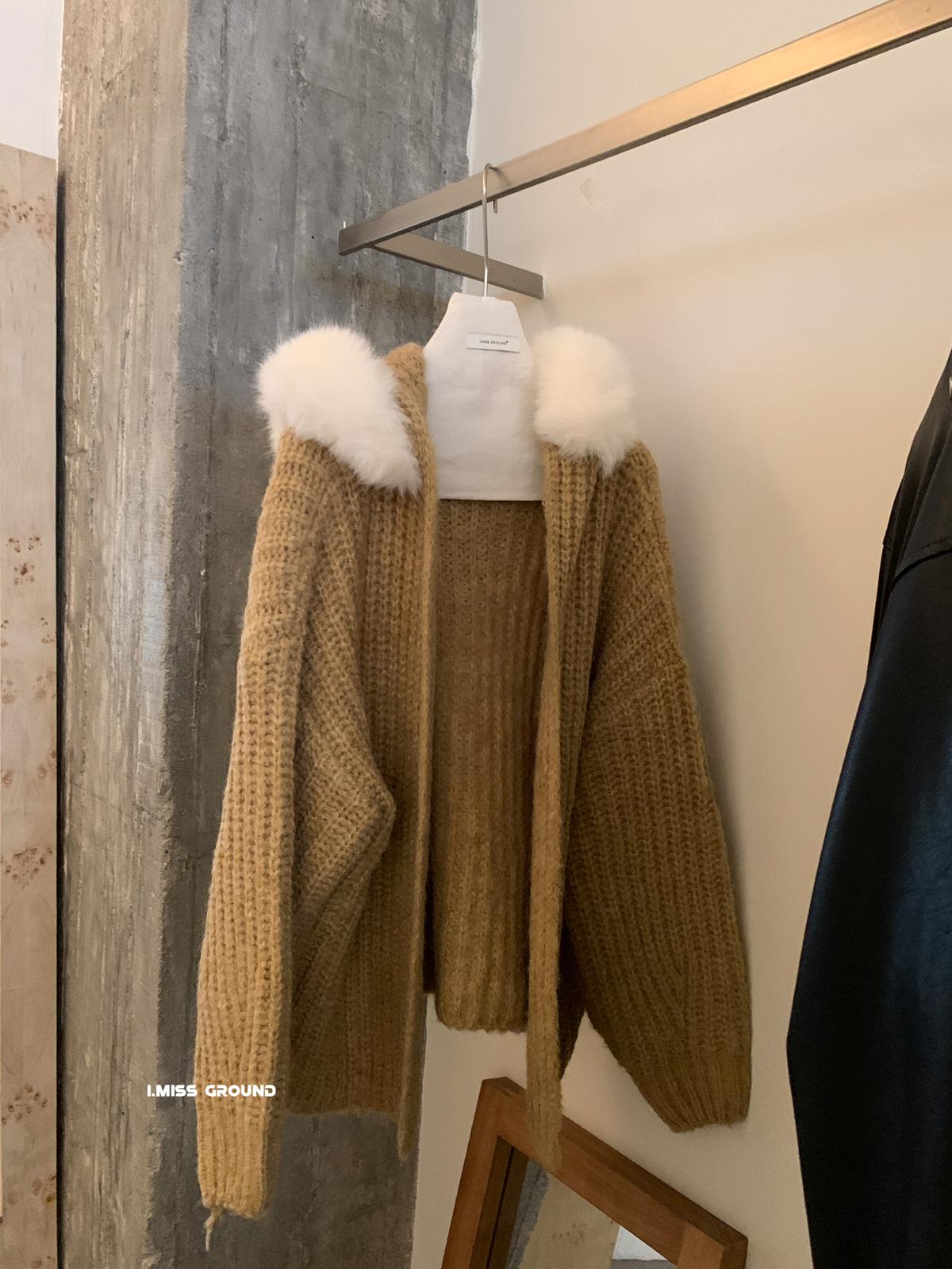 【C7898】大毛領駝羊毛開衫保暖毛衣(含1%羊毛)