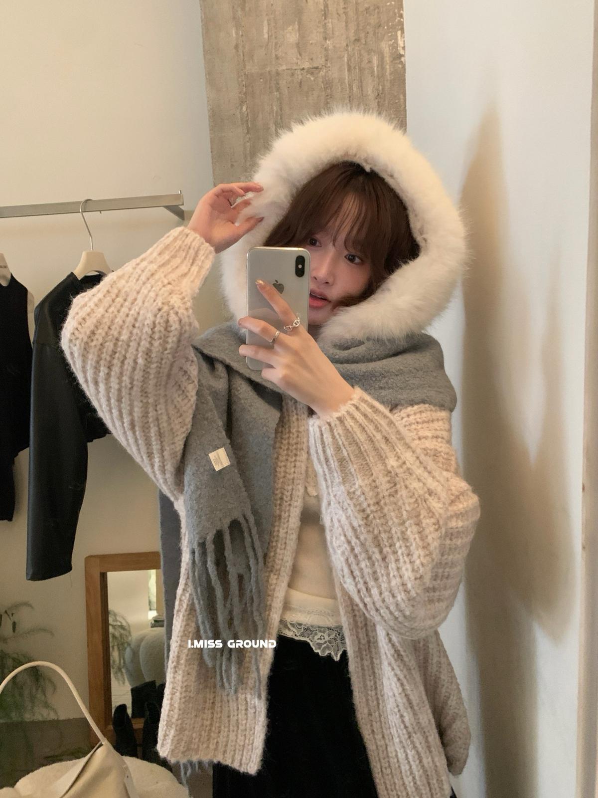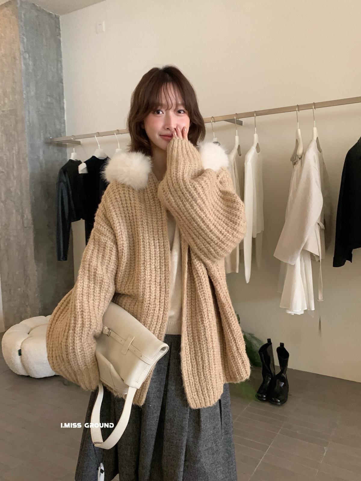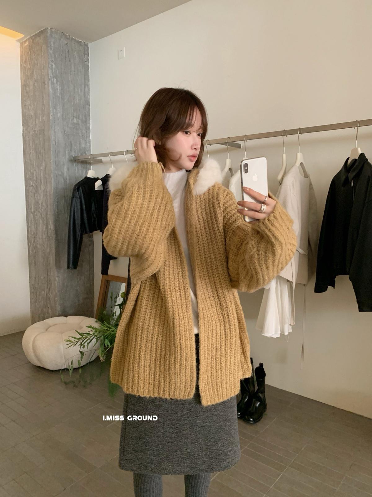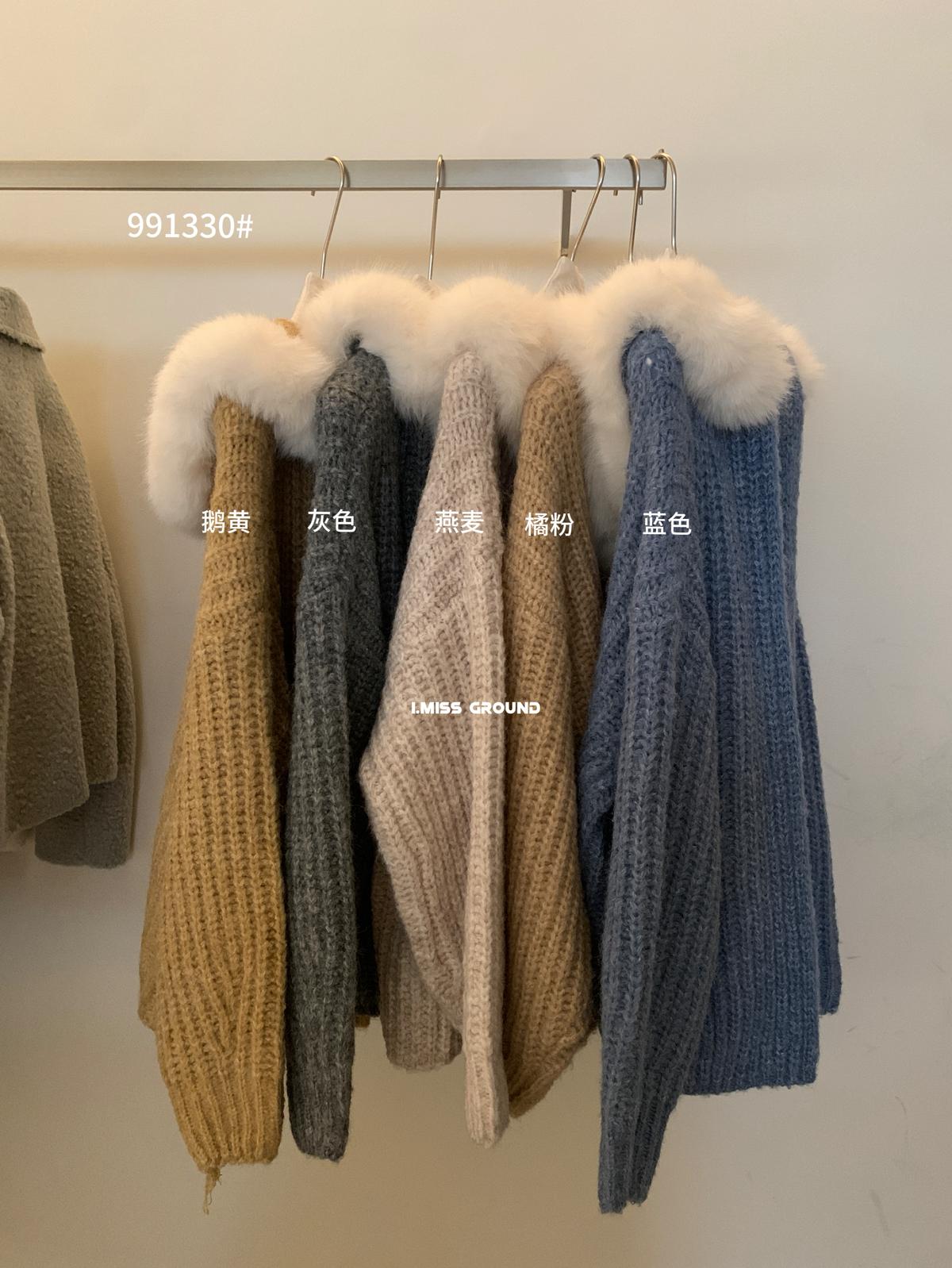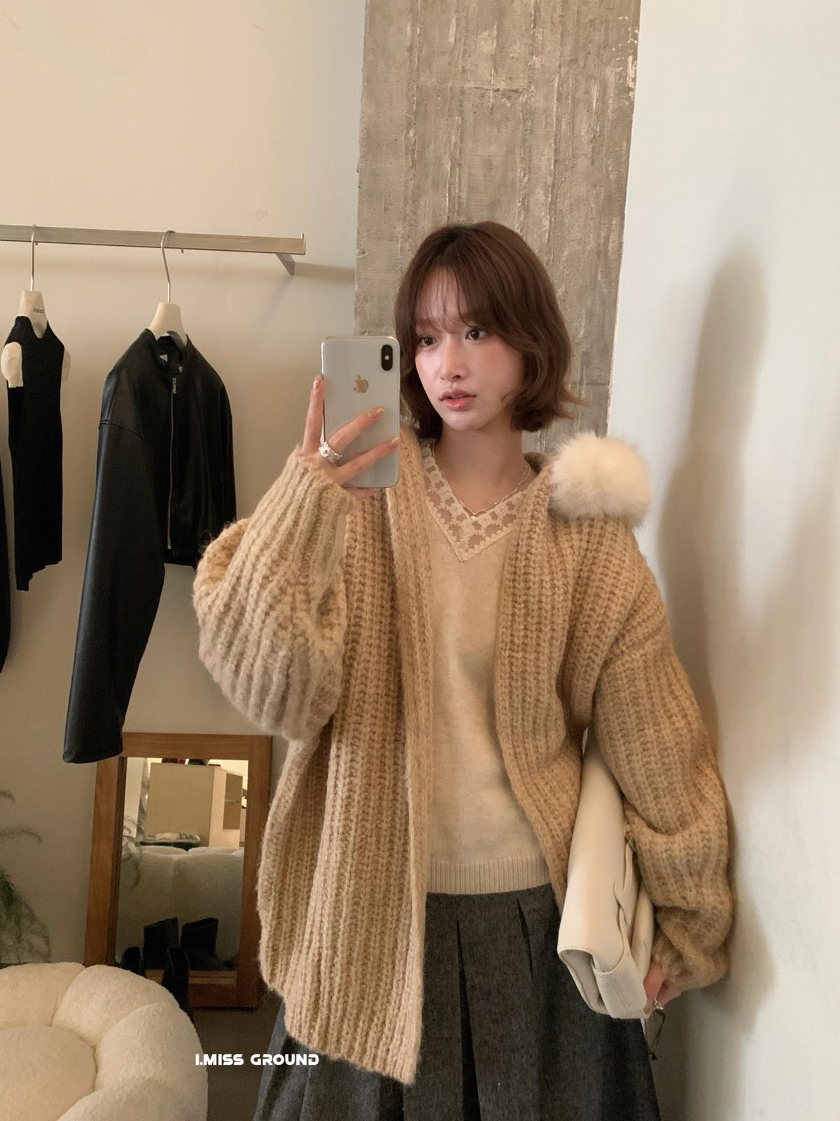 【C7898】大毛領駝羊毛開衫保暖毛衣(含1%羊毛)