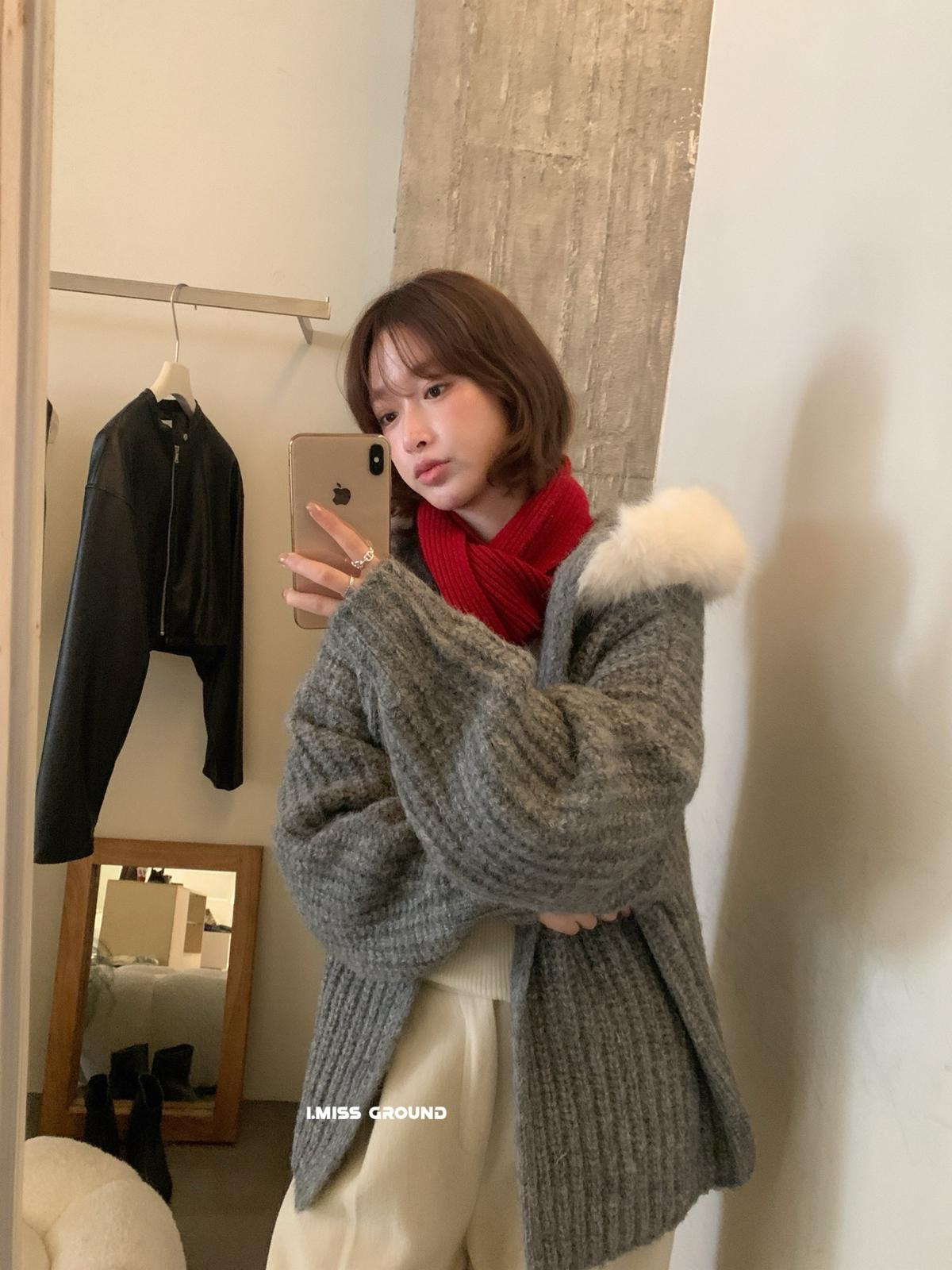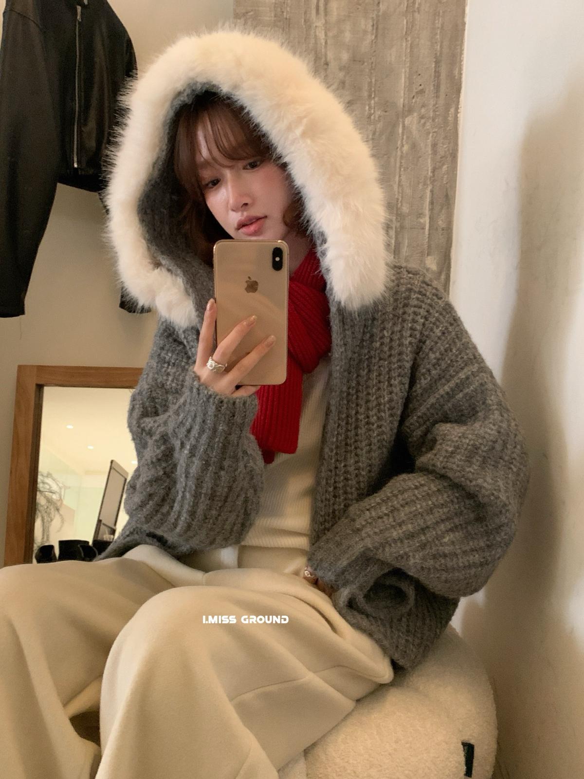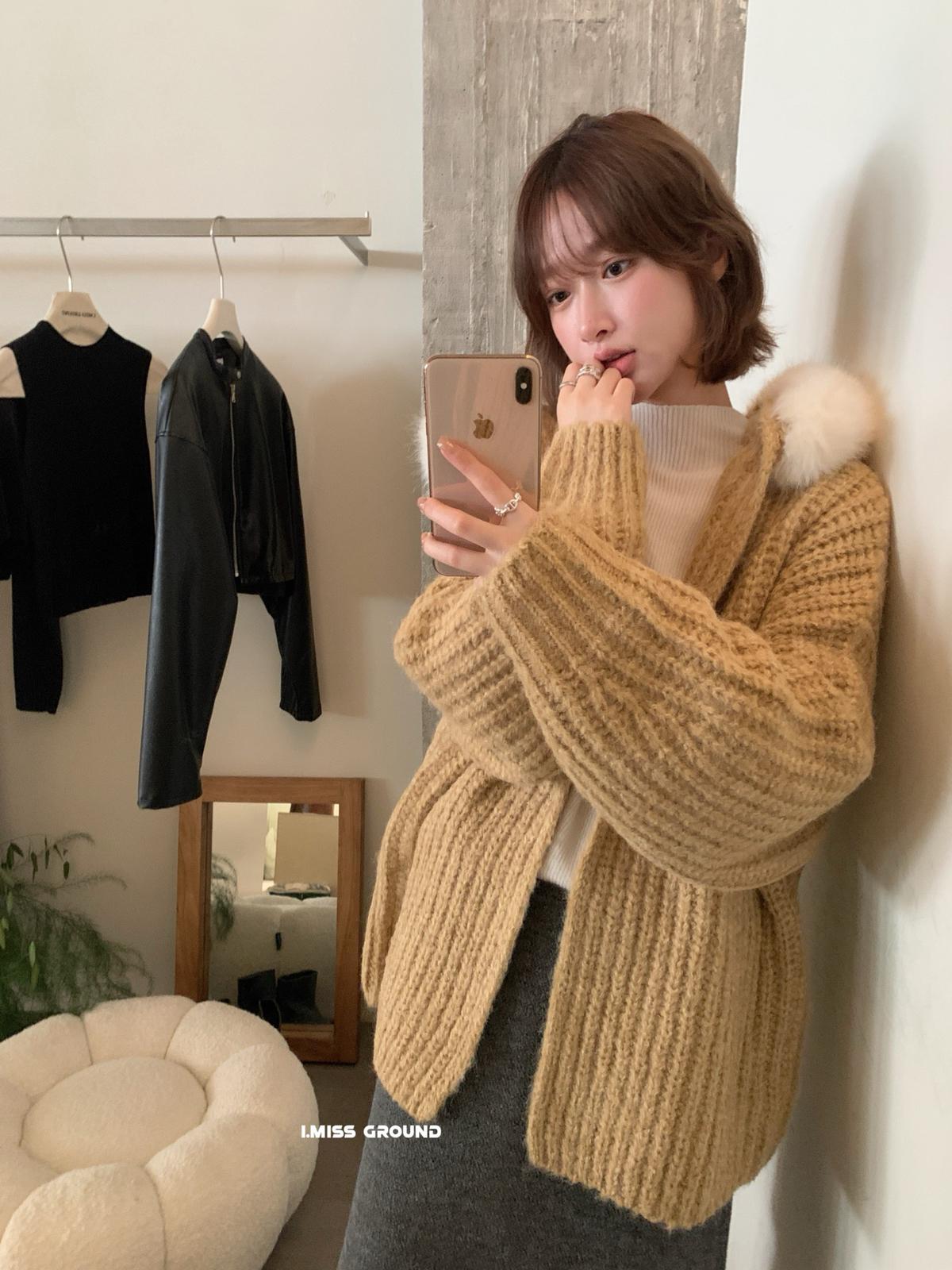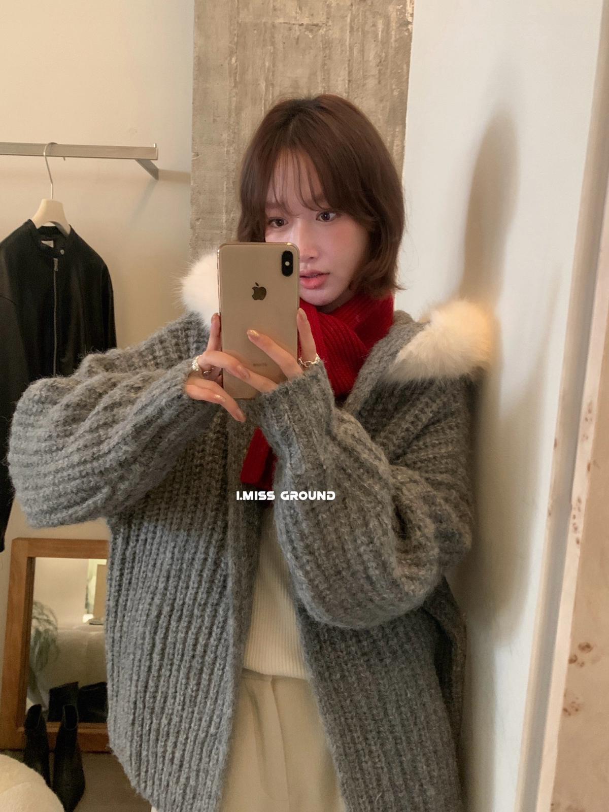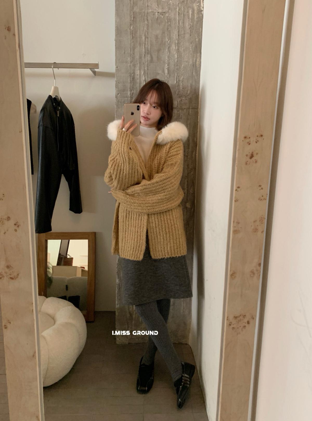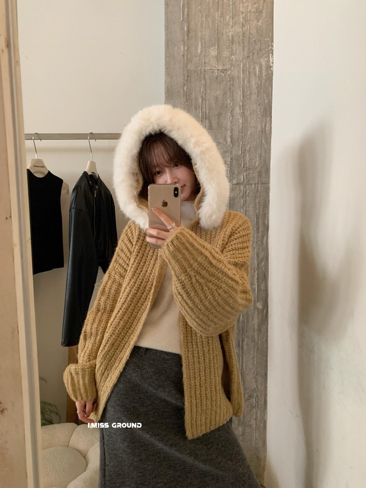 【C7898】大毛領駝羊毛開衫保暖毛衣(含1%羊毛)