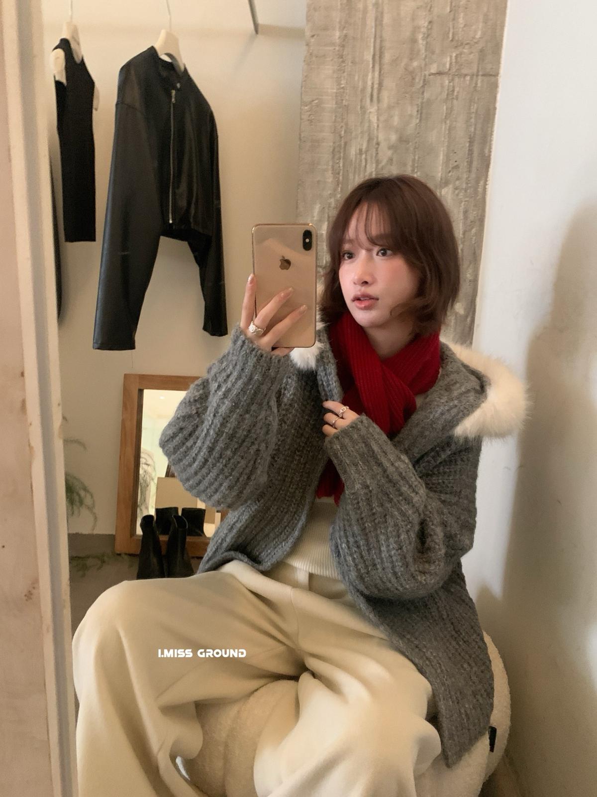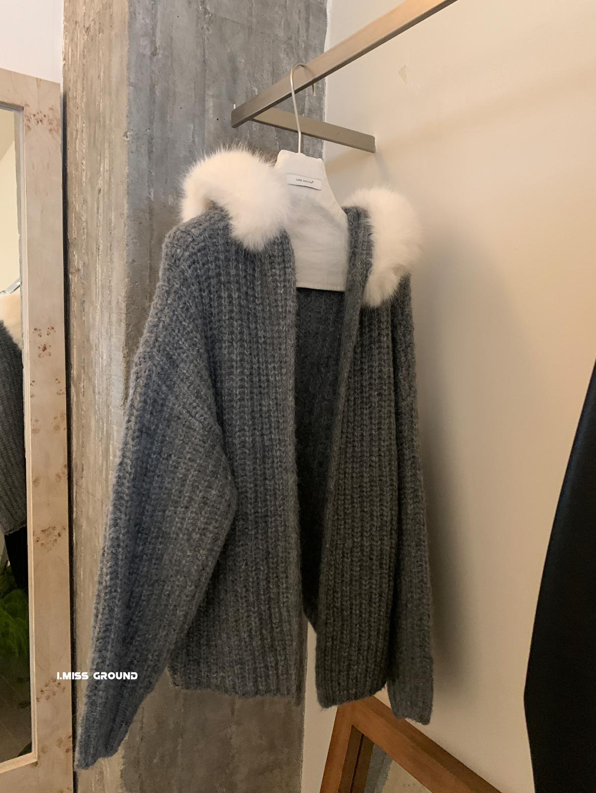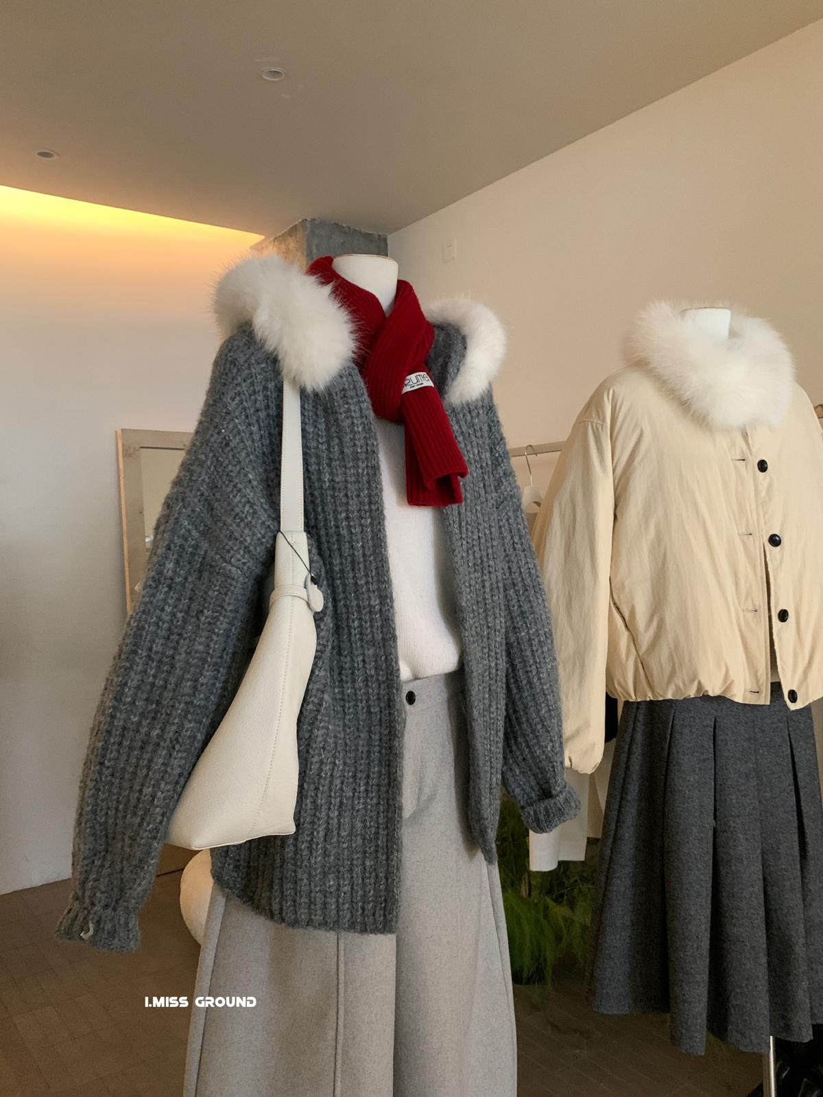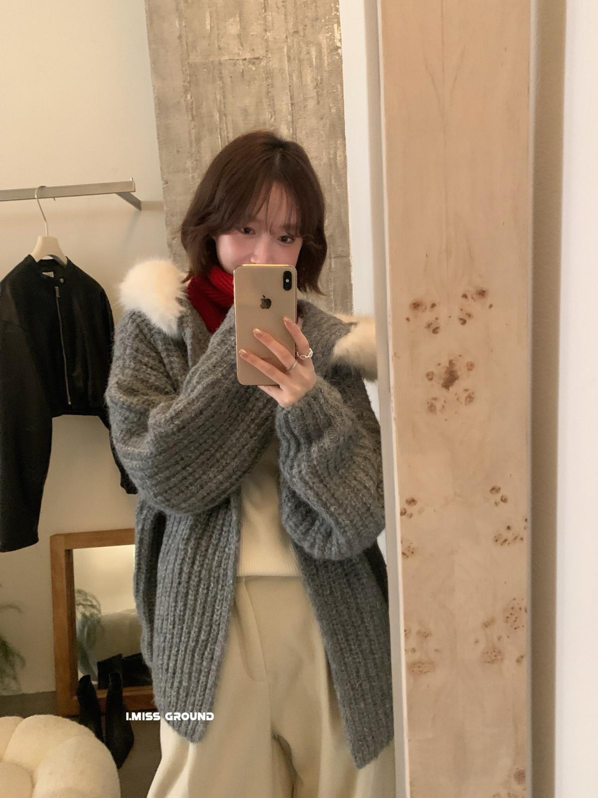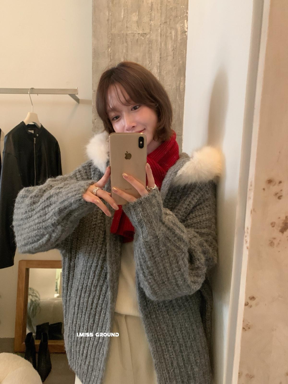 【C7898】大毛領駝羊毛開衫保暖毛衣(含1%羊毛)