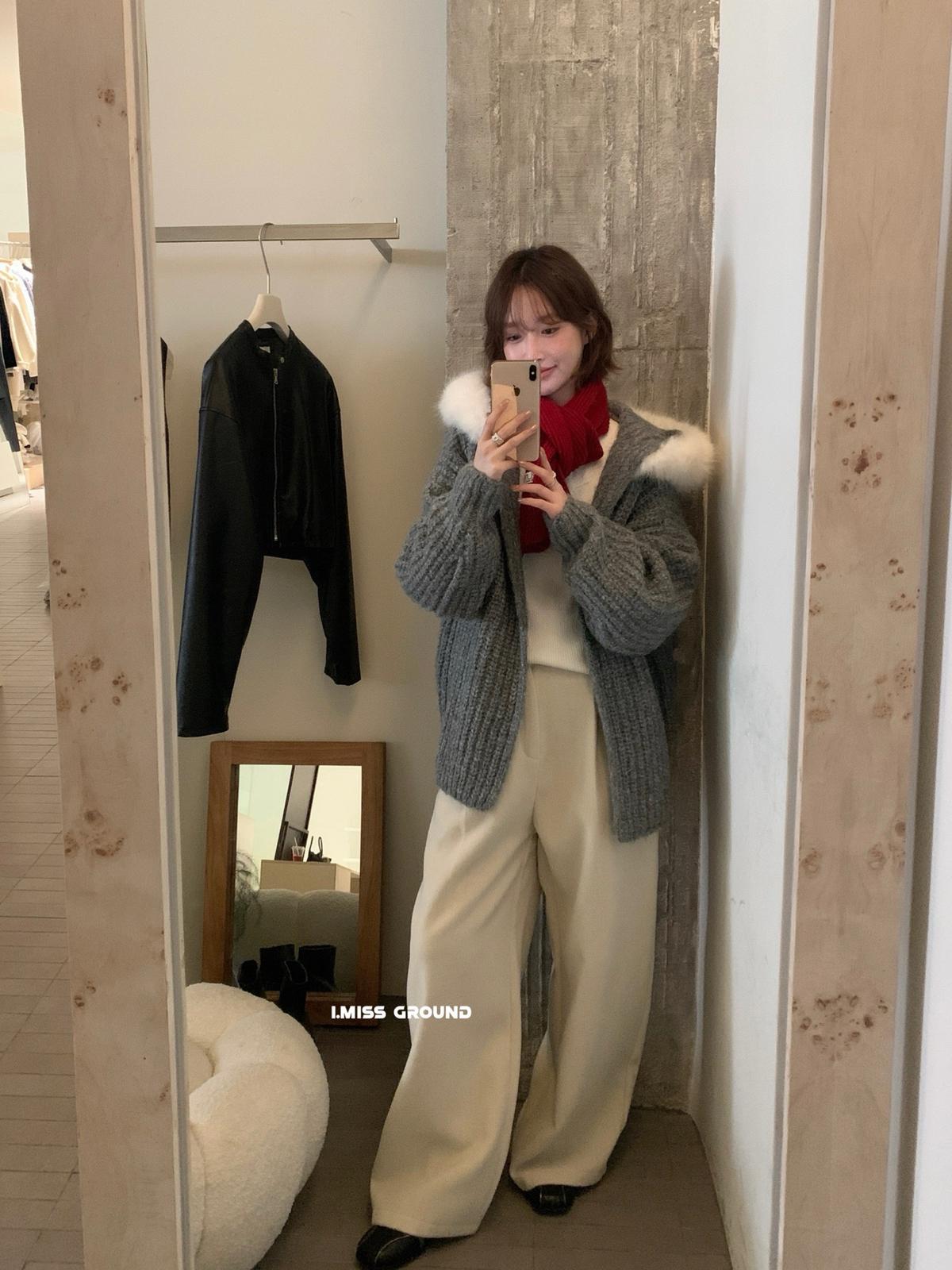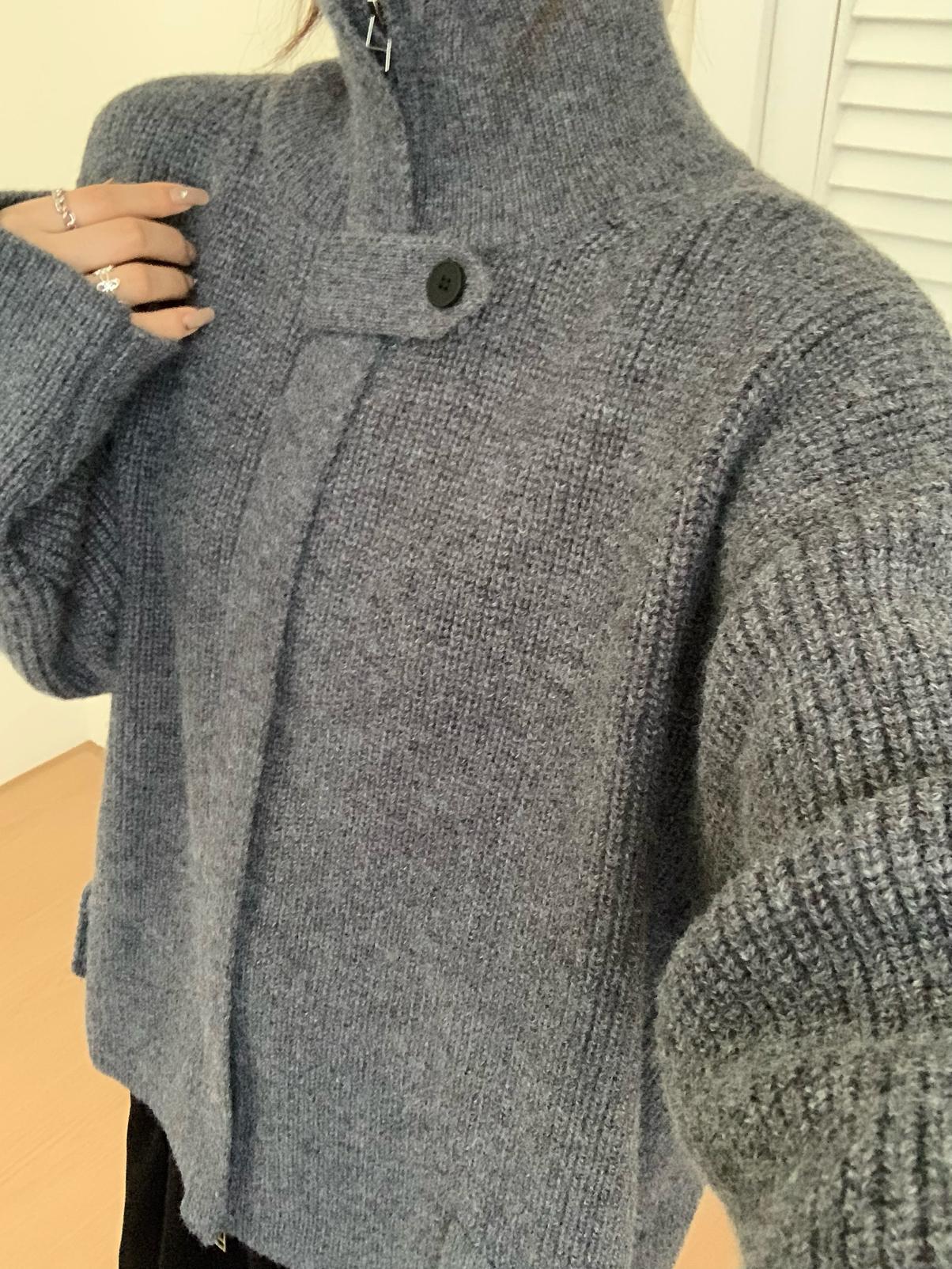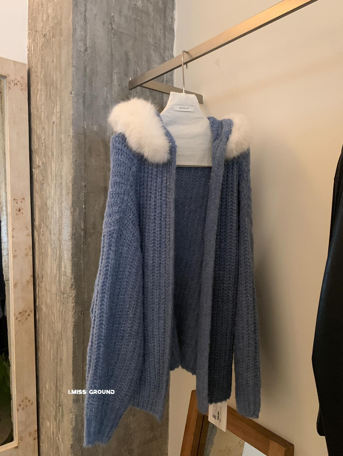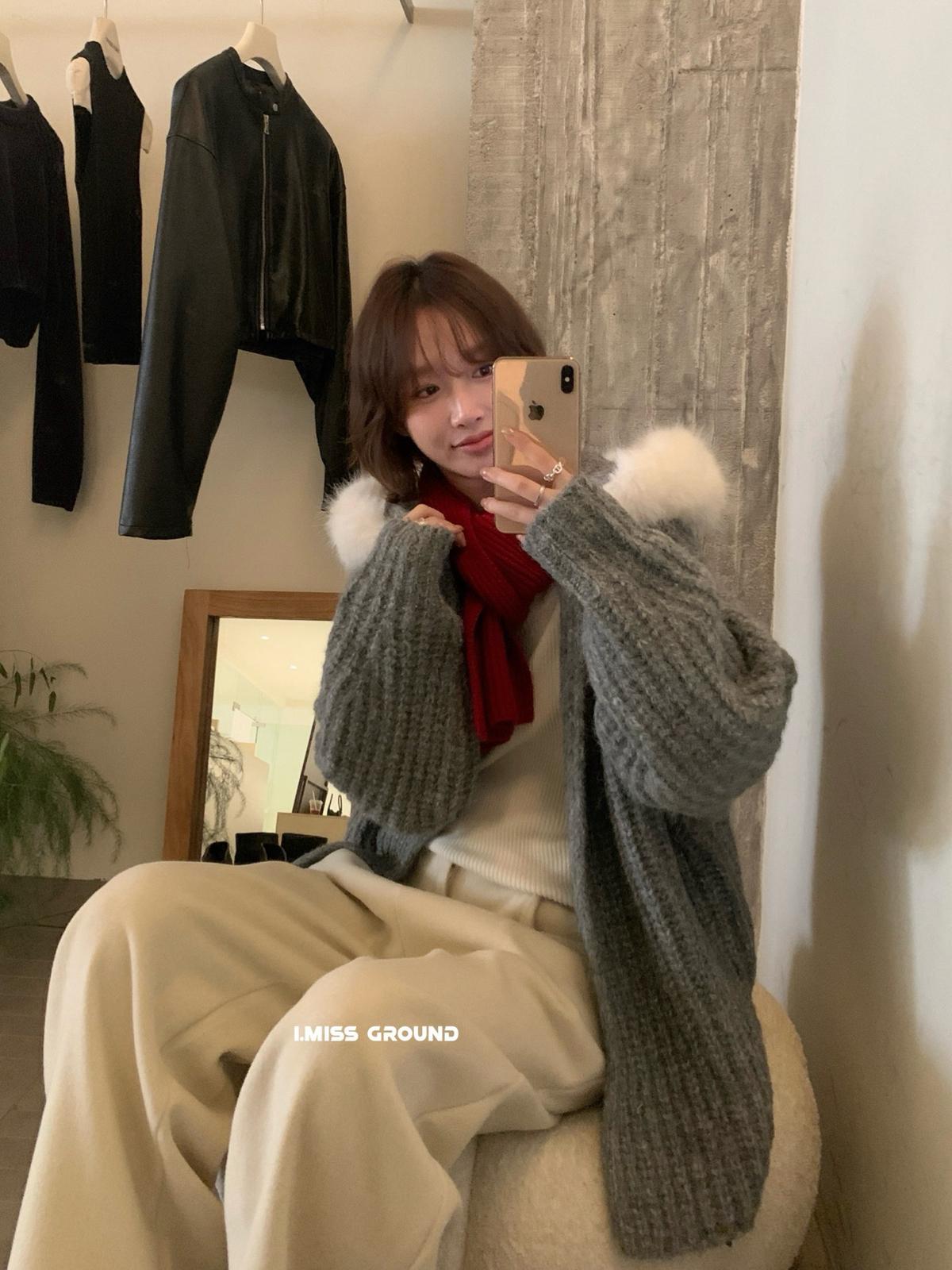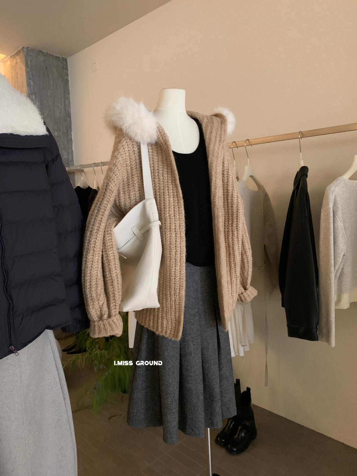 【C7898】大毛領駝羊毛開衫保暖毛衣(含1%羊毛)