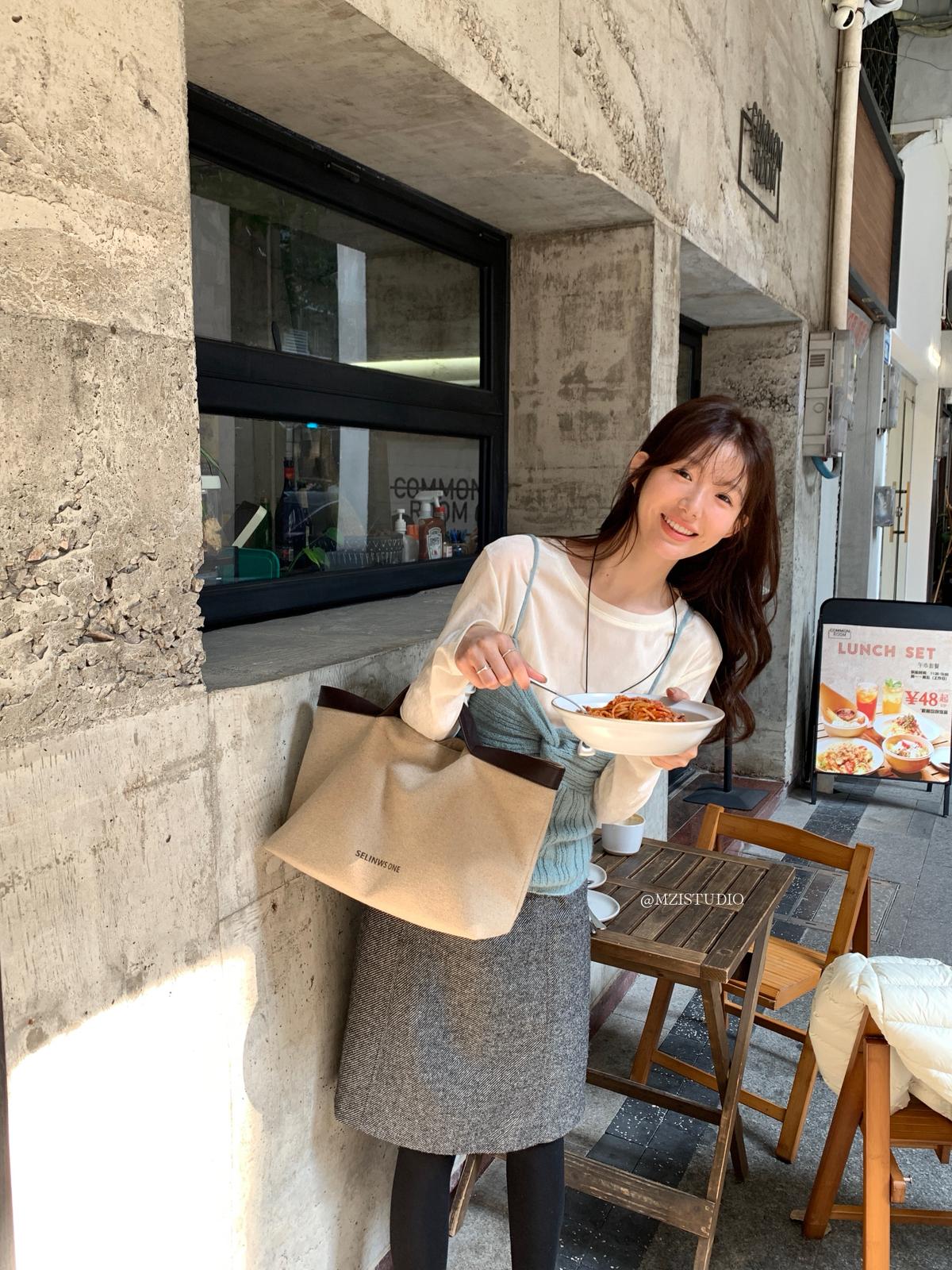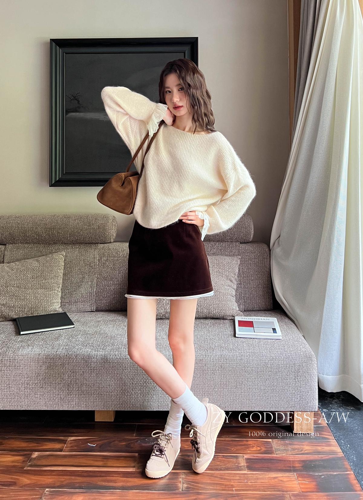 【C7863】人氣選手!拍照都被問鏈接~秋冬休閒學院風撞色針織衫+半身裙套裝