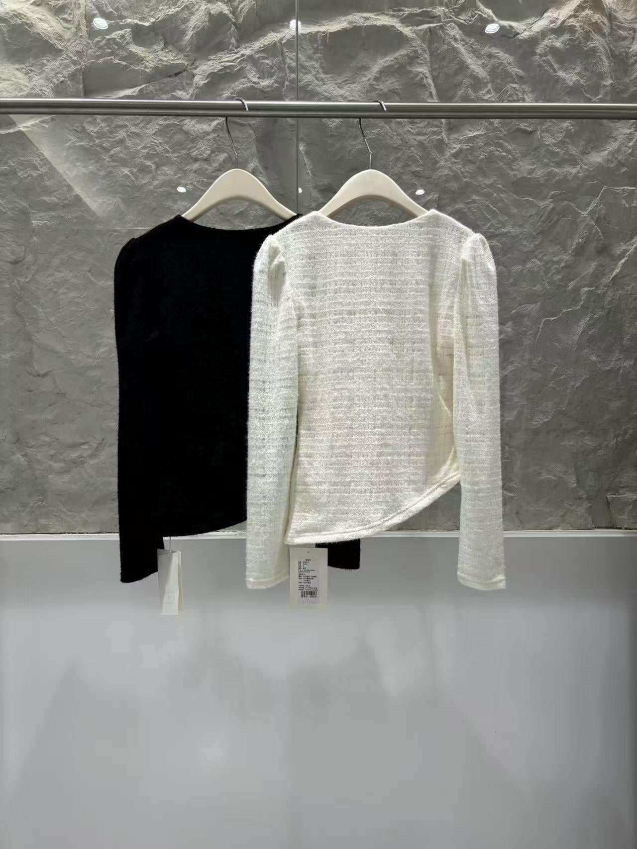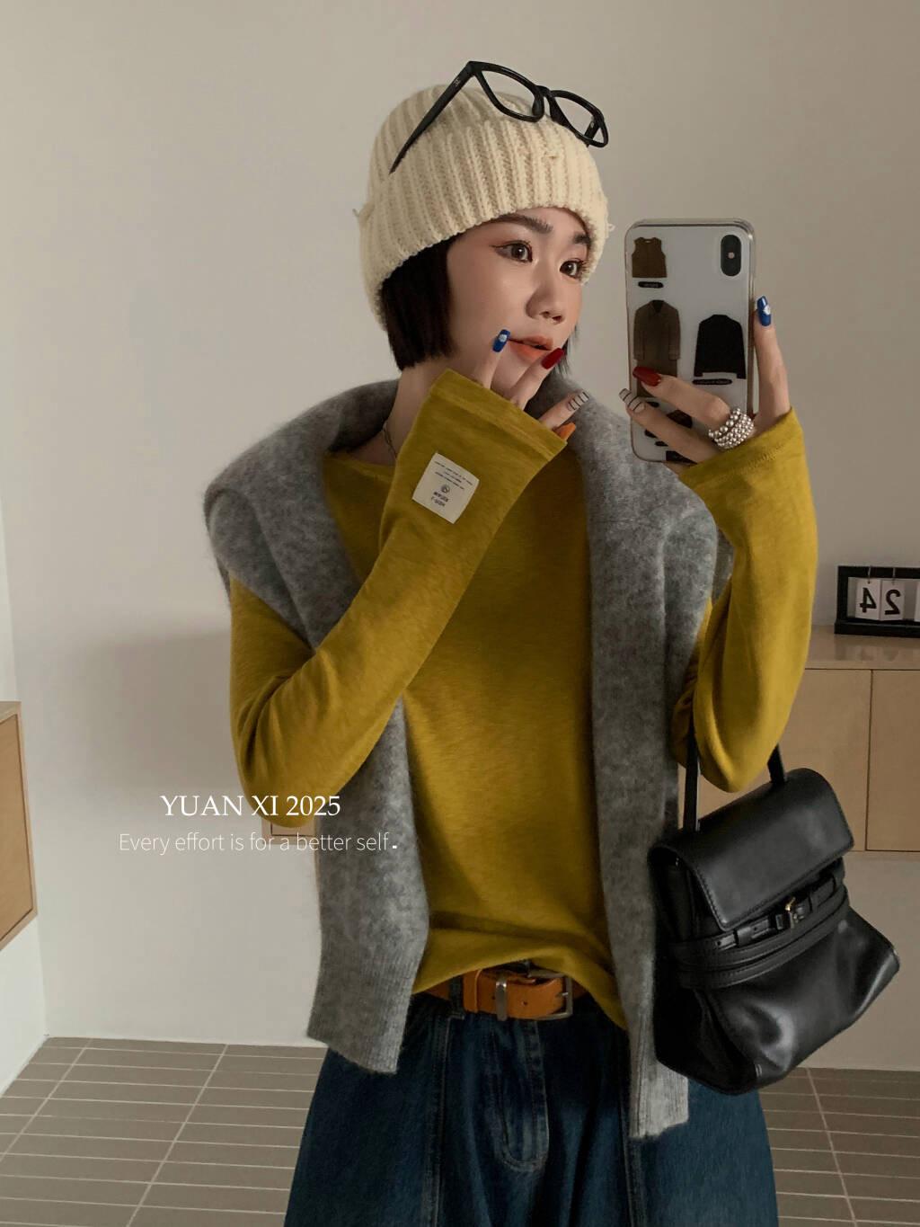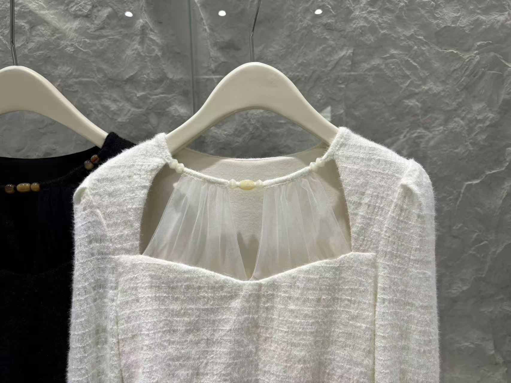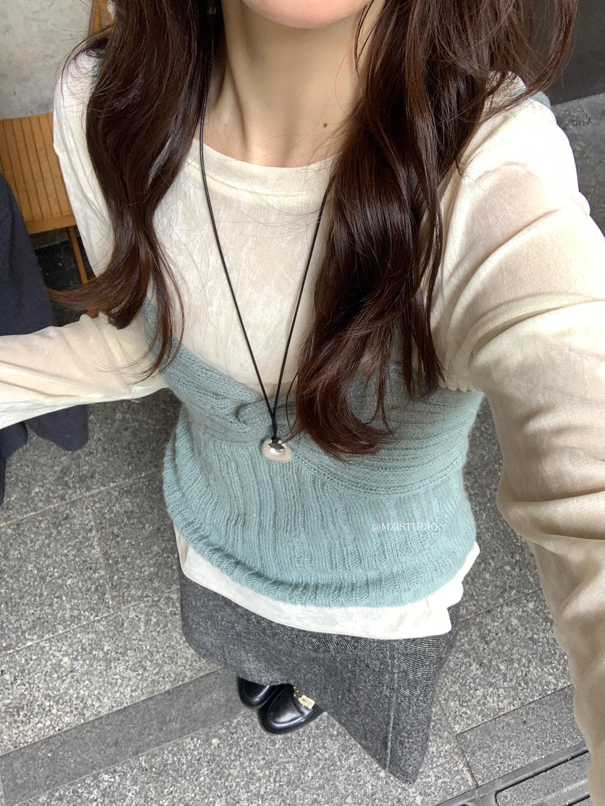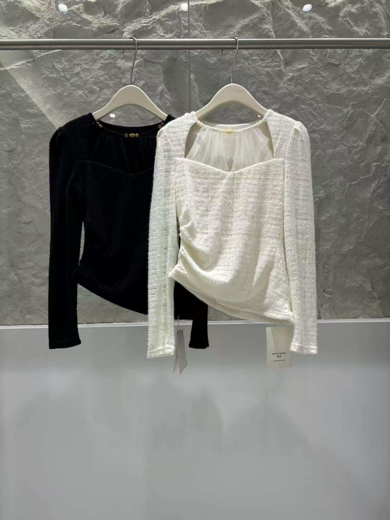 【C7934】冬上新法式純欲風小衆設計感網紗拼接長袖打底小衫