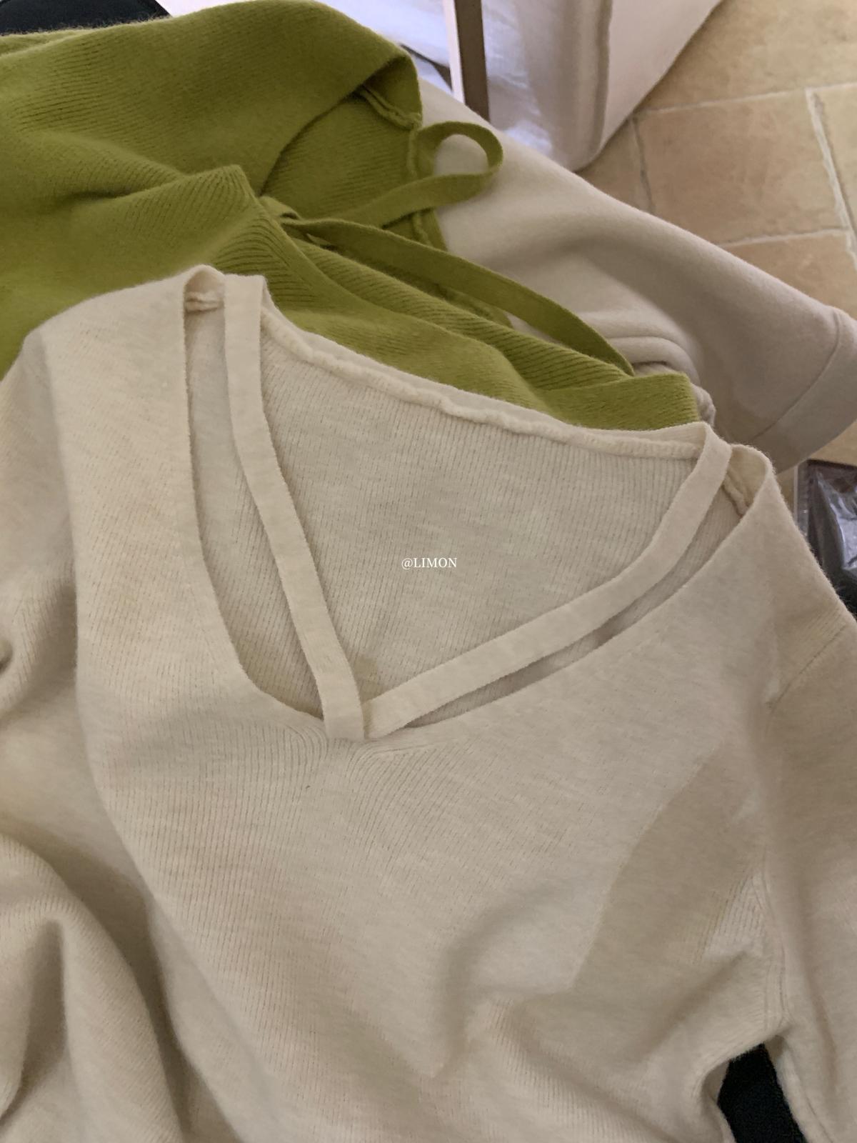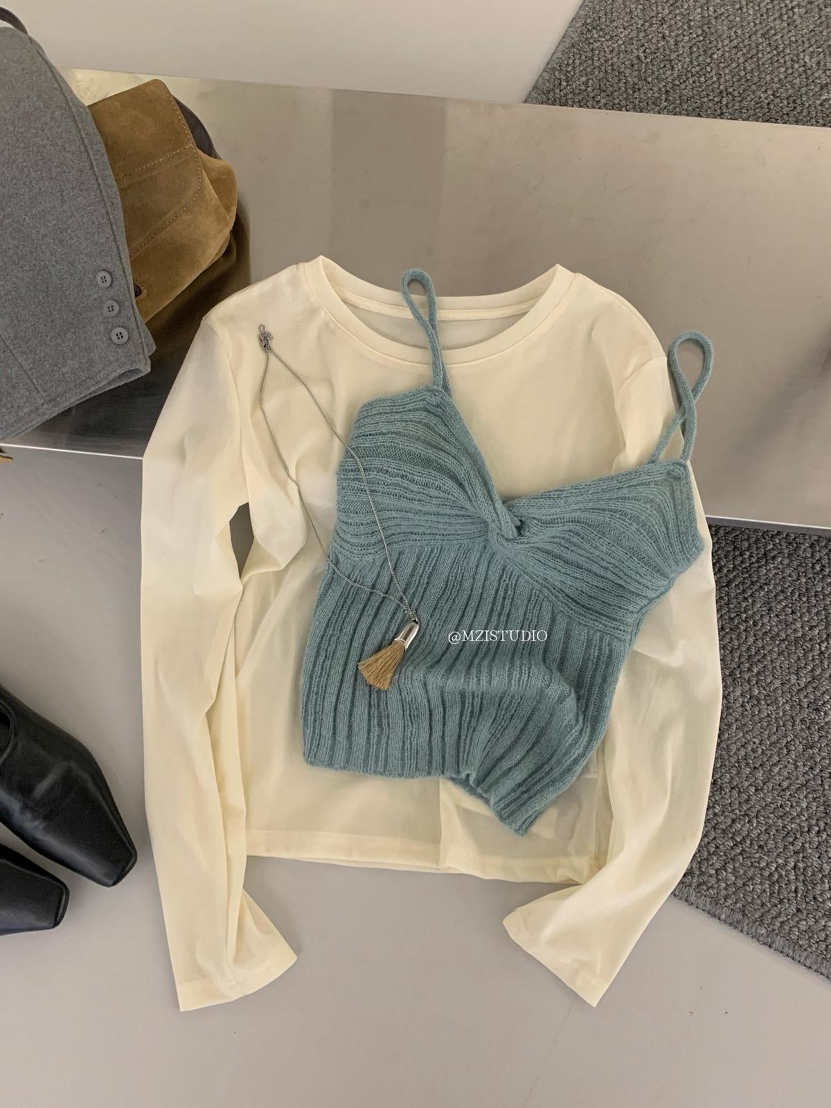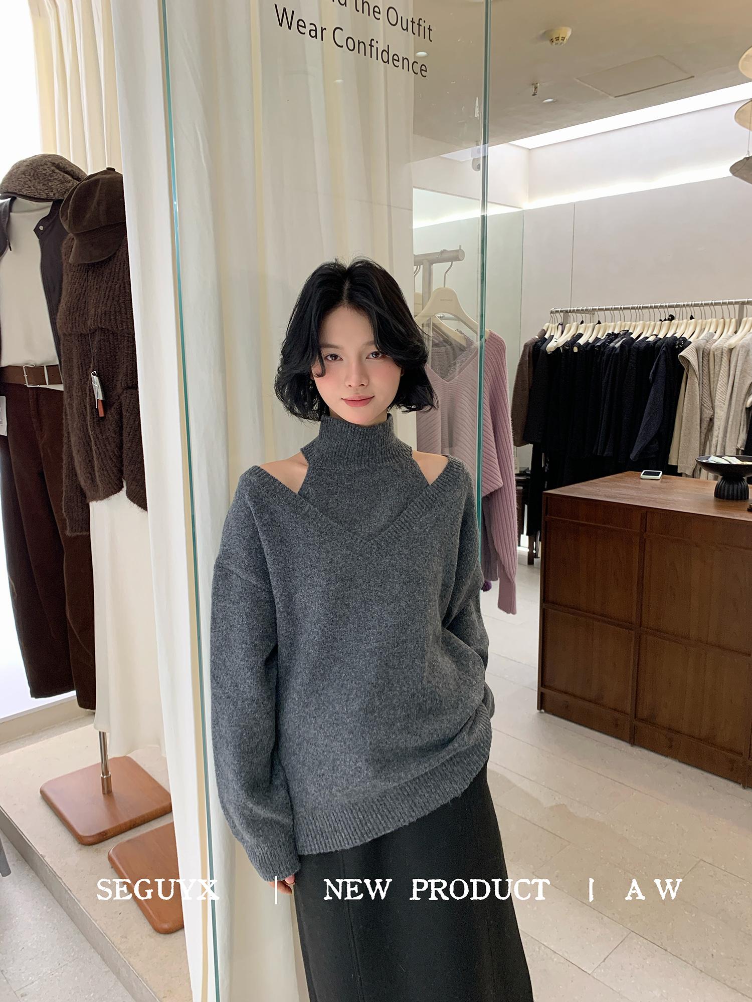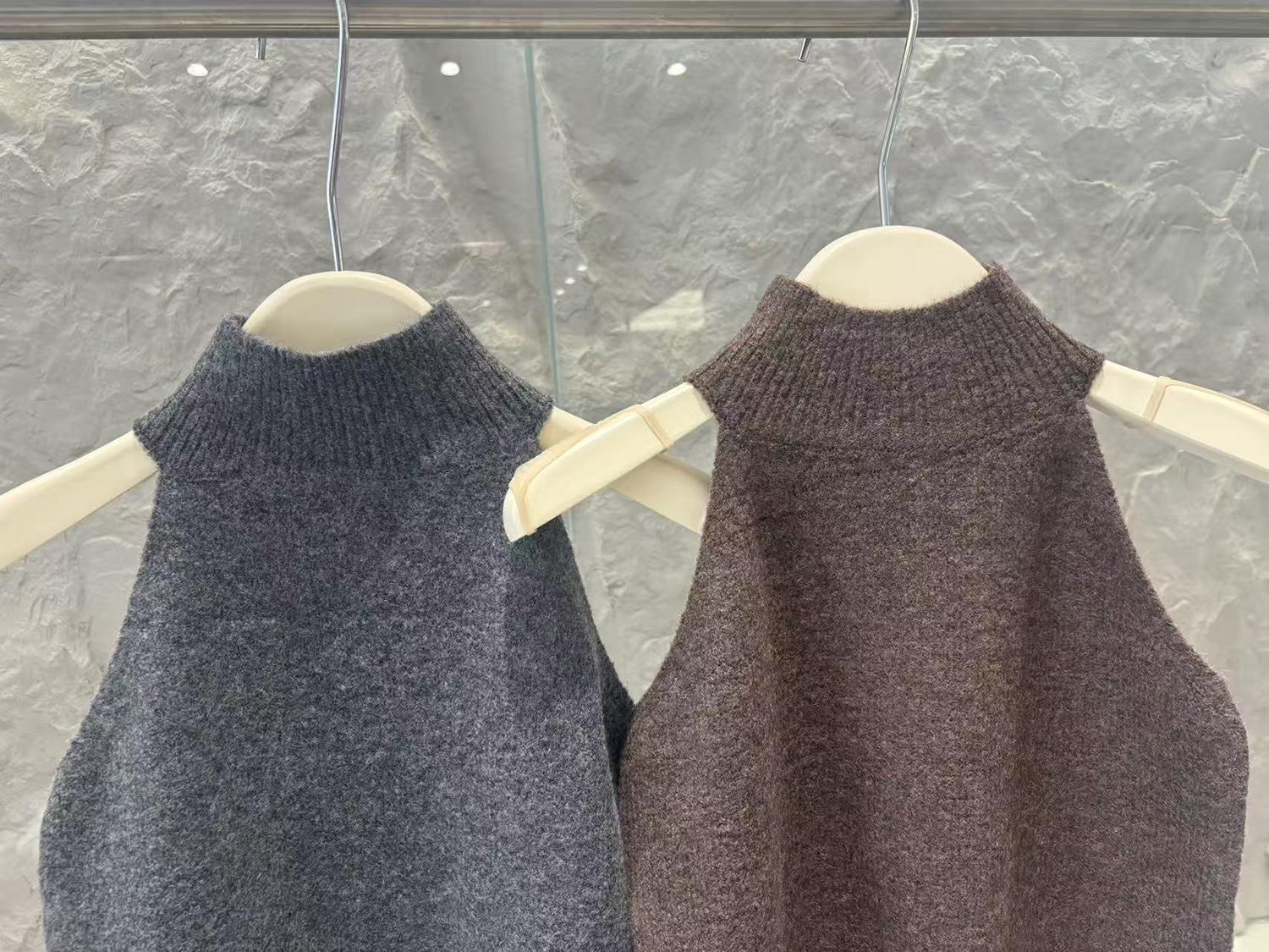 【C7932】高級感針織兩件套V領寬鬆百搭毛衣+掛脖露肩背心套裝(含10%羊毛)