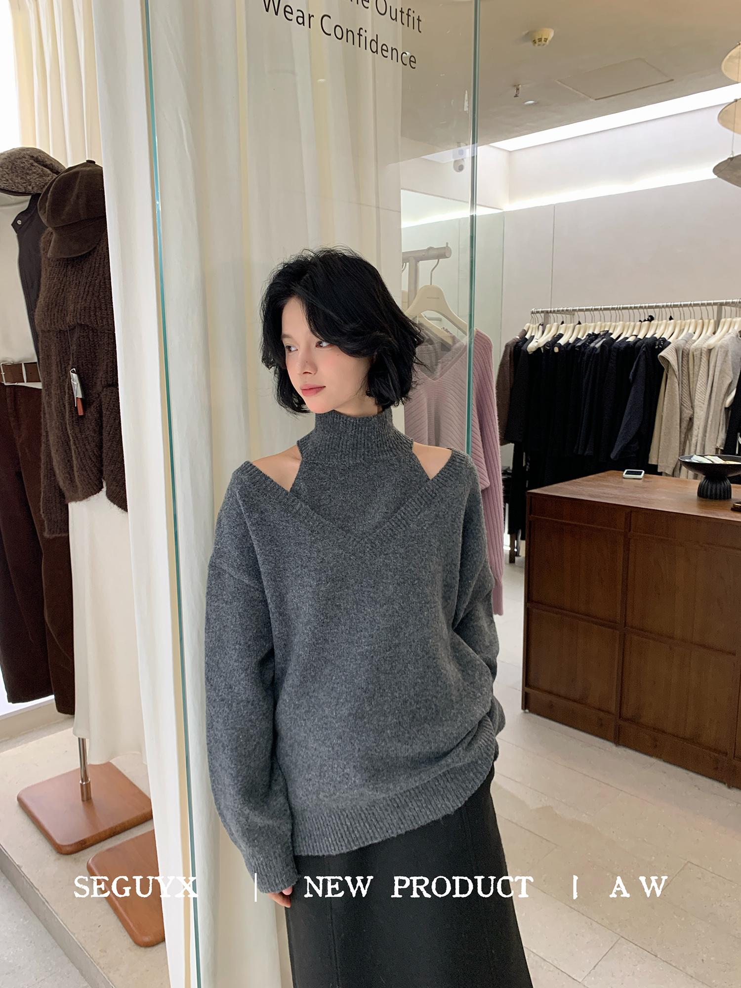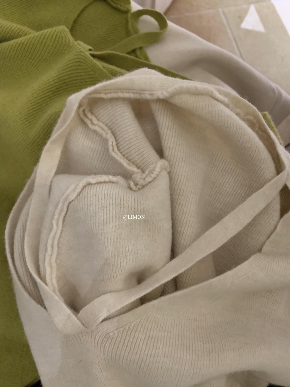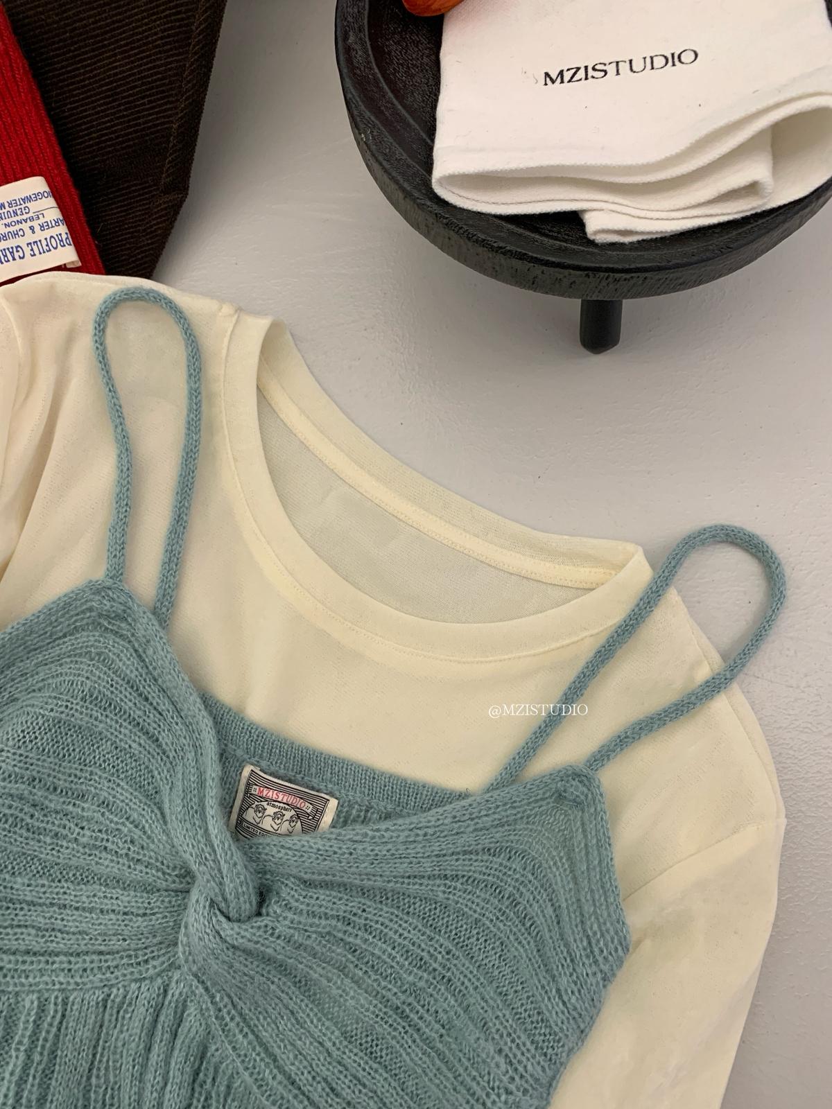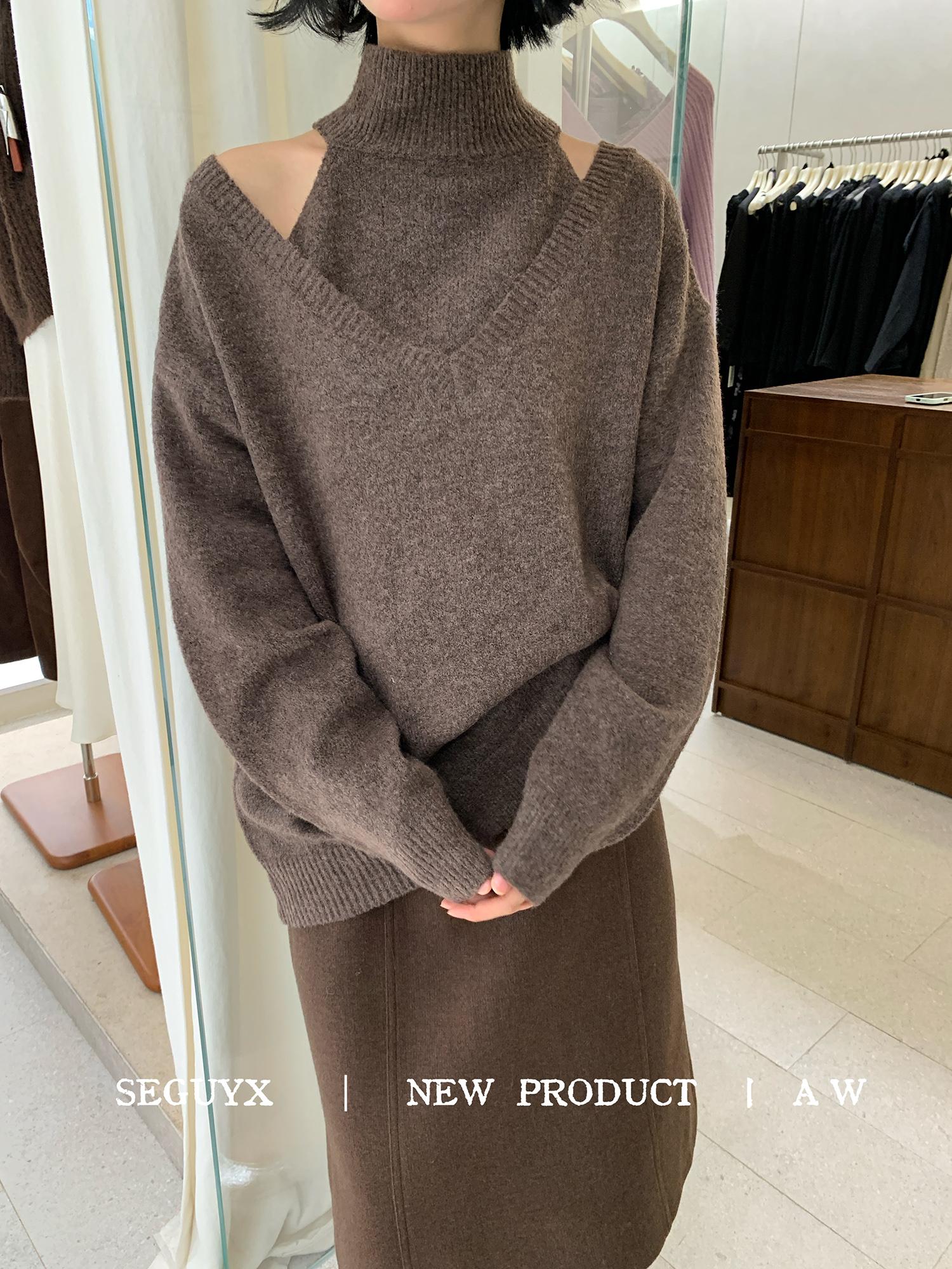 【C7932】高級感針織兩件套V領寬鬆百搭毛衣+掛脖露肩背心套裝(含10%羊毛)
