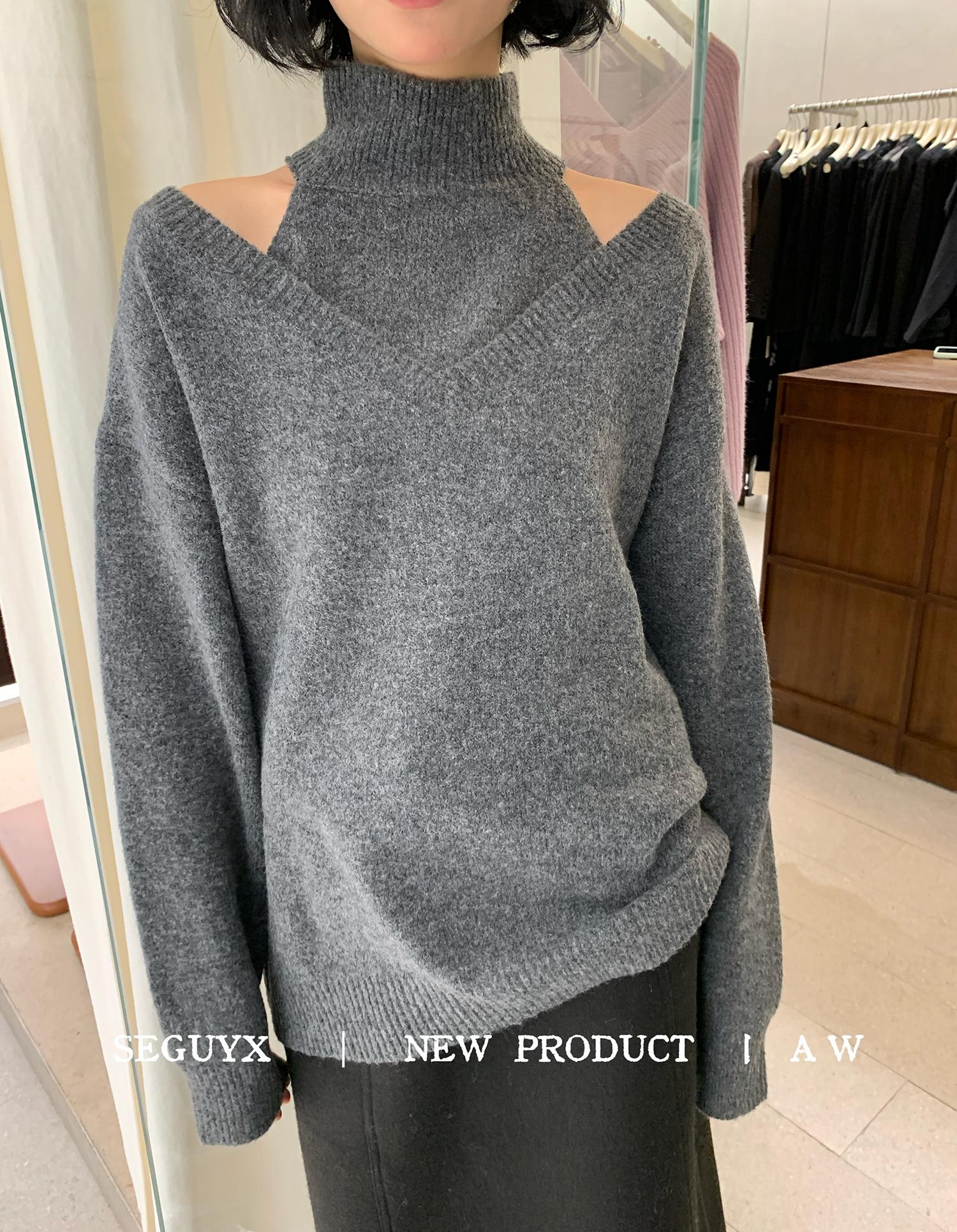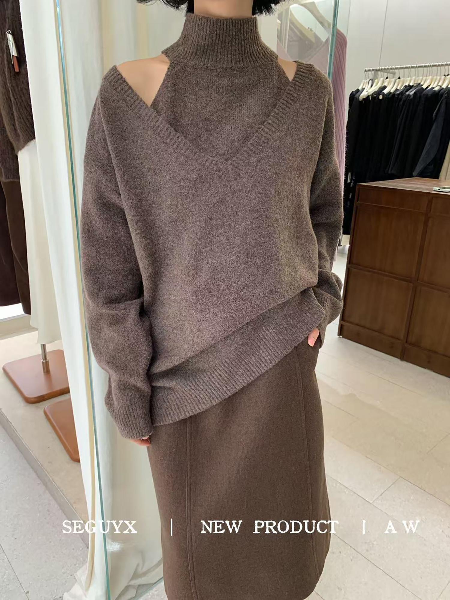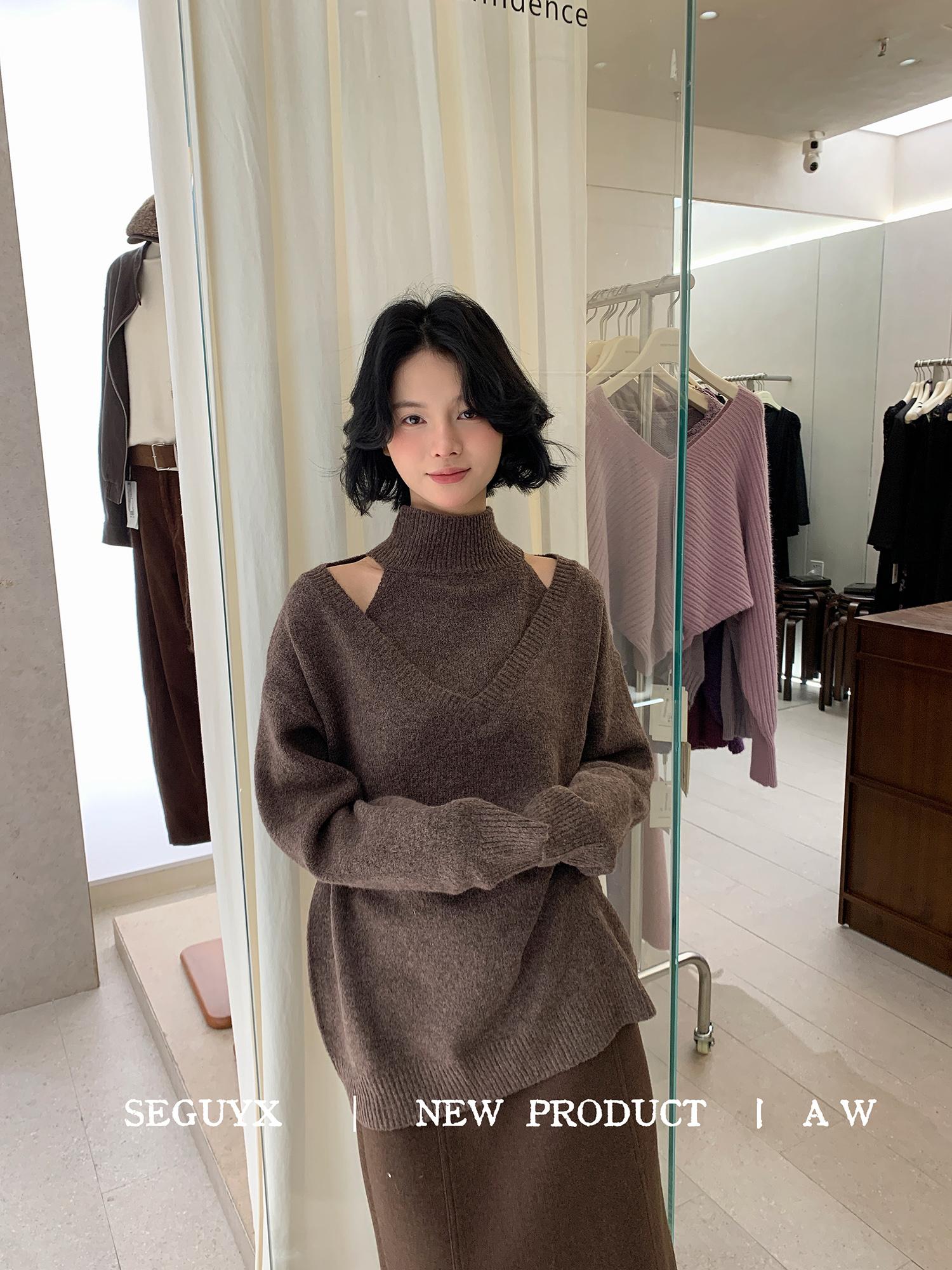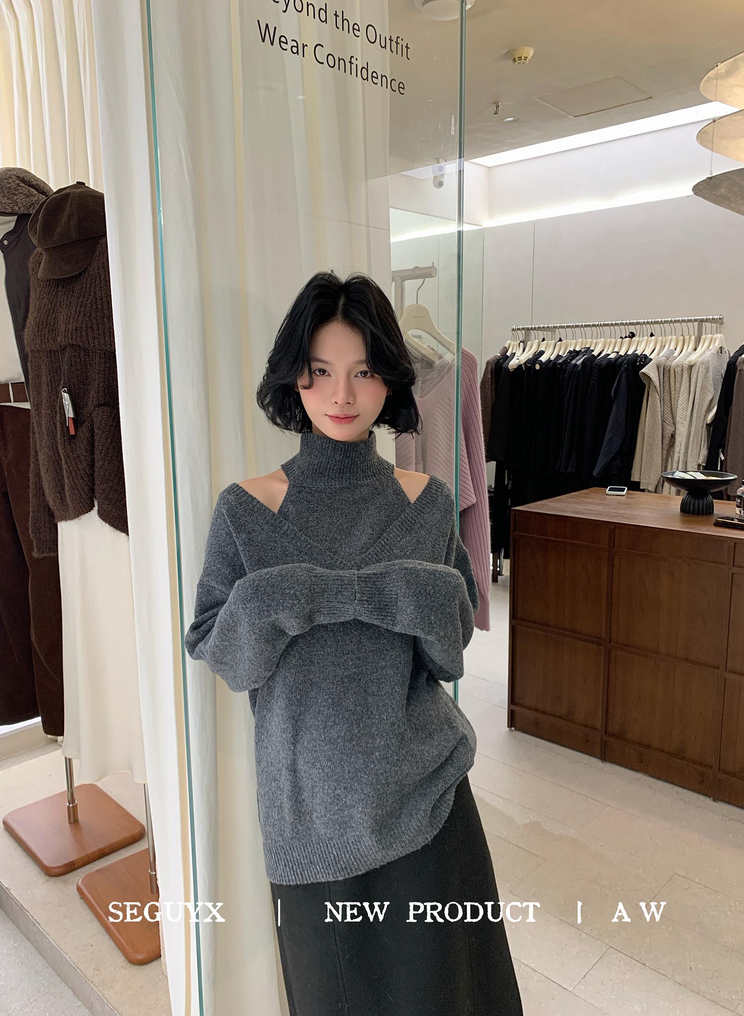 【C7932】高級感針織兩件套V領寬鬆百搭毛衣+掛脖露肩背心套裝(含10%羊毛)