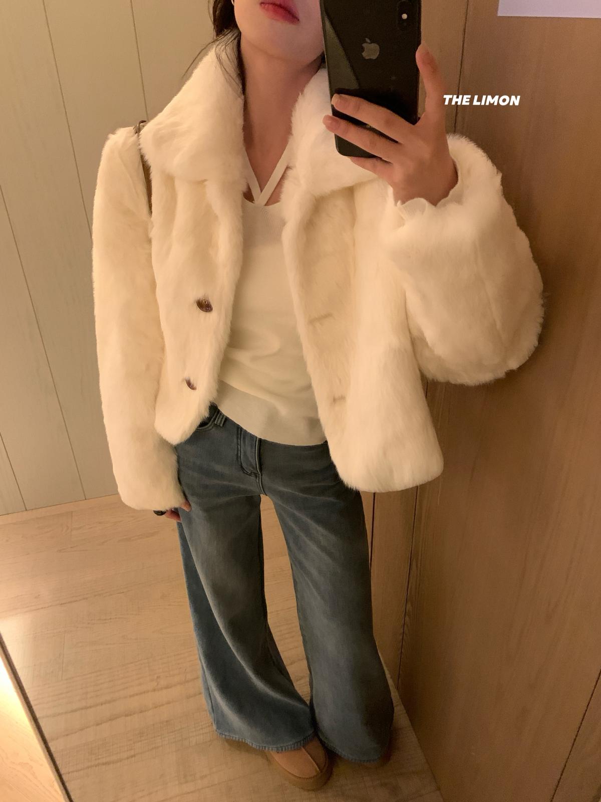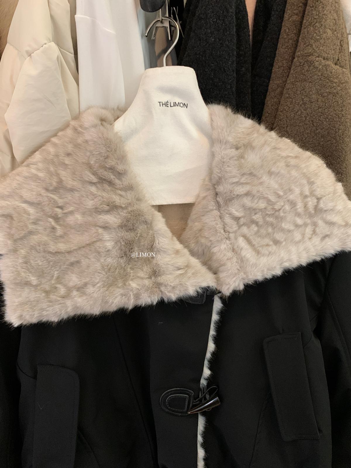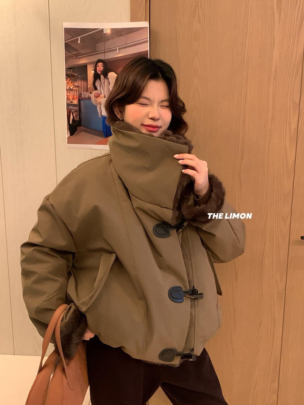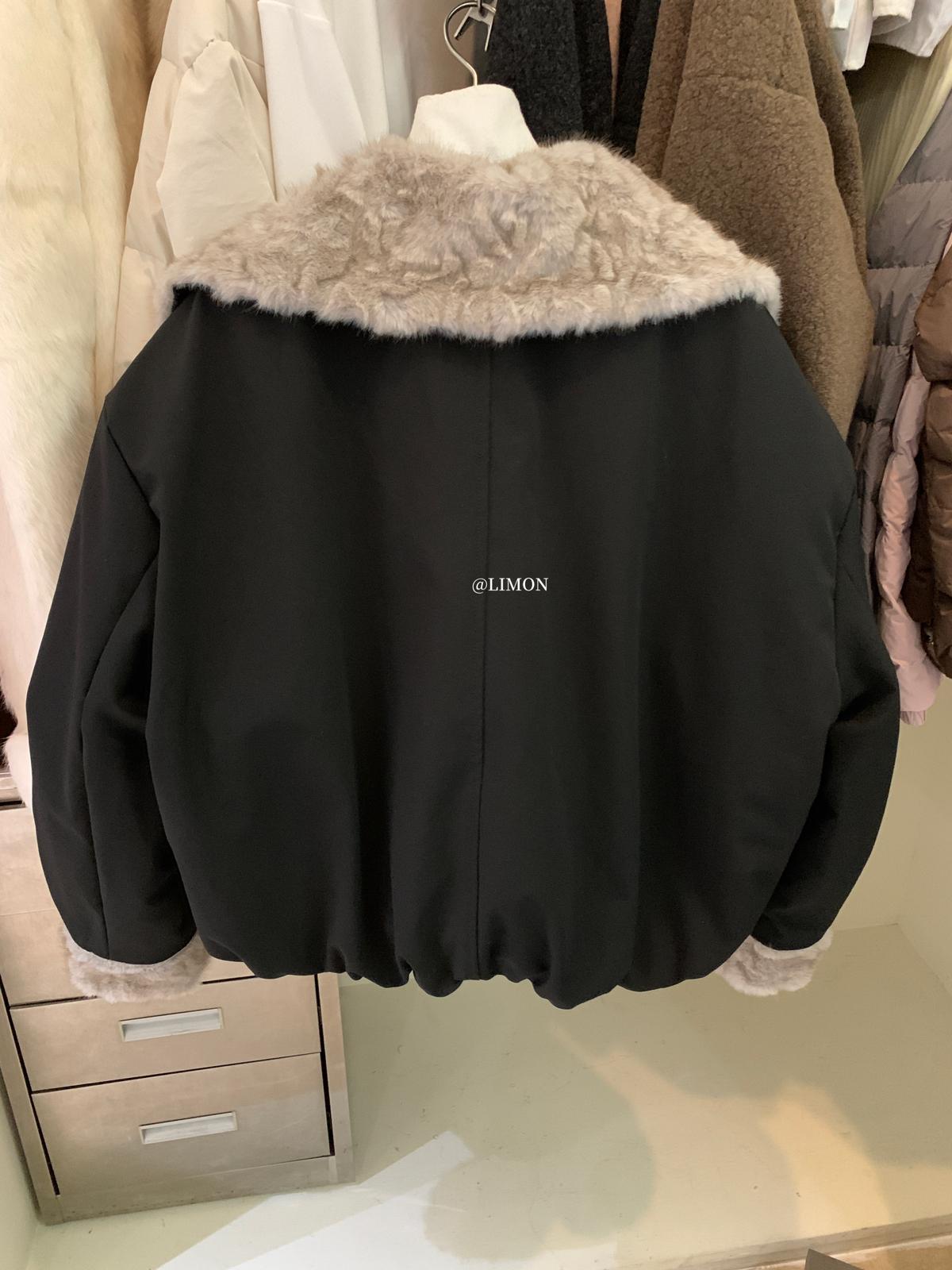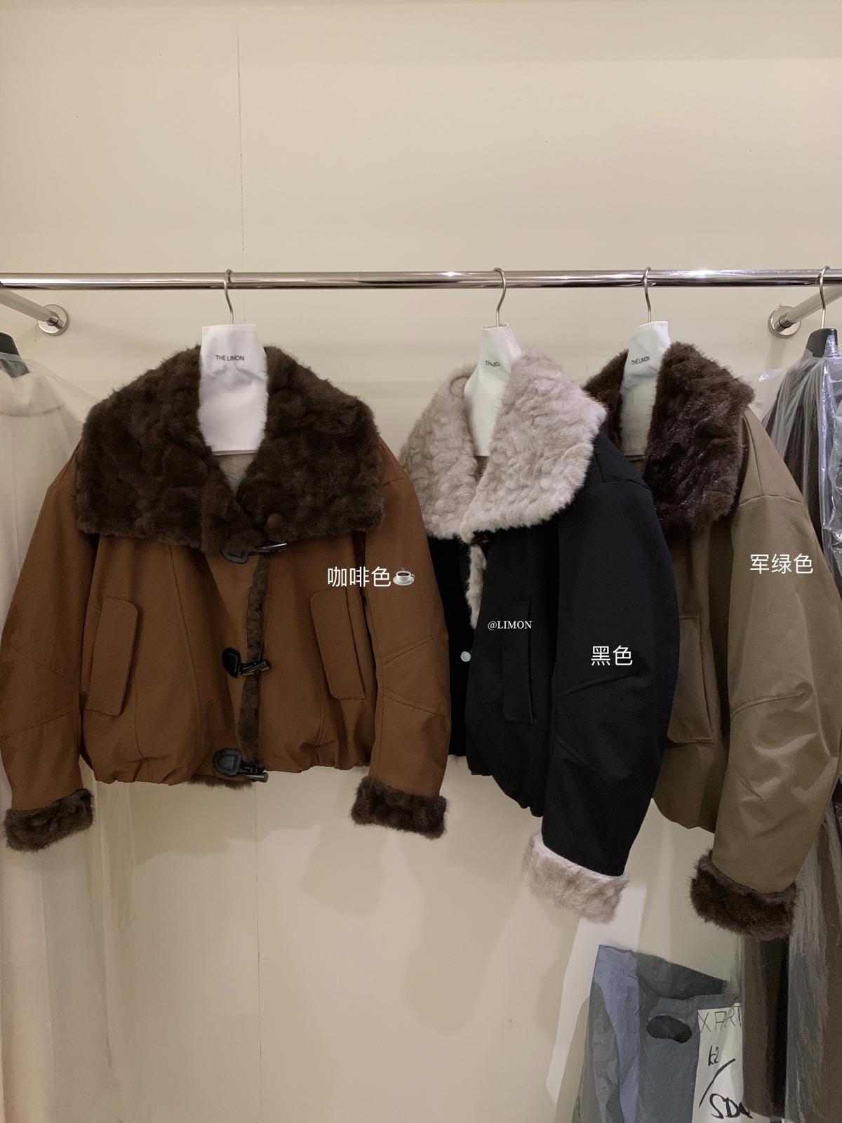 【C7909】環保毛翻領百搭牛角扣毛毛短外套