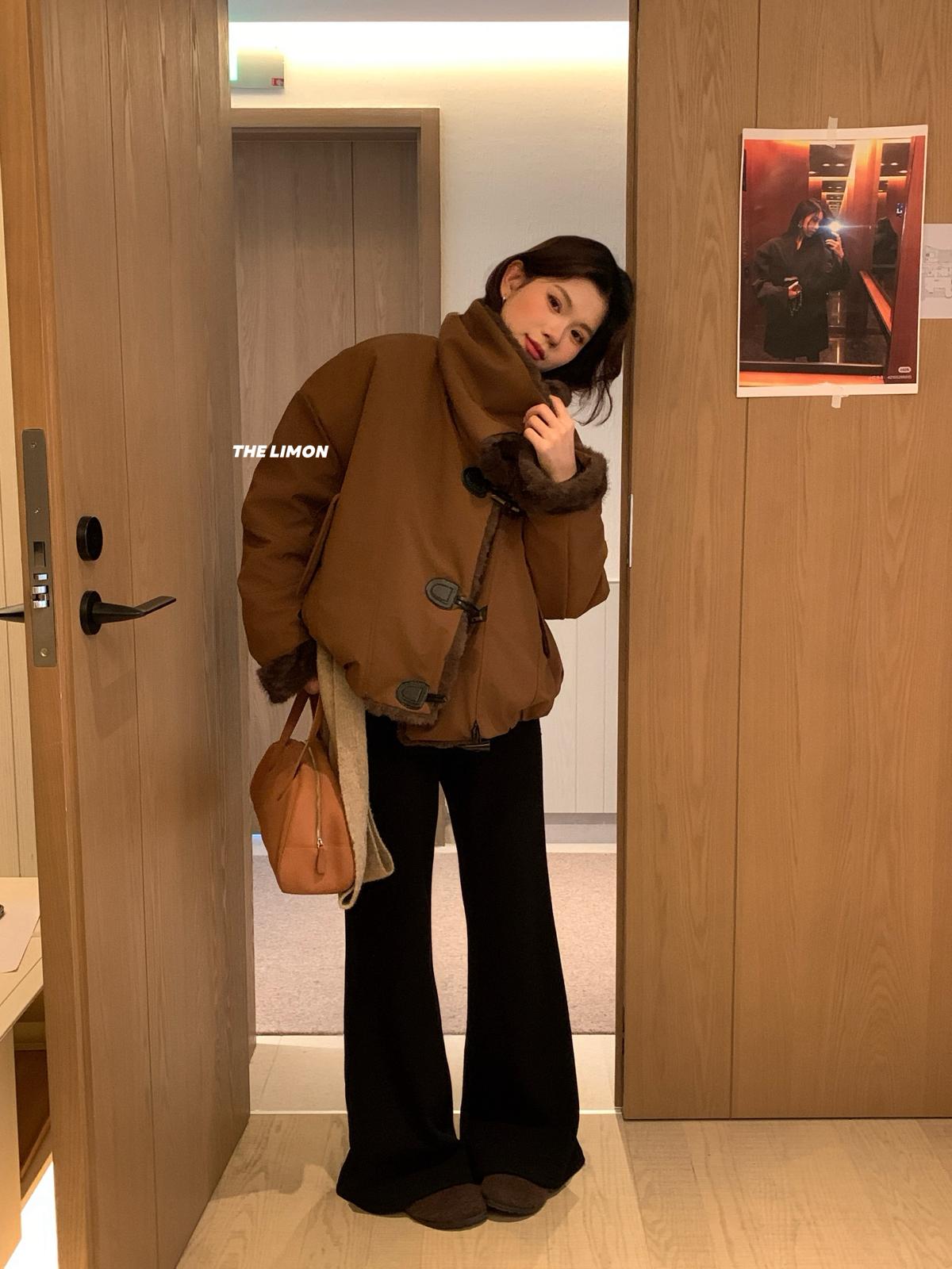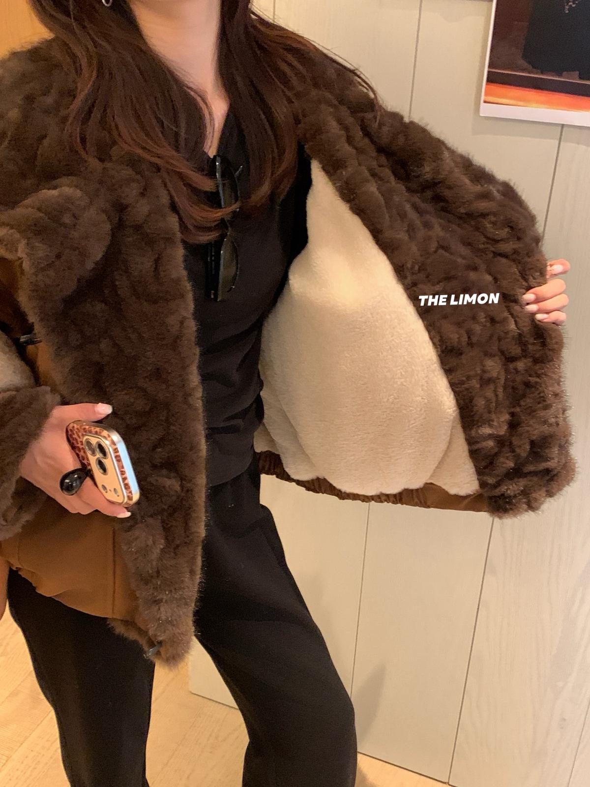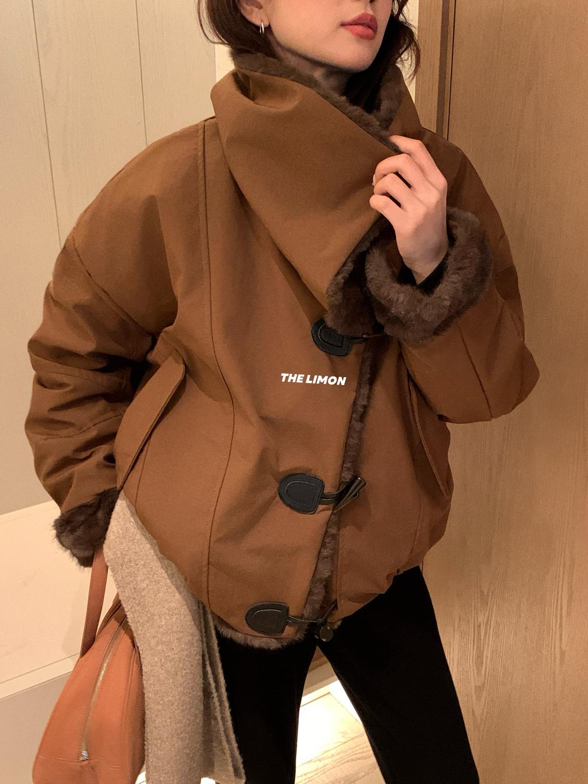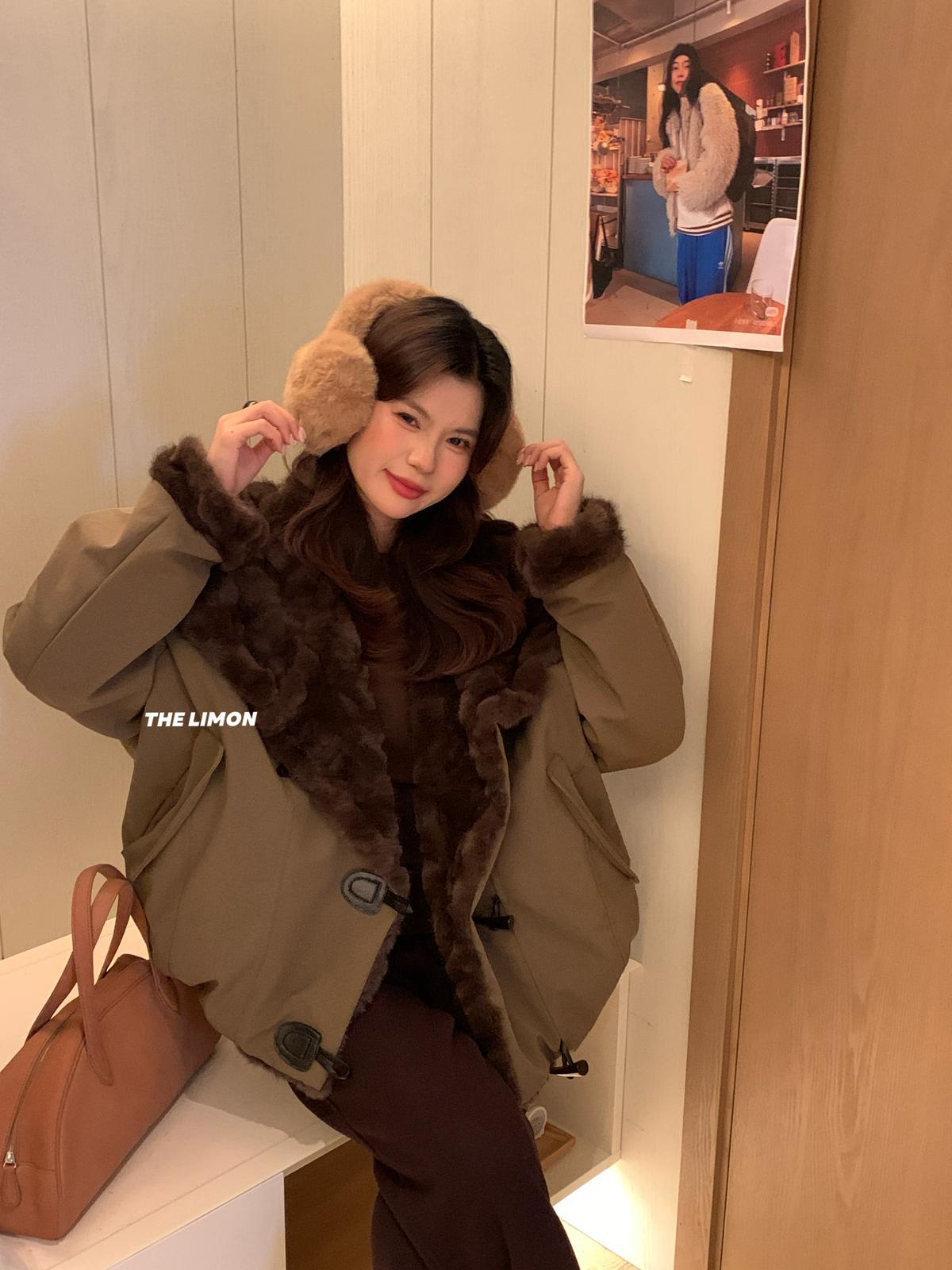 【C7909】環保毛翻領百搭牛角扣毛毛短外套