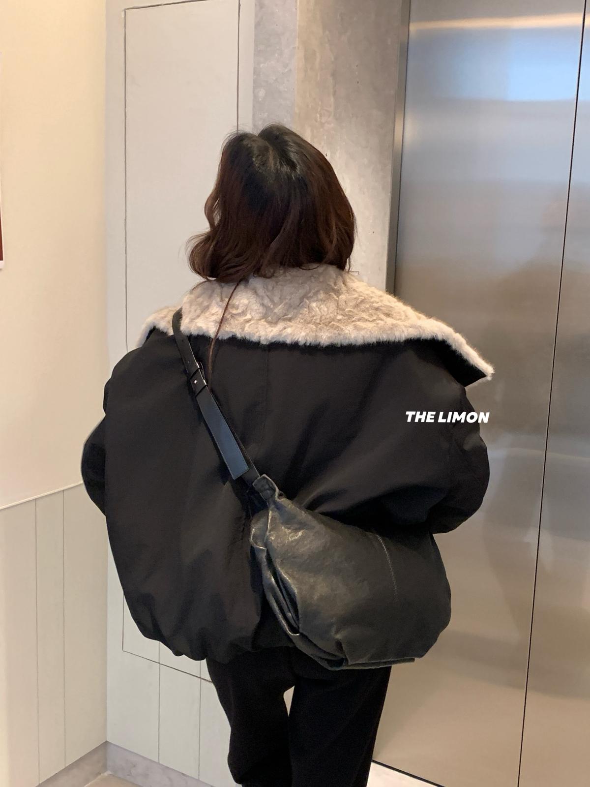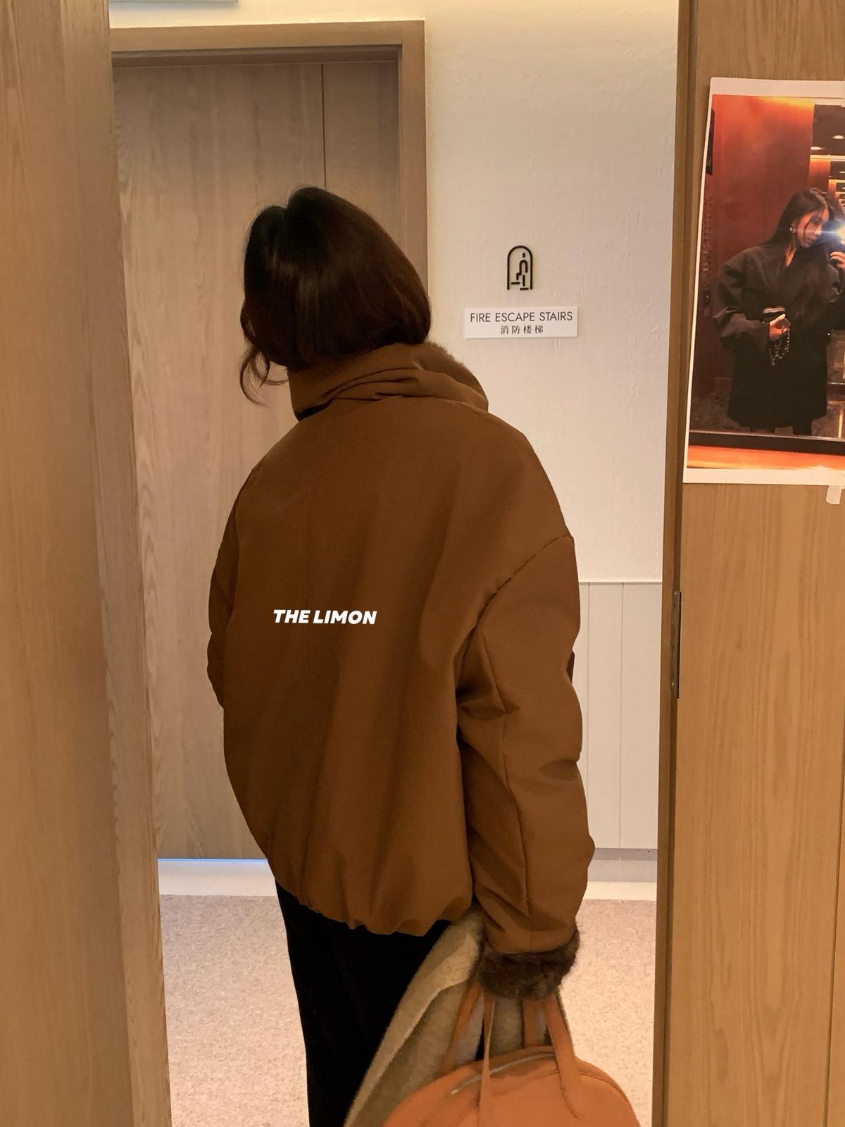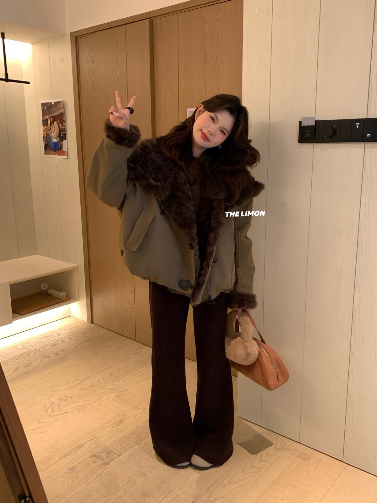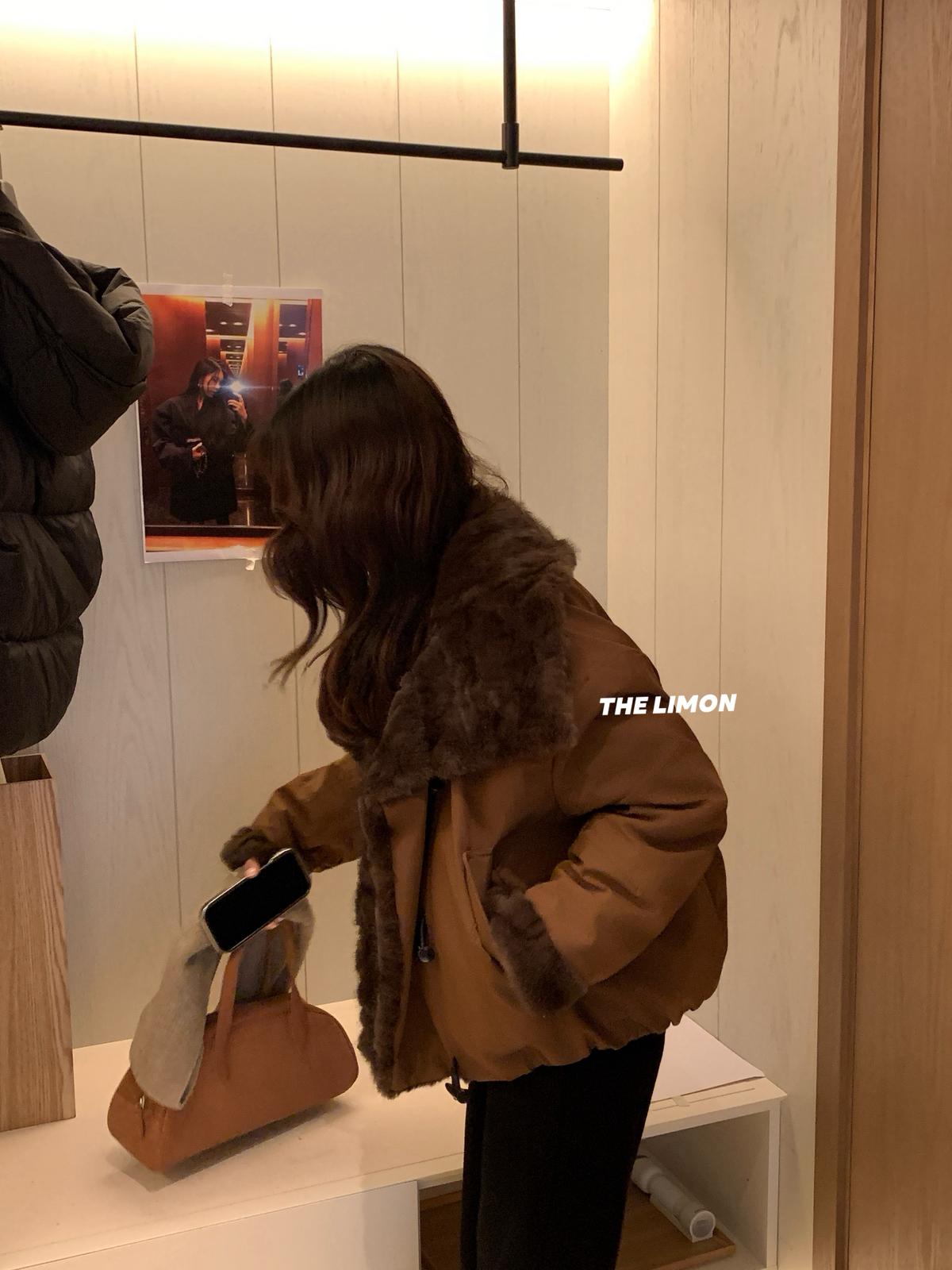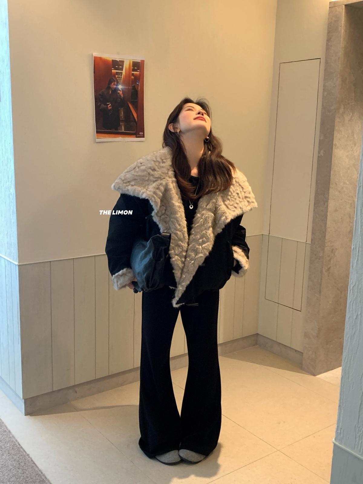 【C7909】環保毛翻領百搭牛角扣毛毛短外套