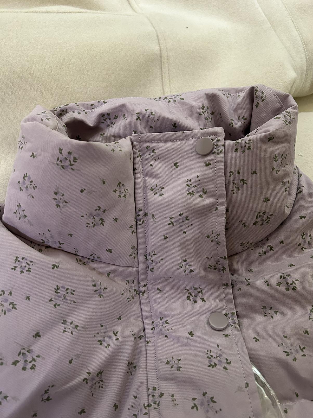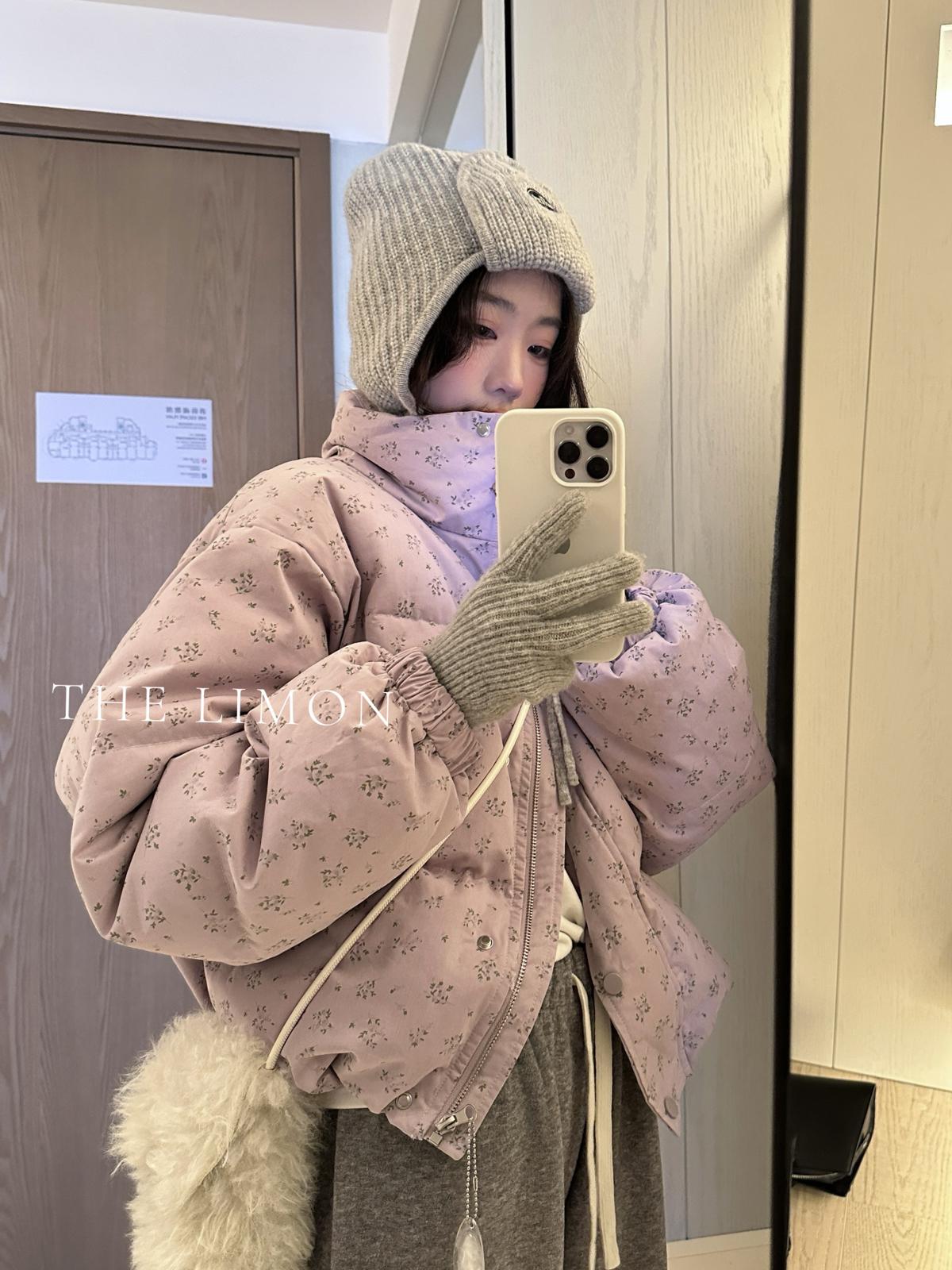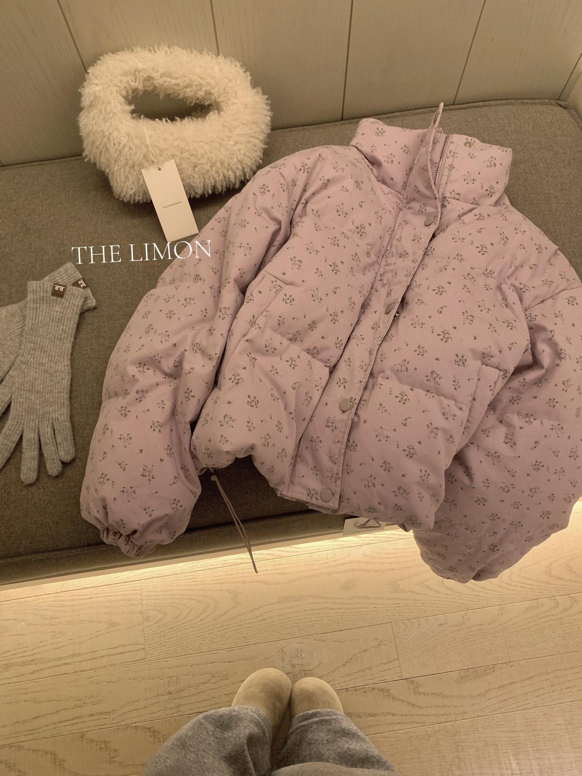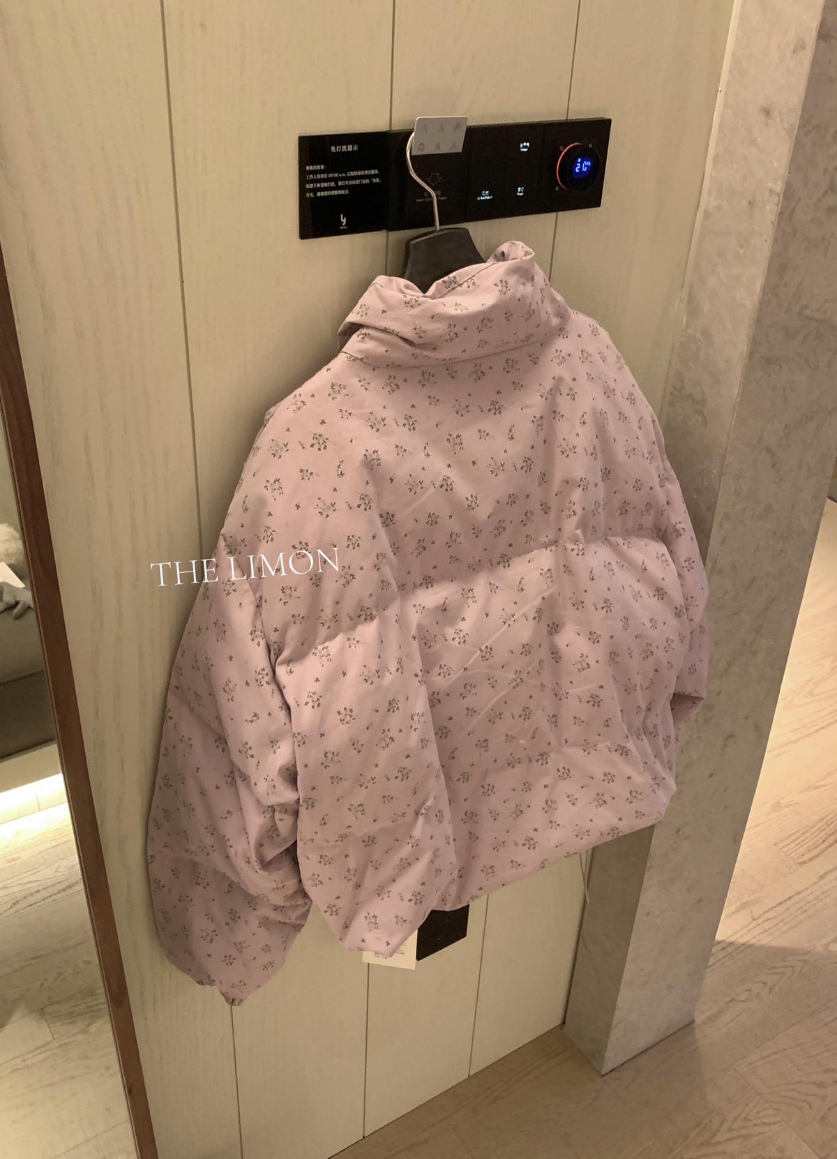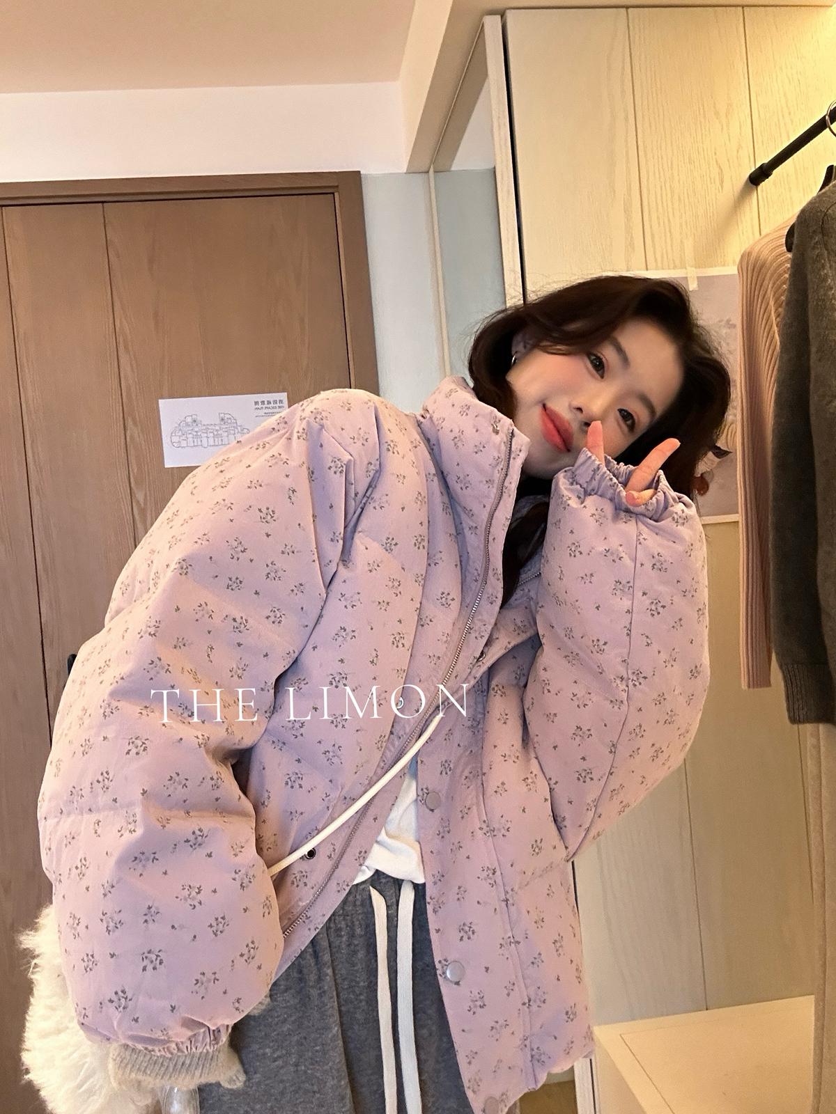 【C7910】清新立領紫色小花保暖羽絨服外套