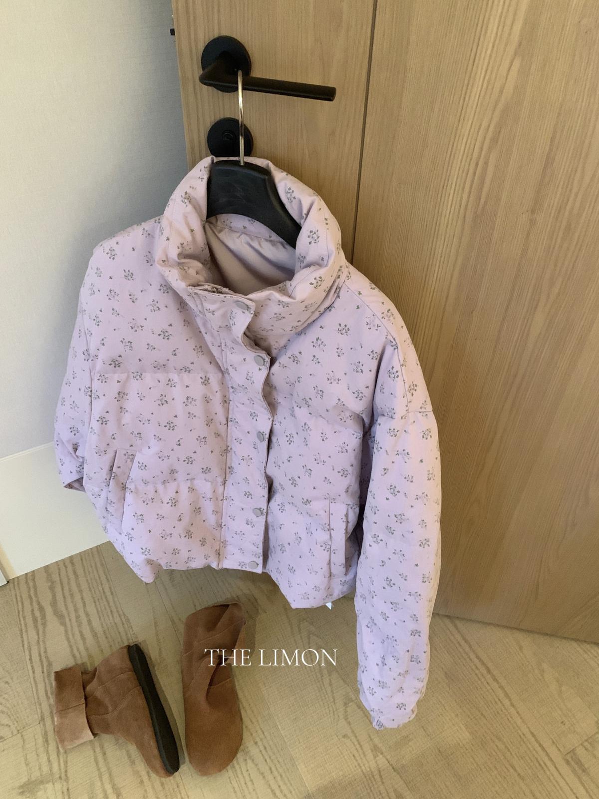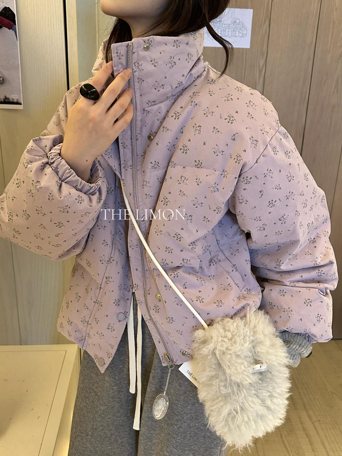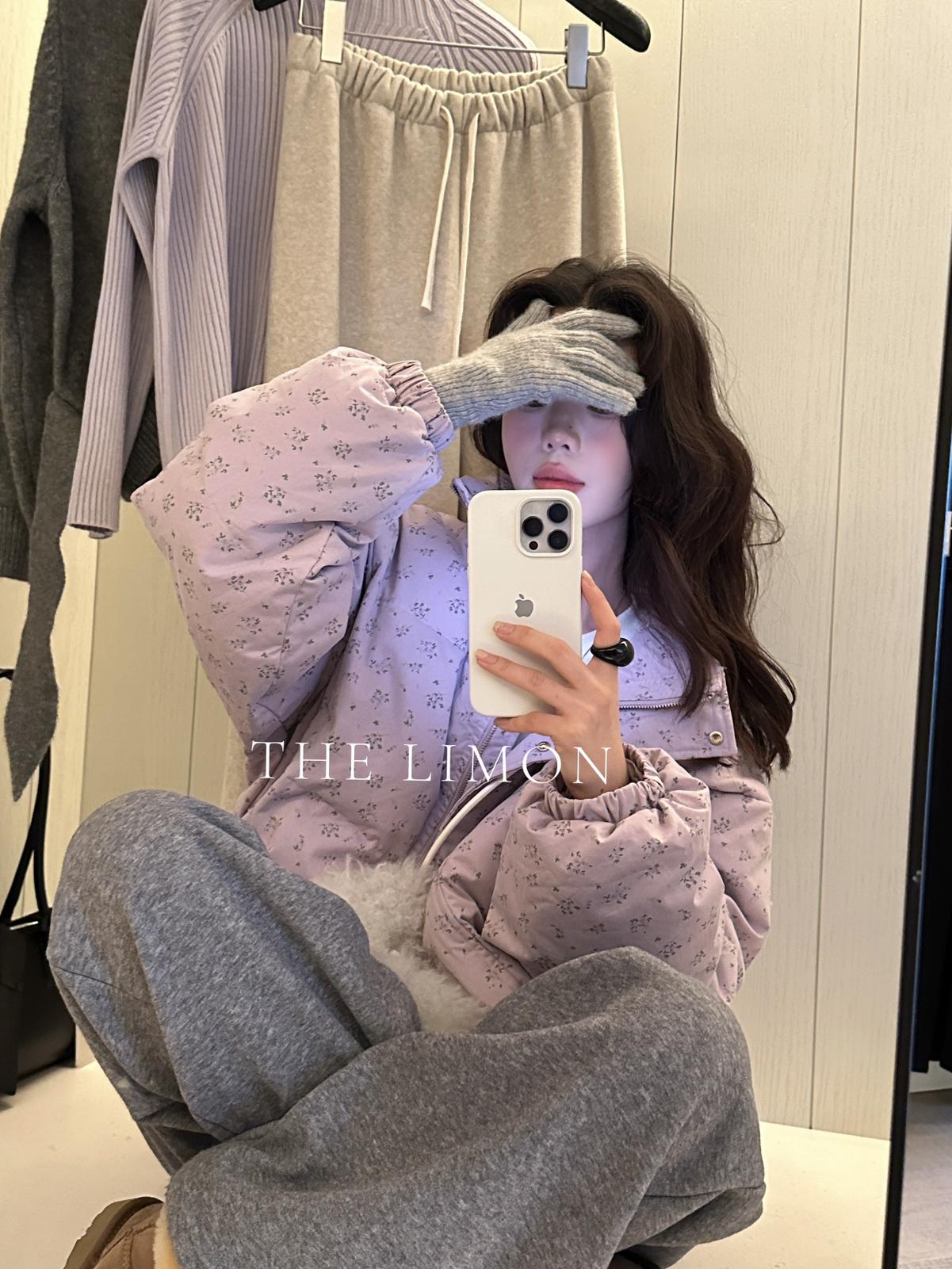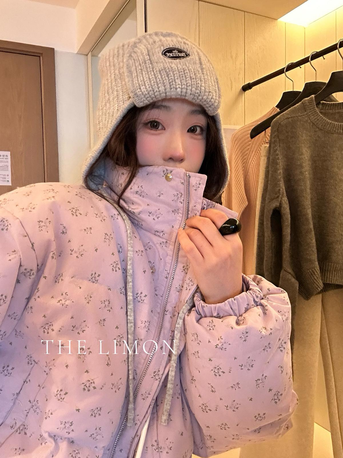 【C7910】清新立領紫色小花保暖羽絨服外套
