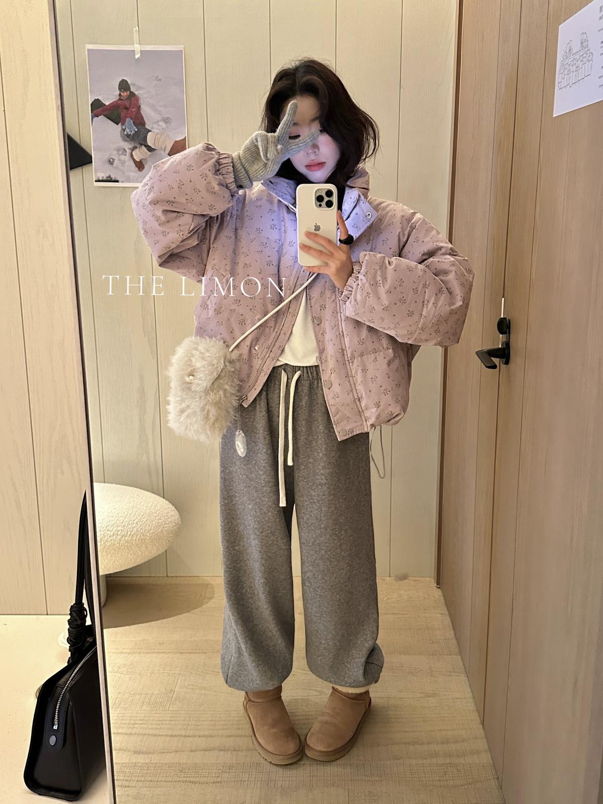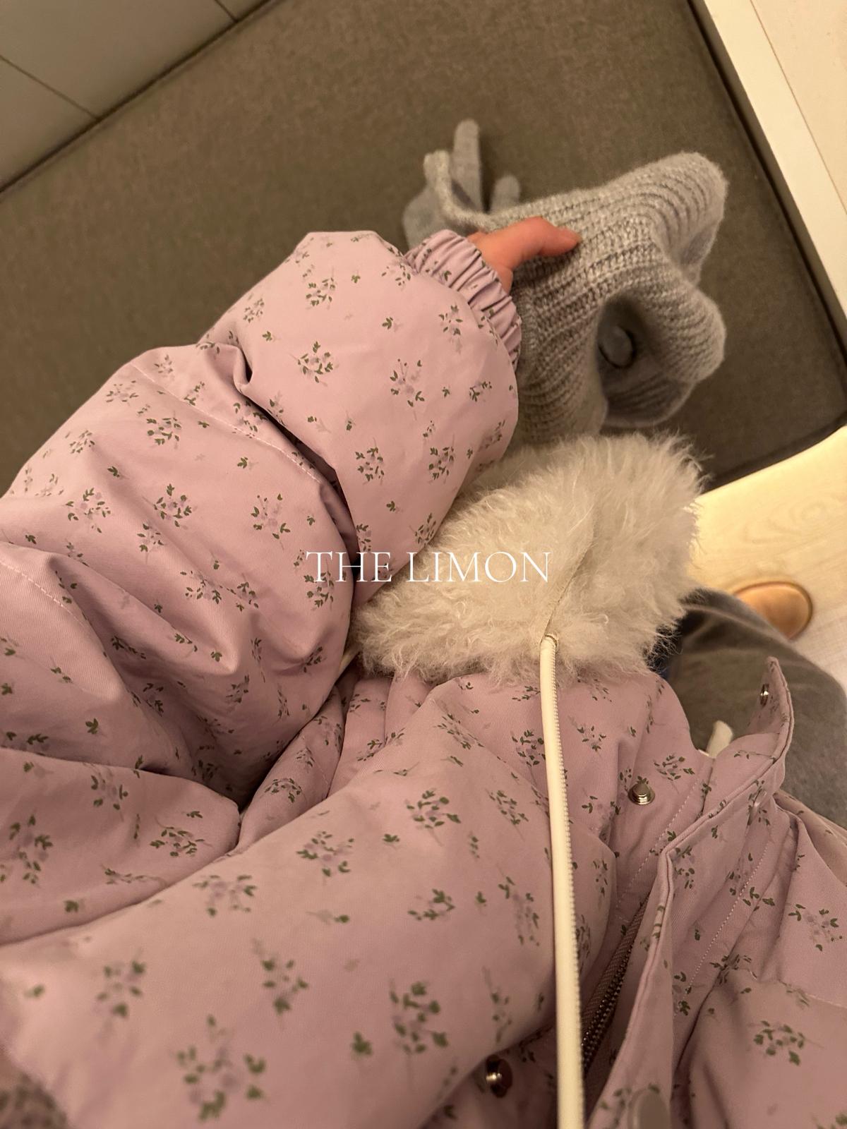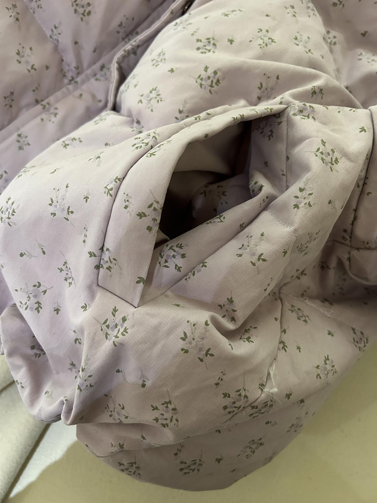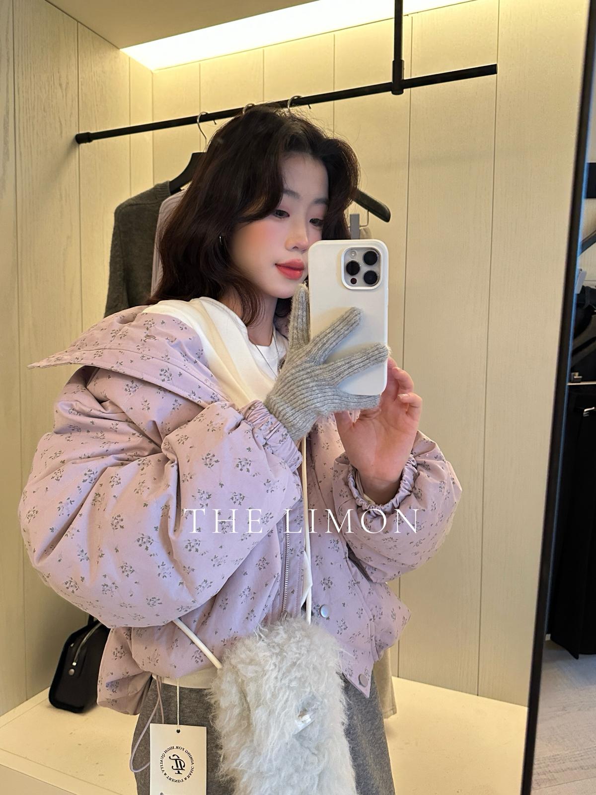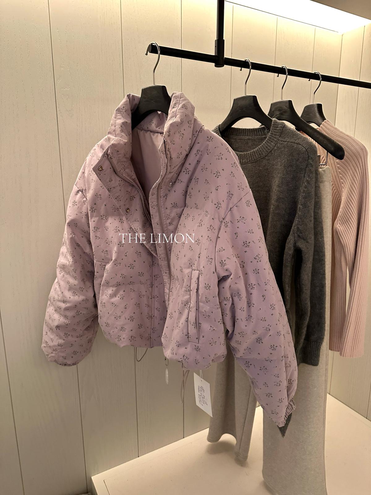 【C7910】清新立領紫色小花保暖羽絨服外套