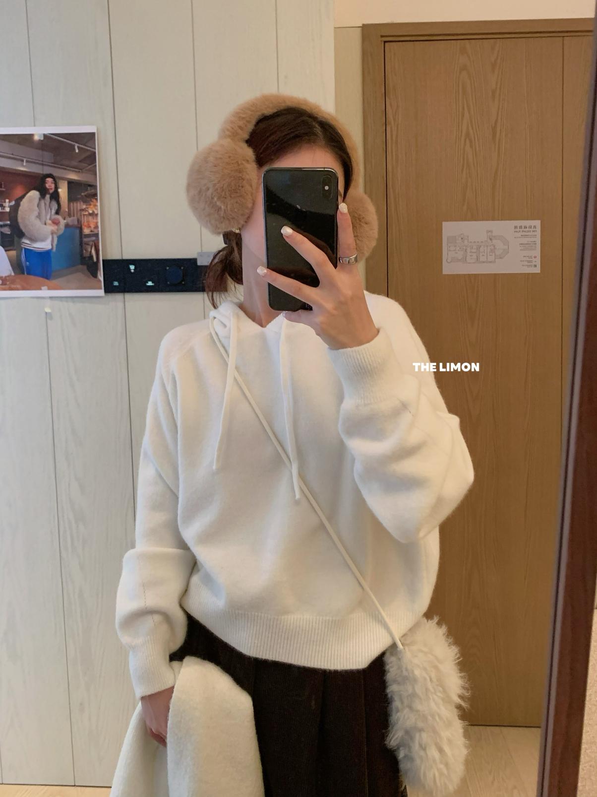 【C7913】慵懶感連帽抽繩北極絨保暖毛衣