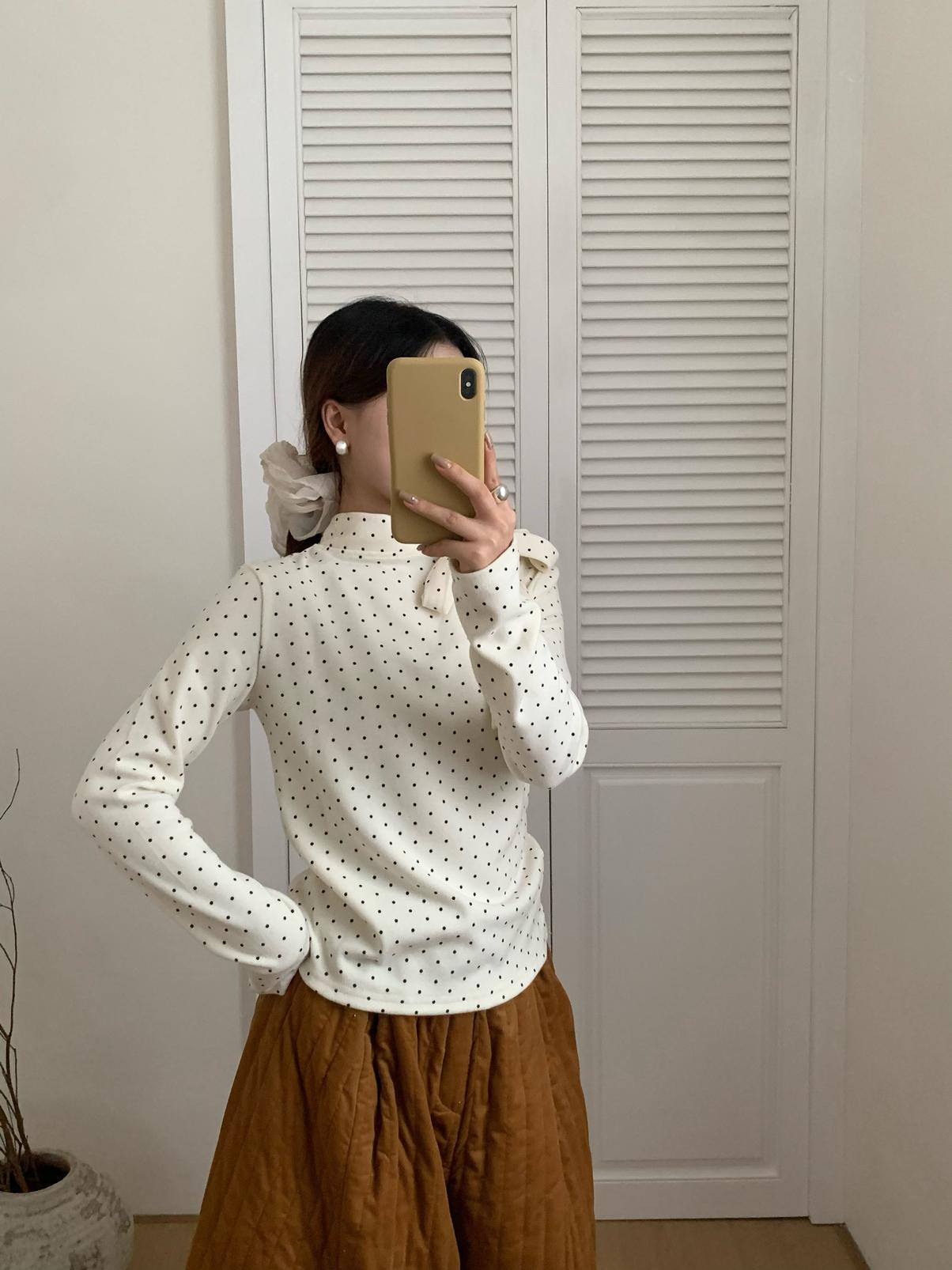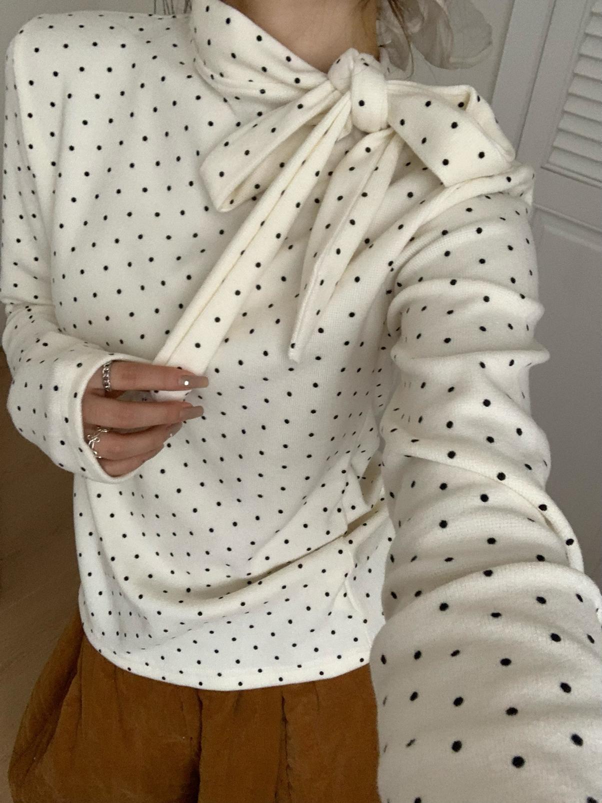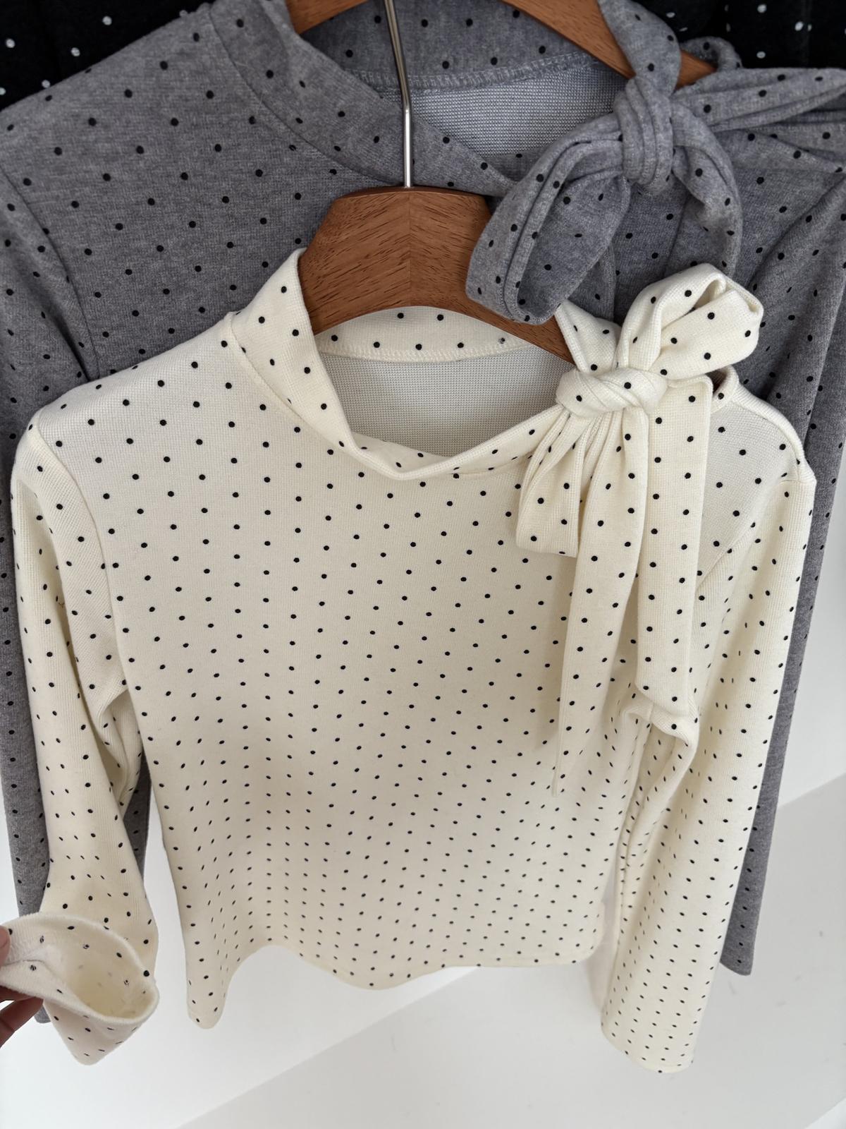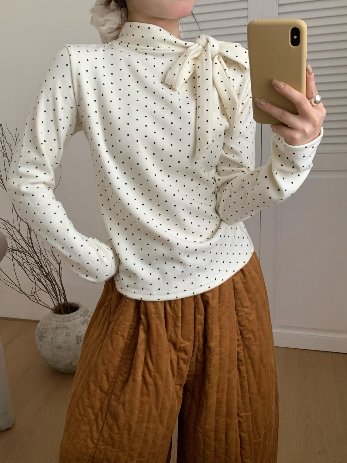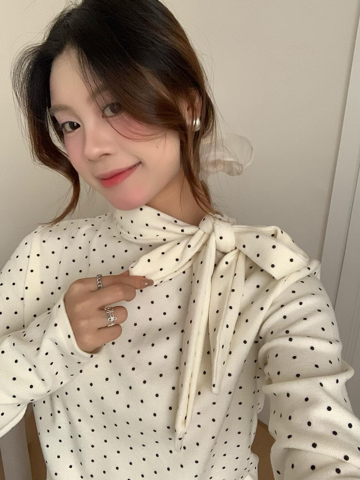 【C7914】韓系波點綁帶氣質休閒上衣女冬季新款顯瘦簡約設計感疊穿打底衫