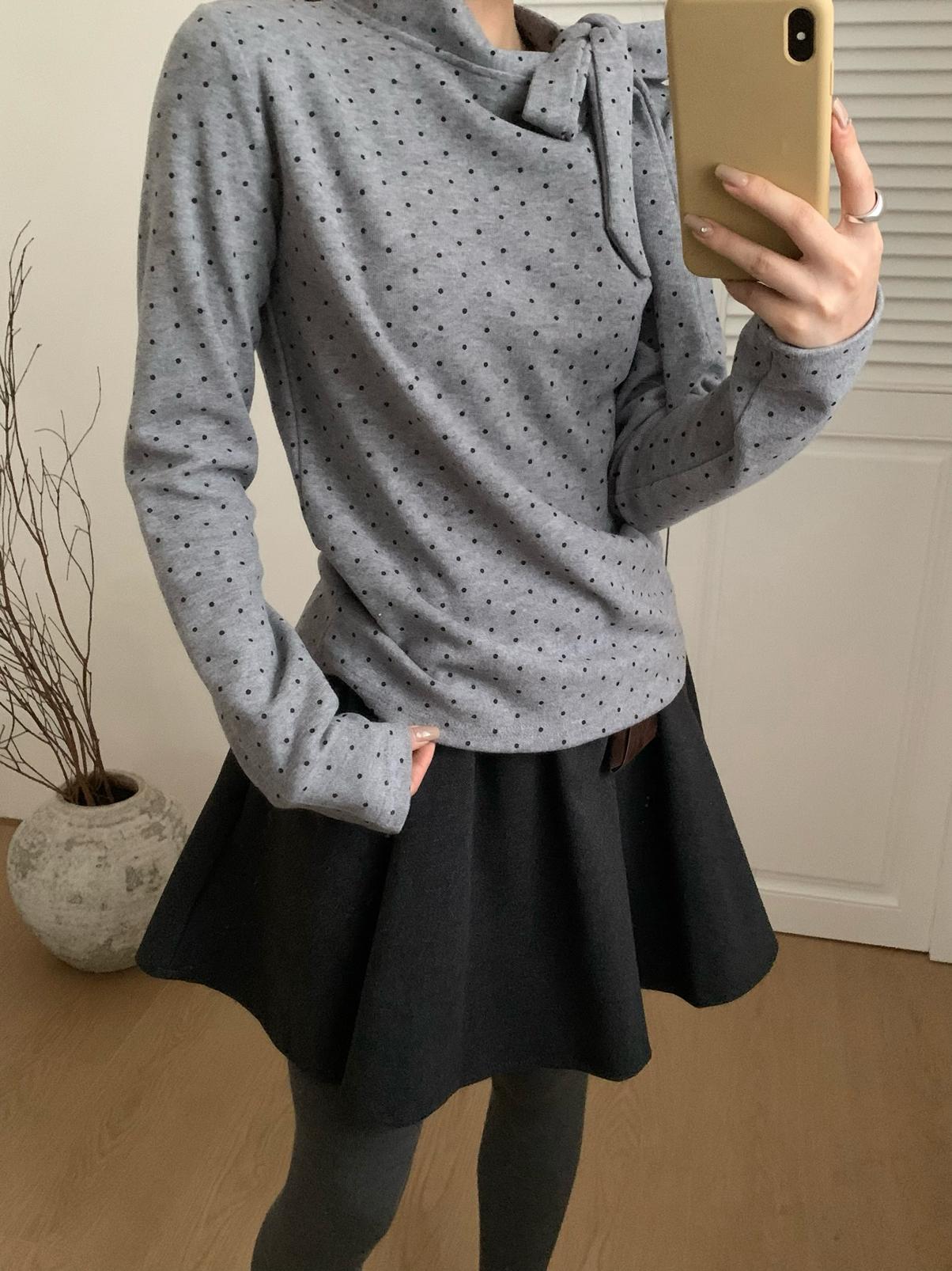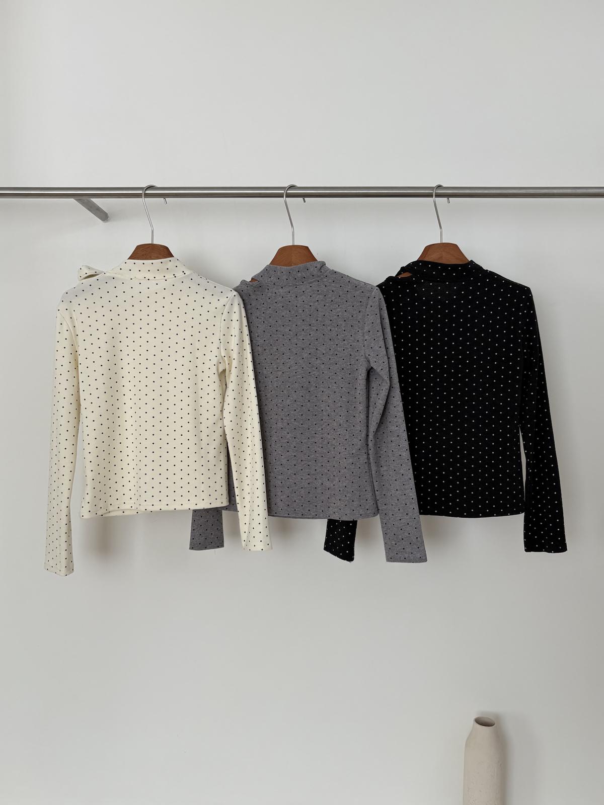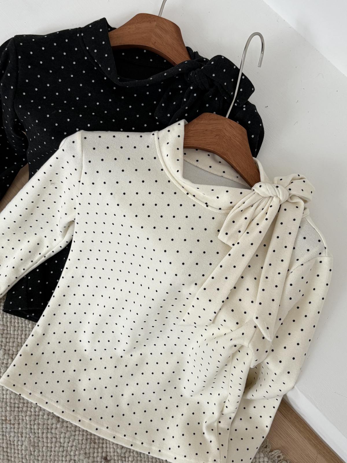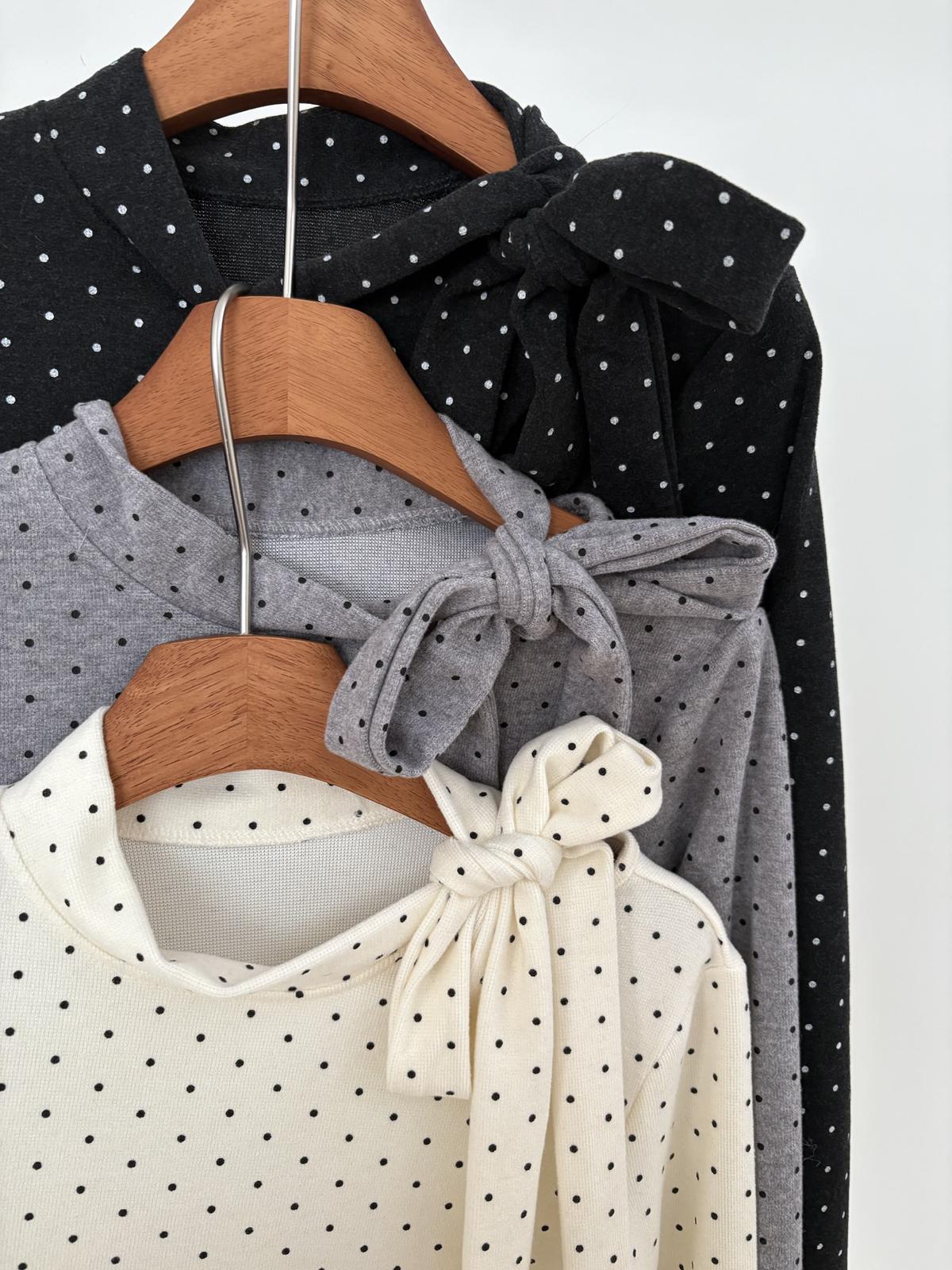 【C7914】韓系波點綁帶氣質休閒上衣女冬季新款顯瘦簡約設計感疊穿打底衫