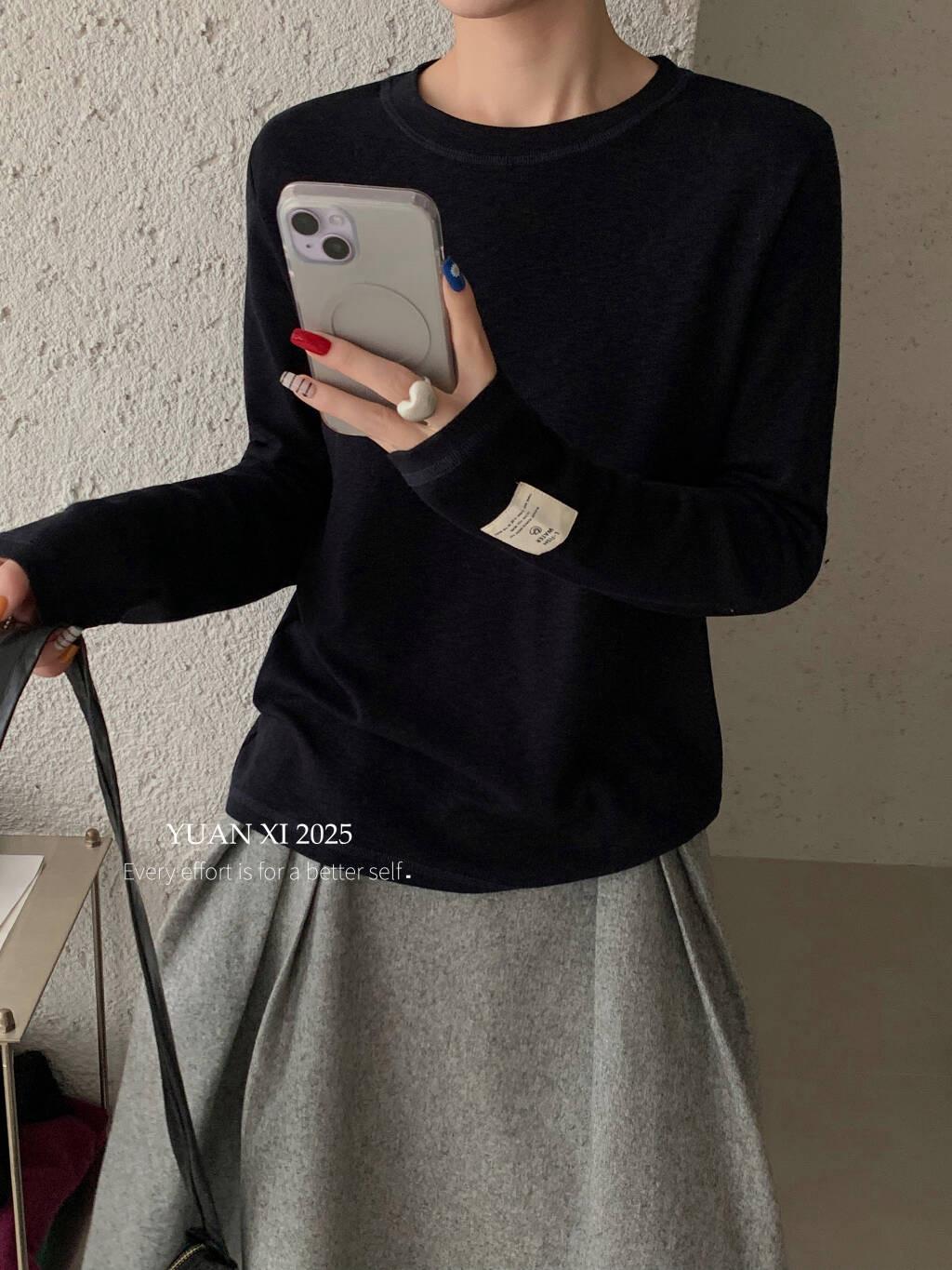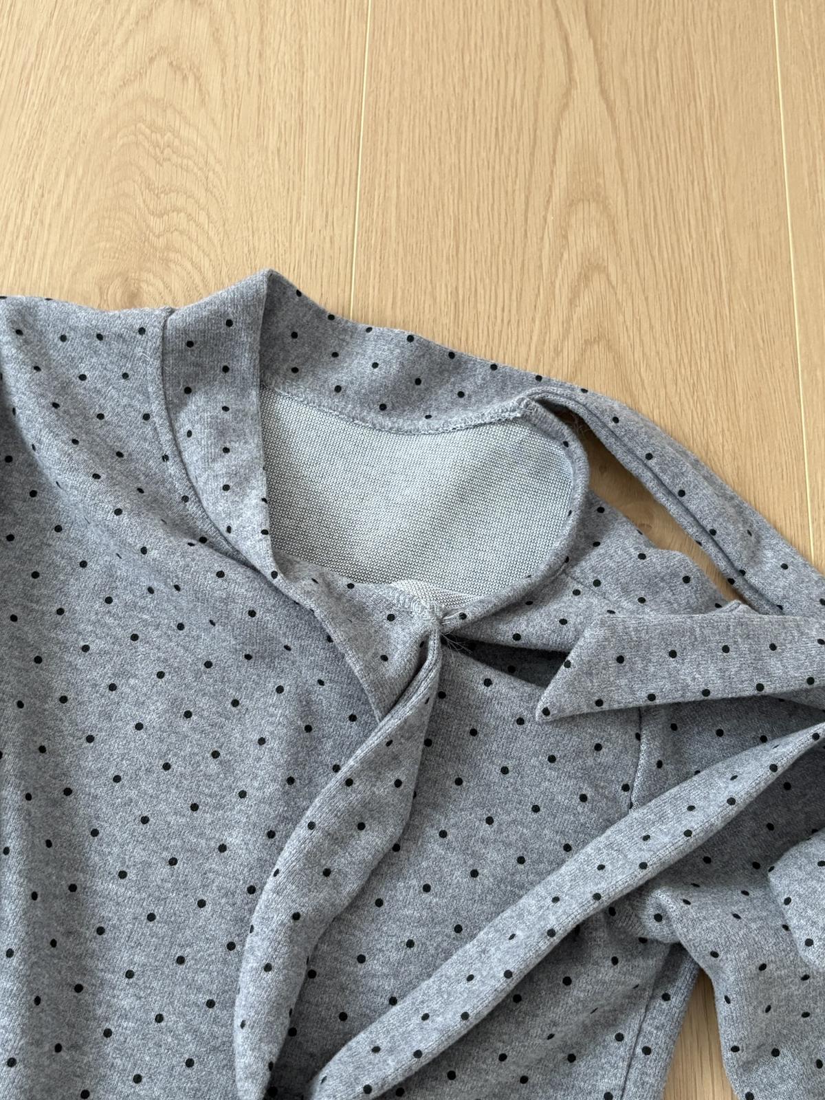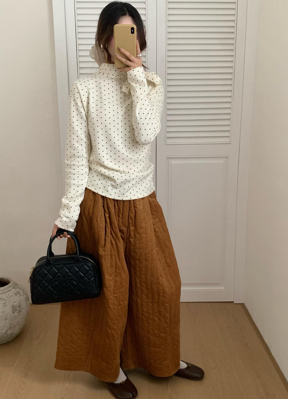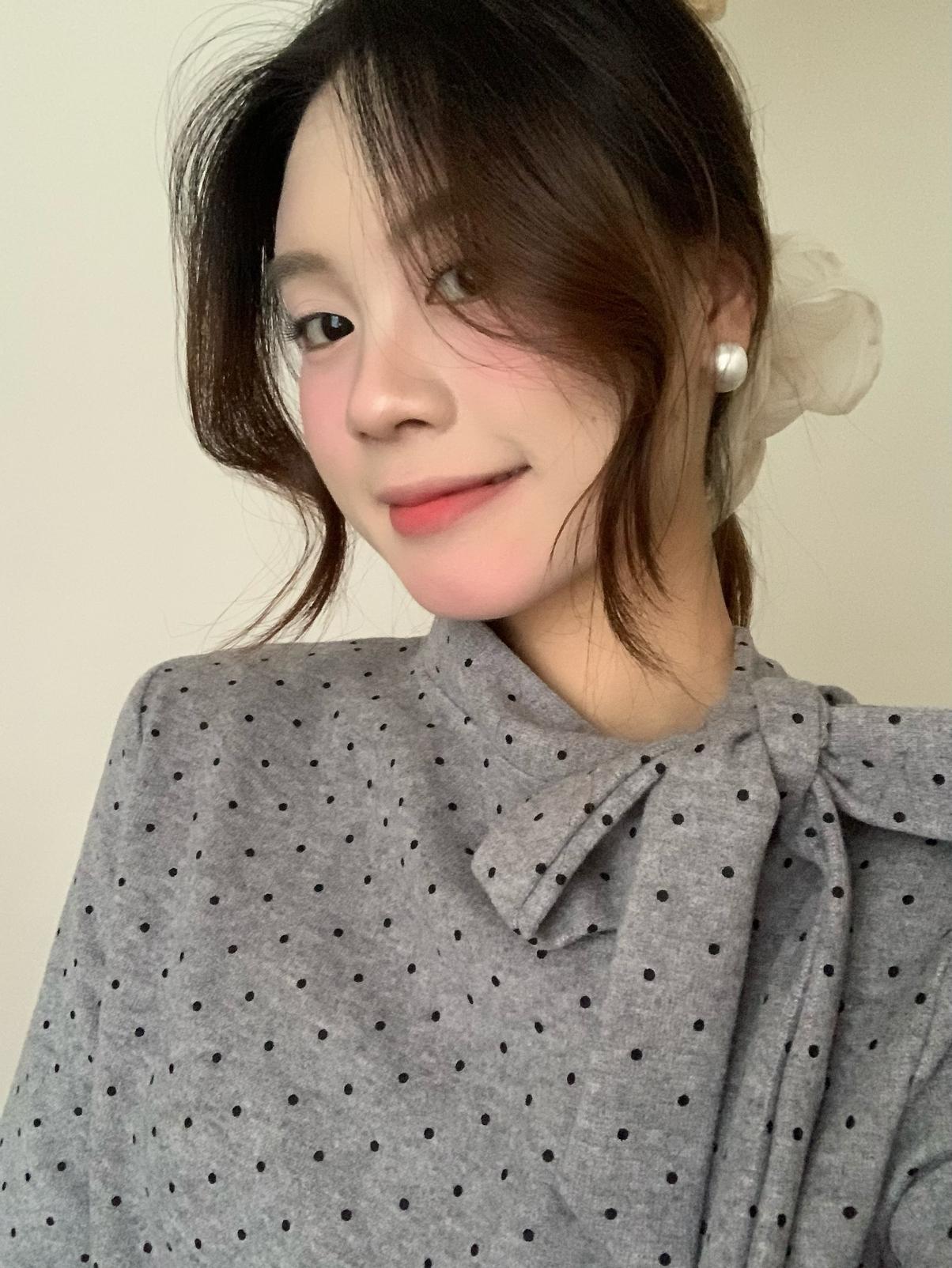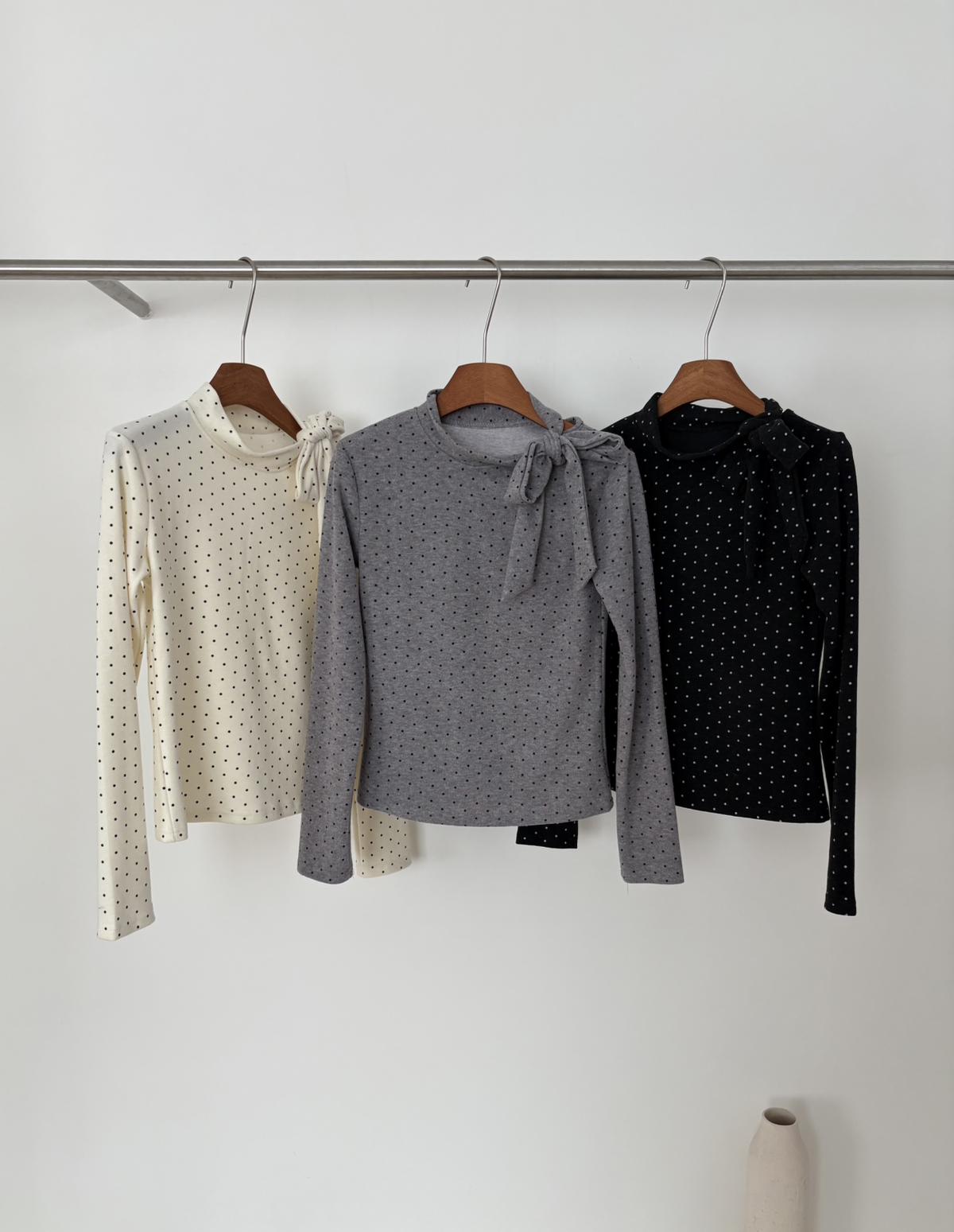 【C7914】韓系波點綁帶氣質休閒上衣女冬季新款顯瘦簡約設計感疊穿打底衫