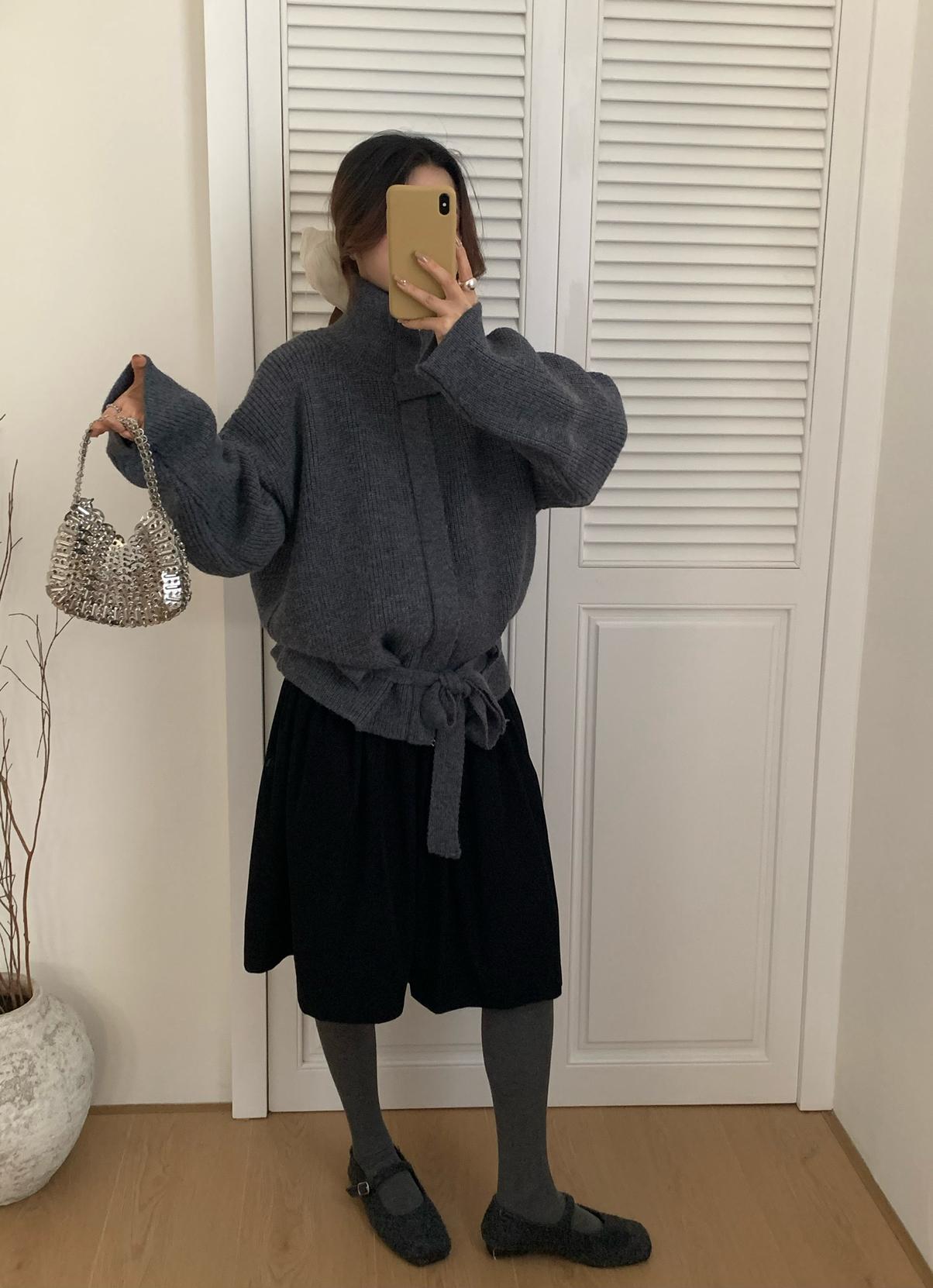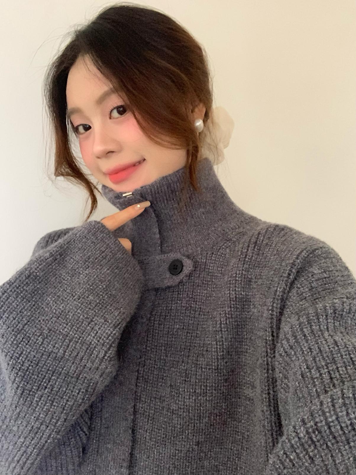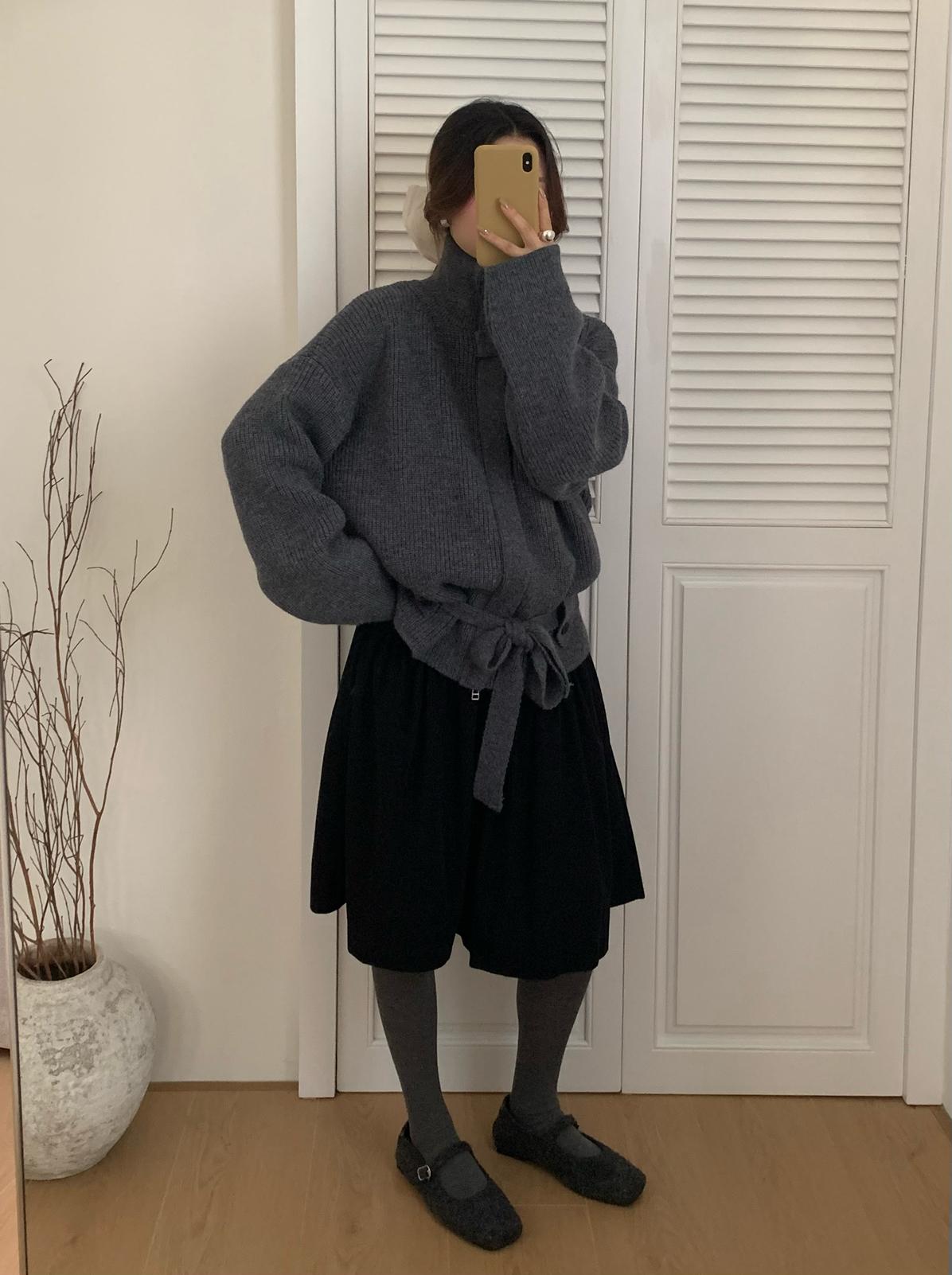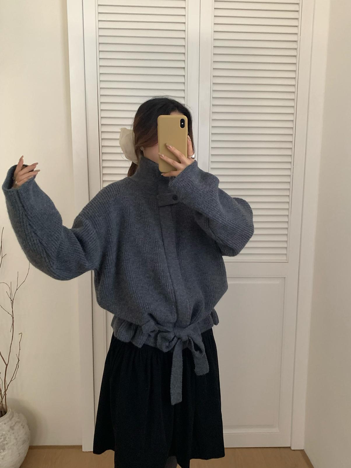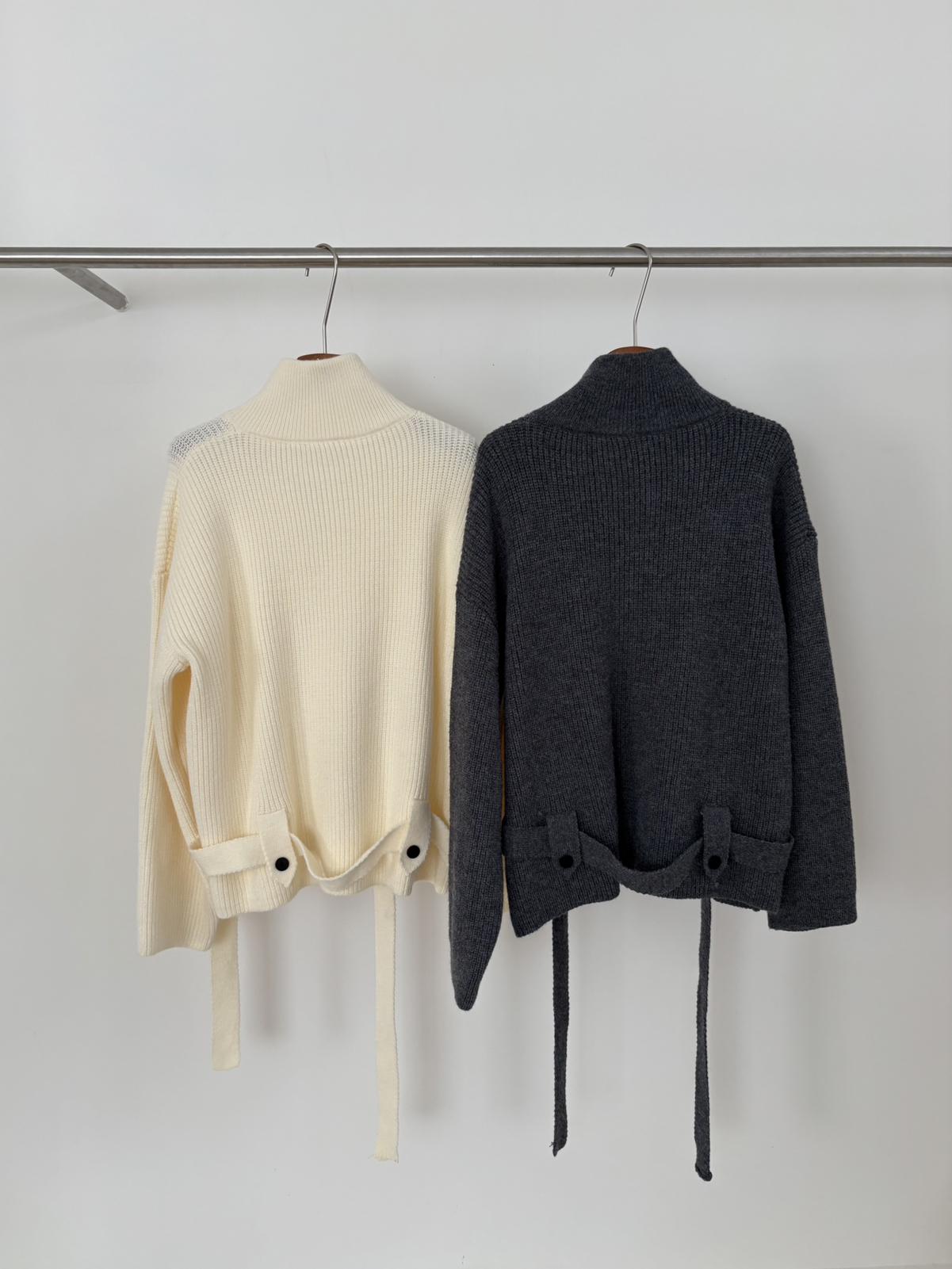 【C7915】韓系立領拉鍊針織開衫女秋冬新款2025百搭顯瘦設計感收腰綁帶保暖毛衣(配腰繩)