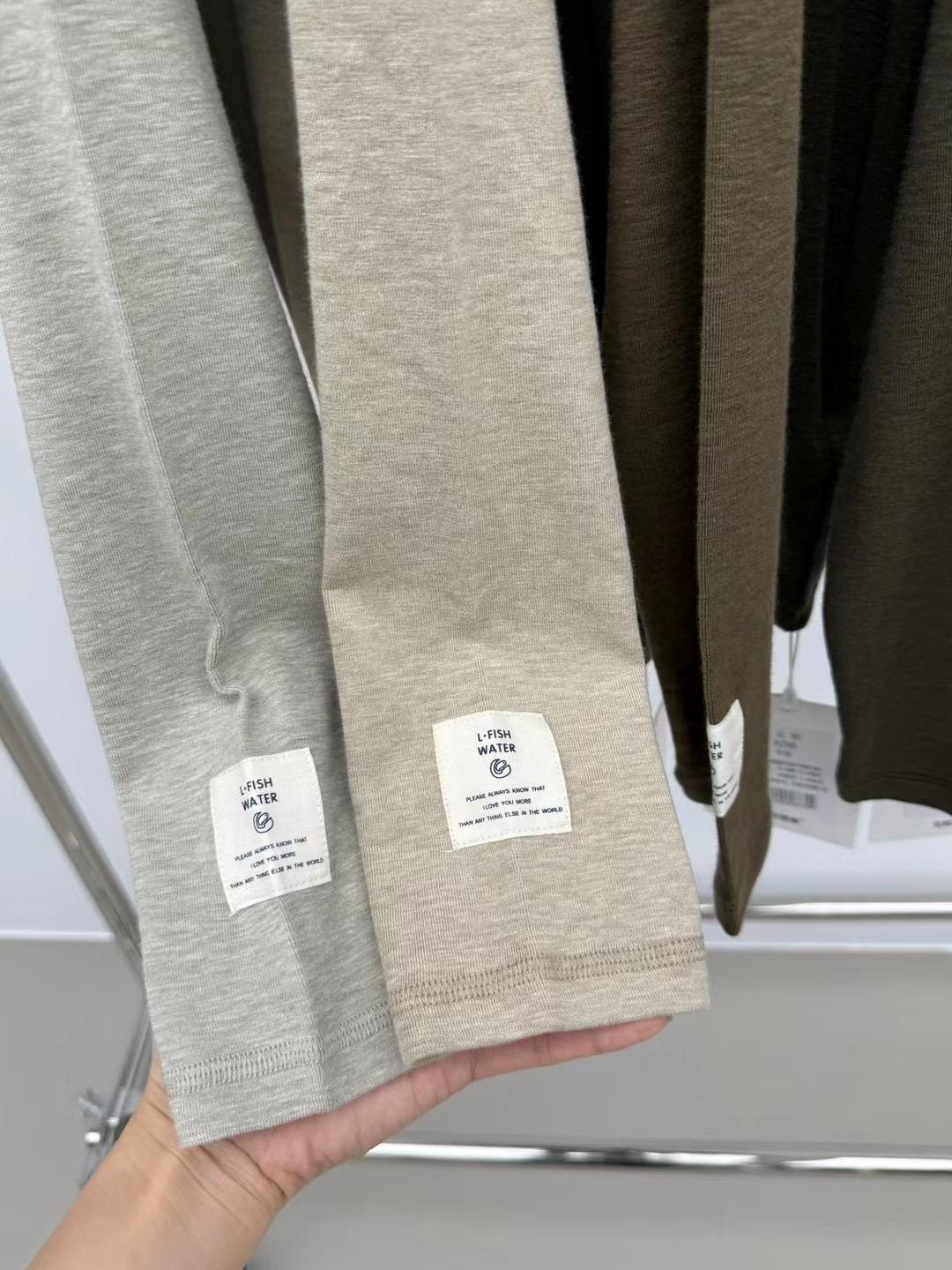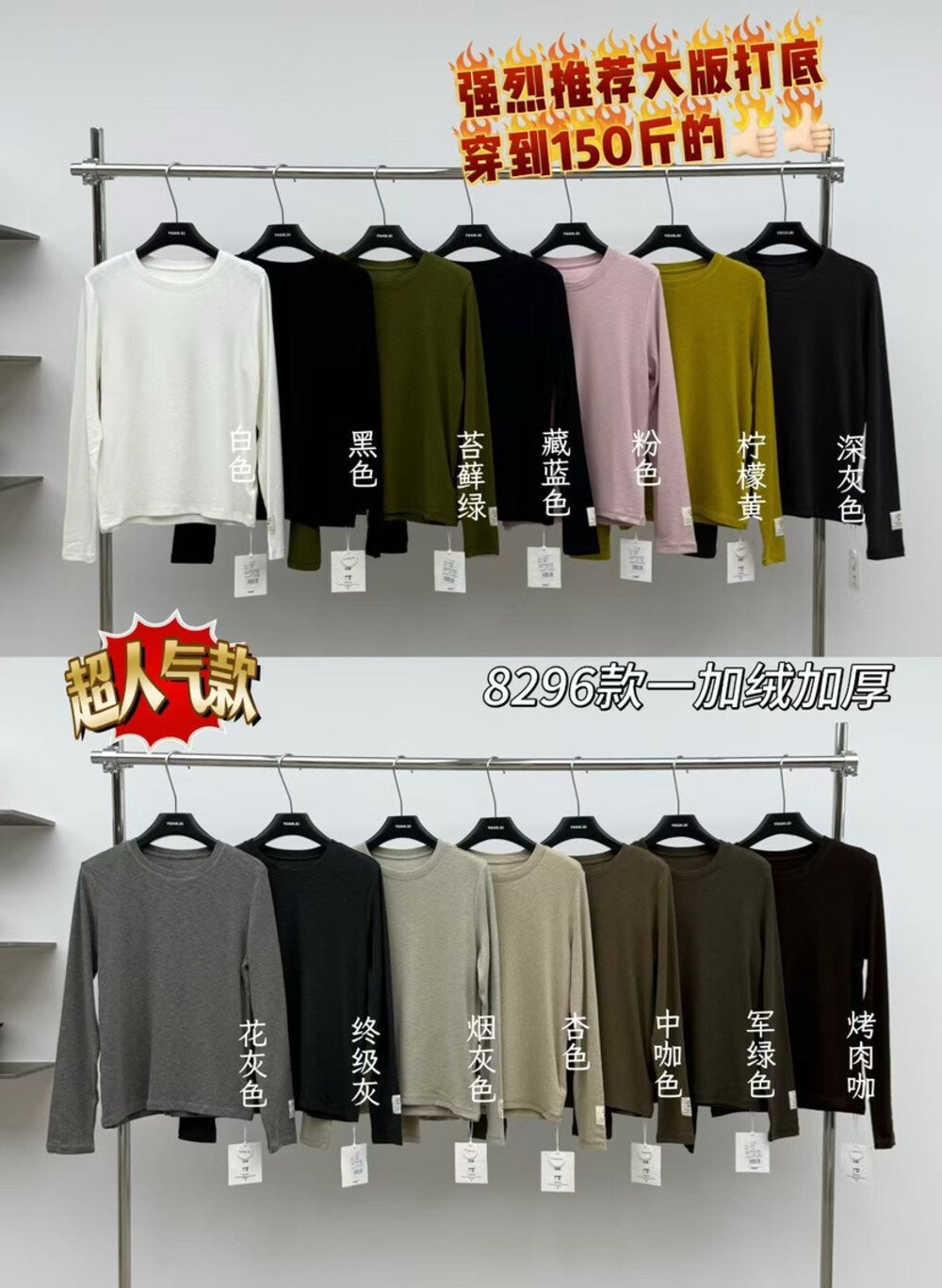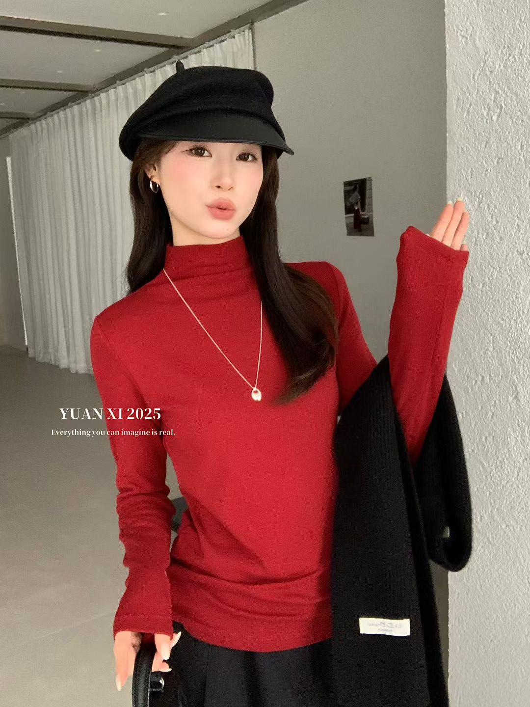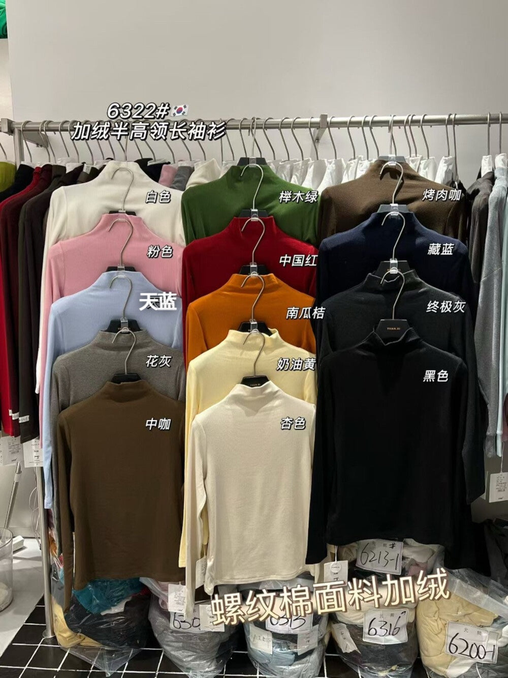 【C7922】螺紋高彈半高領加絨長袖打底衫