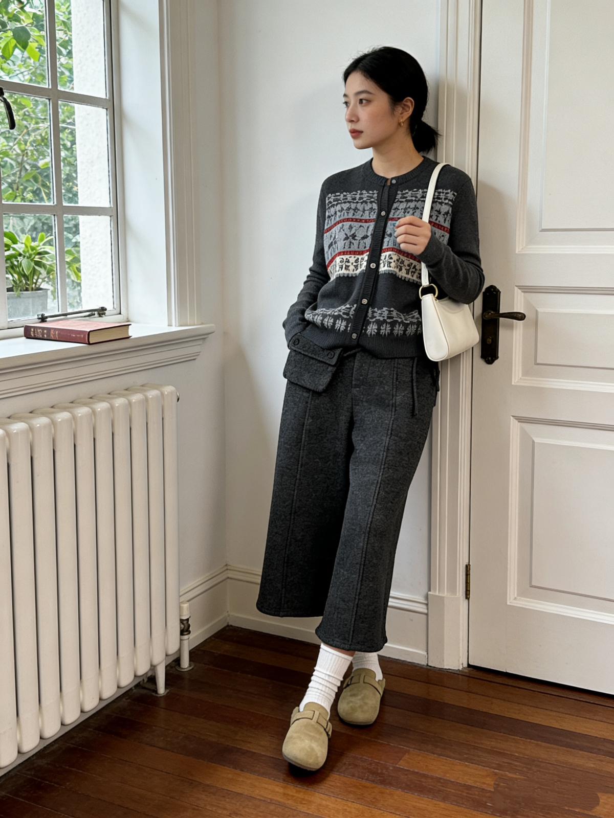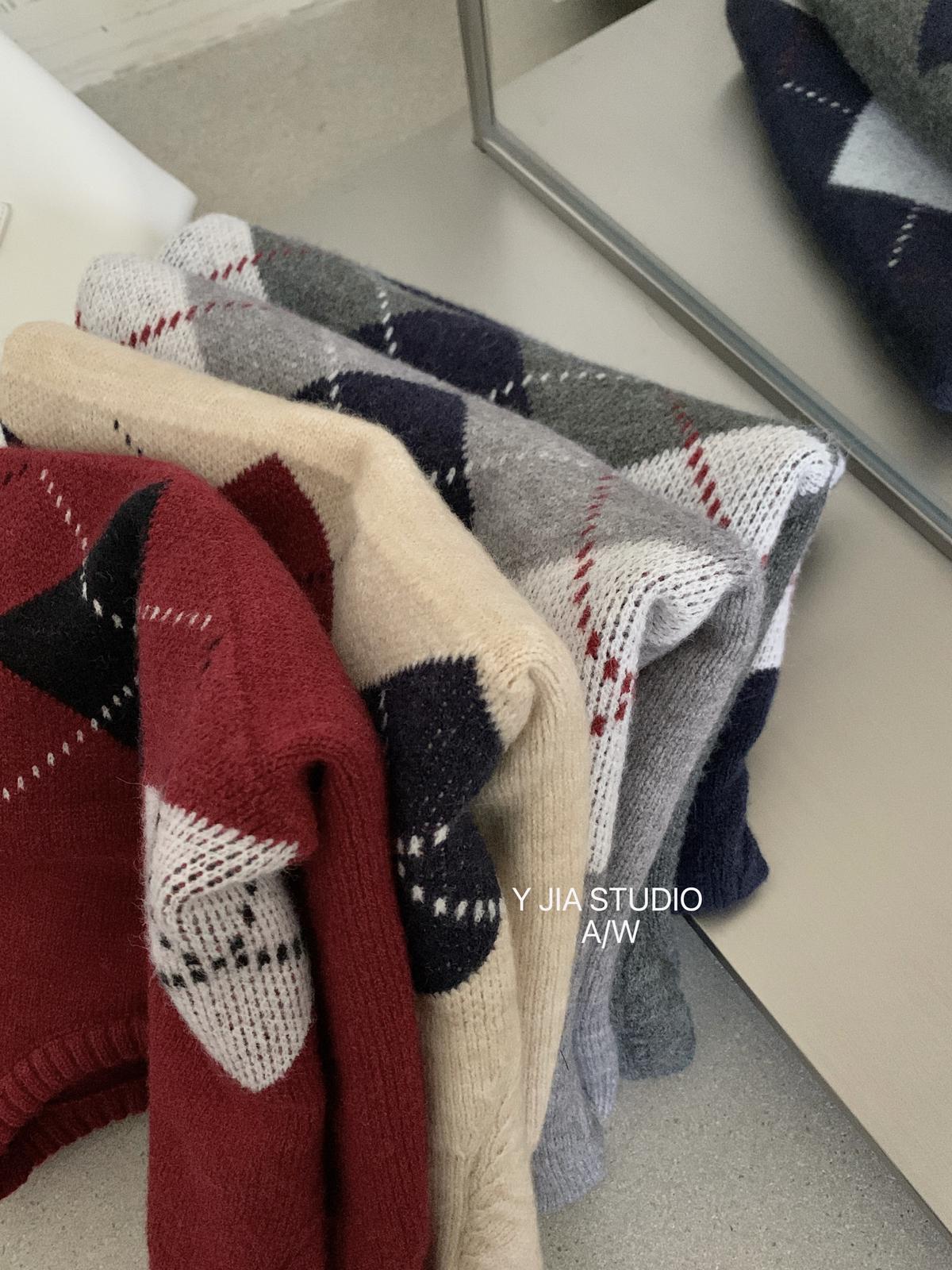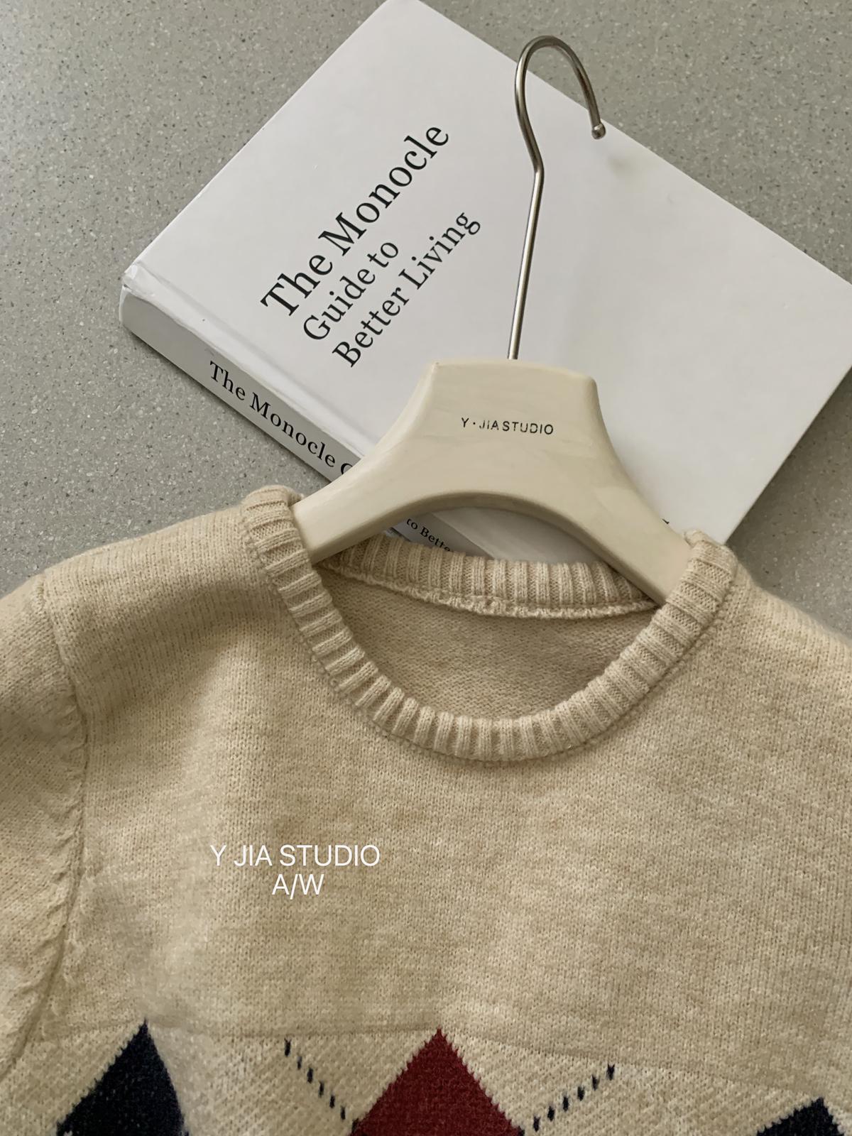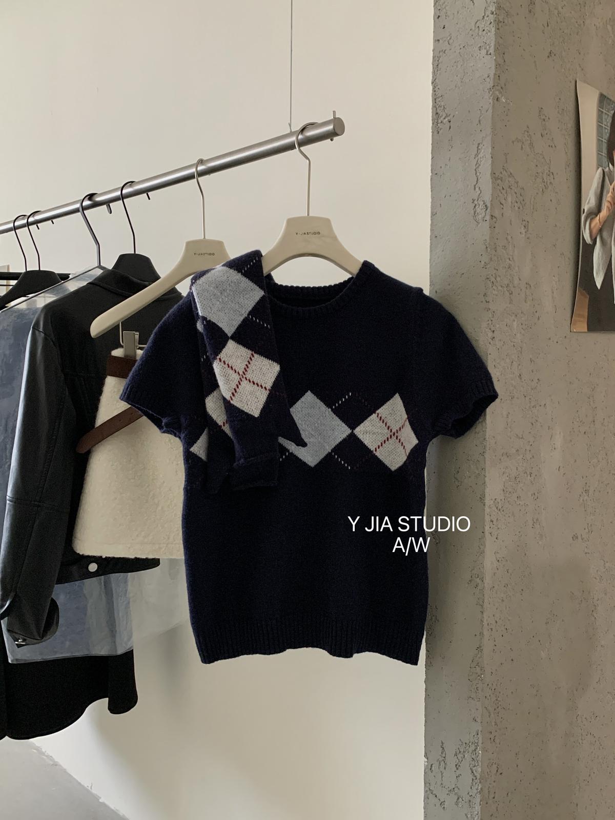 【C8095】元氣歐尼~復古菱格設計感圓領短袖保暖毛衣(配袖套)