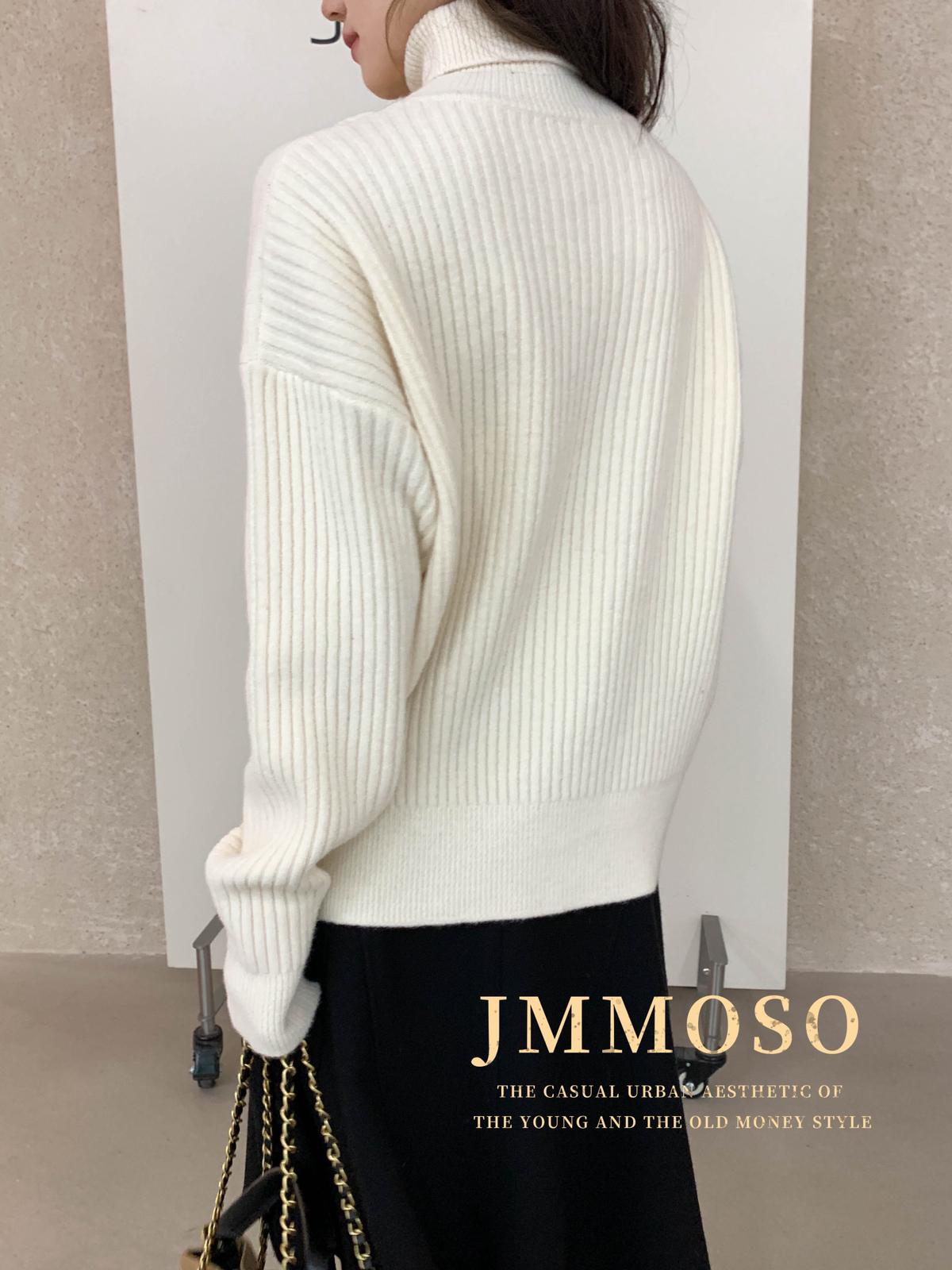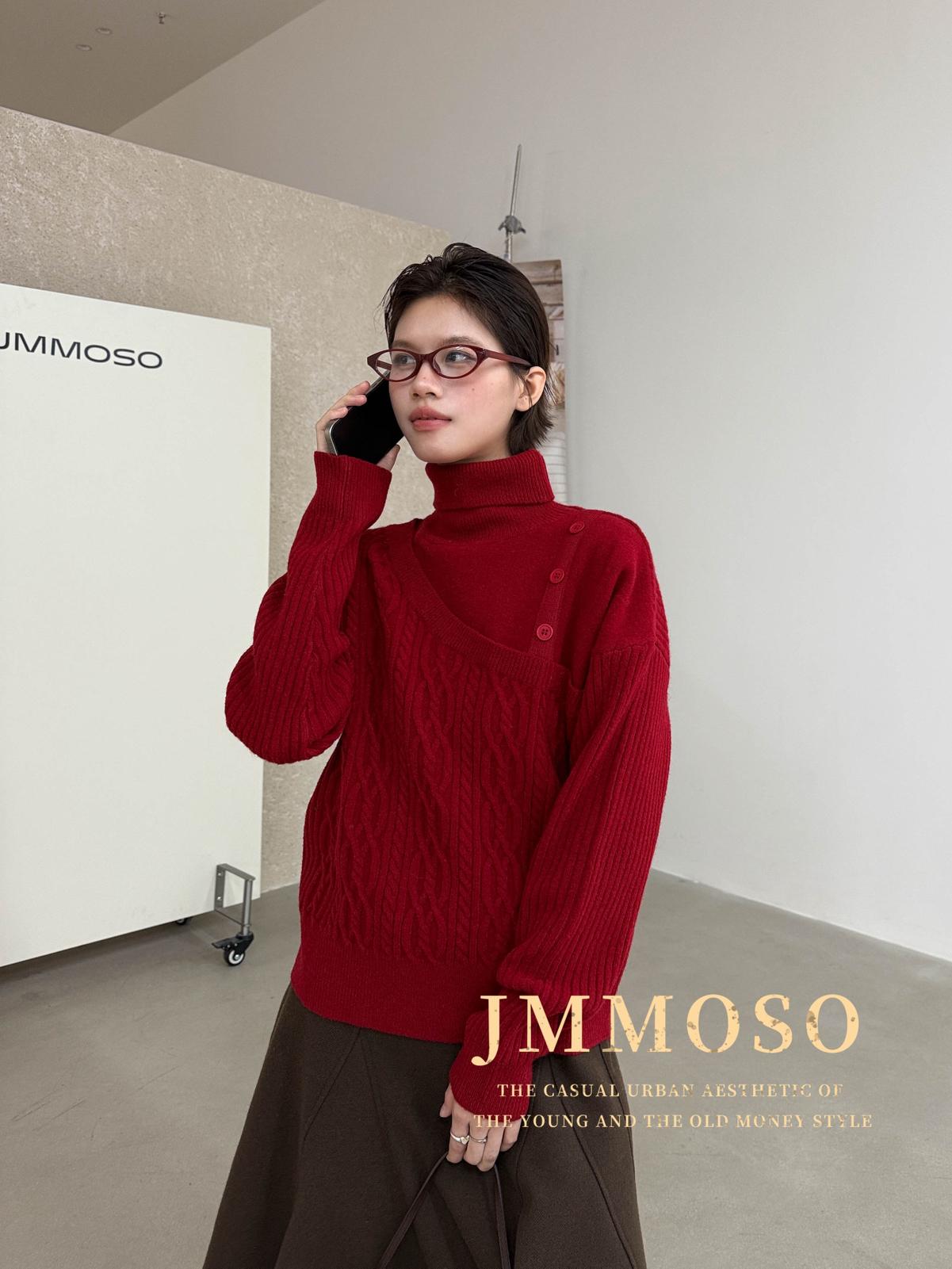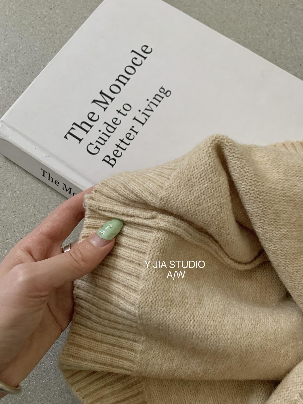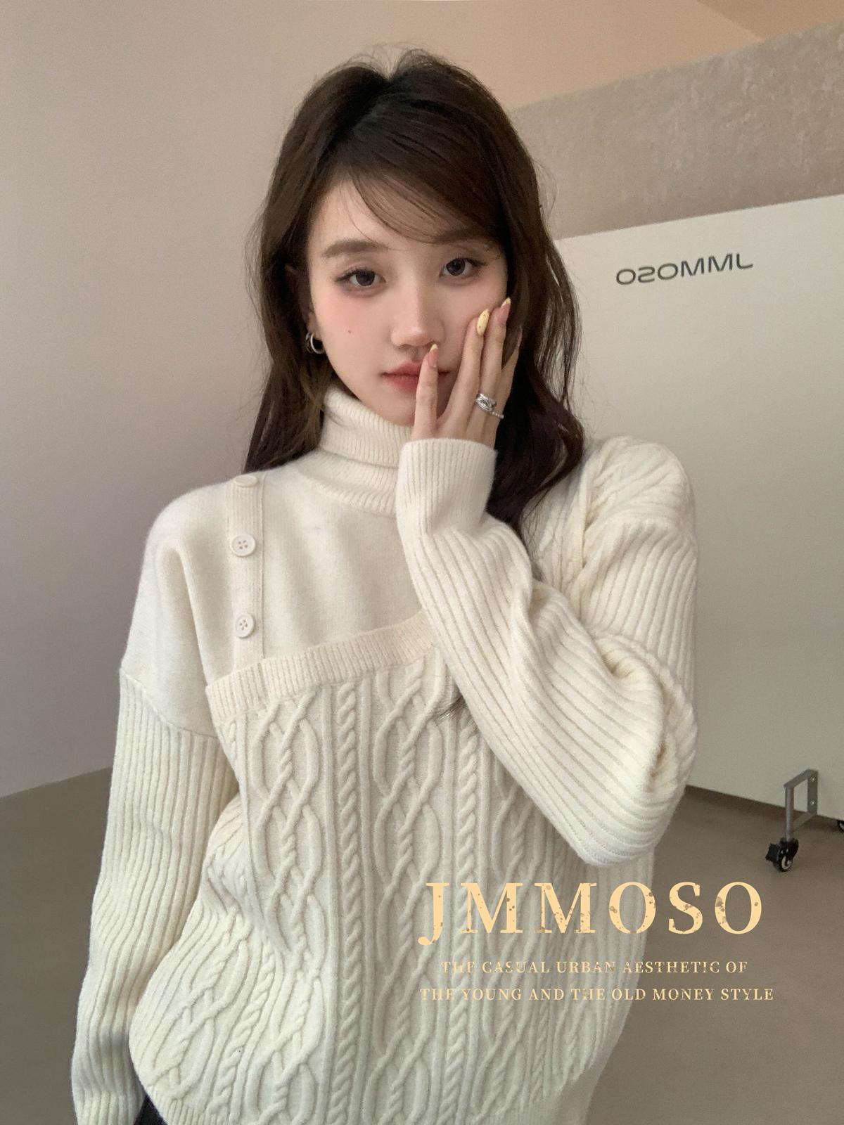 【C8143】高智感慵懶鬆弛感高領翻領氣質麻花肌理寬鬆百搭軟糯保暖毛衣(含16%羊毛)