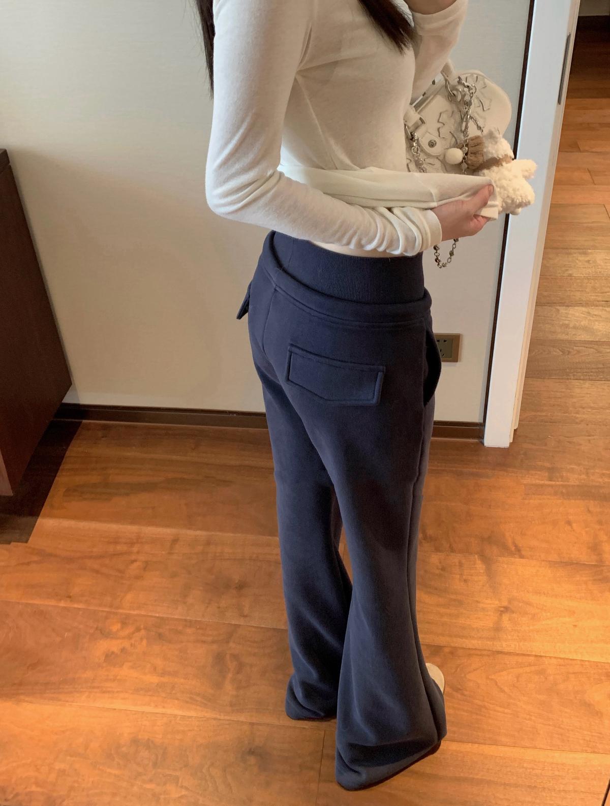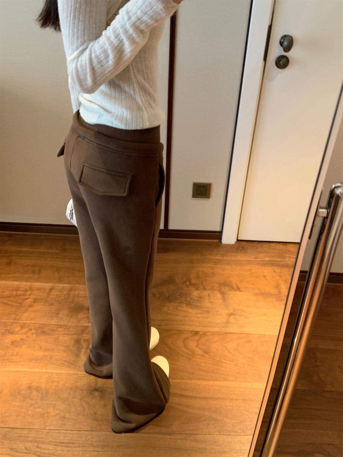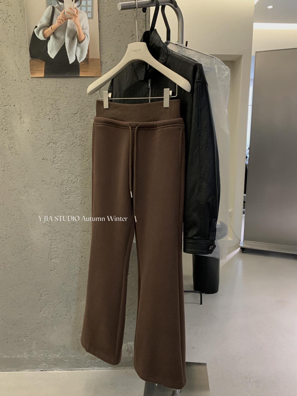 【C8097】奧莉絨內膽螺紋腰高腰繫帶微喇顯瘦休閒褲