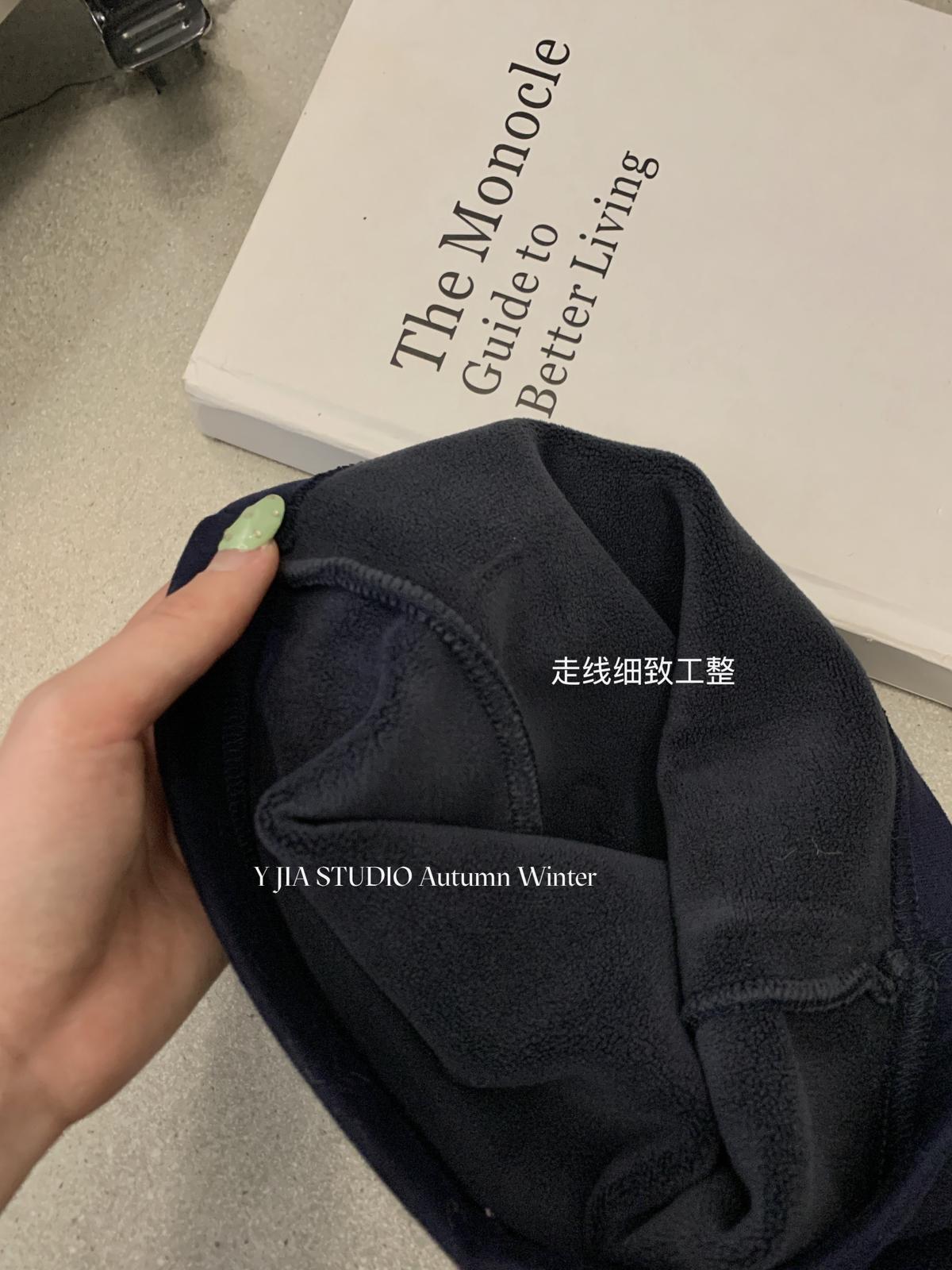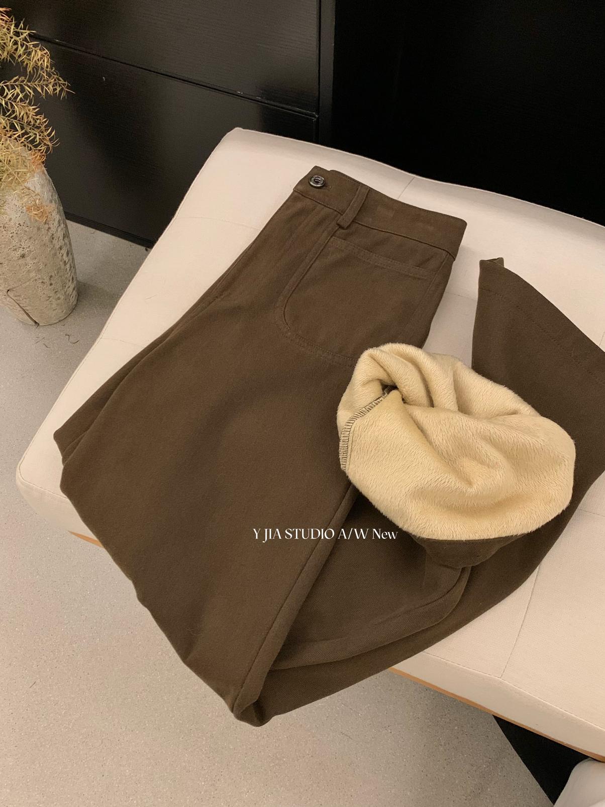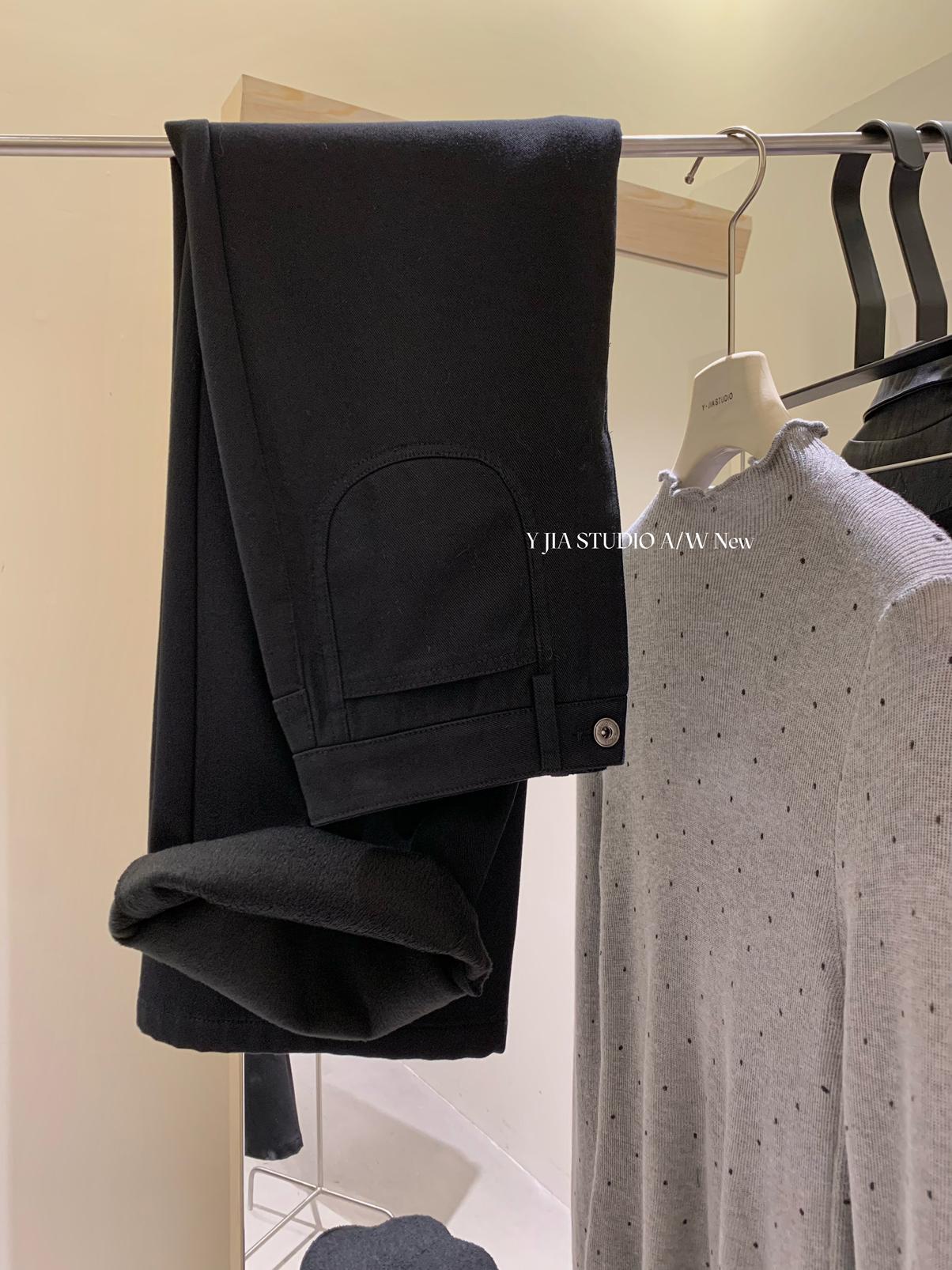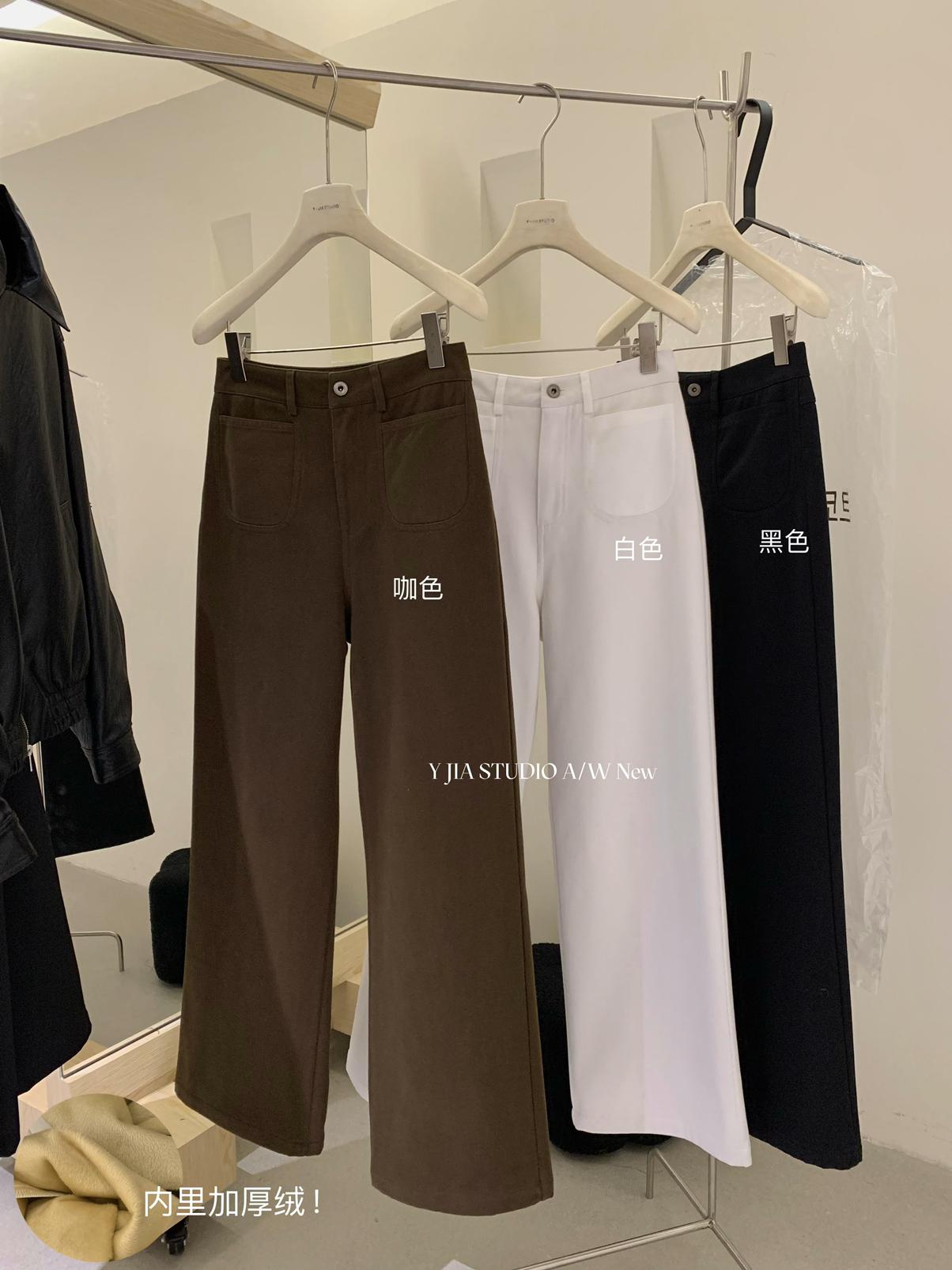 【YS2635】彈力加絨加厚仿羚羊絨斜紋寬鬆老錢風排扣休閒褲