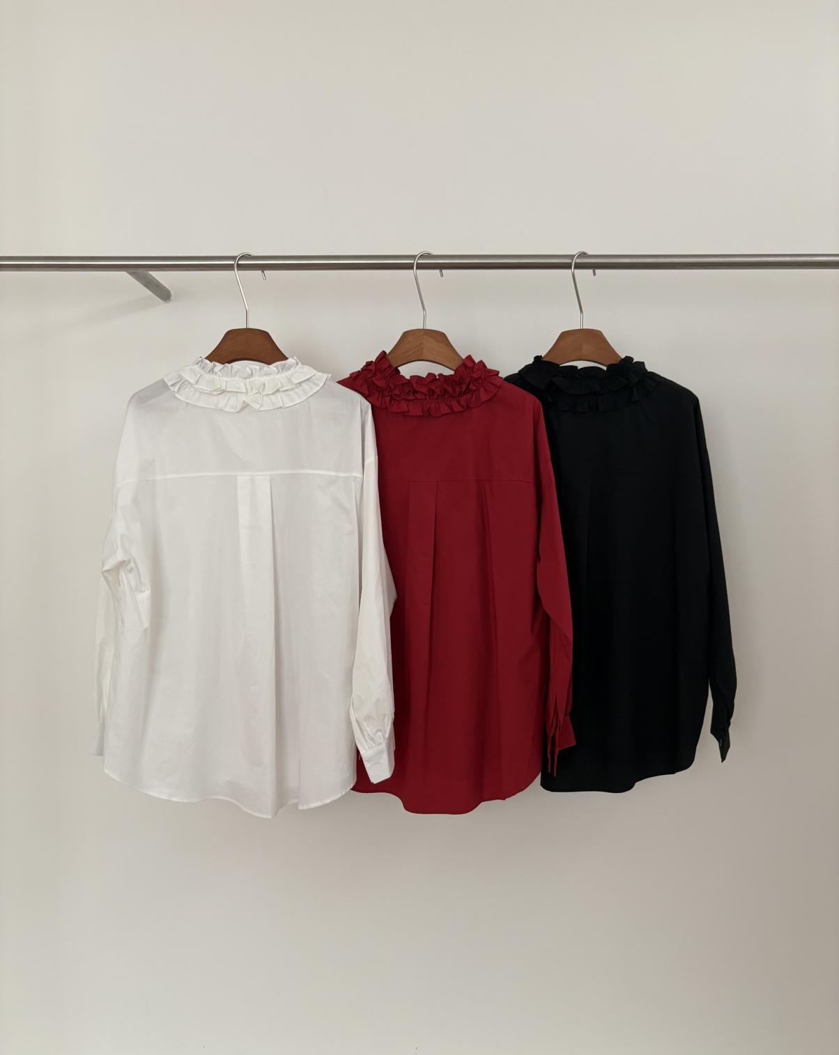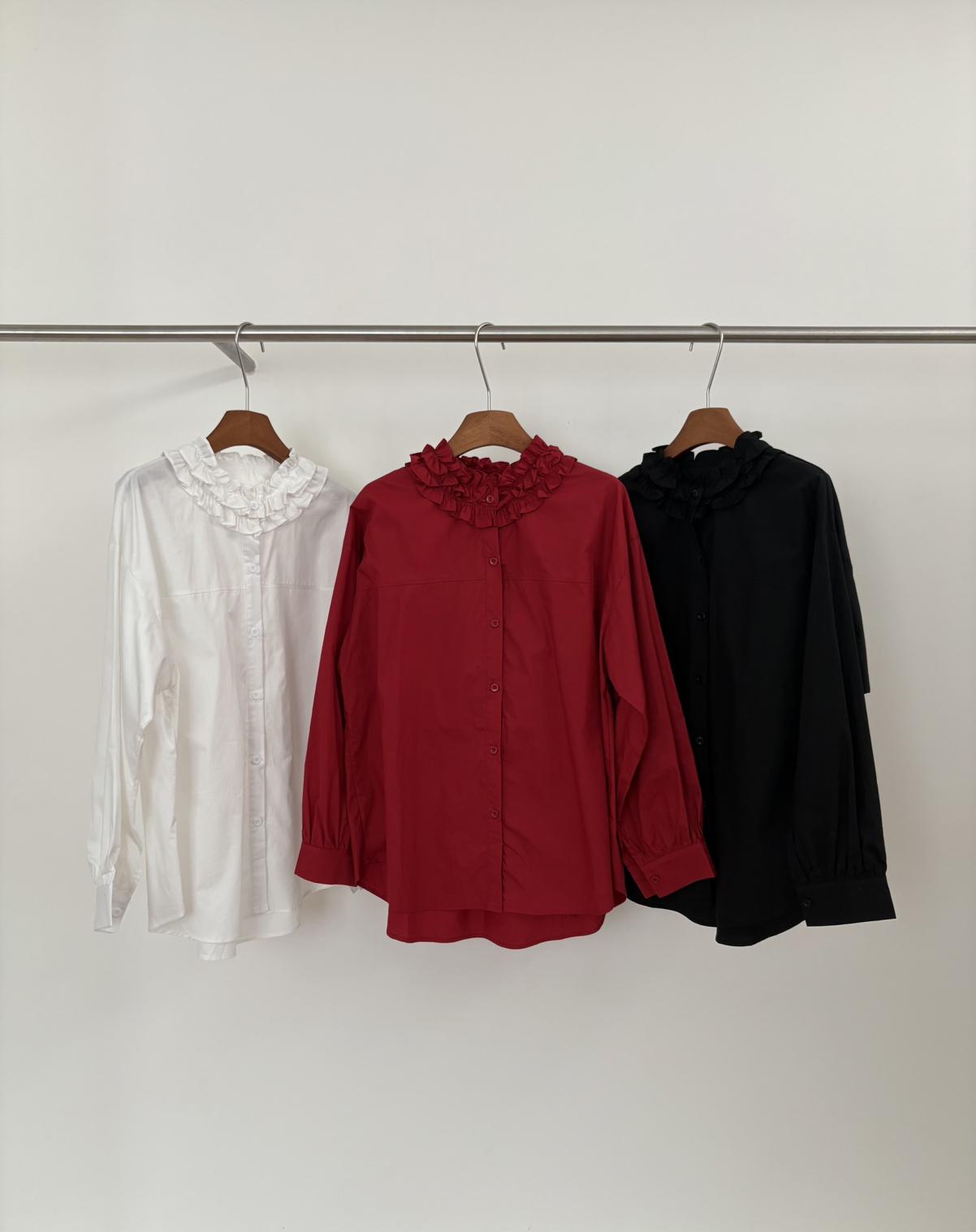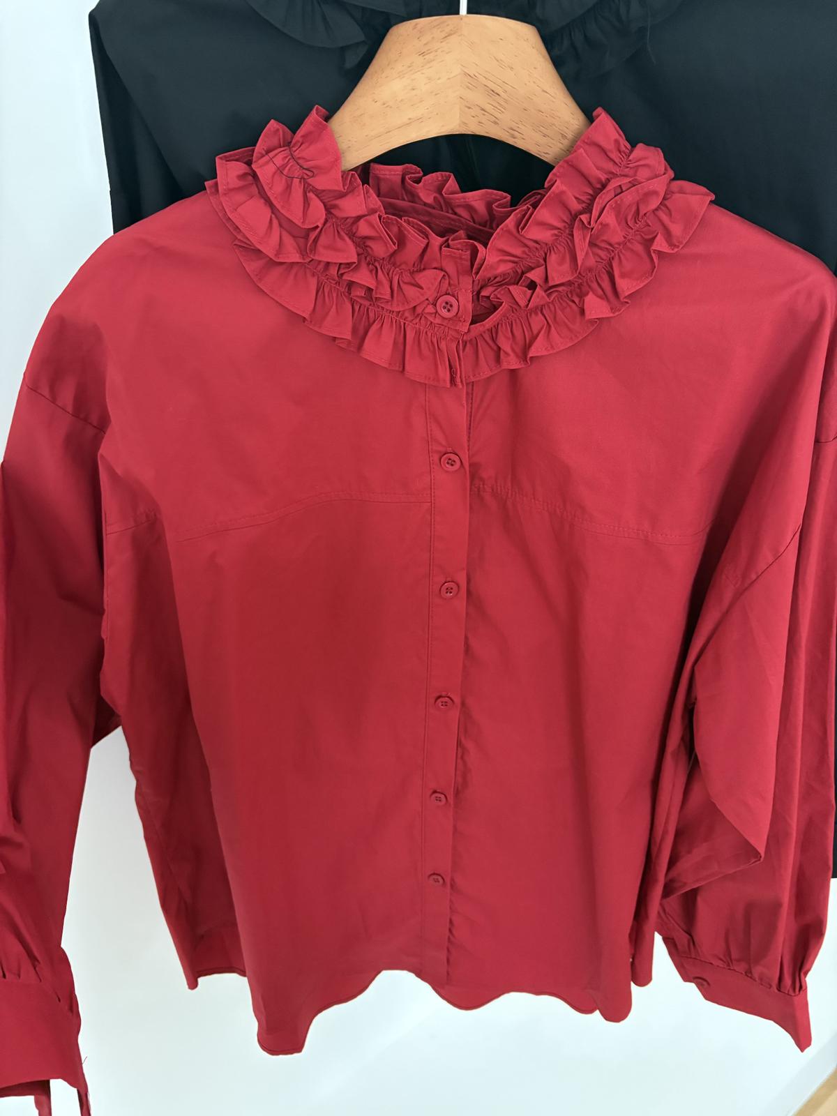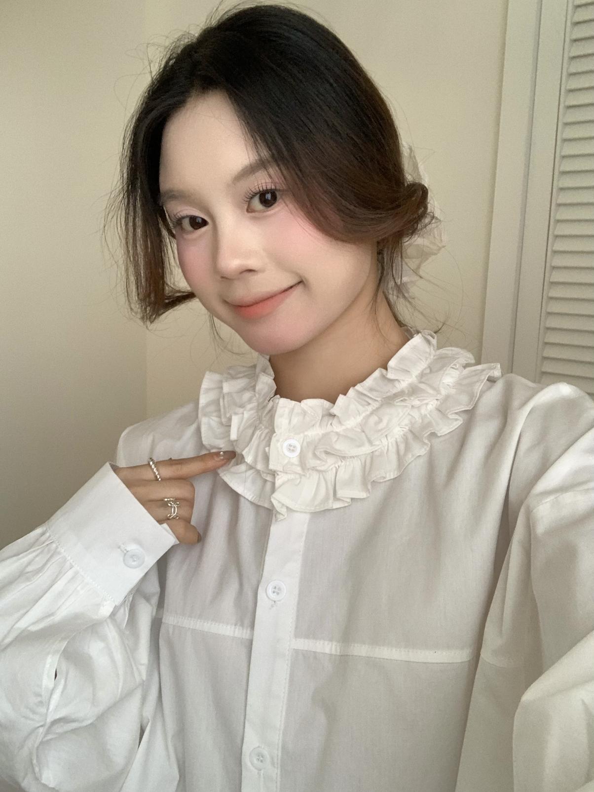 【C8136】法式木耳邊百搭純色長袖女寬鬆顯瘦減齡單排扣顯瘦寬鬆襯衫