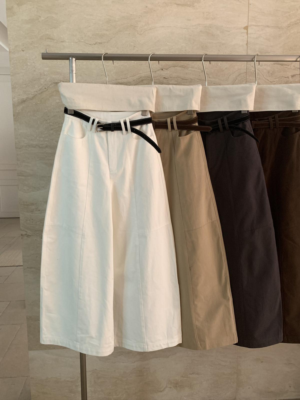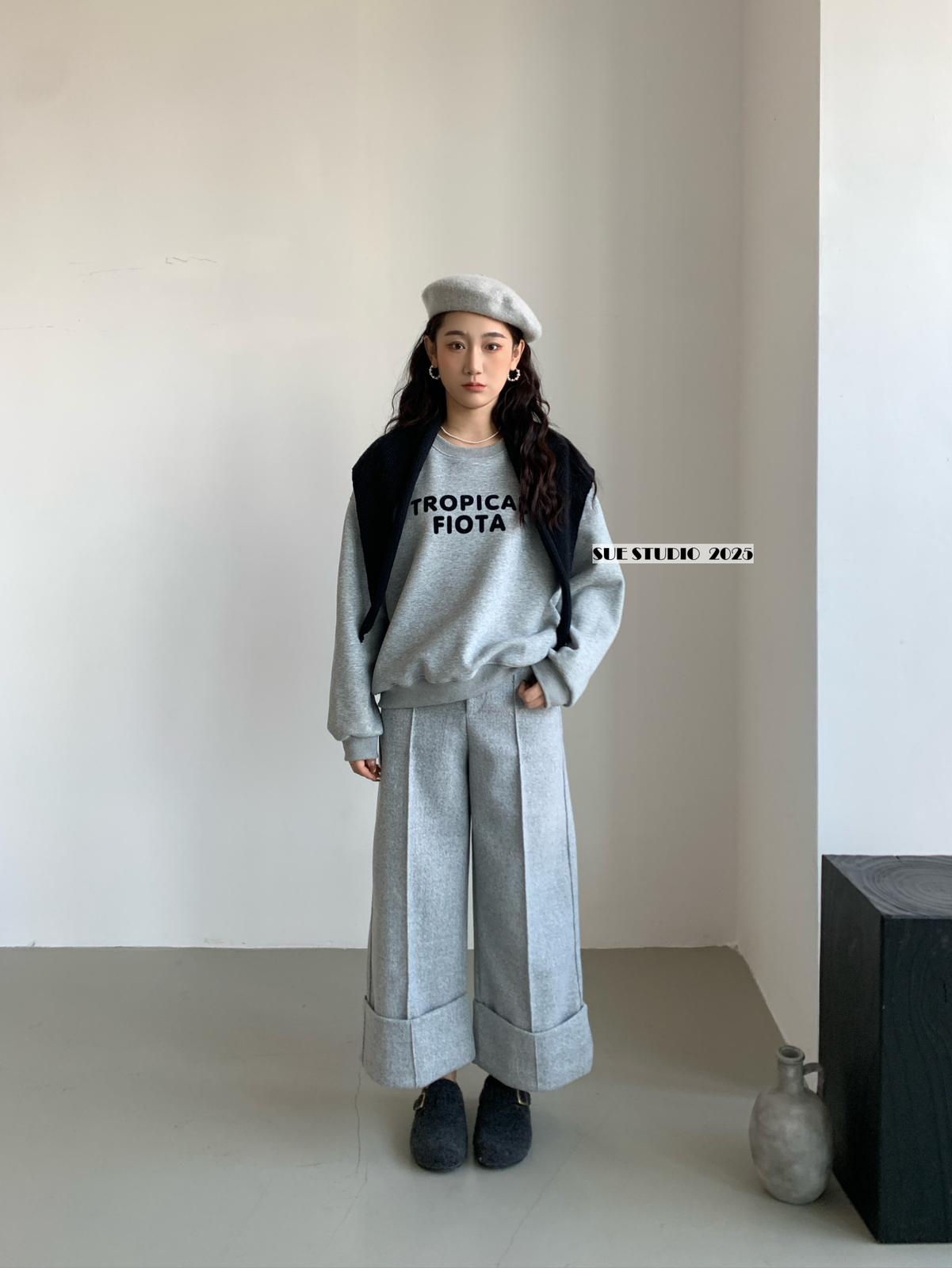 【C8162】簡約高腰磨毛絨感闊腿彎刀型休閒褲(配腰帶)