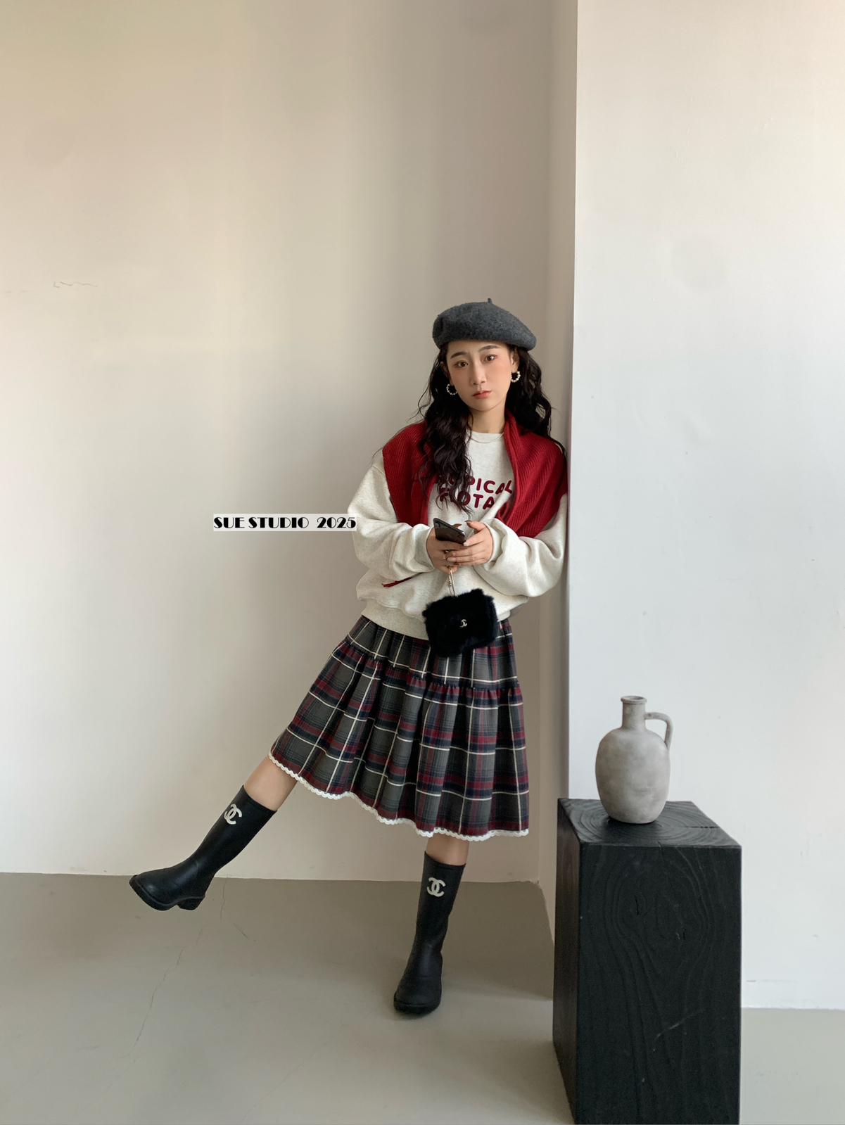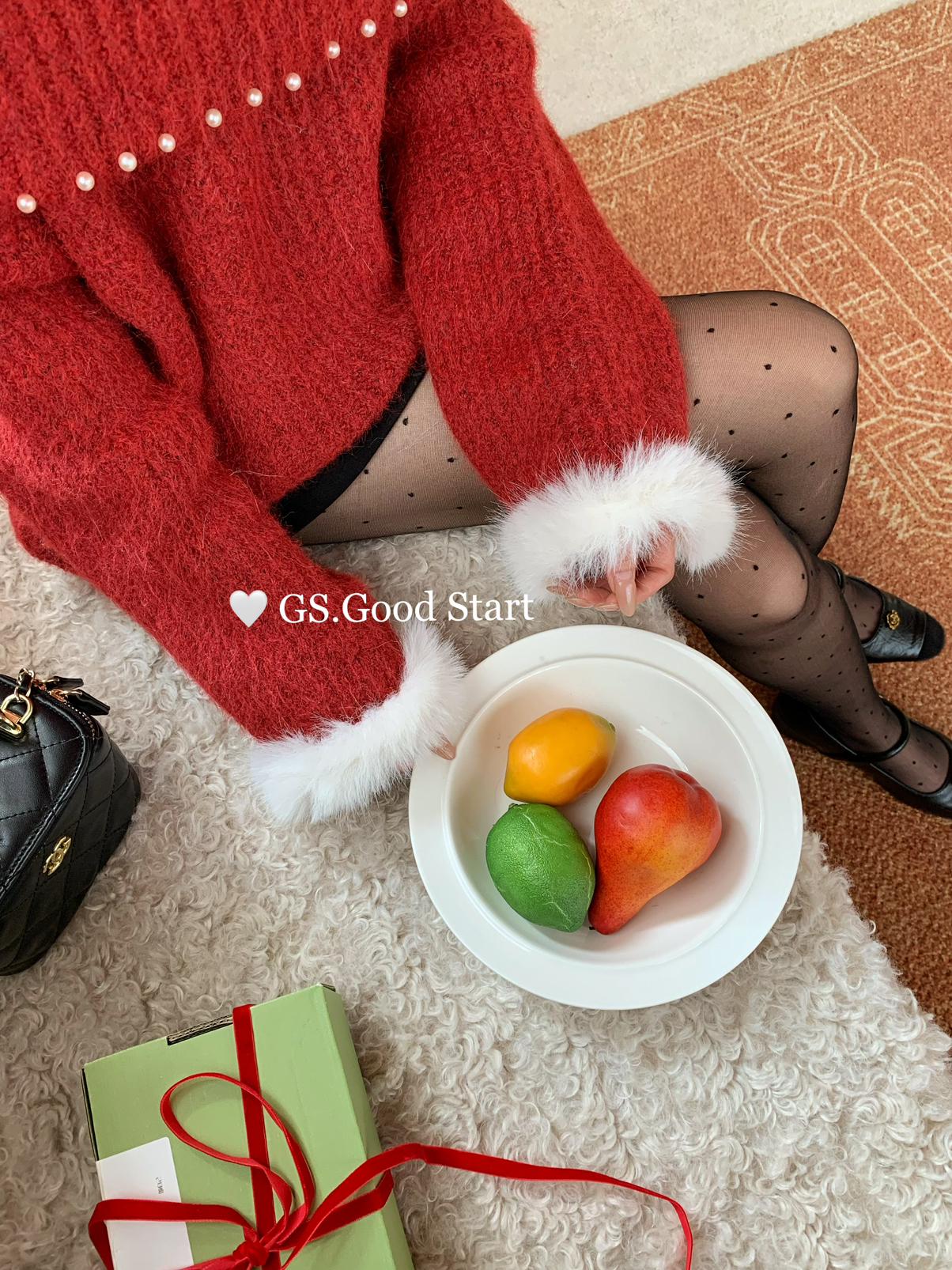 【C8154】聖誕將至氛圍磨毛繫帶柔軟舒適毛衣開衫+磨毛網紗荷葉邊拼接吊帶套裝(含10%兔毛)