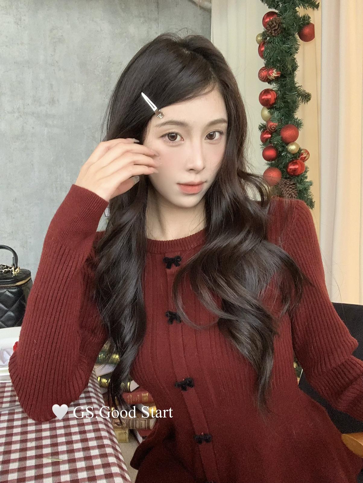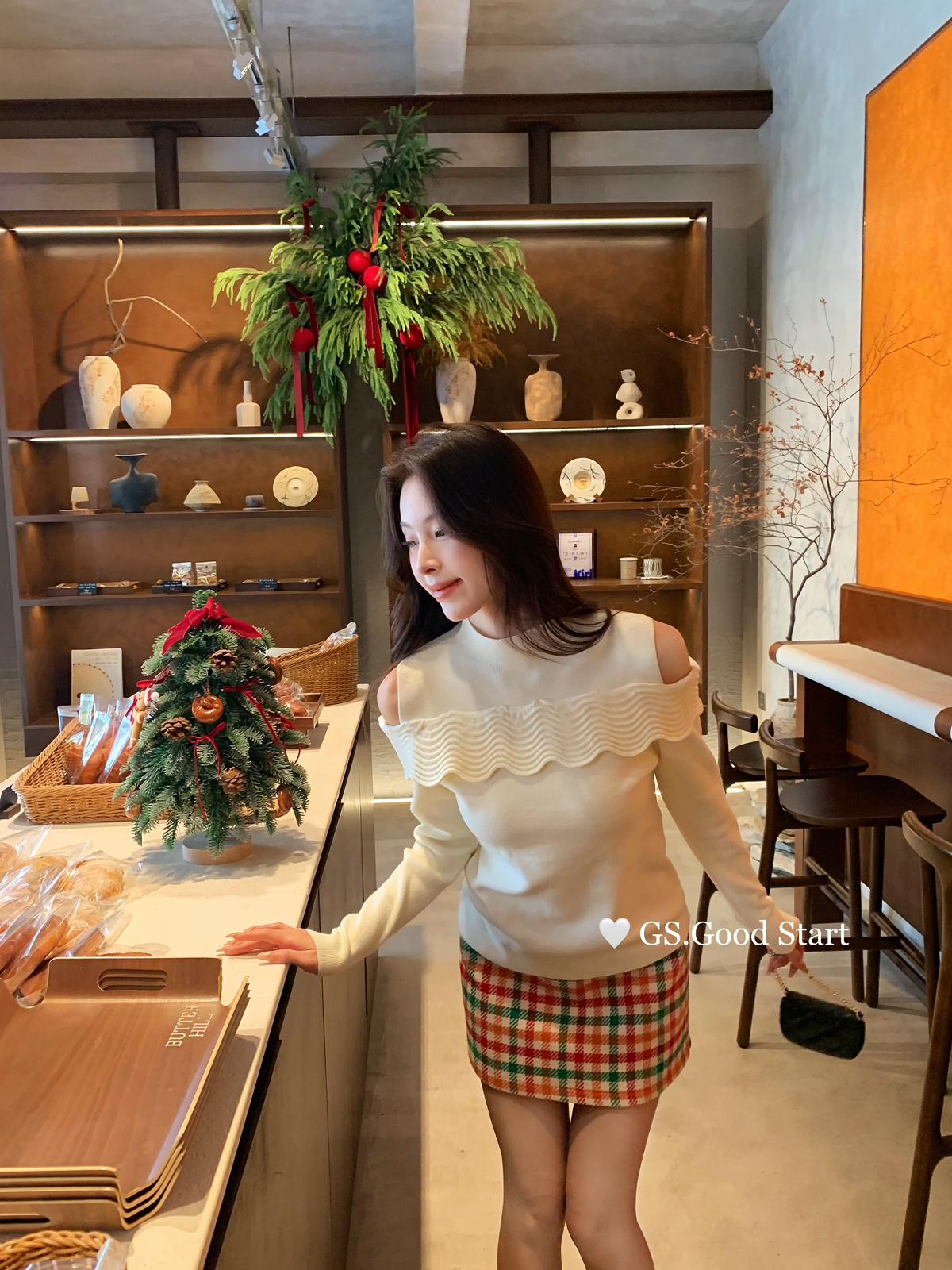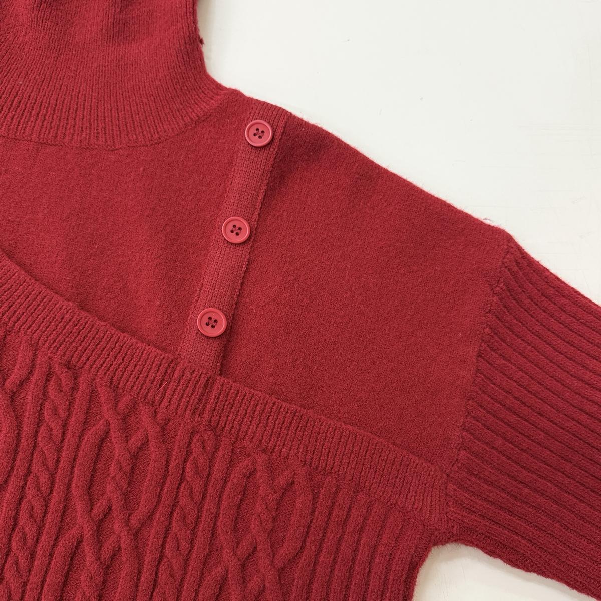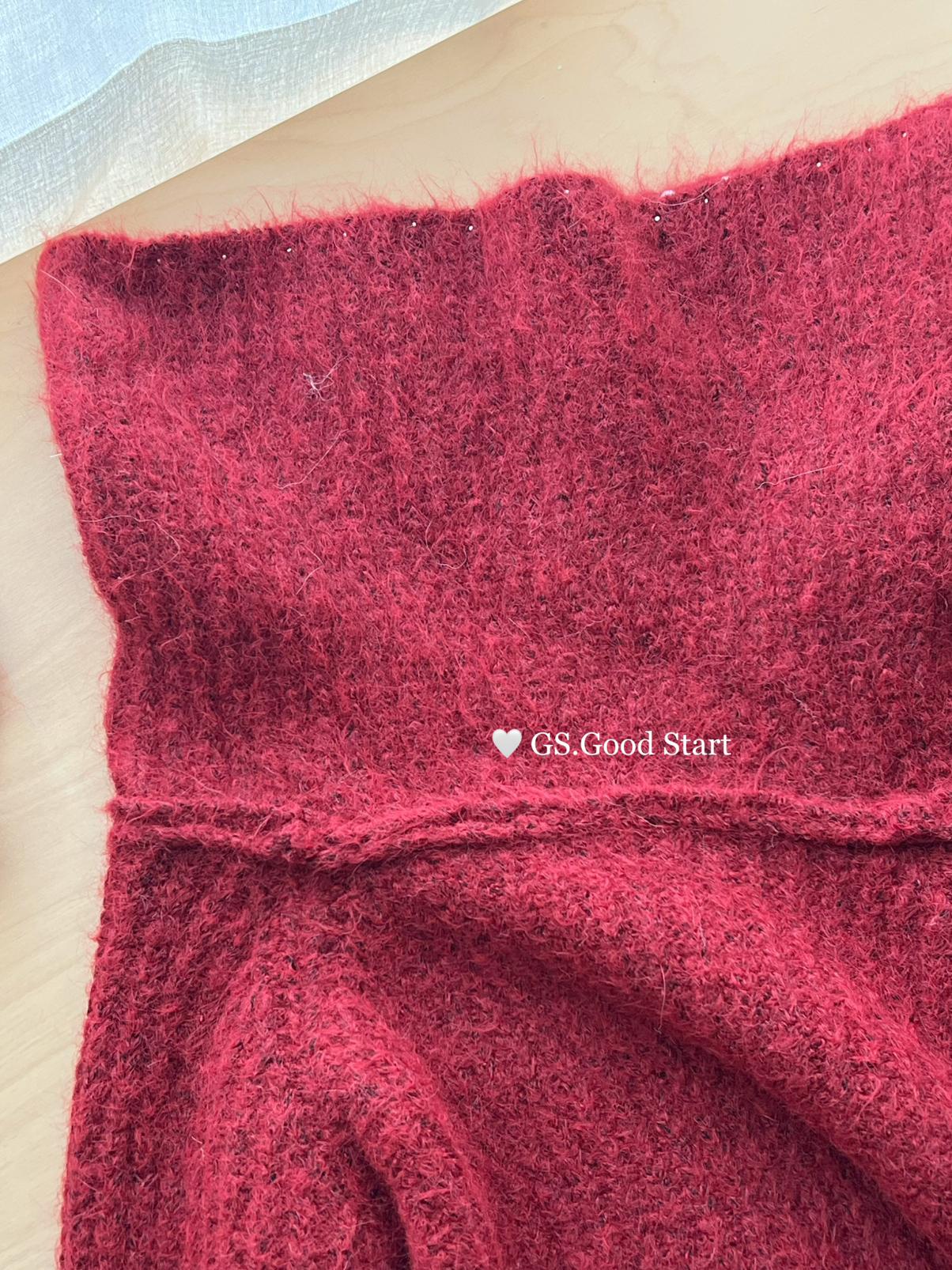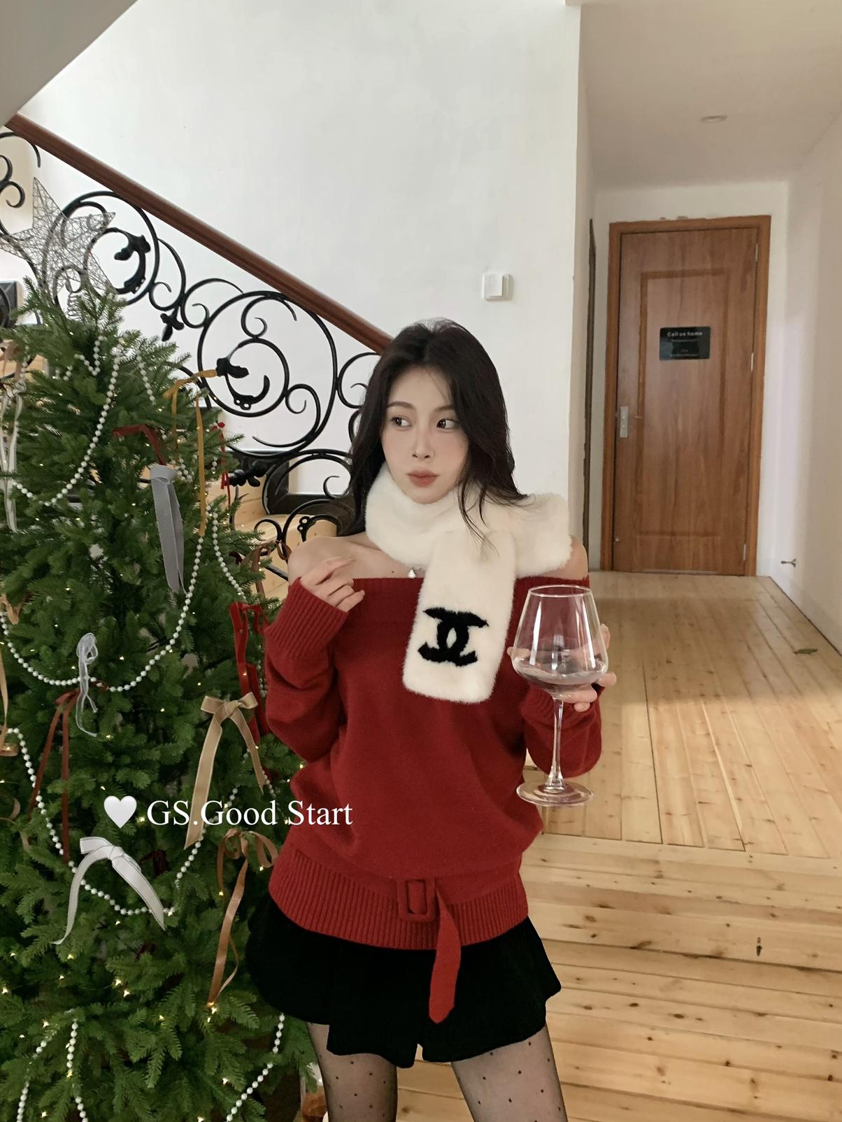 【C8167】紅色太顯白了!強推!心動一萬次~冬季浪漫氣質氛圍感一字肩寬鬆保暖毛衣(配可拆卸髮圈)
