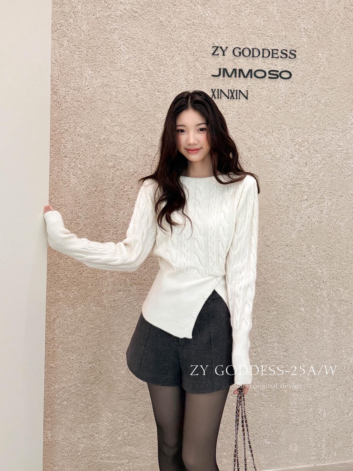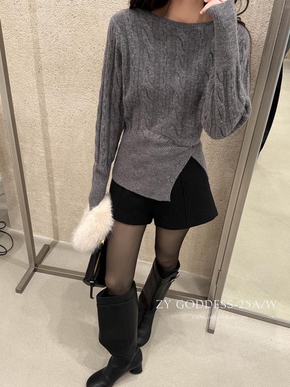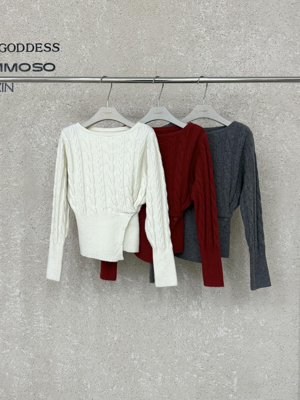 【C8165】小露sexy香肩~美膩迷人!進店必帶!秋冬氣質設計感露肩針織衫