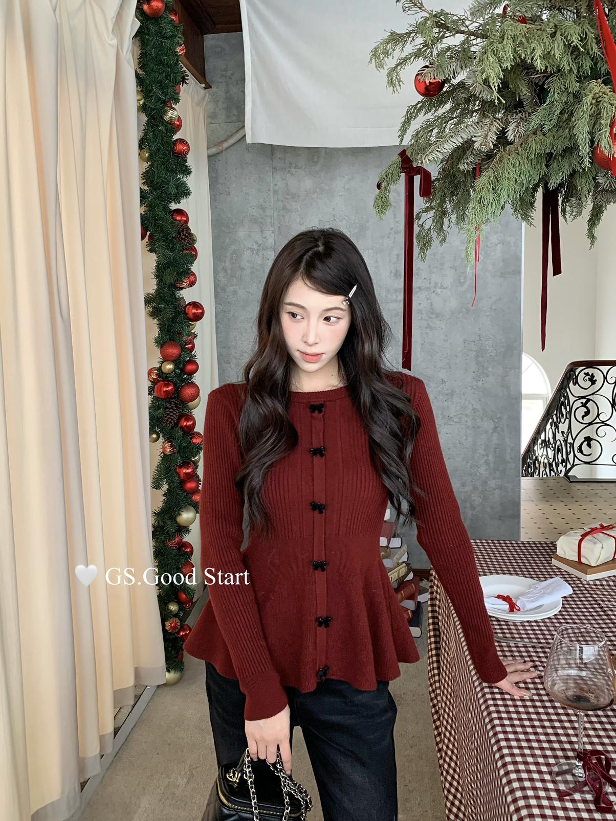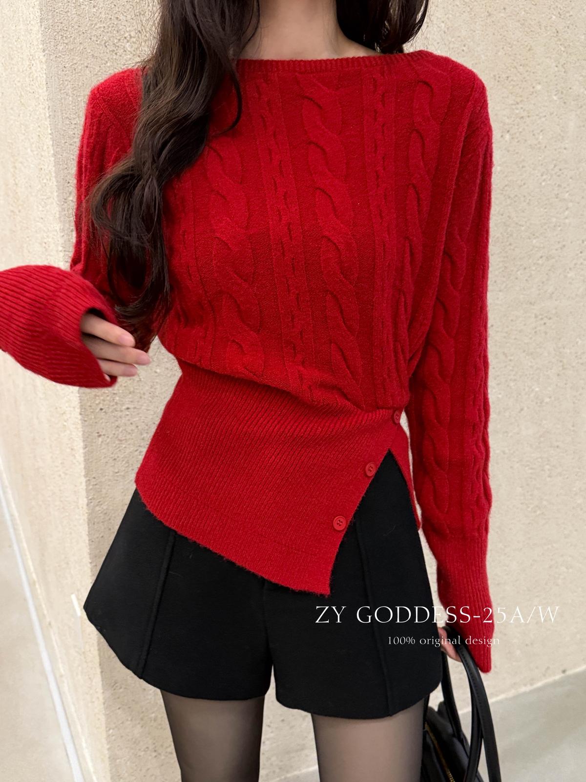 【C8144】聖誕新年紅!韓版簡約氣質收腰顯瘦下襬開衩保暖毛衣(含19%羊毛)